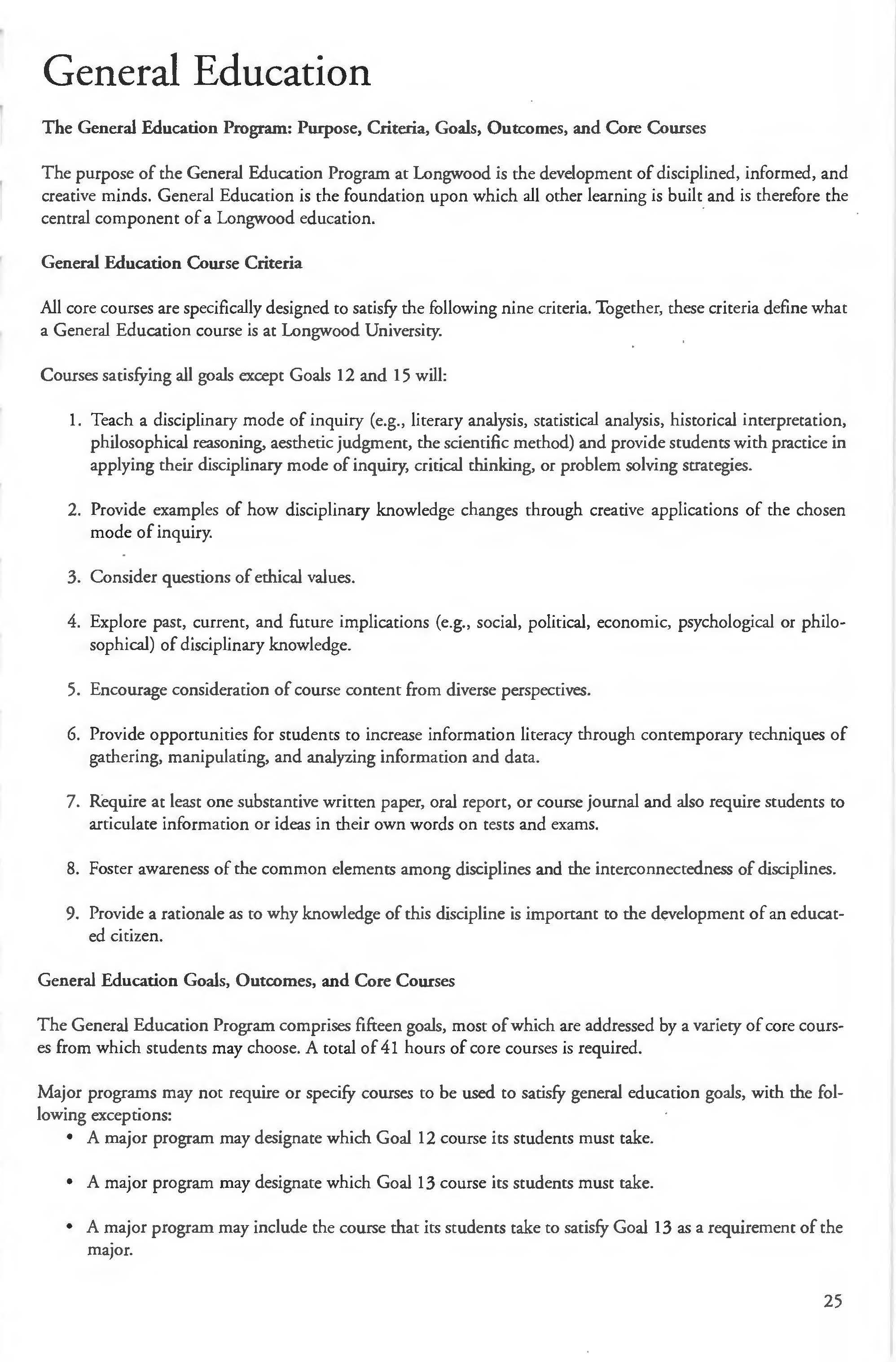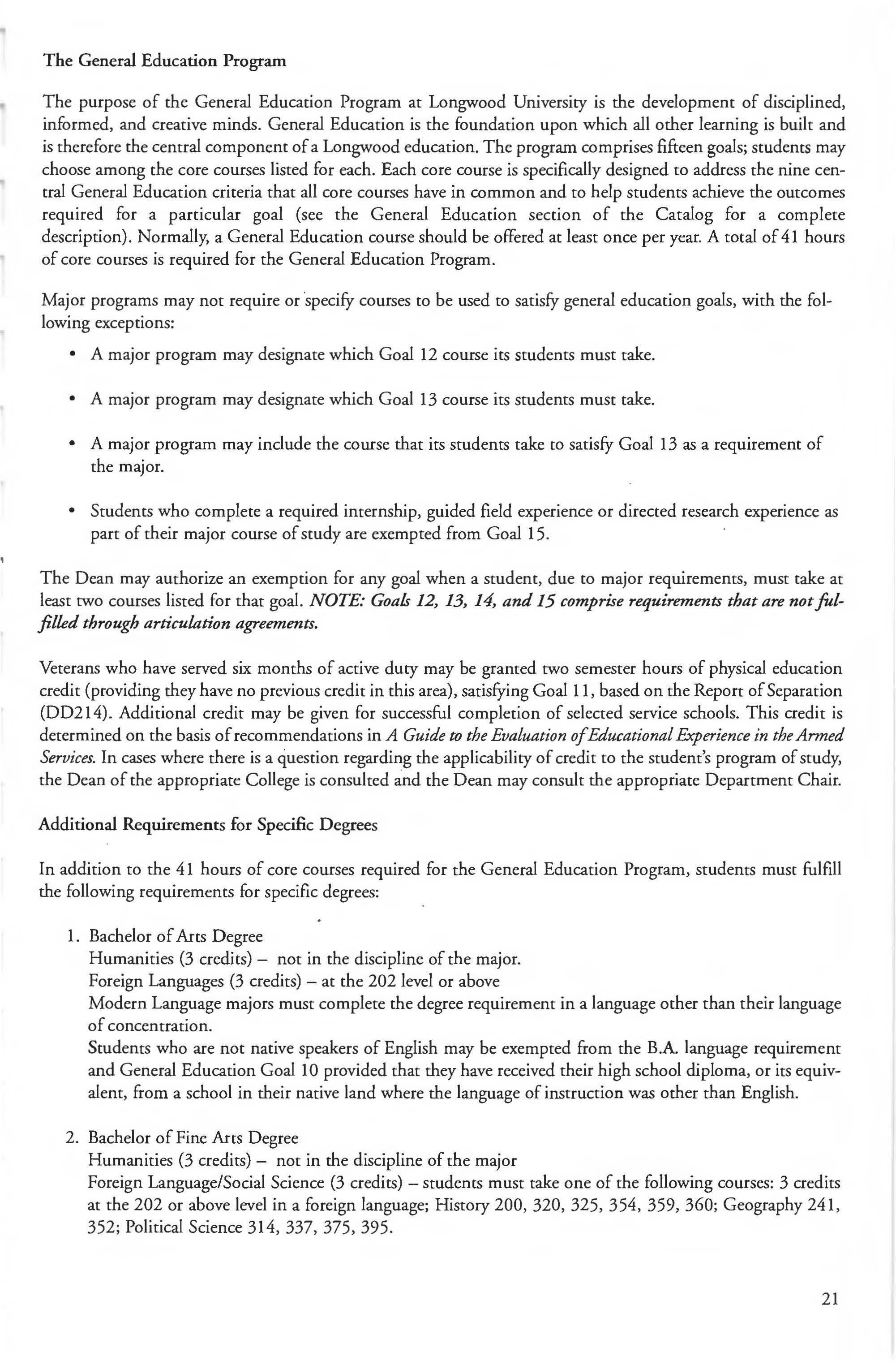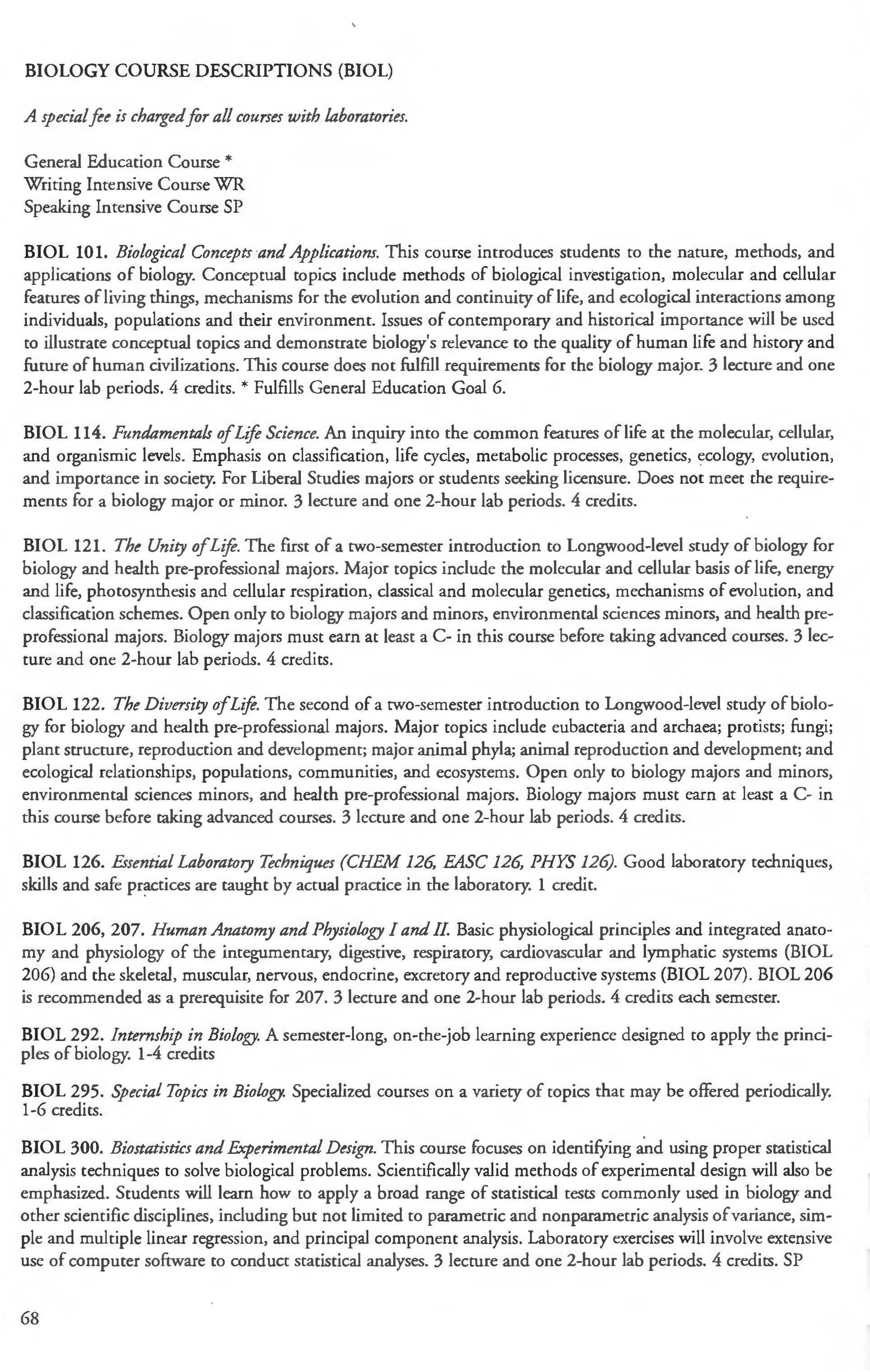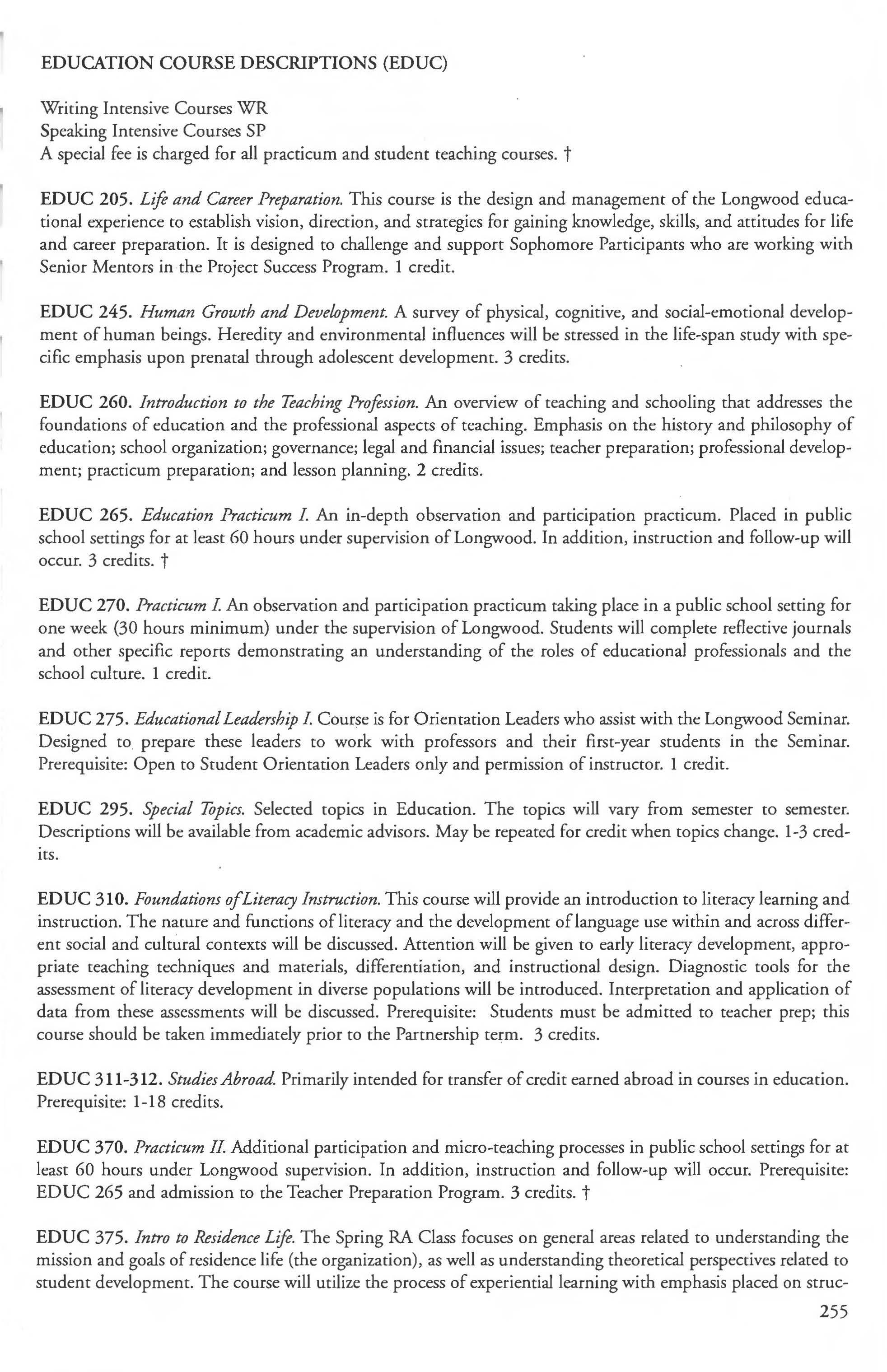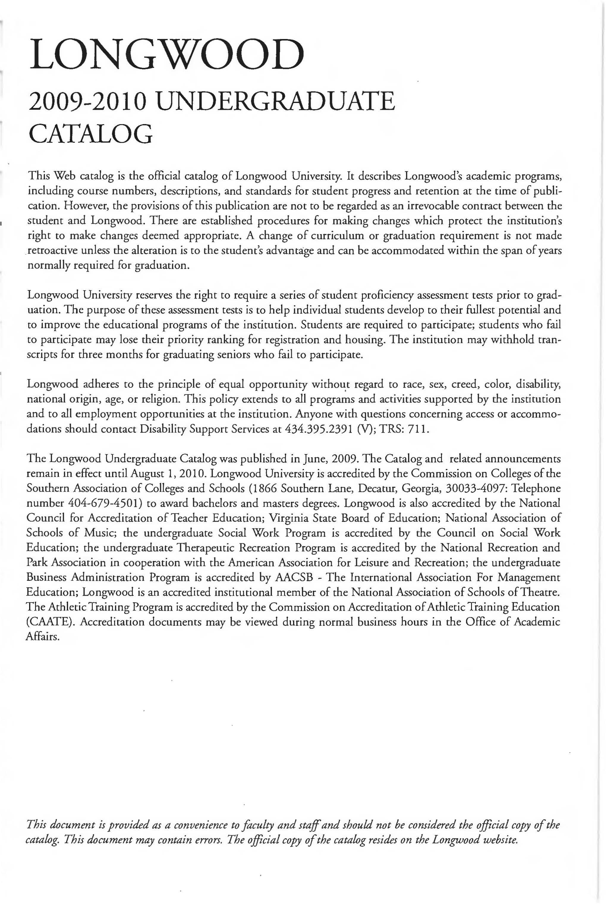 This document is provided as a convenience to faculty and staff and should not be considered the official copy of the catalog. This document may contain errors The official copy of the catalog resides on the Longwood website