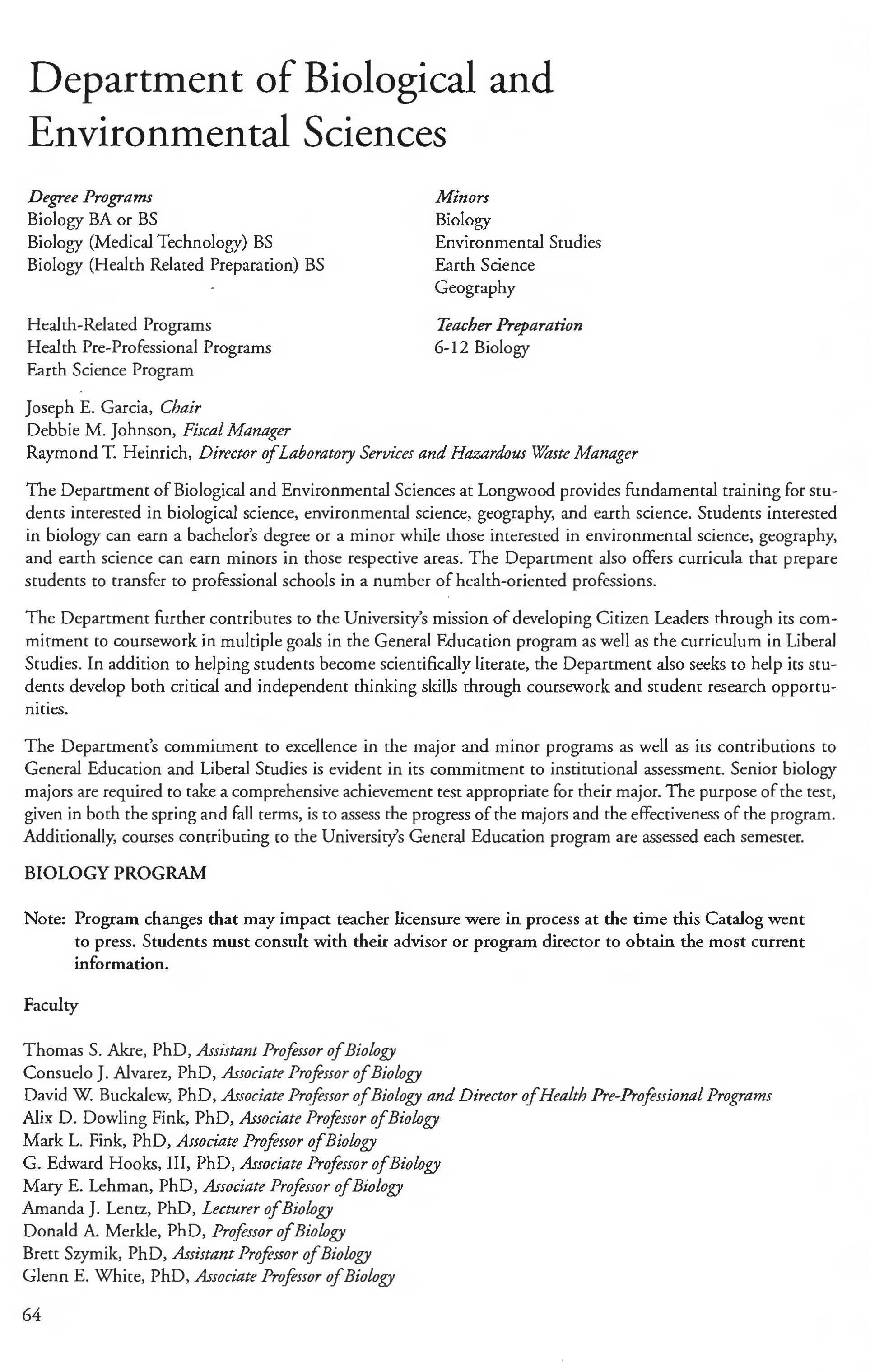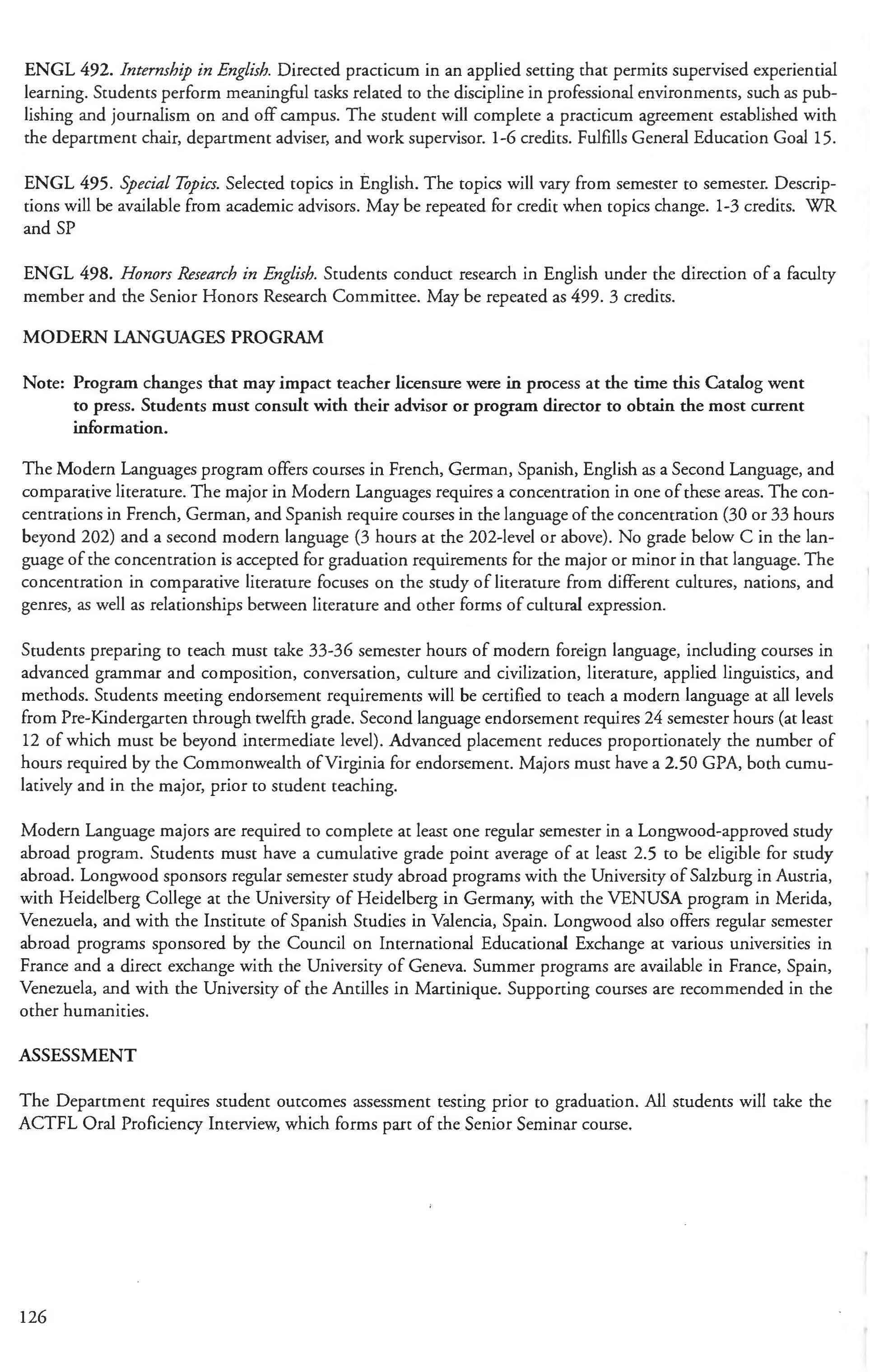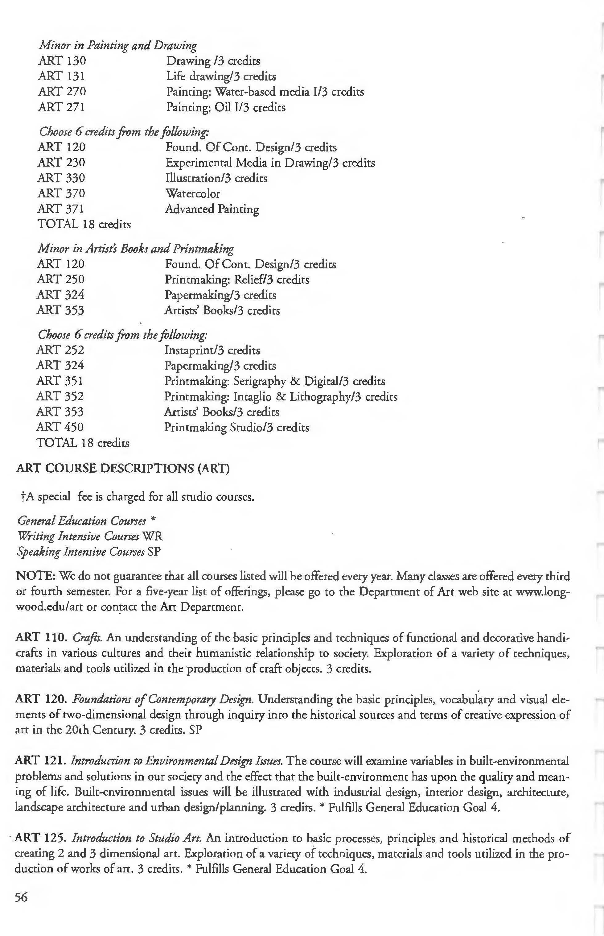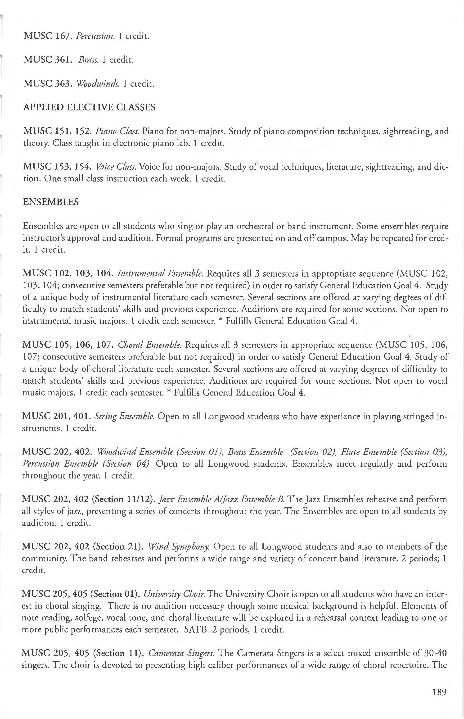 This document is provided as a convenience to faculty and staff and should not be considered the official copy of the catalog. This document may contain errors The official copy of the catalog resides on the Longwood website
