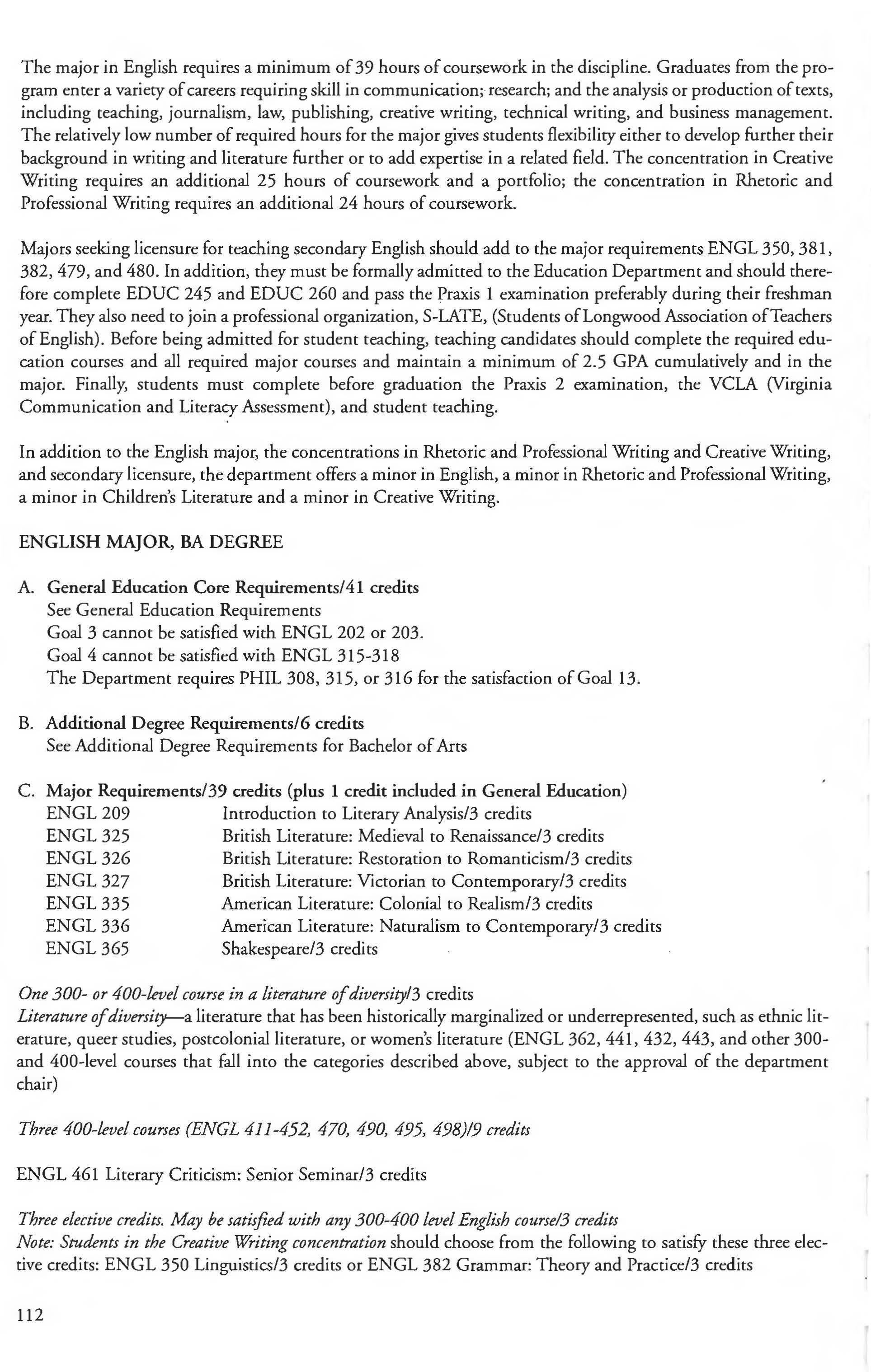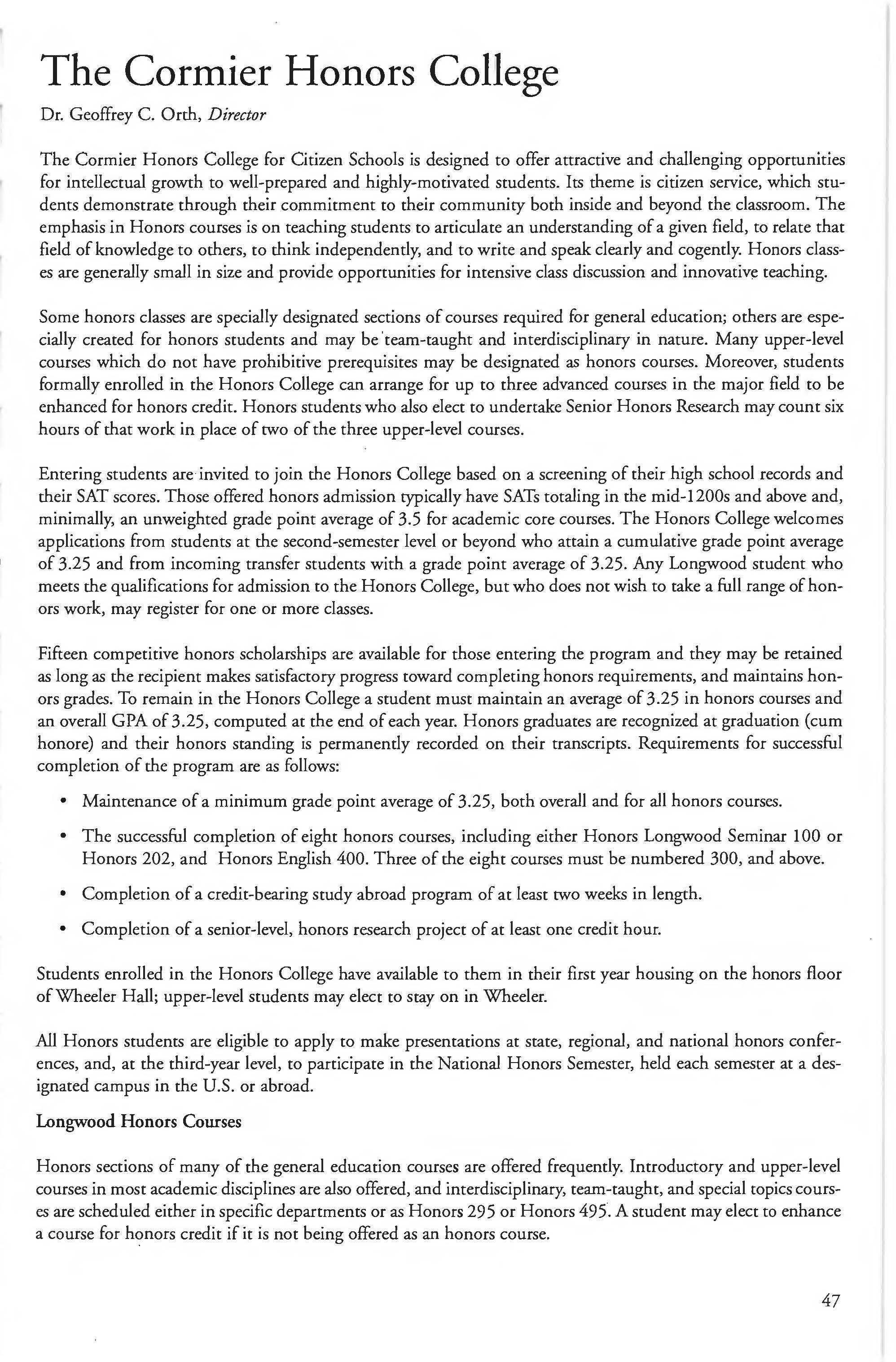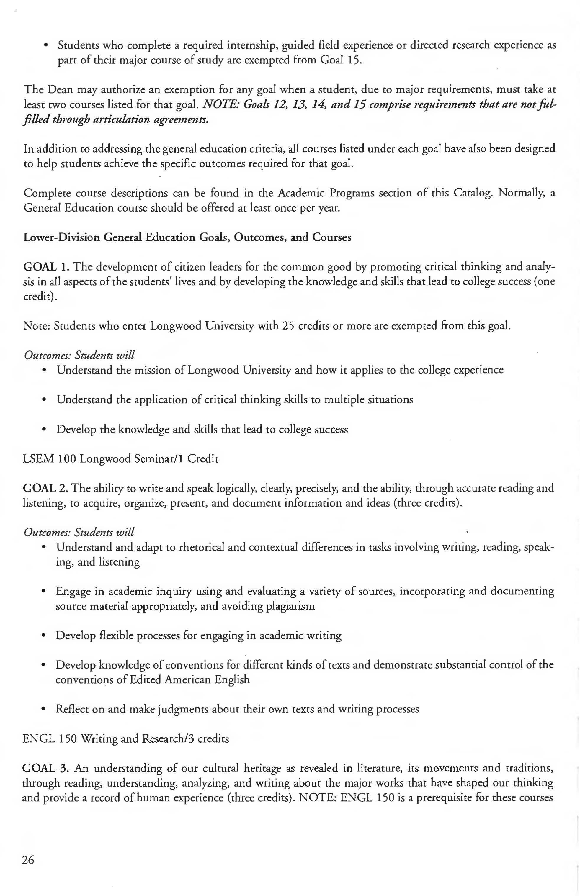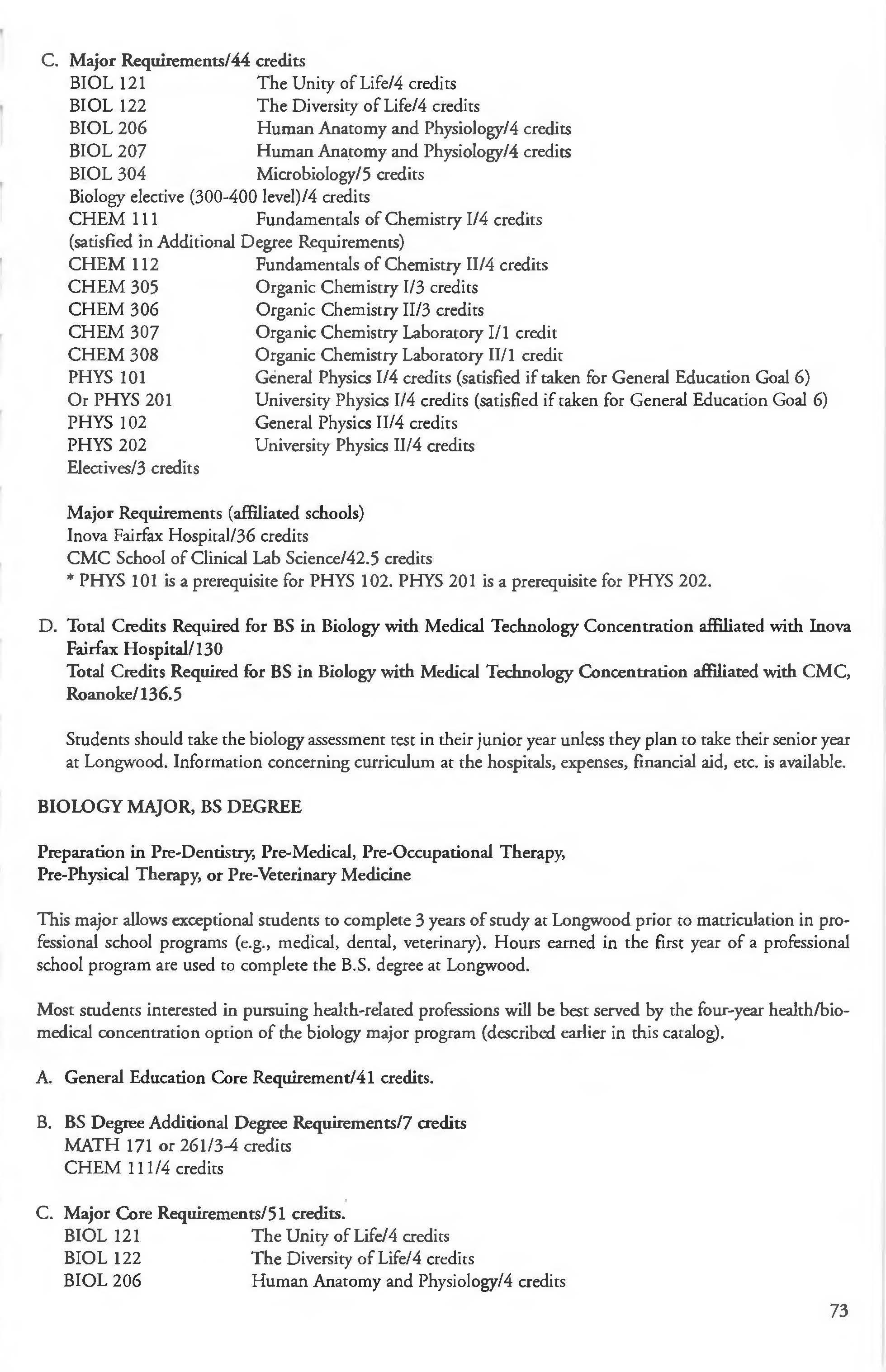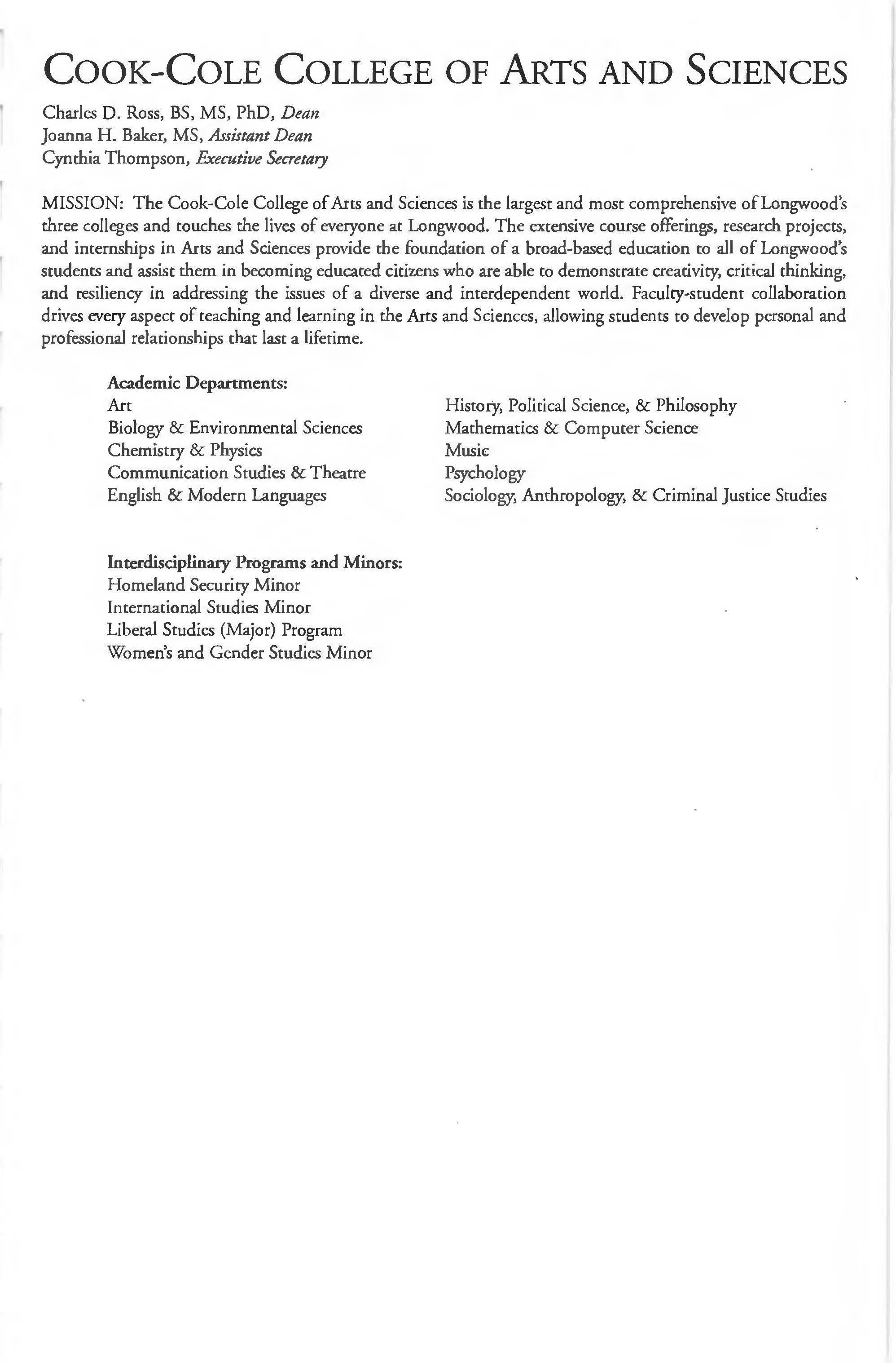 This document is provided as a convenience to faculty and staff and should not be considered the official copy of the catalog. This document may contain errors The official copy of the catalog resides on the Longwood website