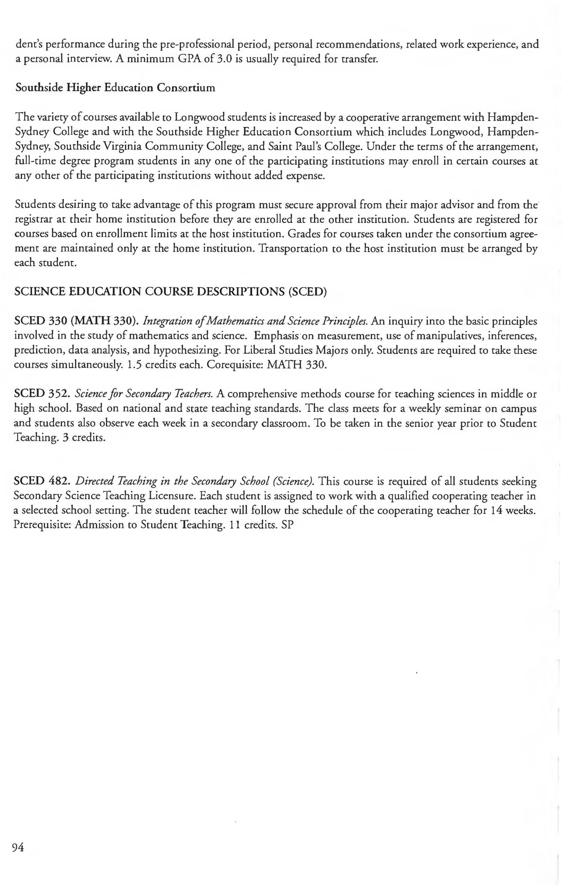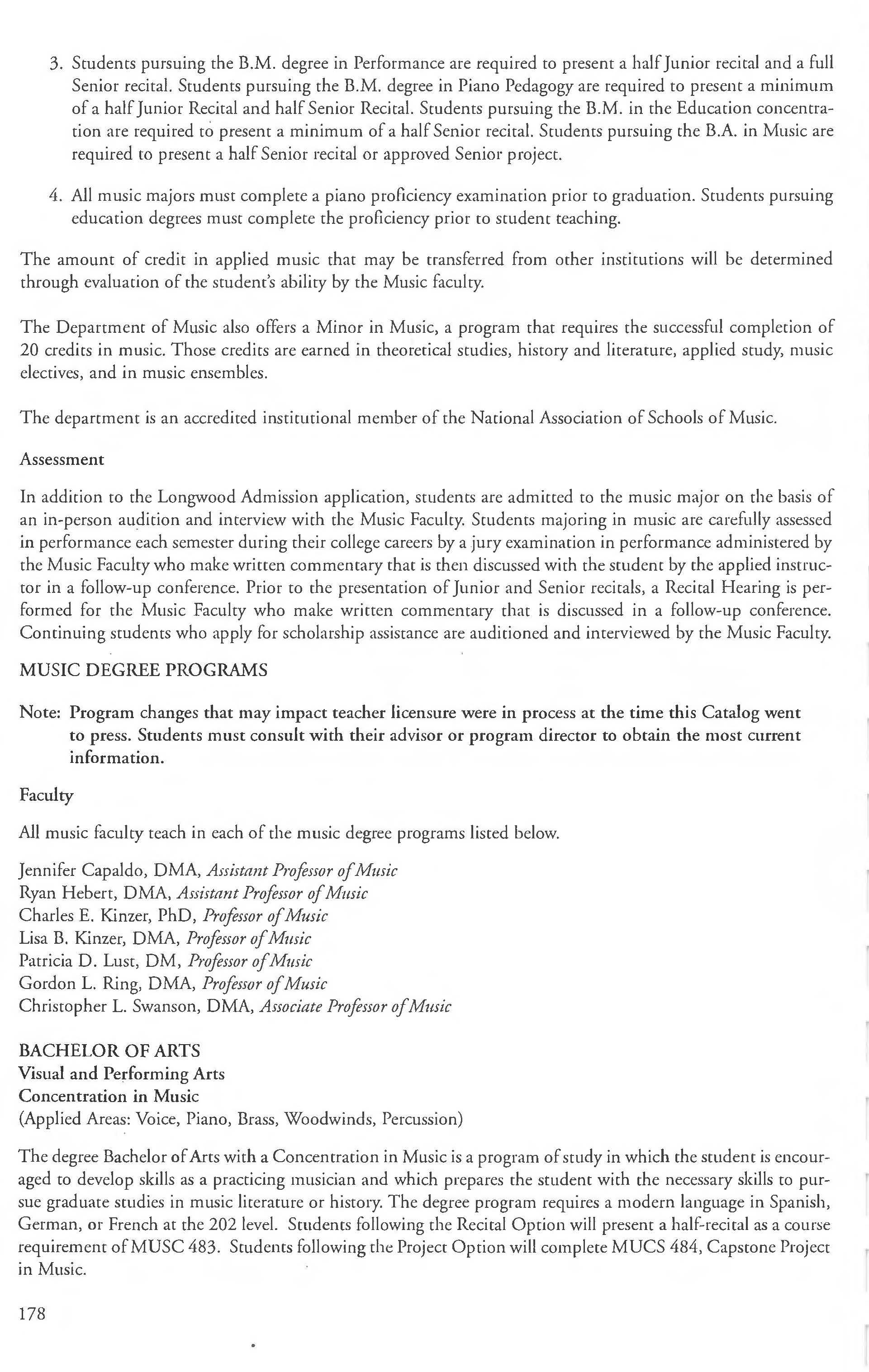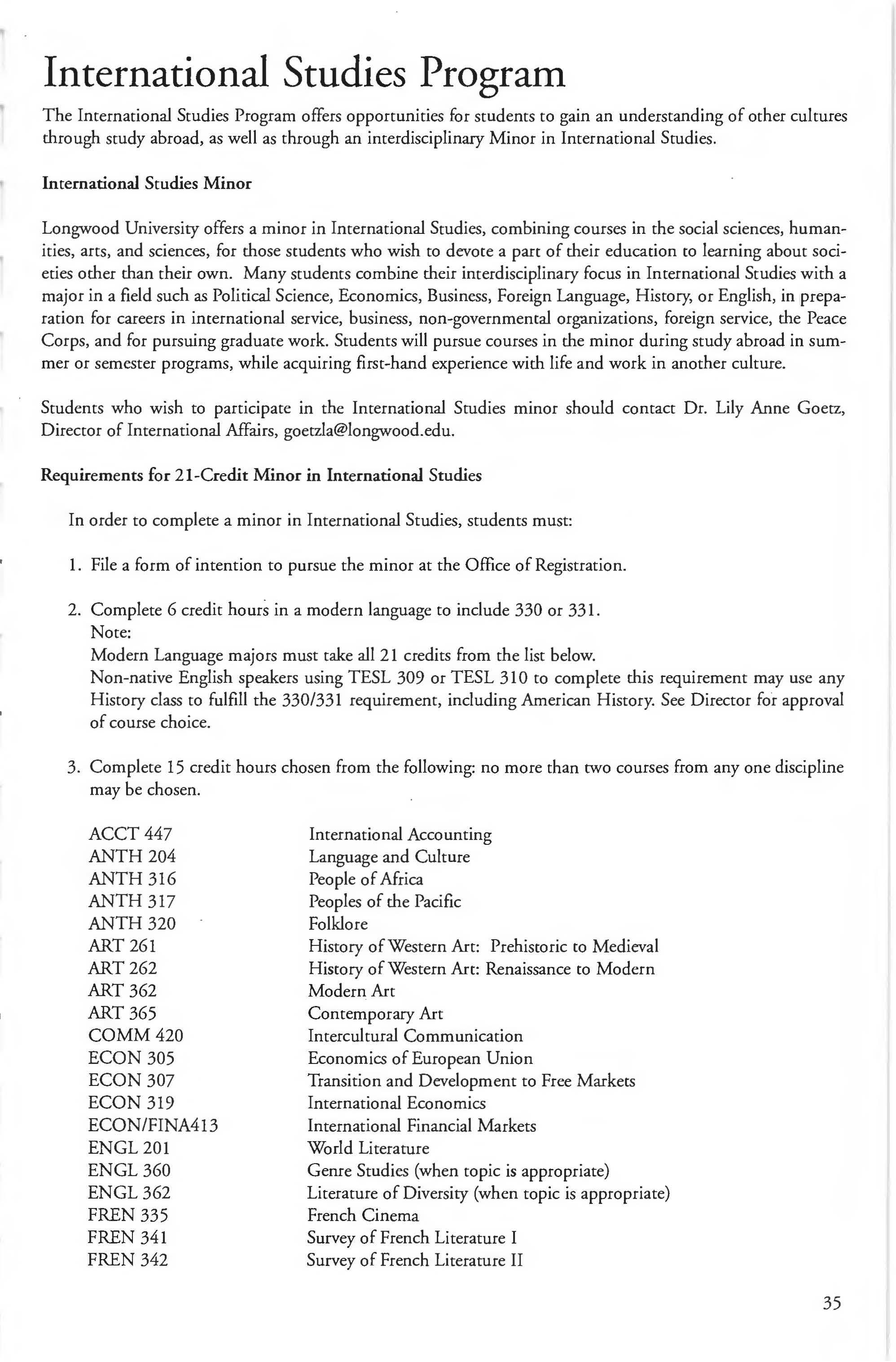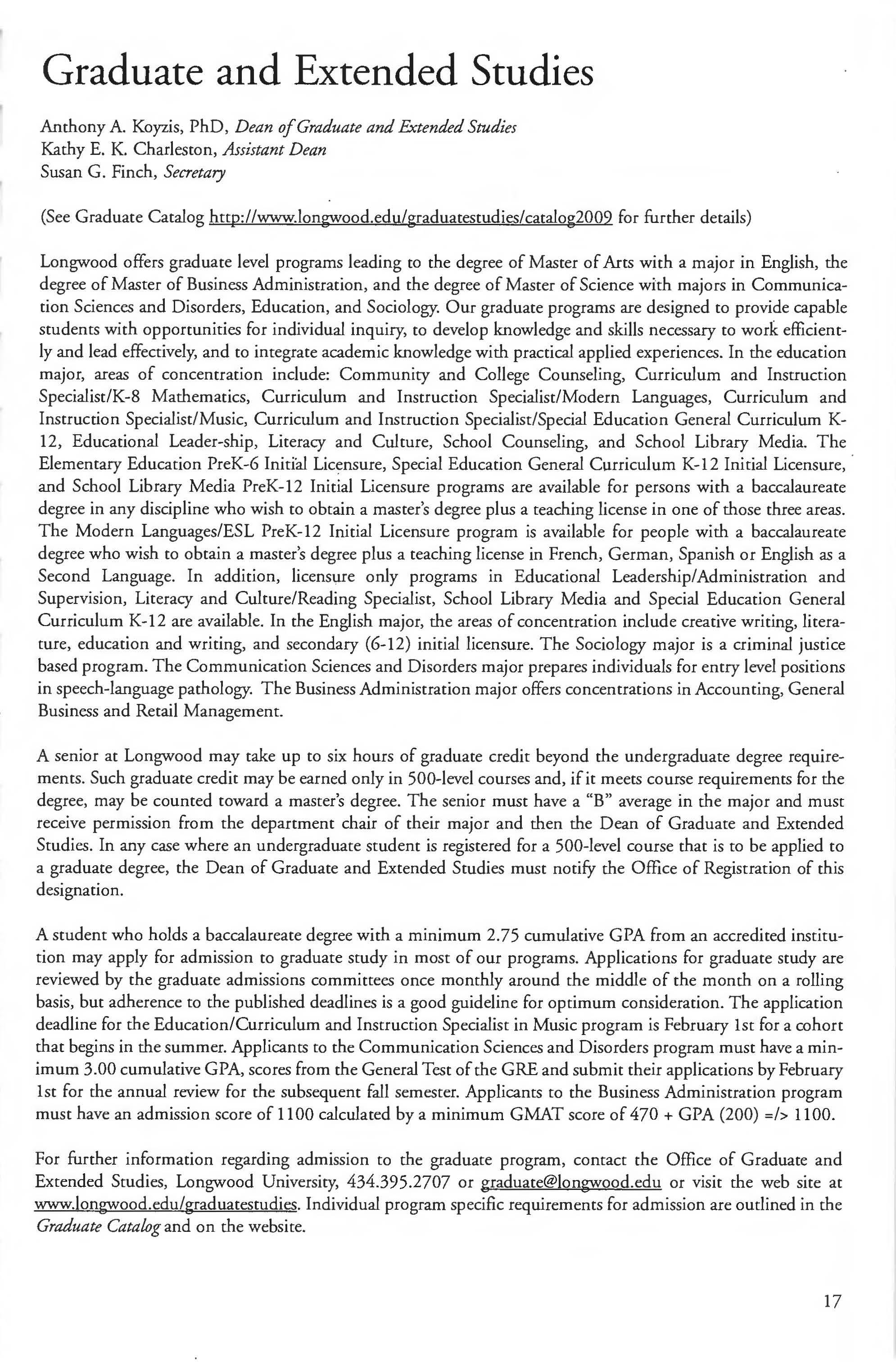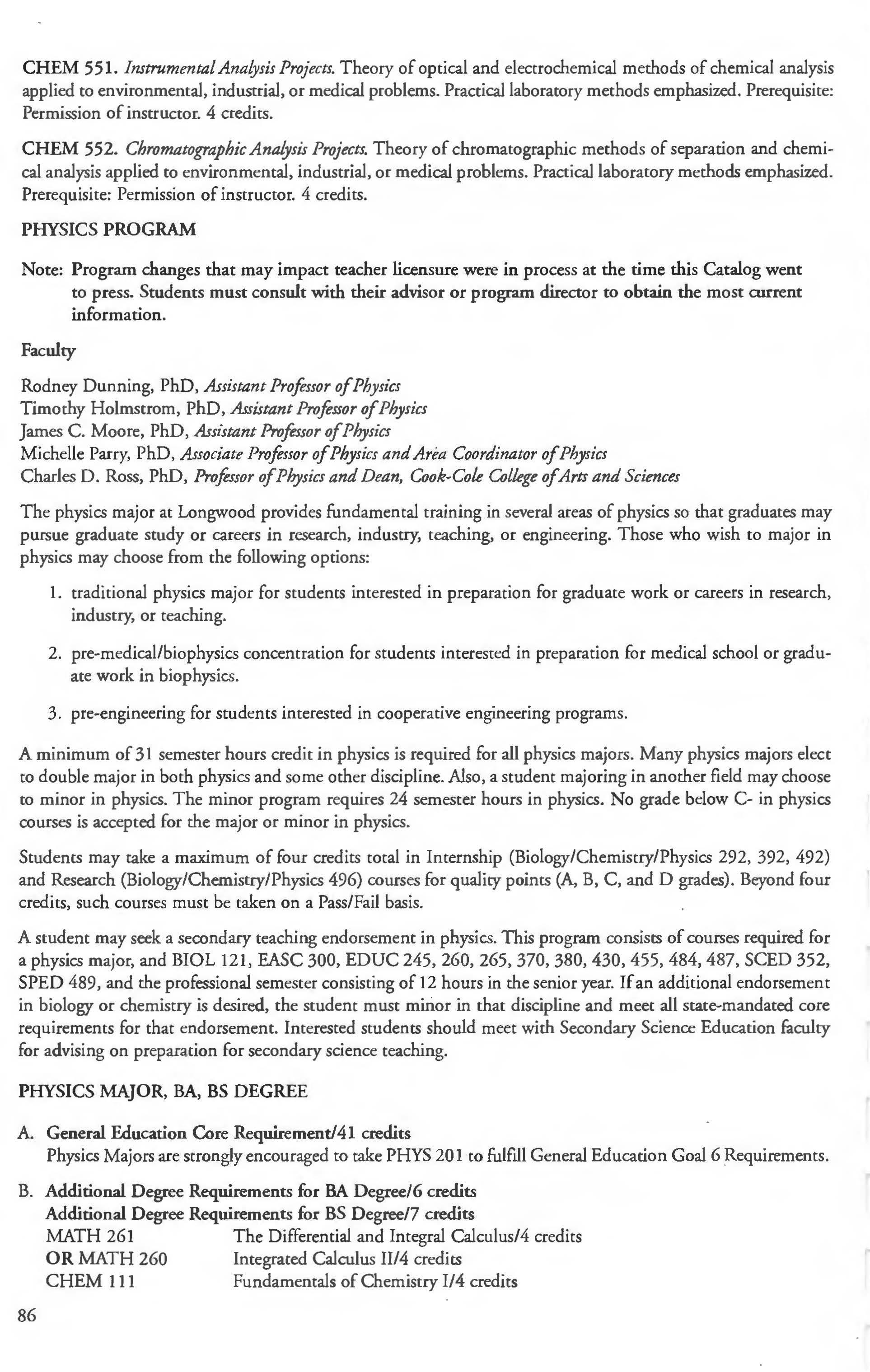This document is provided as a convenience to faculty and staff and should not be considered the official copy of the catalog. This document may contain errors The official copy of the catalog resides on the Longwood website