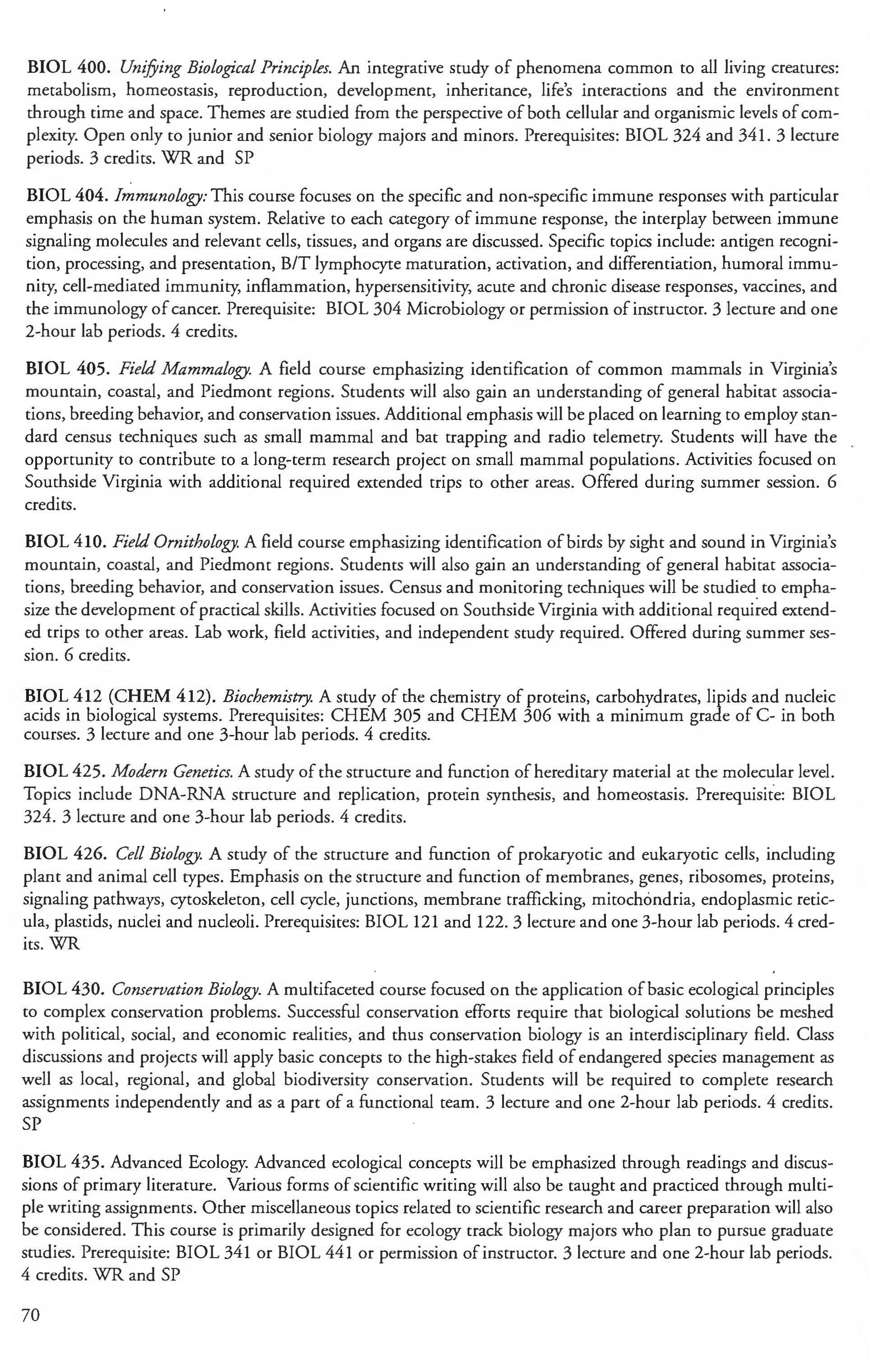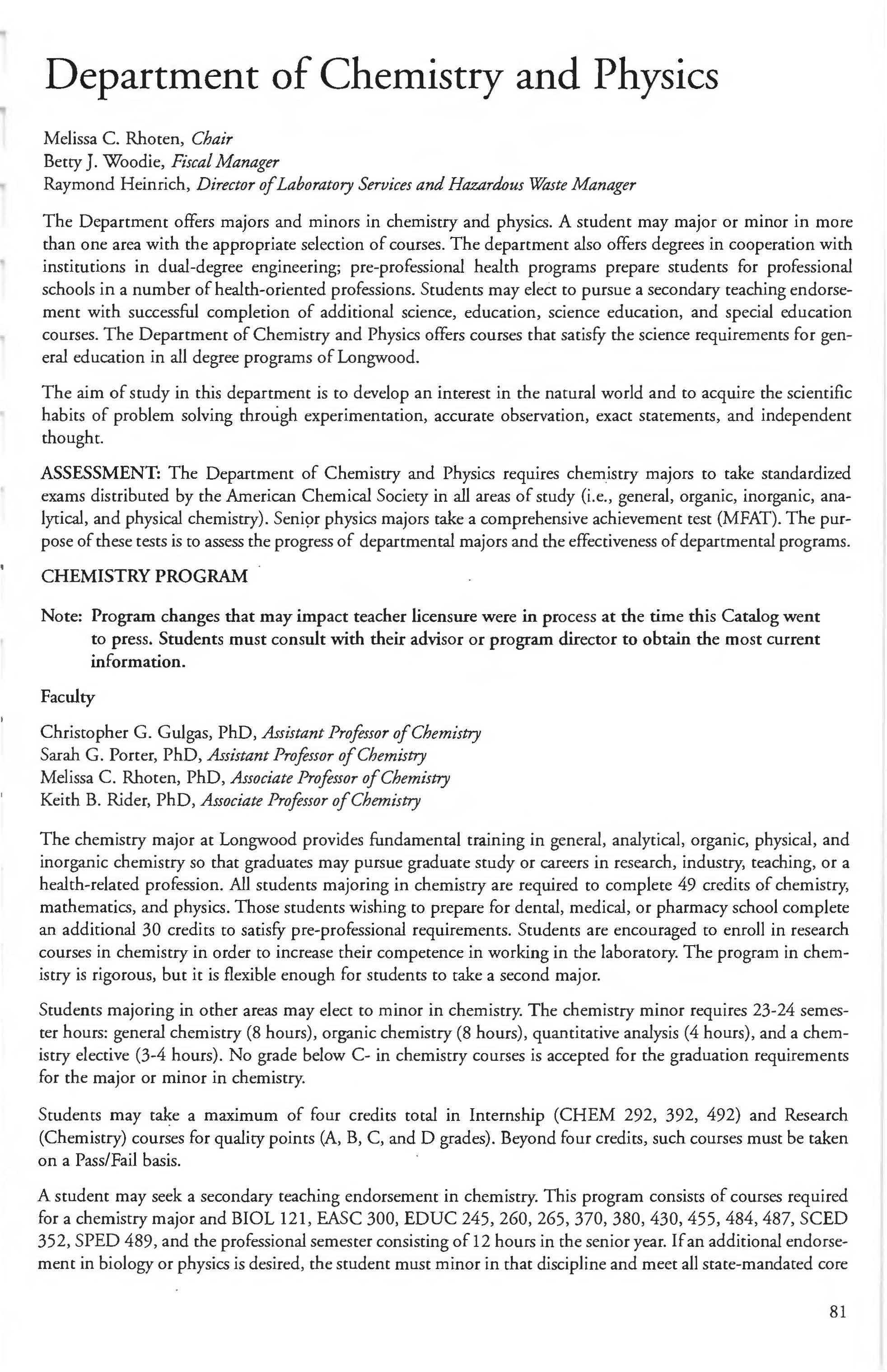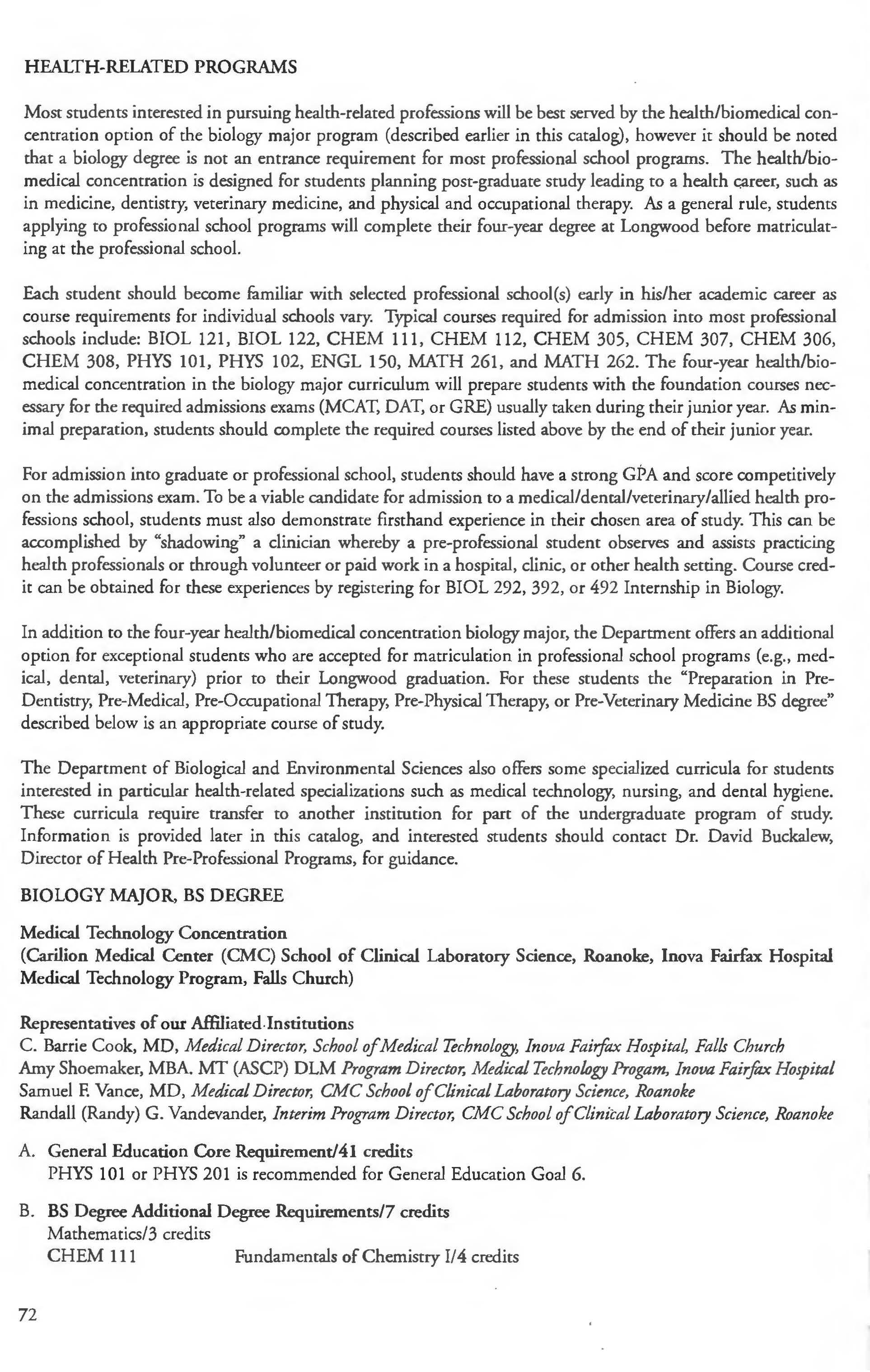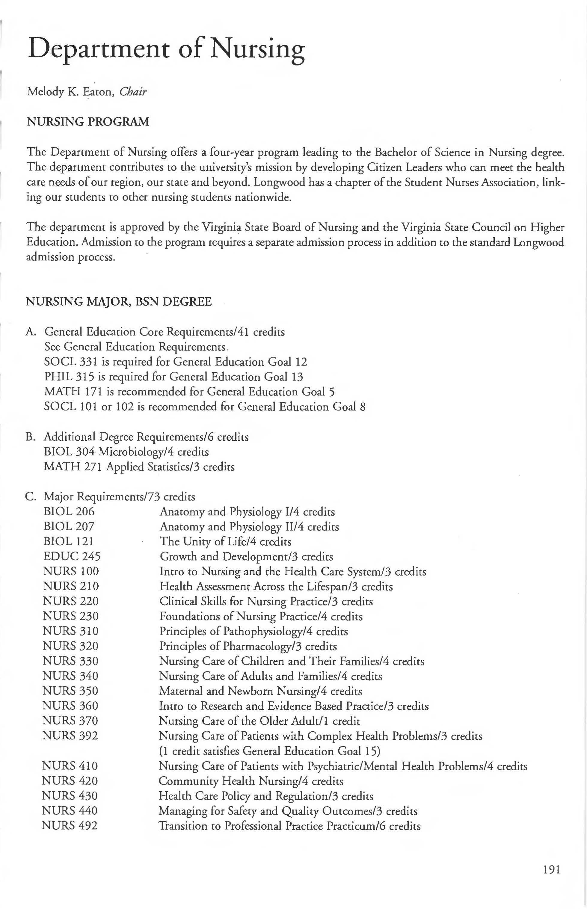 This document is provided as a convenience to faculty and staff and should not be considered the official copy of the catalog. This document may contain errors The official copy of the catalog resides on the Longwood website