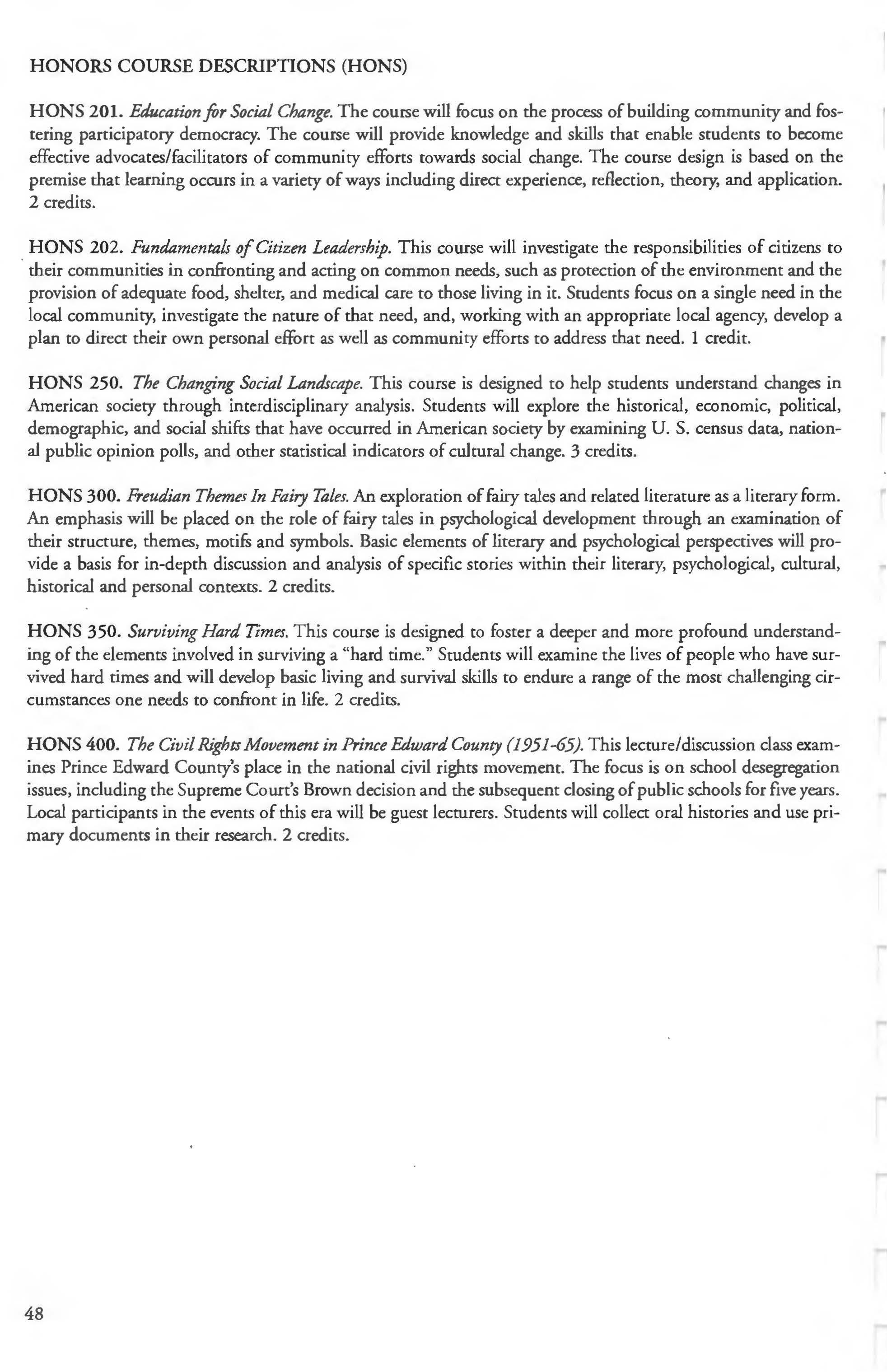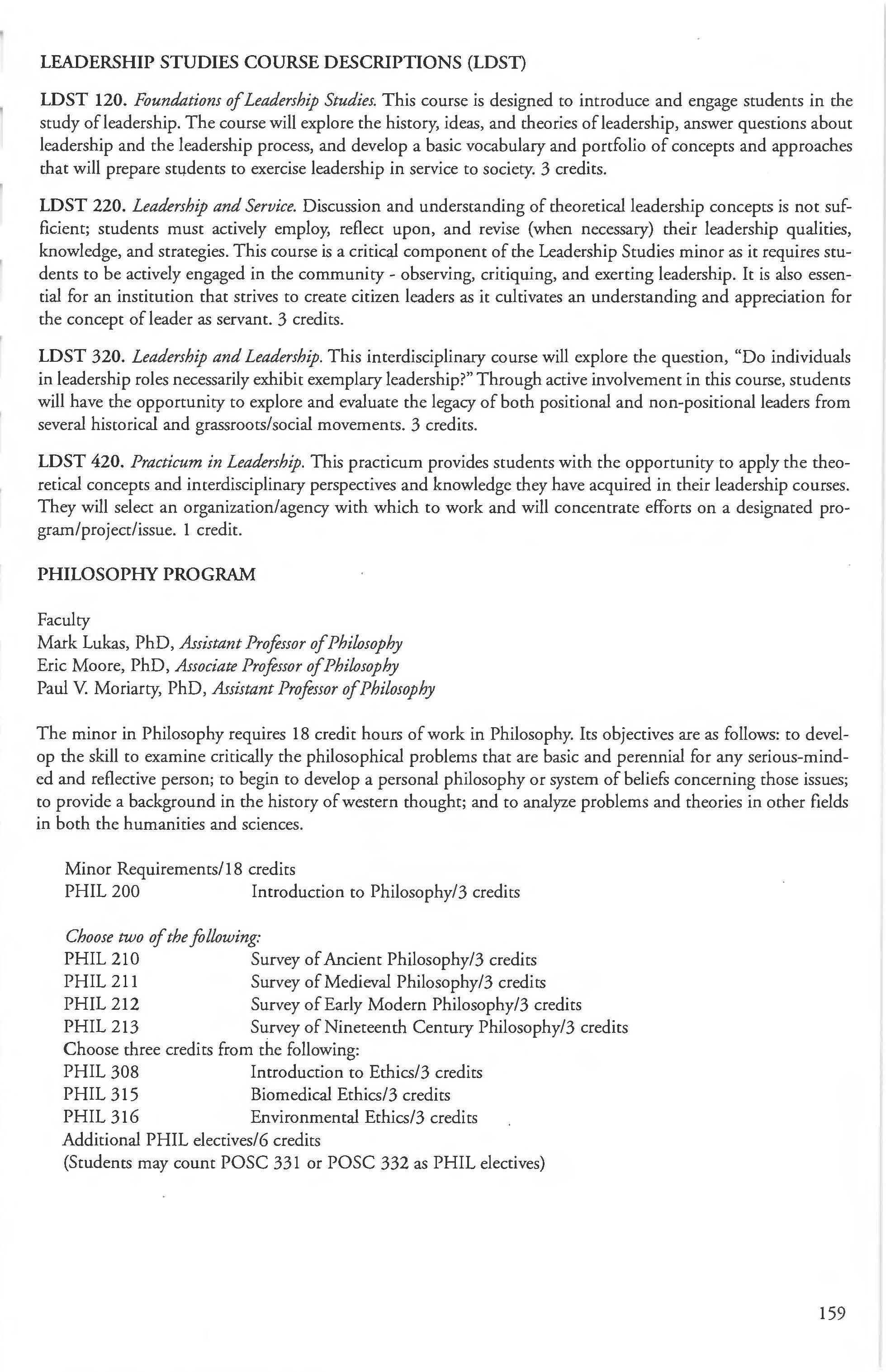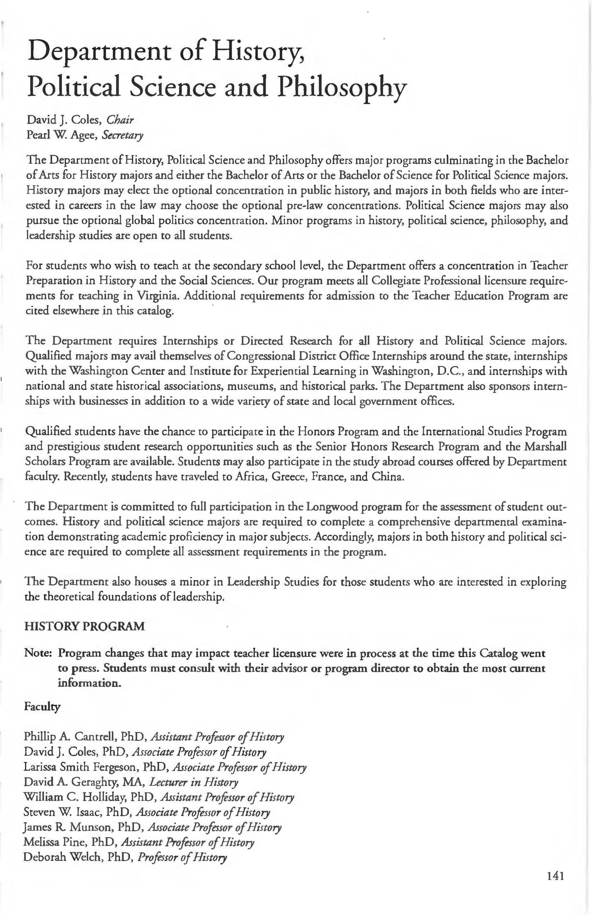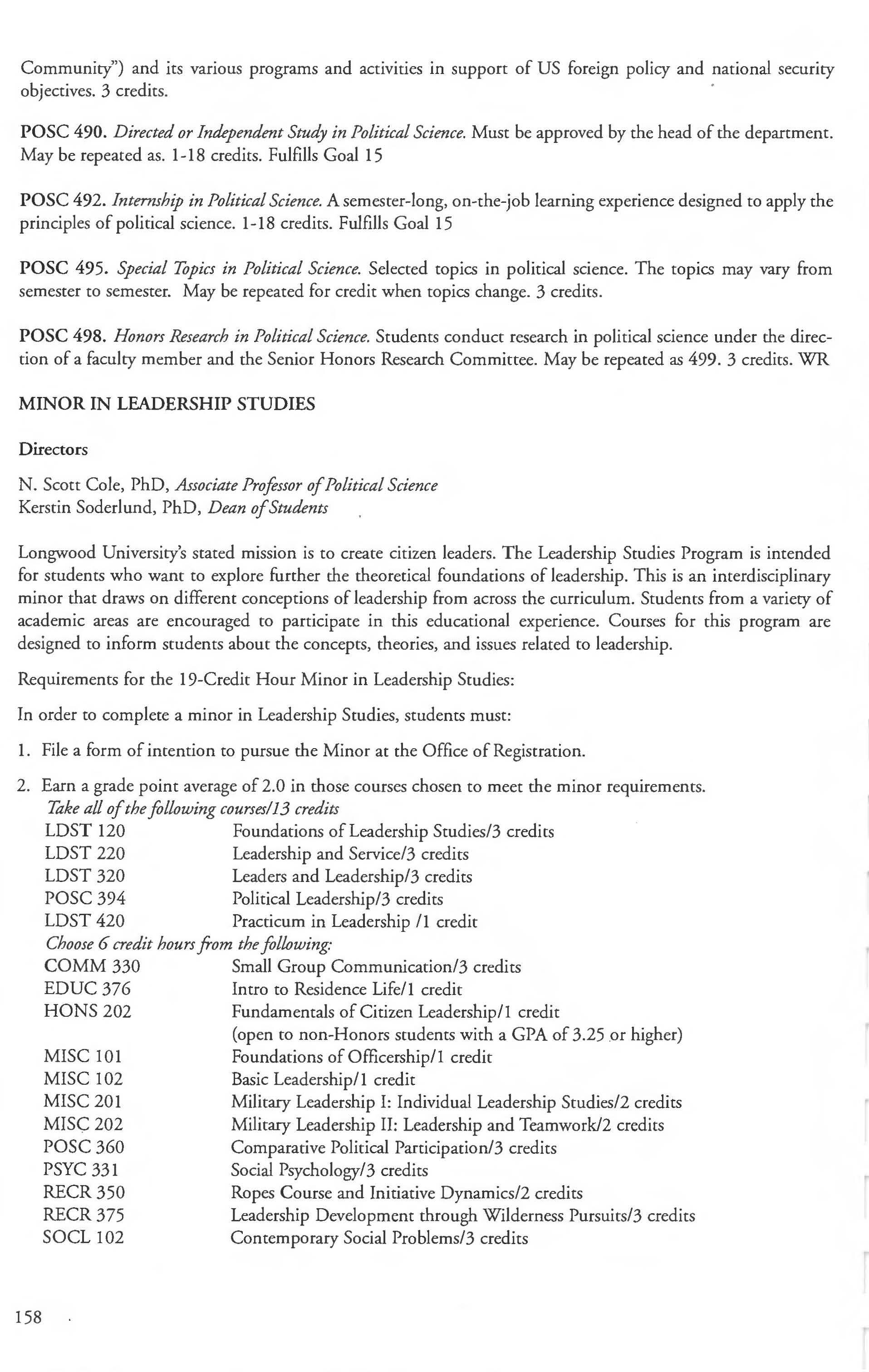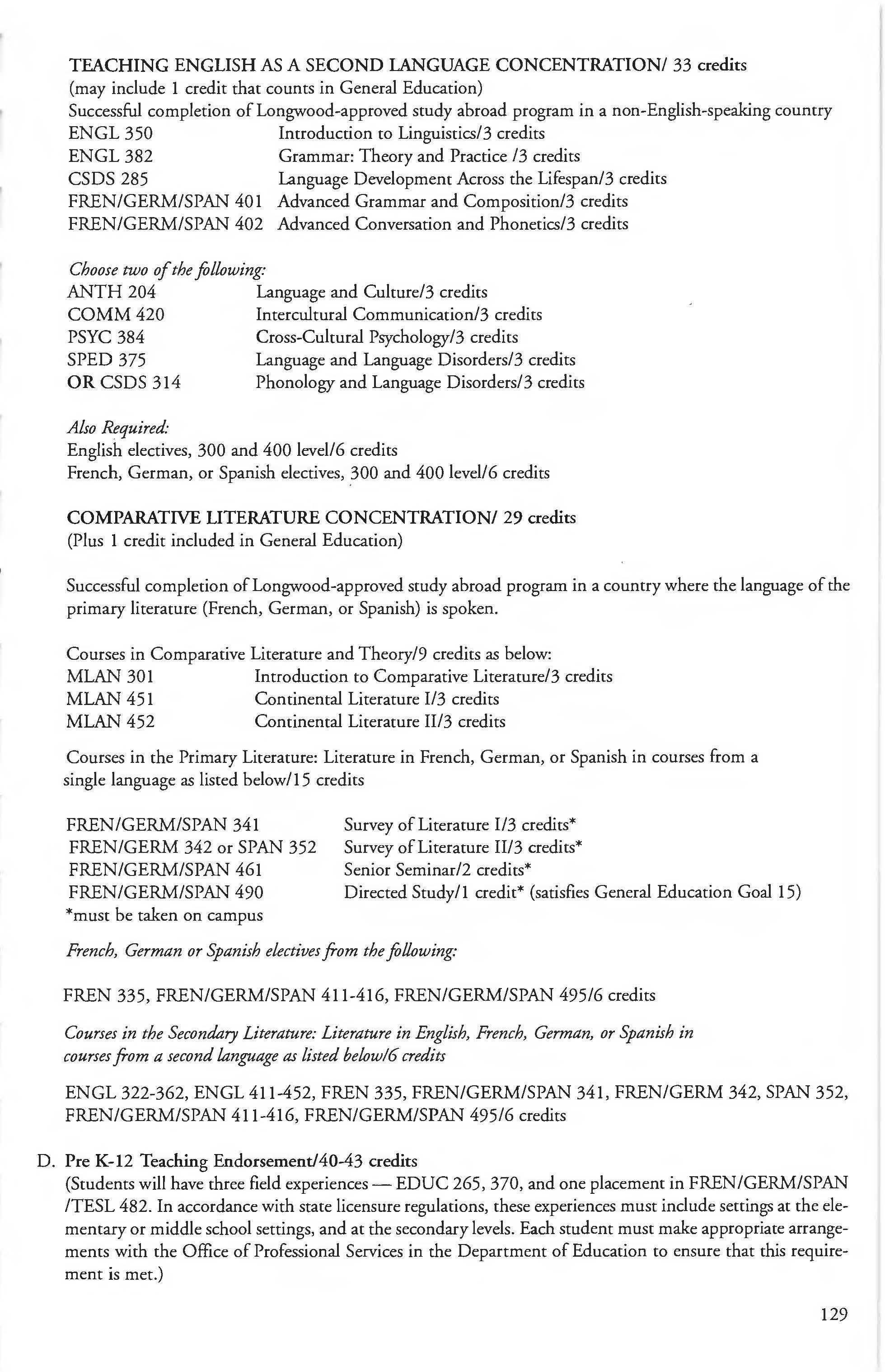 This document is provided as a convenience to faculty and staff and should not be considered the official copy of the catalog. This document may contain errors The official copy of the catalog resides on the Longwood website