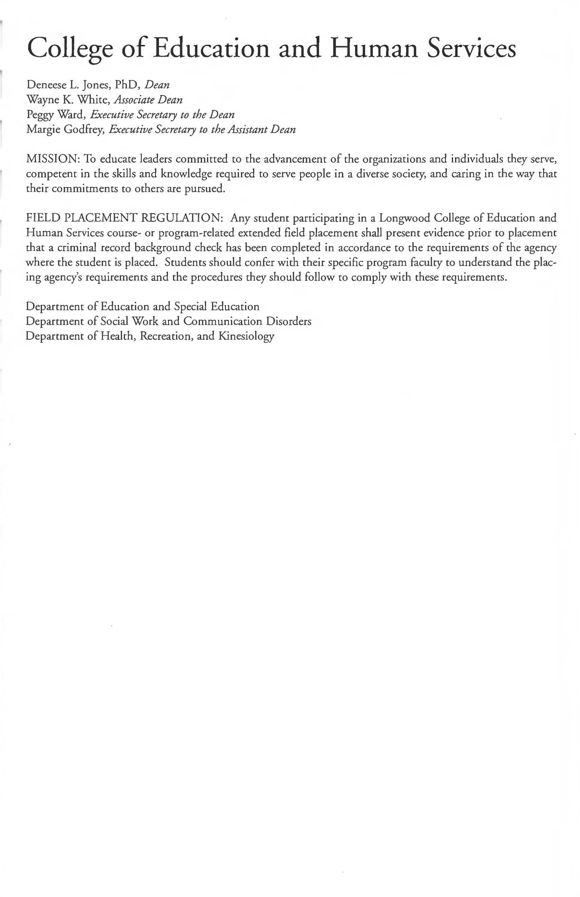 College of Education and Human Services Departments