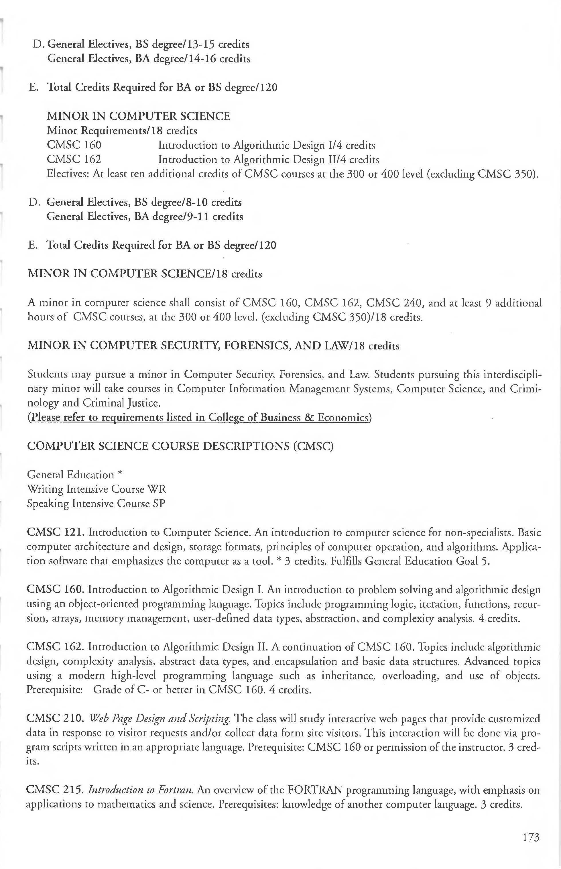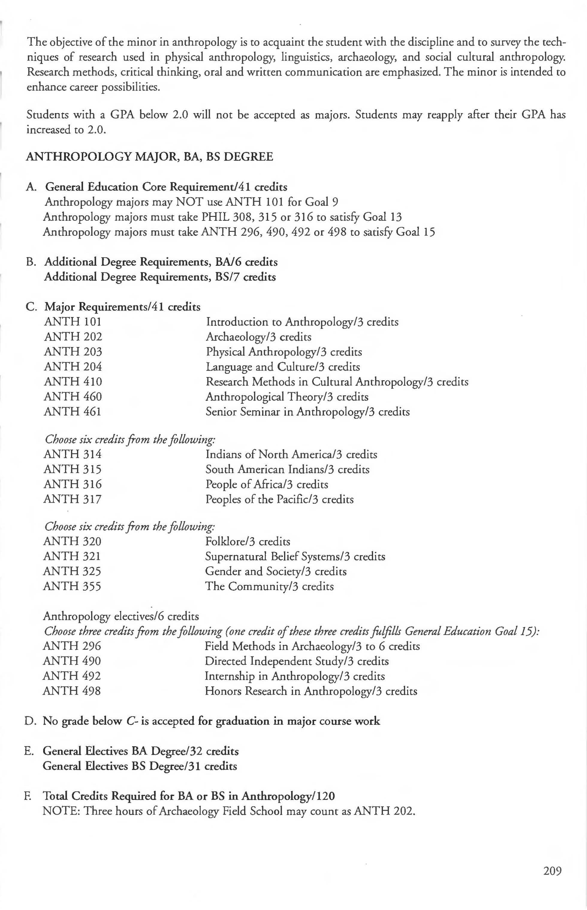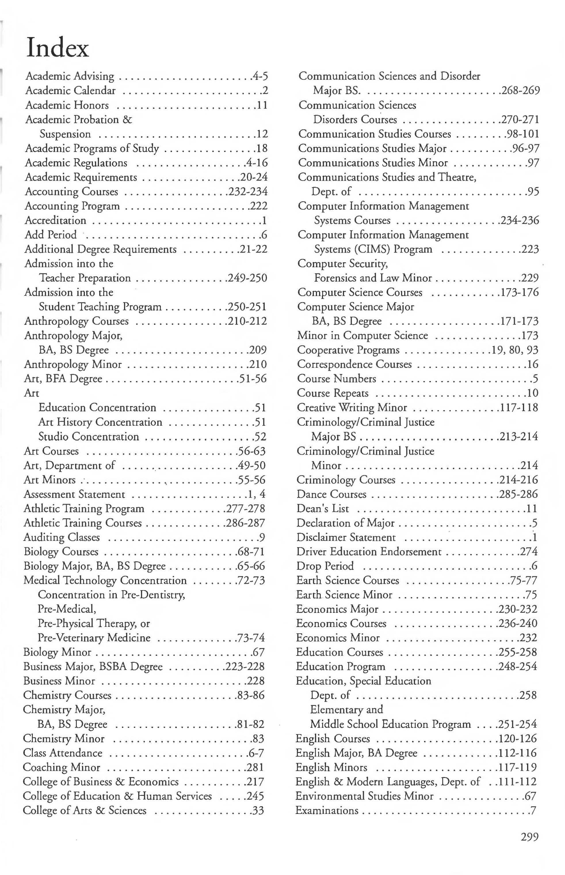 Admission into the Computer Science Courses ............ 173-176 Student Teaching Program ........ .. .250-251 Computer Science Major Anthropology Courses 210-212 BA, BS Degree 171-173