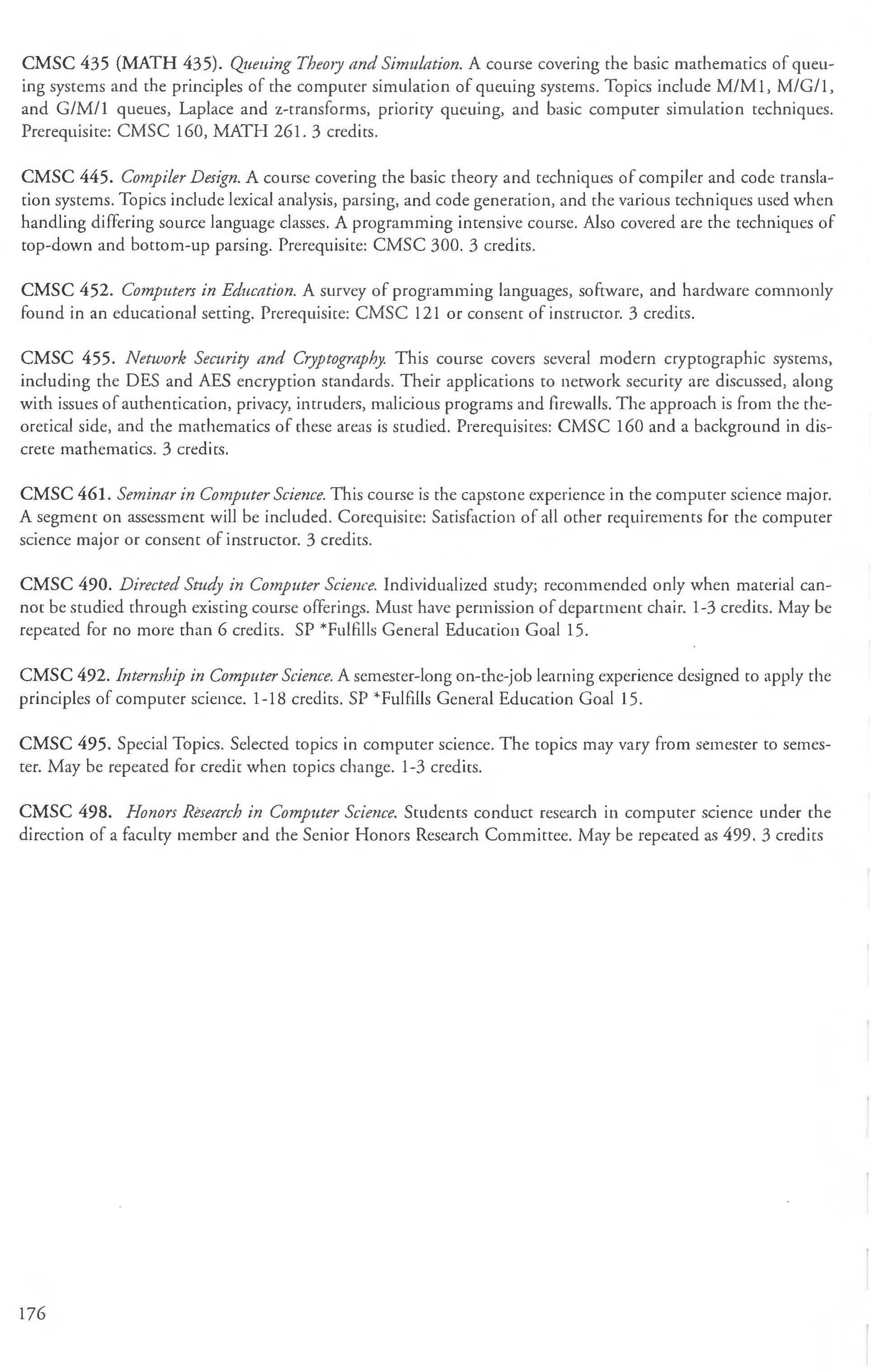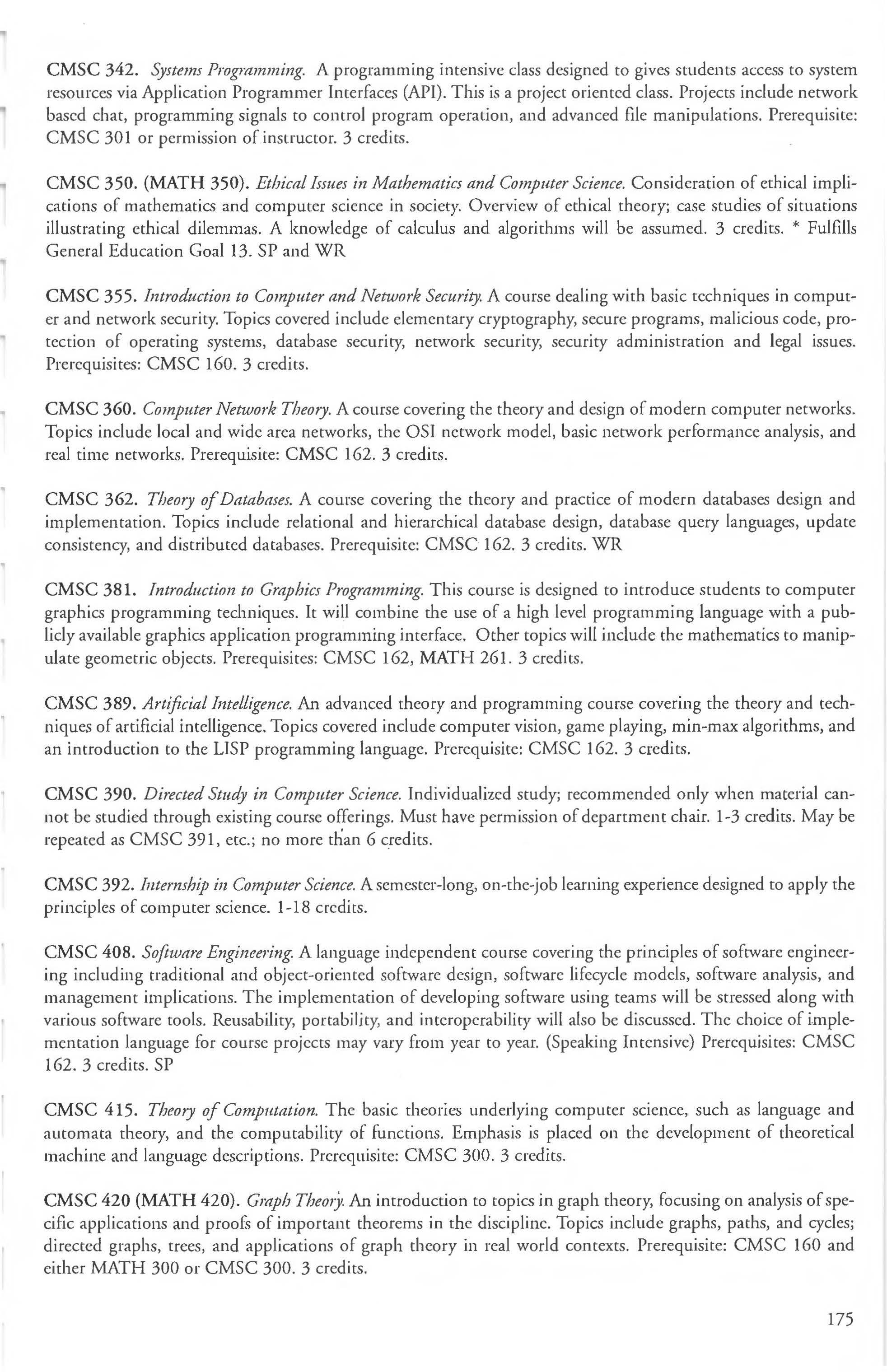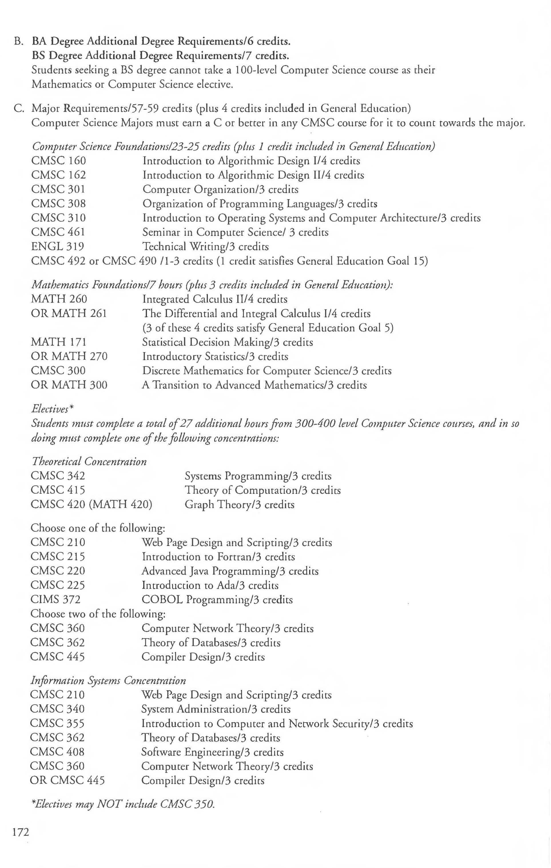 Admission into the Computer Science Courses ............ 173-176 Student Teaching Program ........ .. .250-251 Computer Science Major Anthropology Courses 210-212 BA, BS Degree 171-173