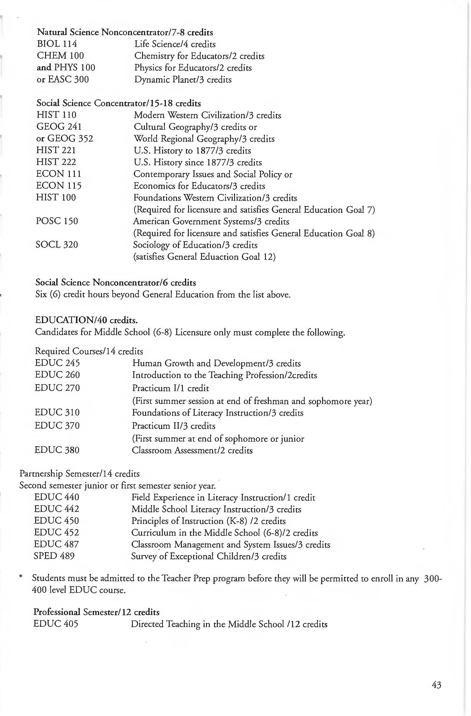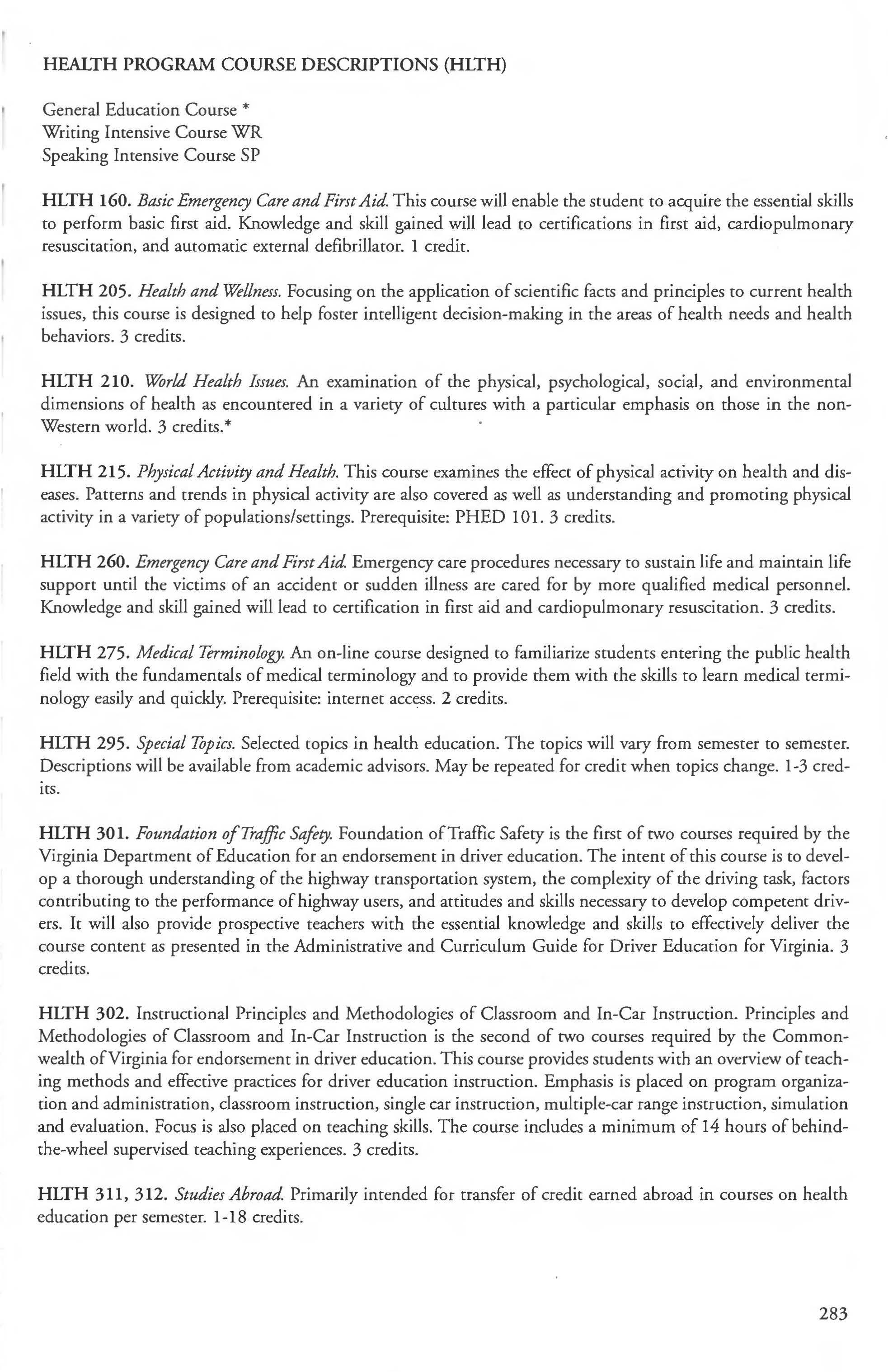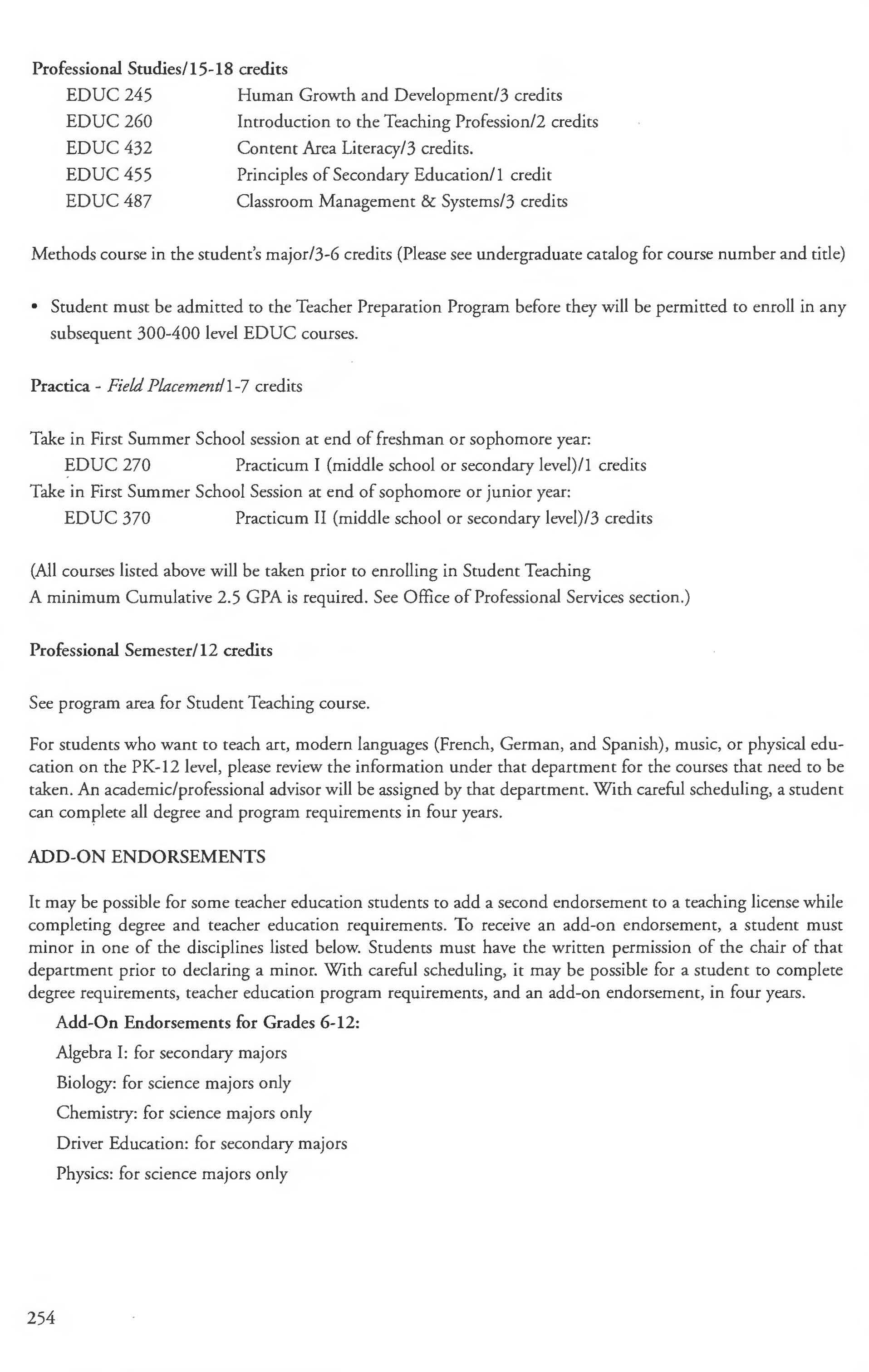 Biology Courses 68-71 Driver Education Endorsement 274