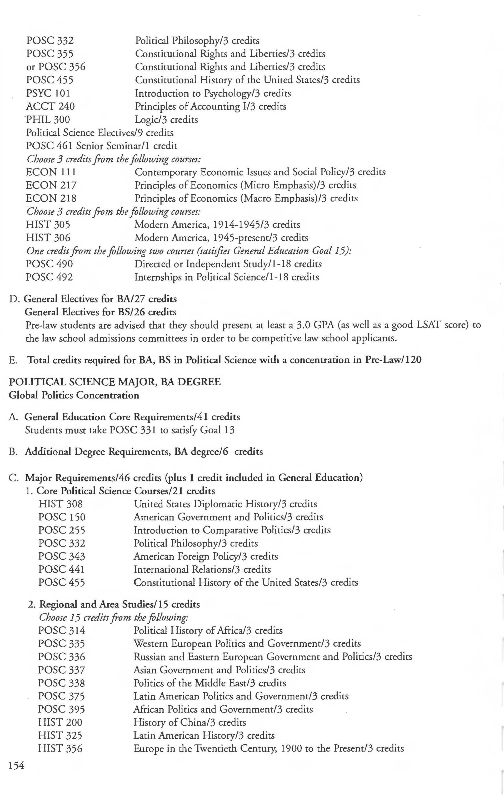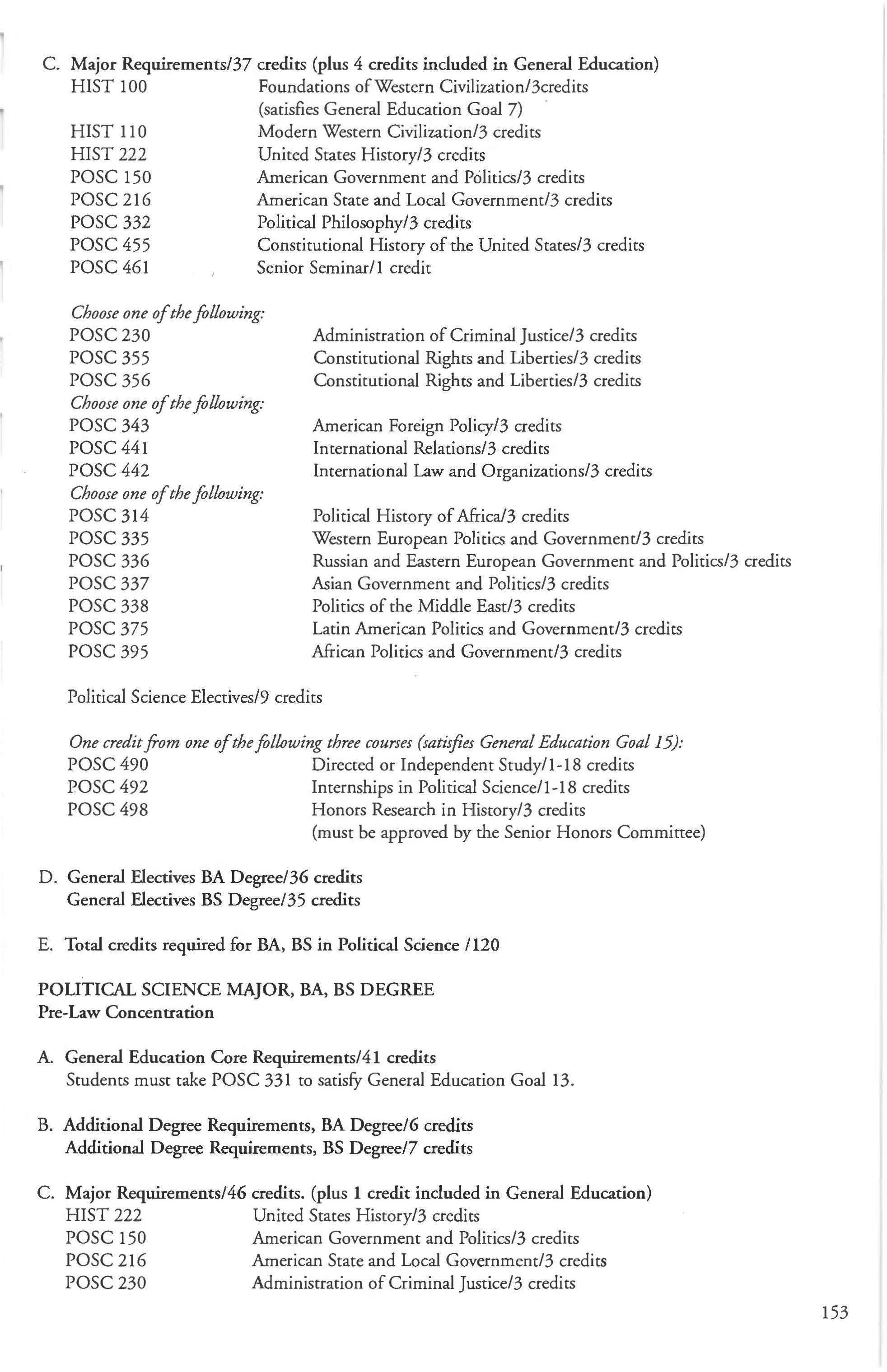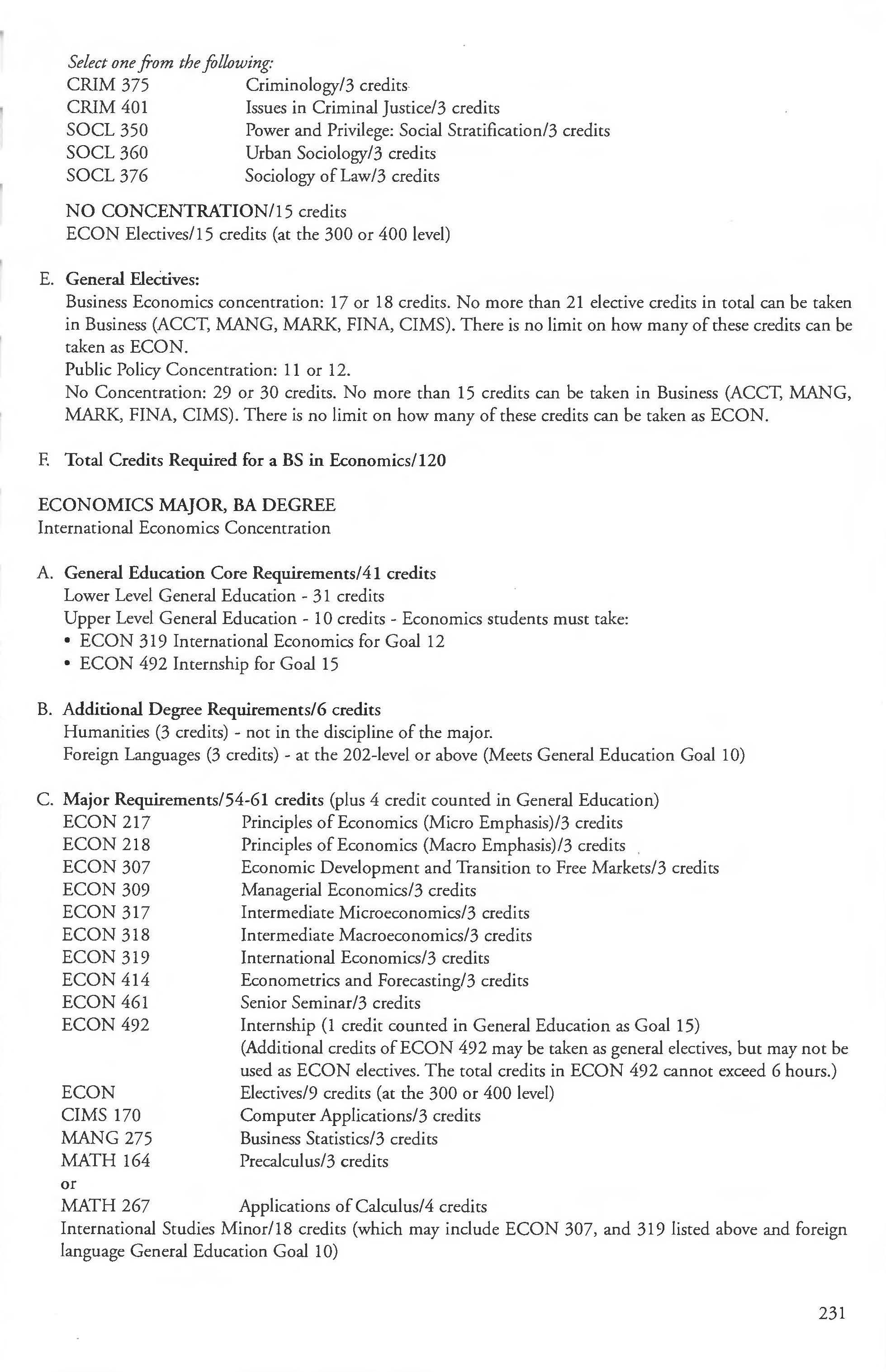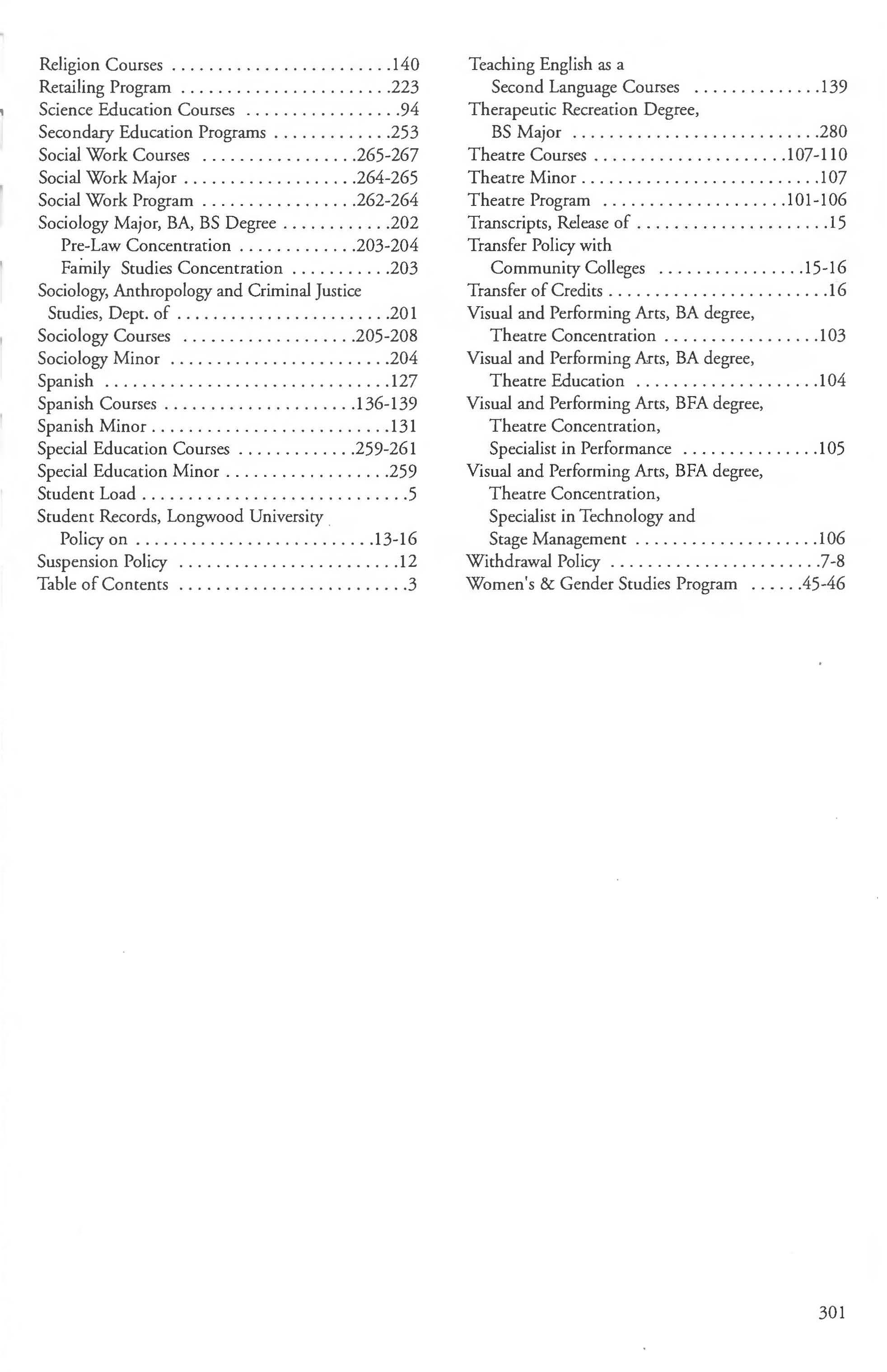 Sociology Major, BA, BS Degree .... ... . .. .. 202 Pre-Law Concentration 203-204 Family Studies Concentration ........... 203