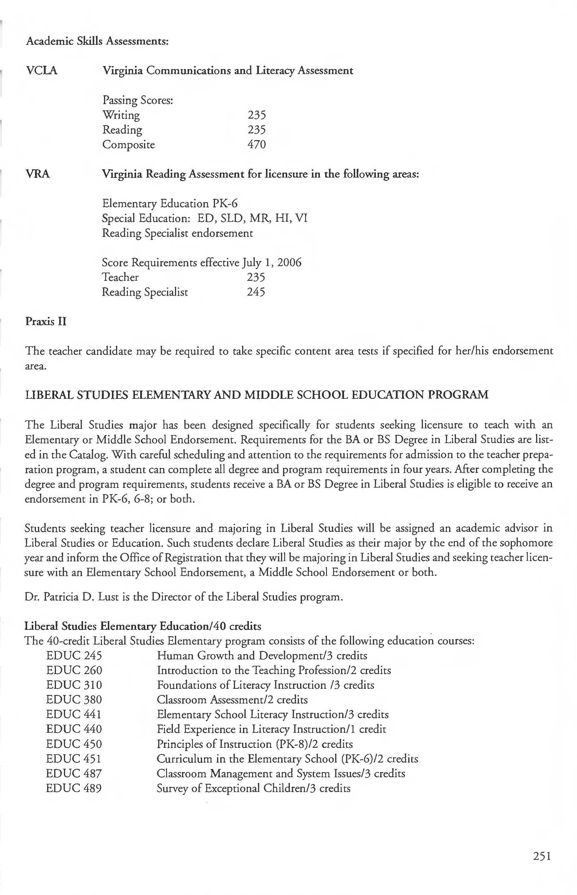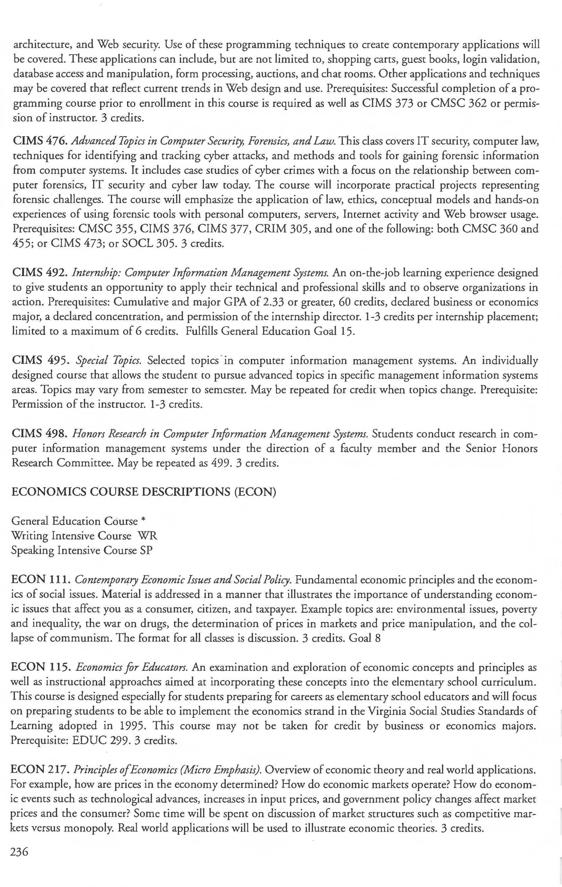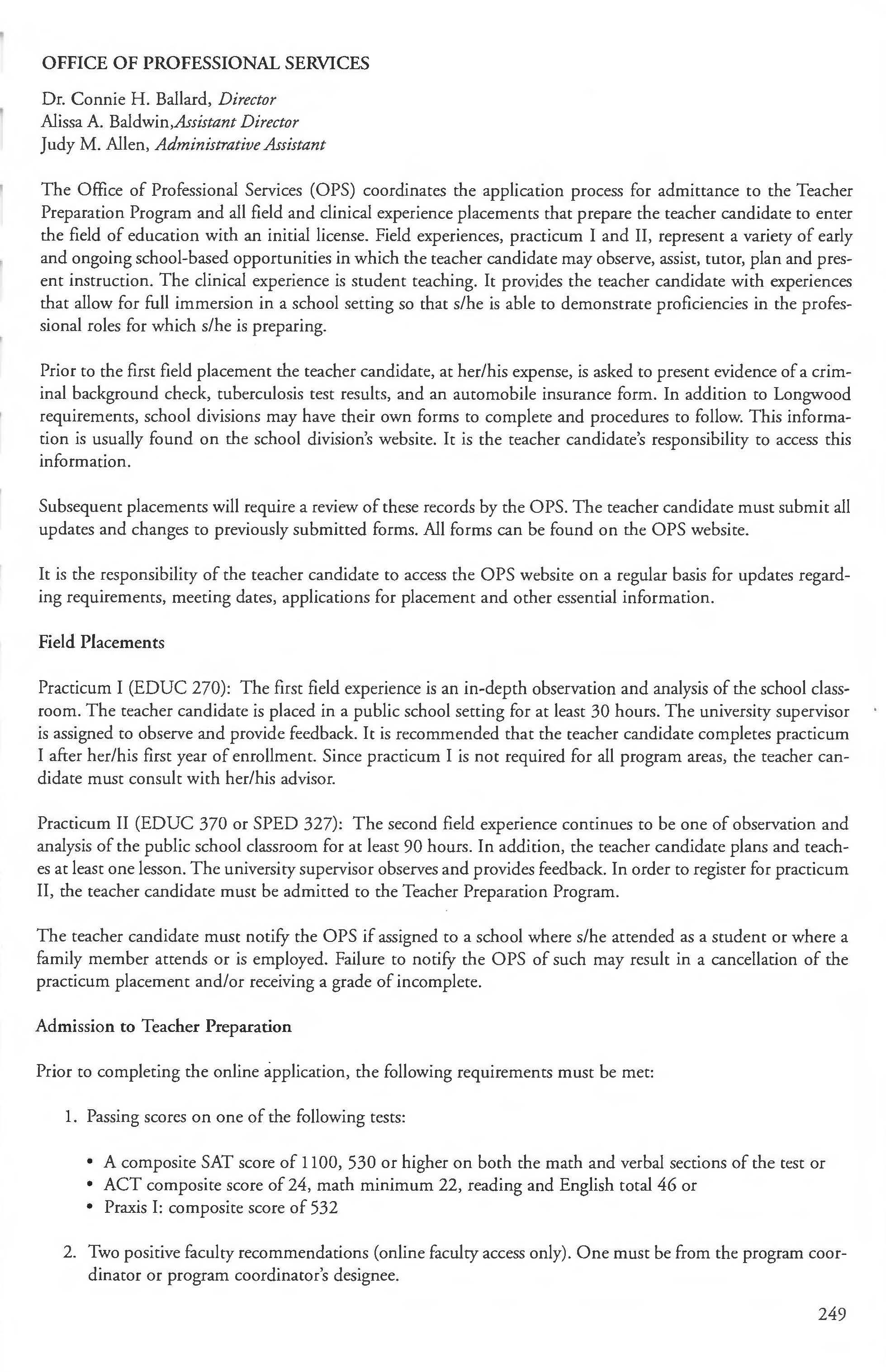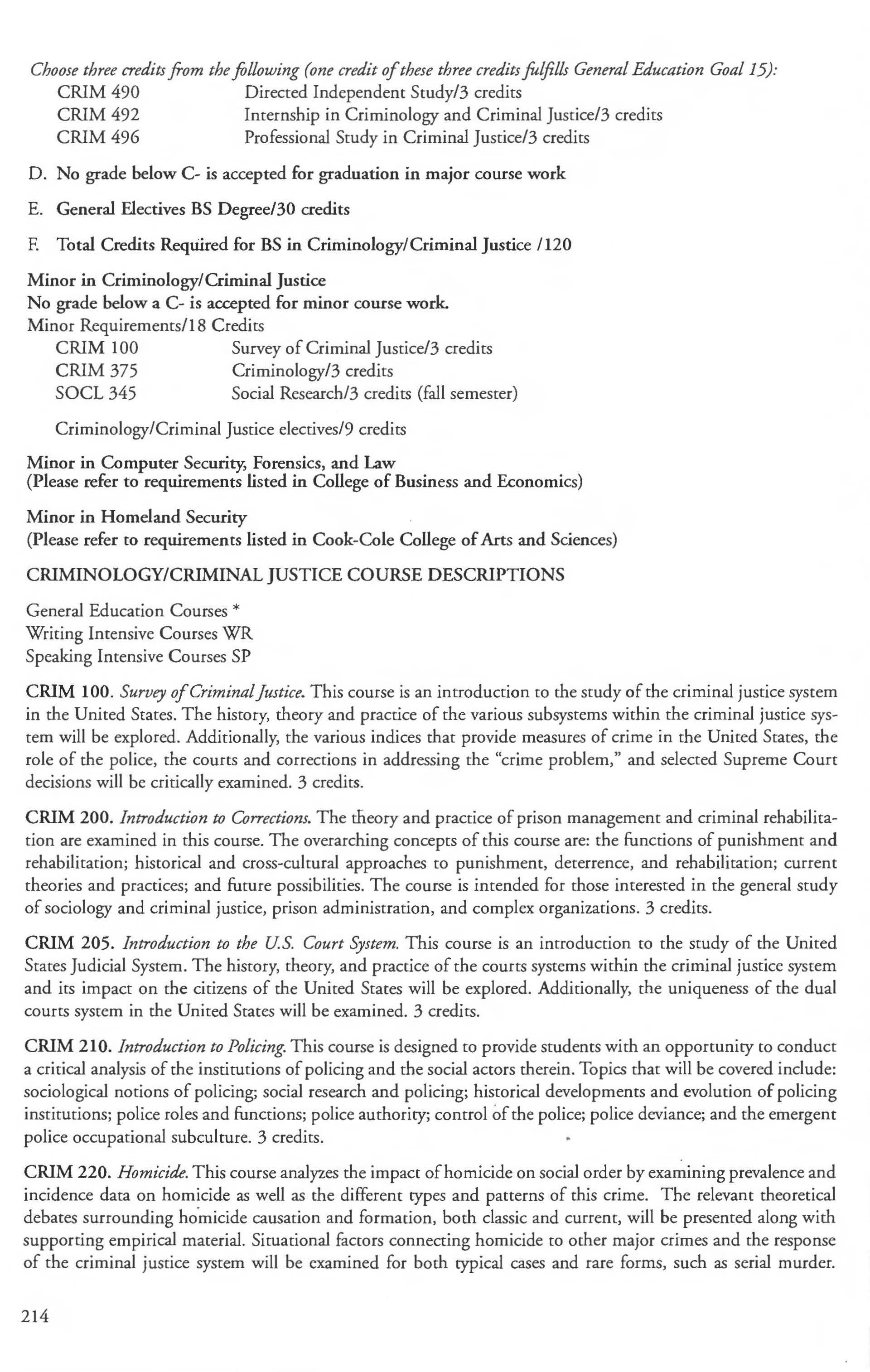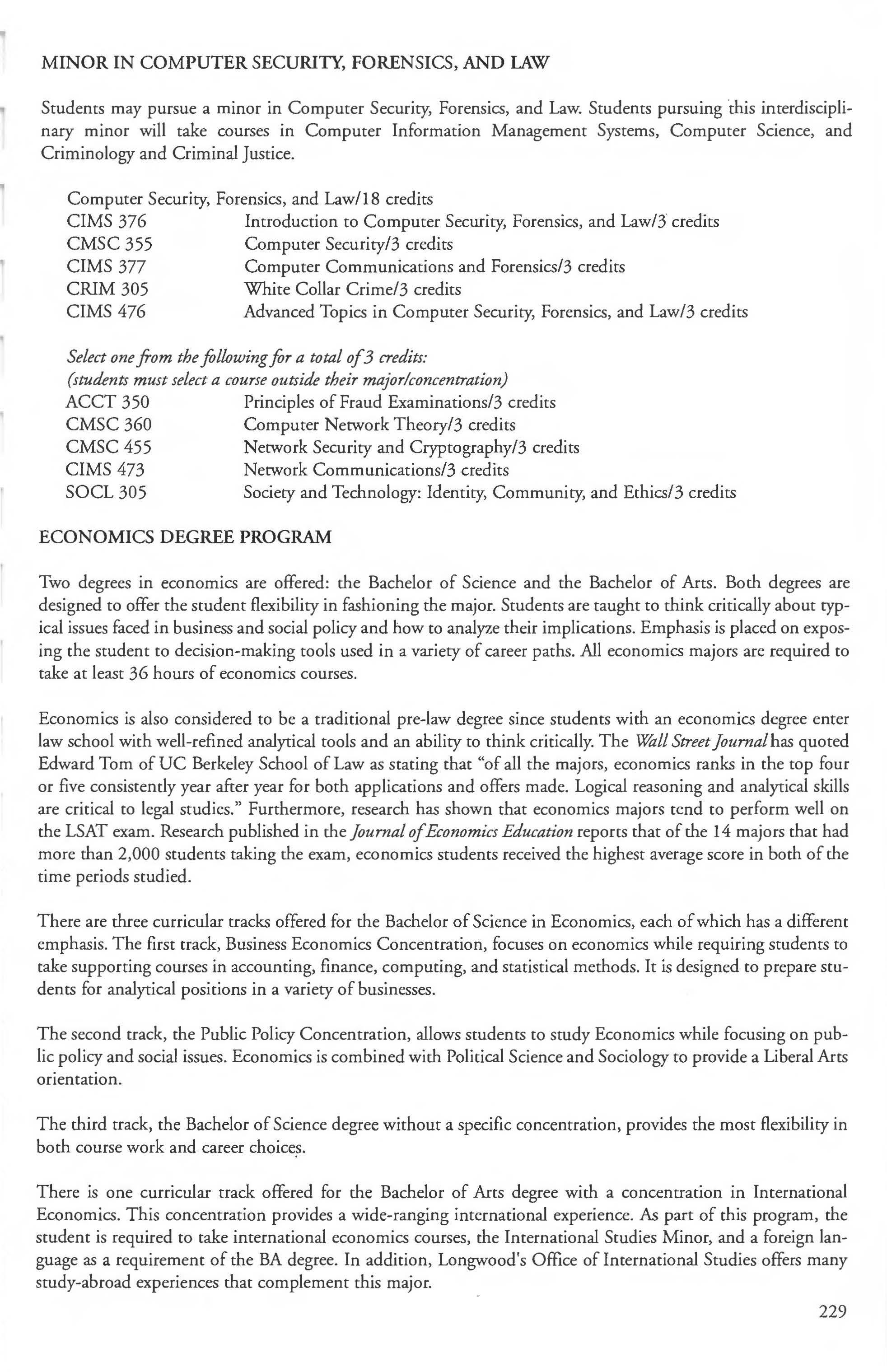Admission into the Computer Security, Teacher Preparation ............. . .. 249-250 Forensics and Law Minor ........... ... .229