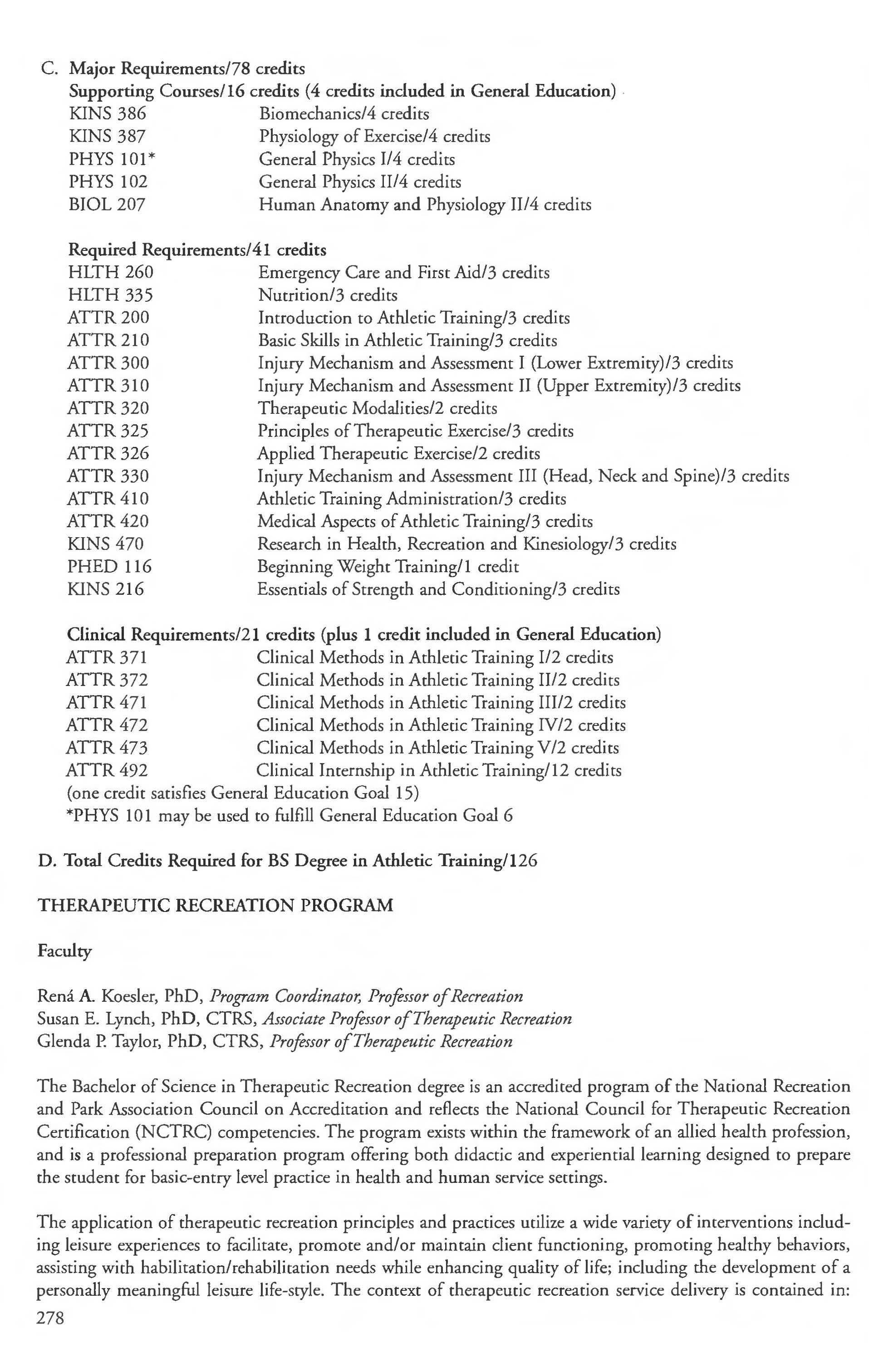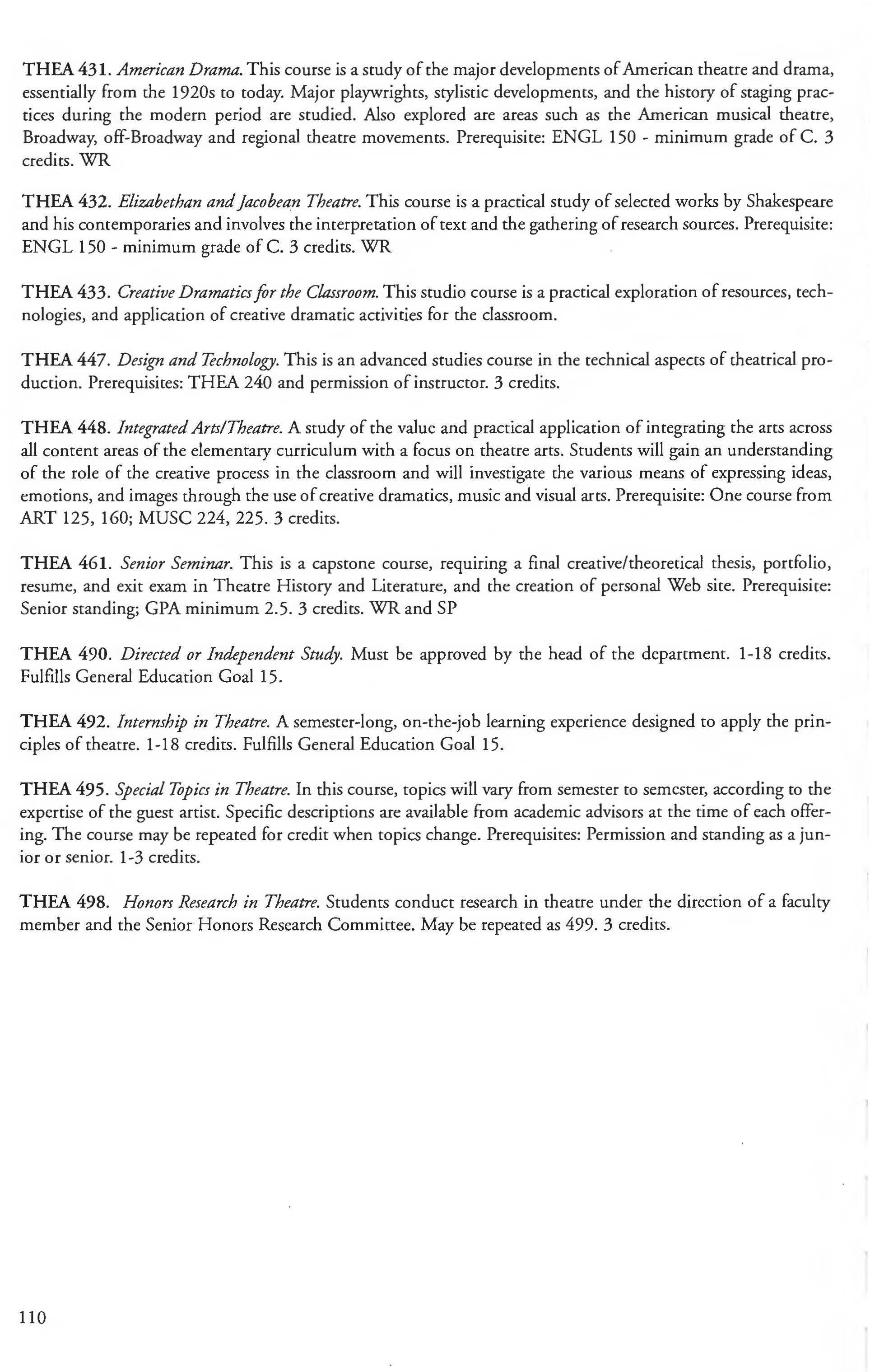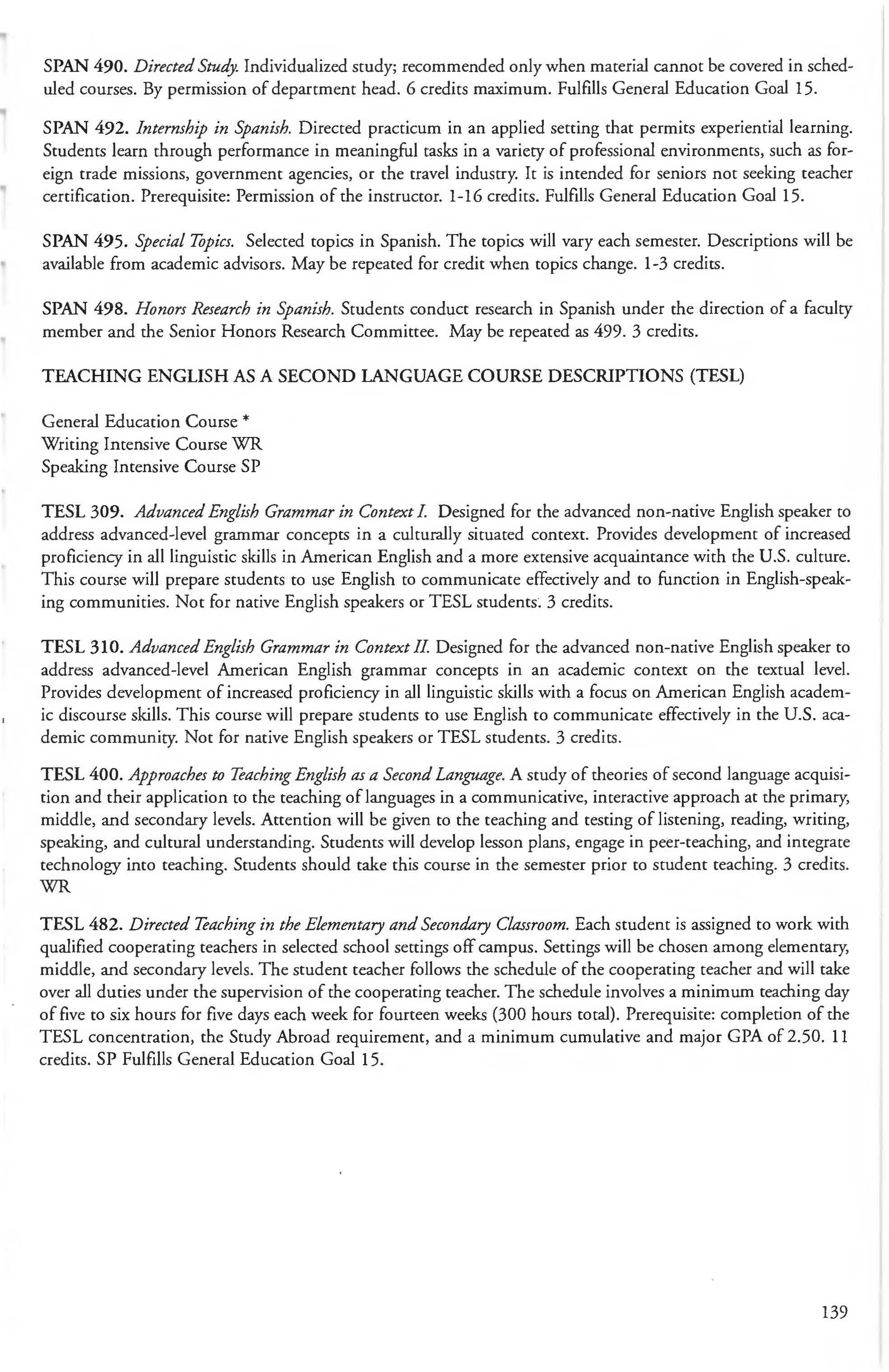 Teaching English as a Second Language Courses 139 Therapeutic Recreation Degree, BS Major 280 Theatre Courses . . . . . . . . . . . . . . . . . . . . .107-110