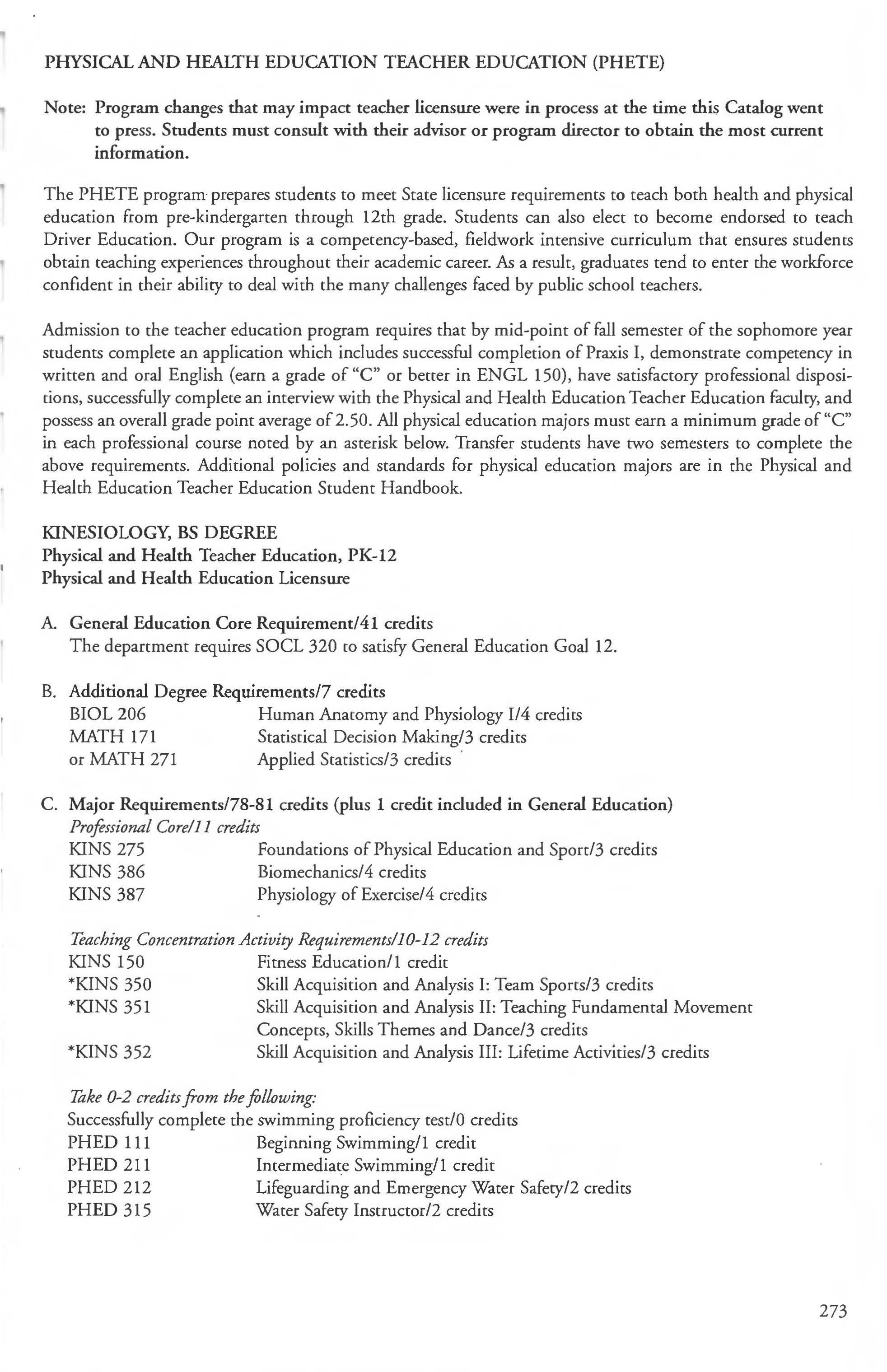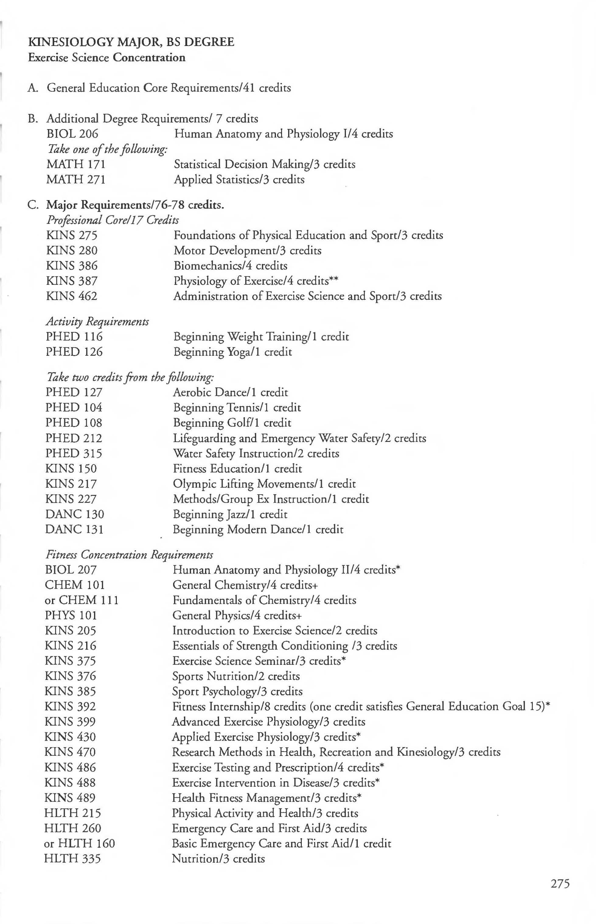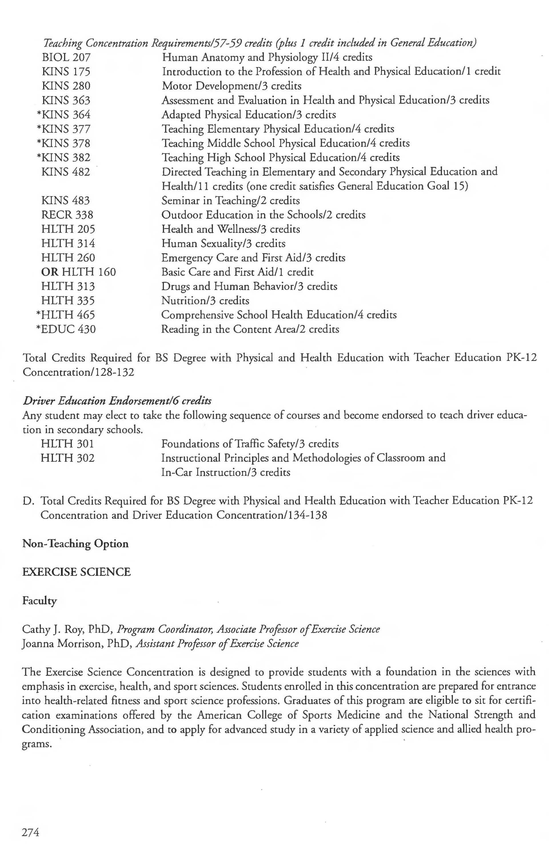 Exercise Science ..... . . ... . . . ... ... . .274-276