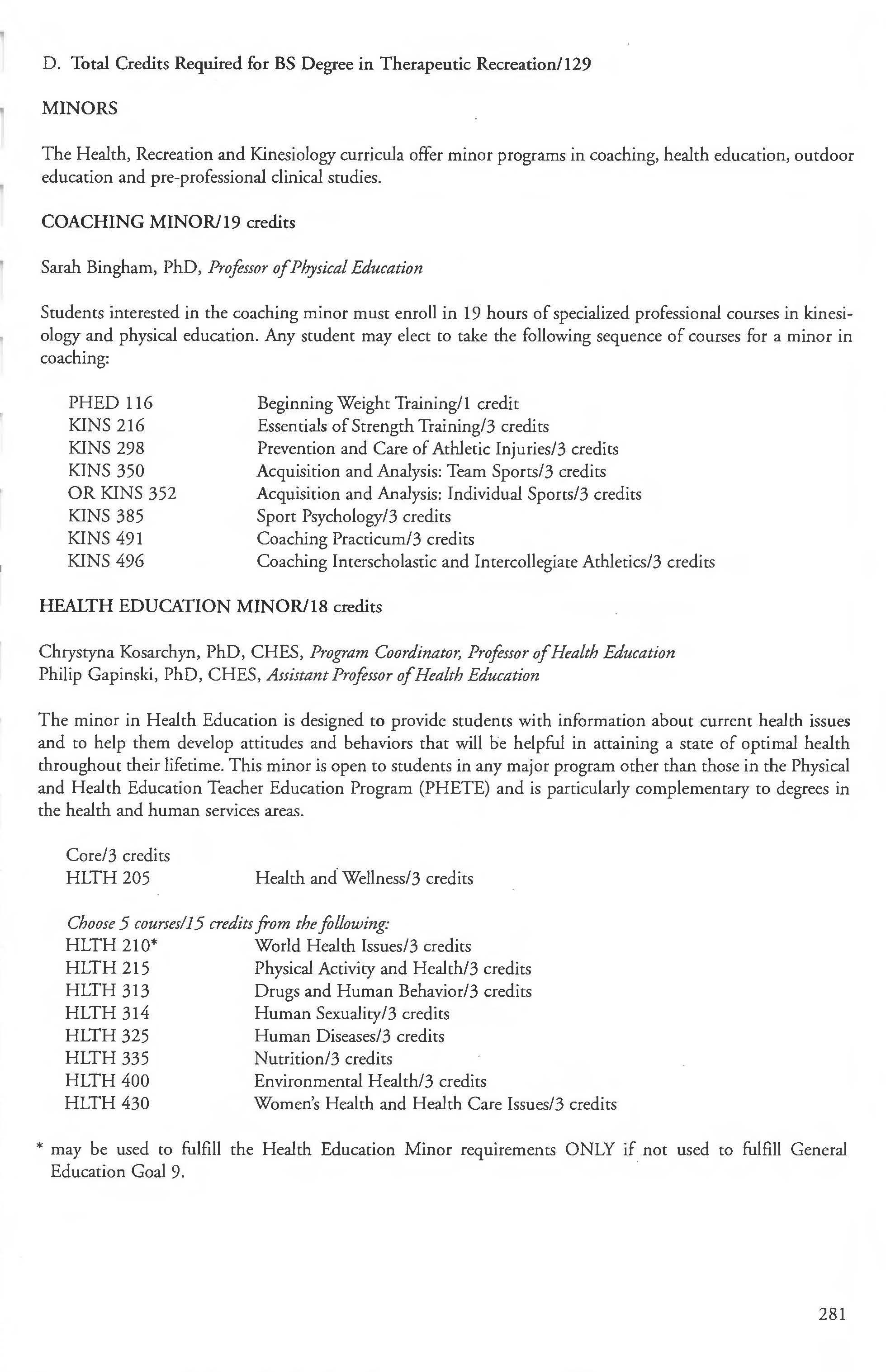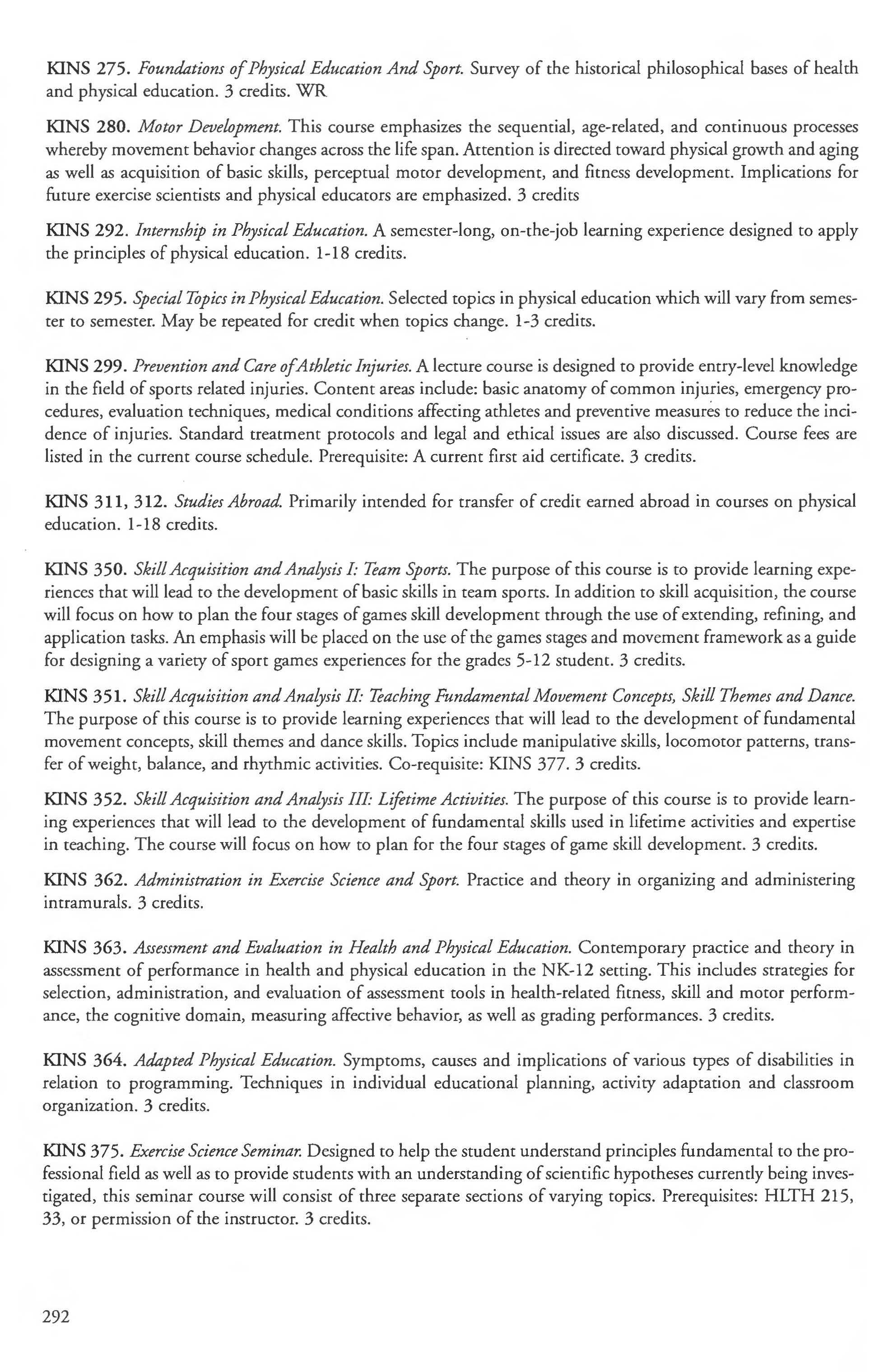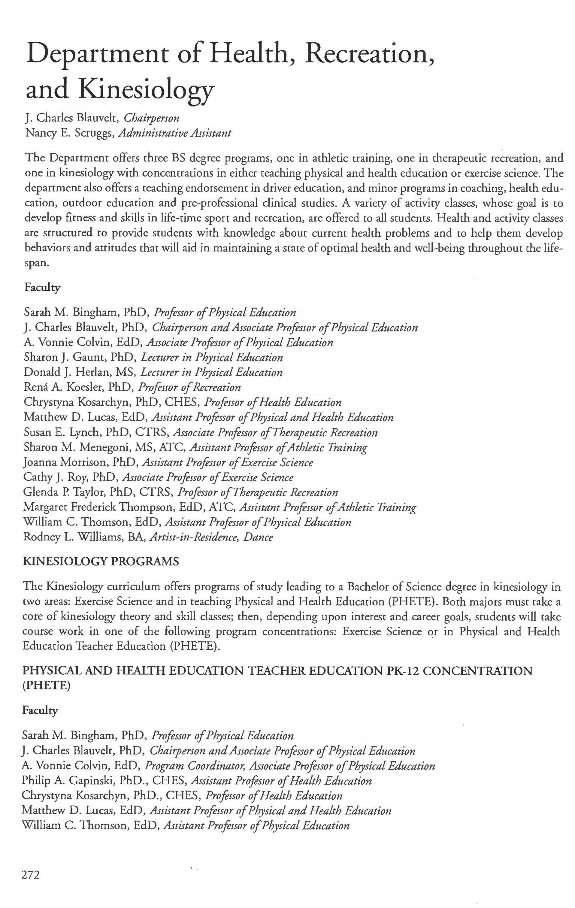 Exercise Science ..... . . ... . . . ... ... . .274-276