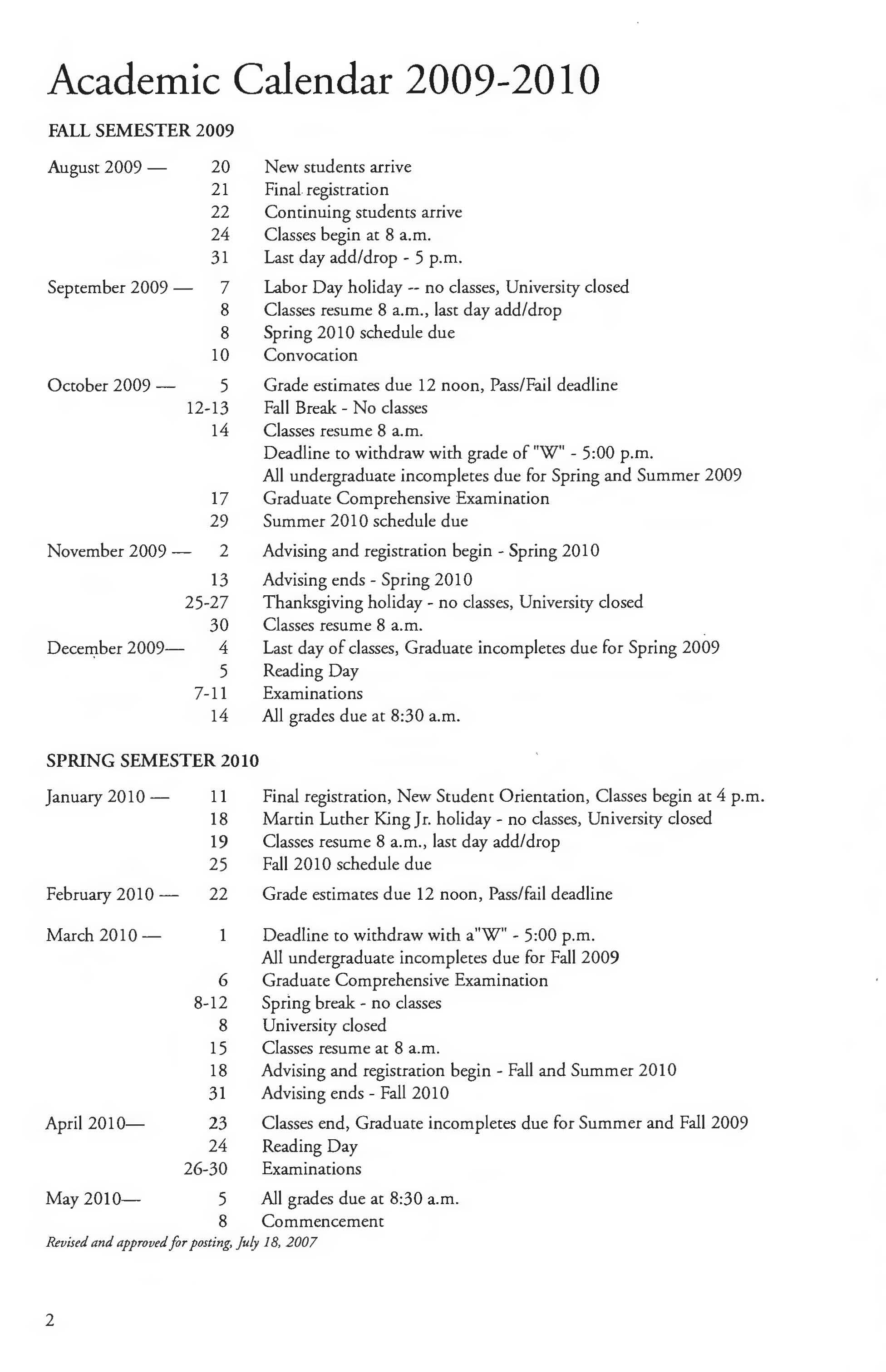 Academic Calendar 2009-2010