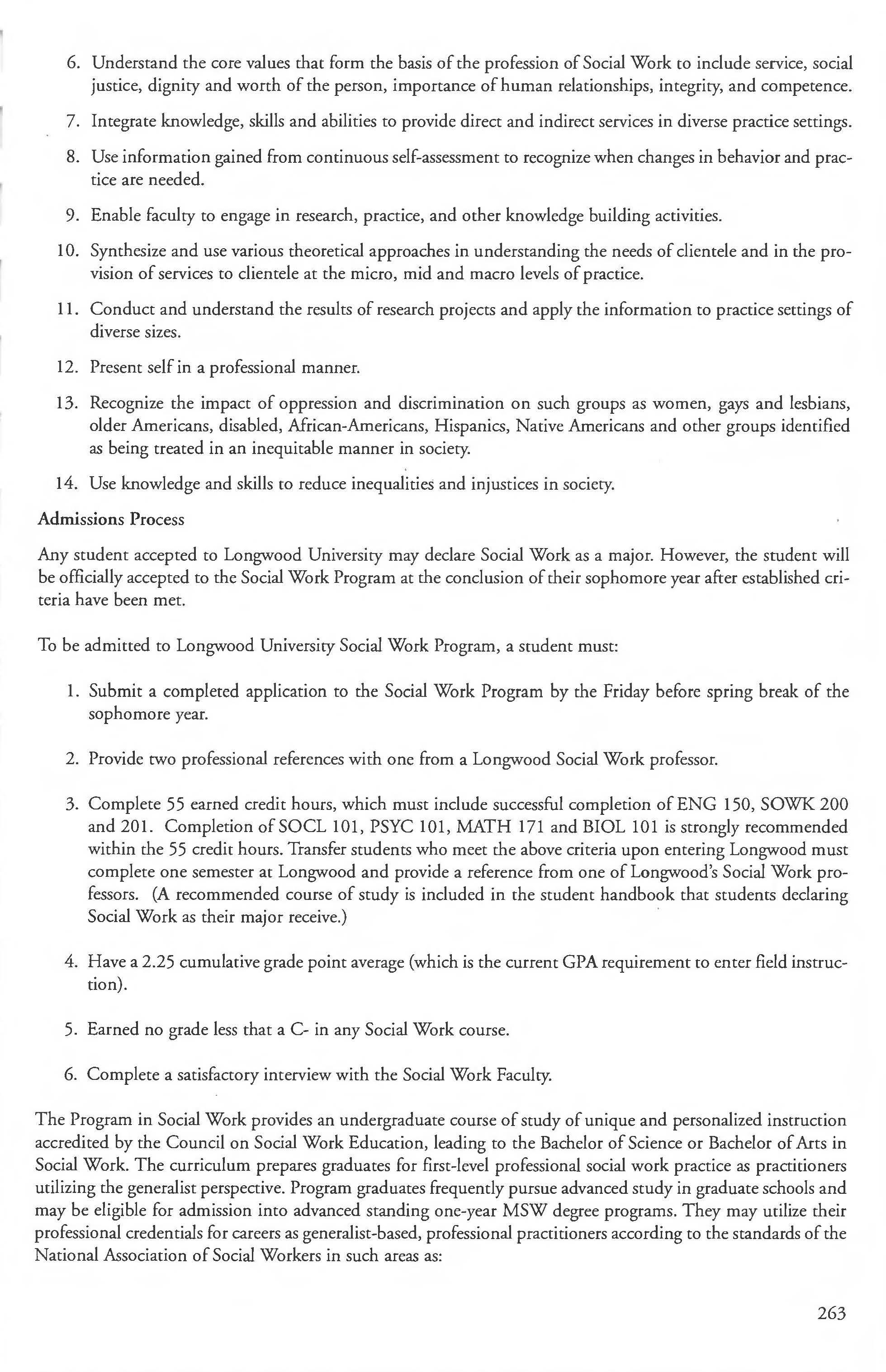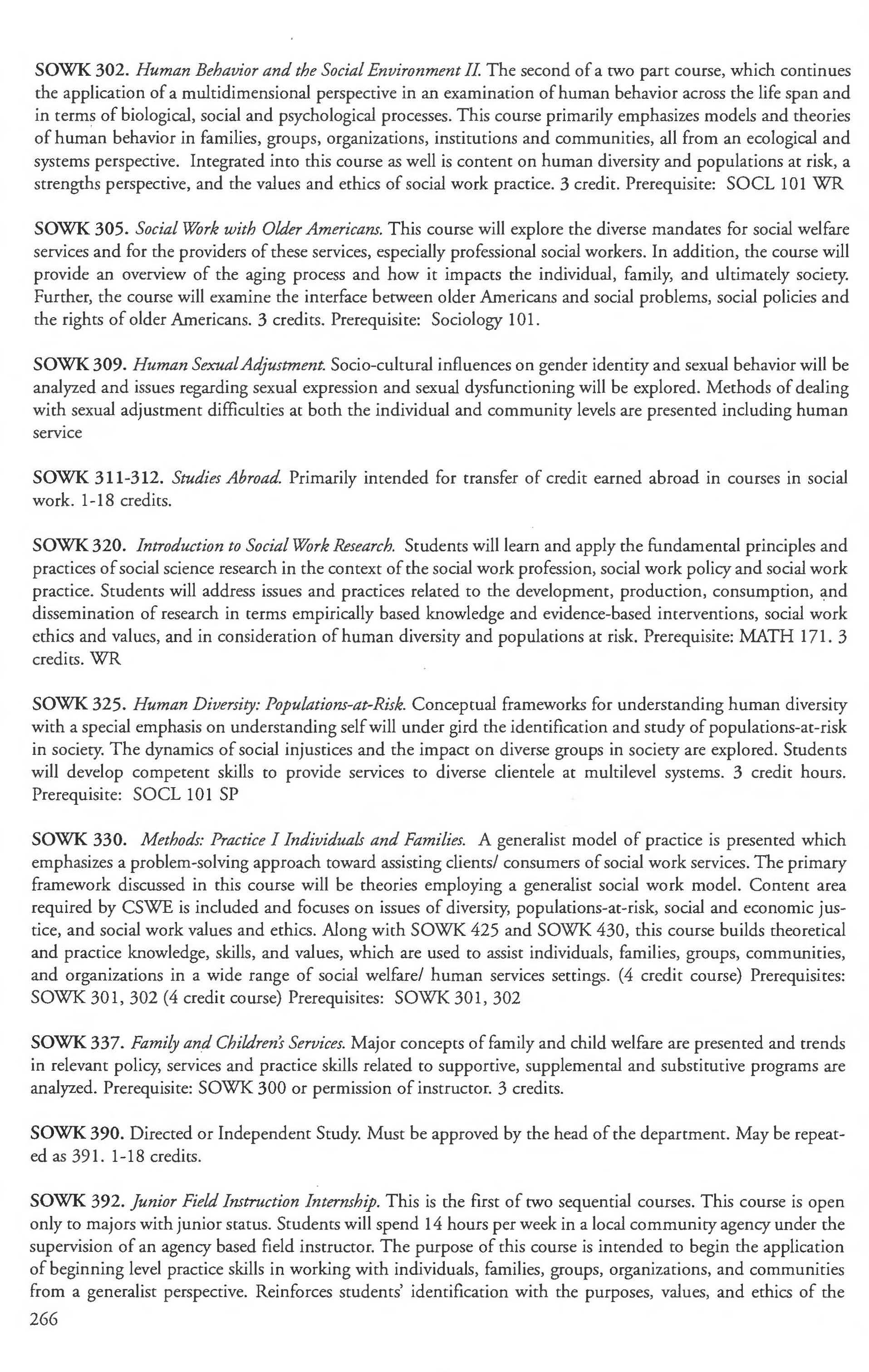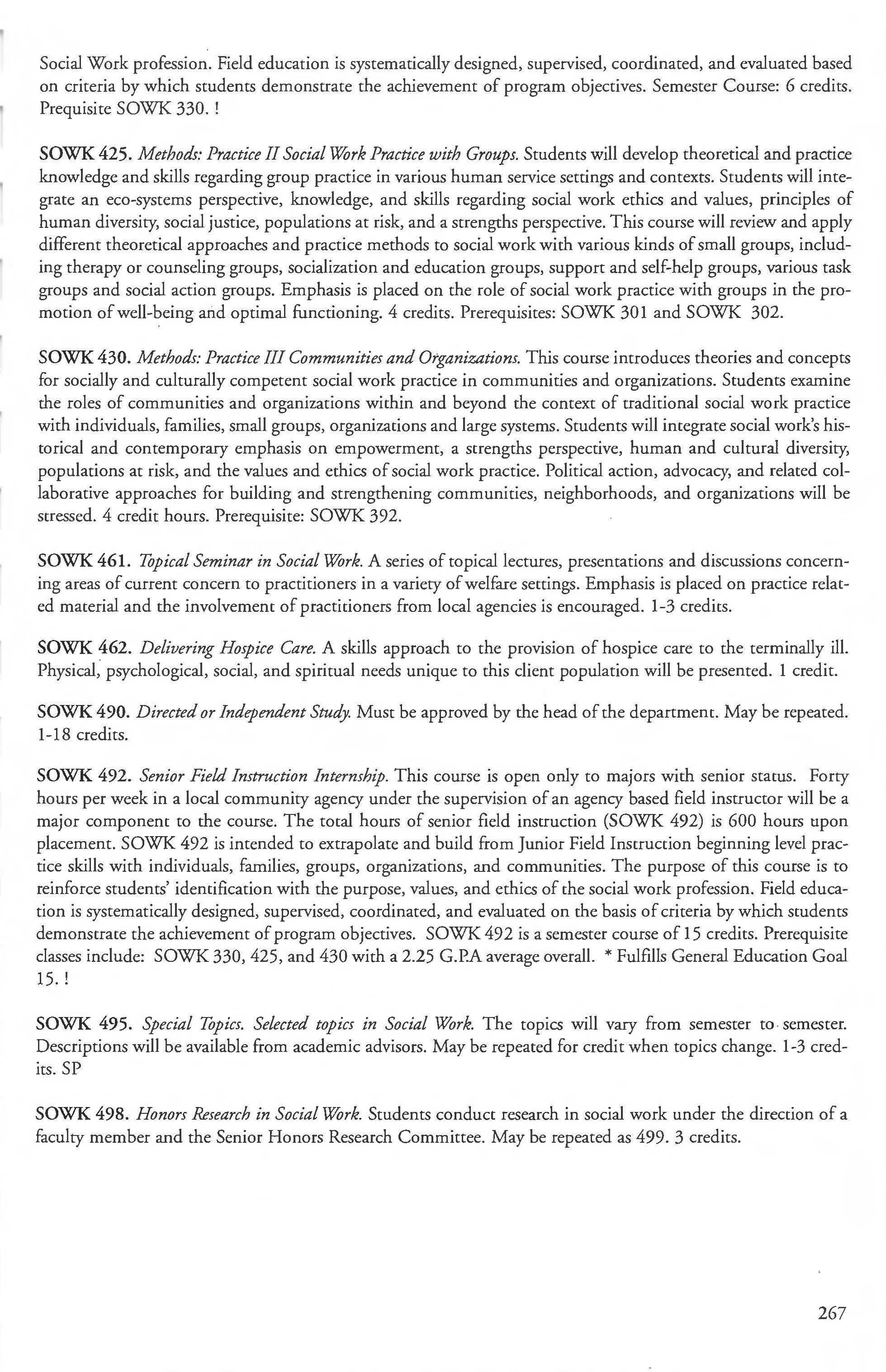 Social Work Courses 265-267