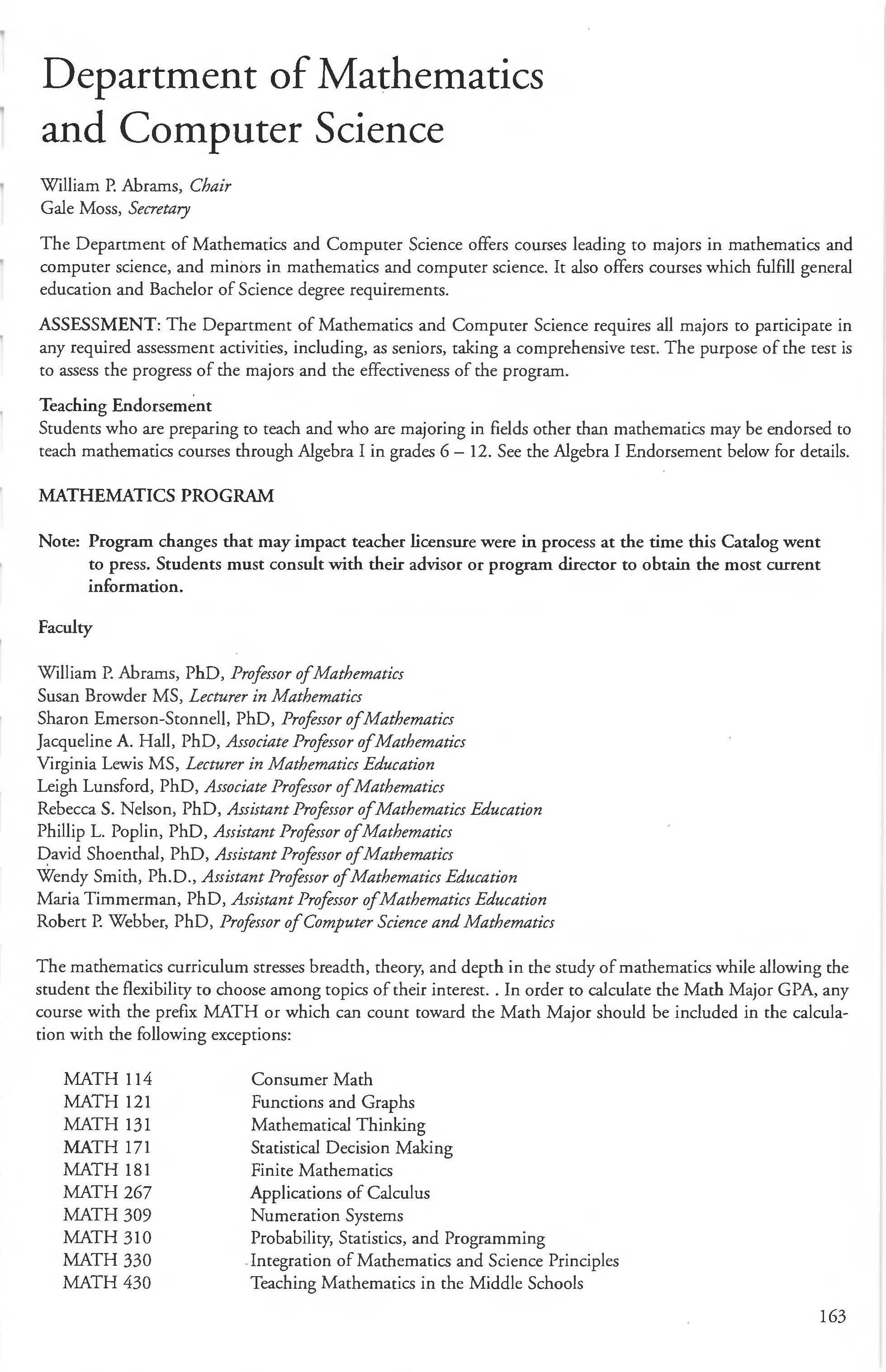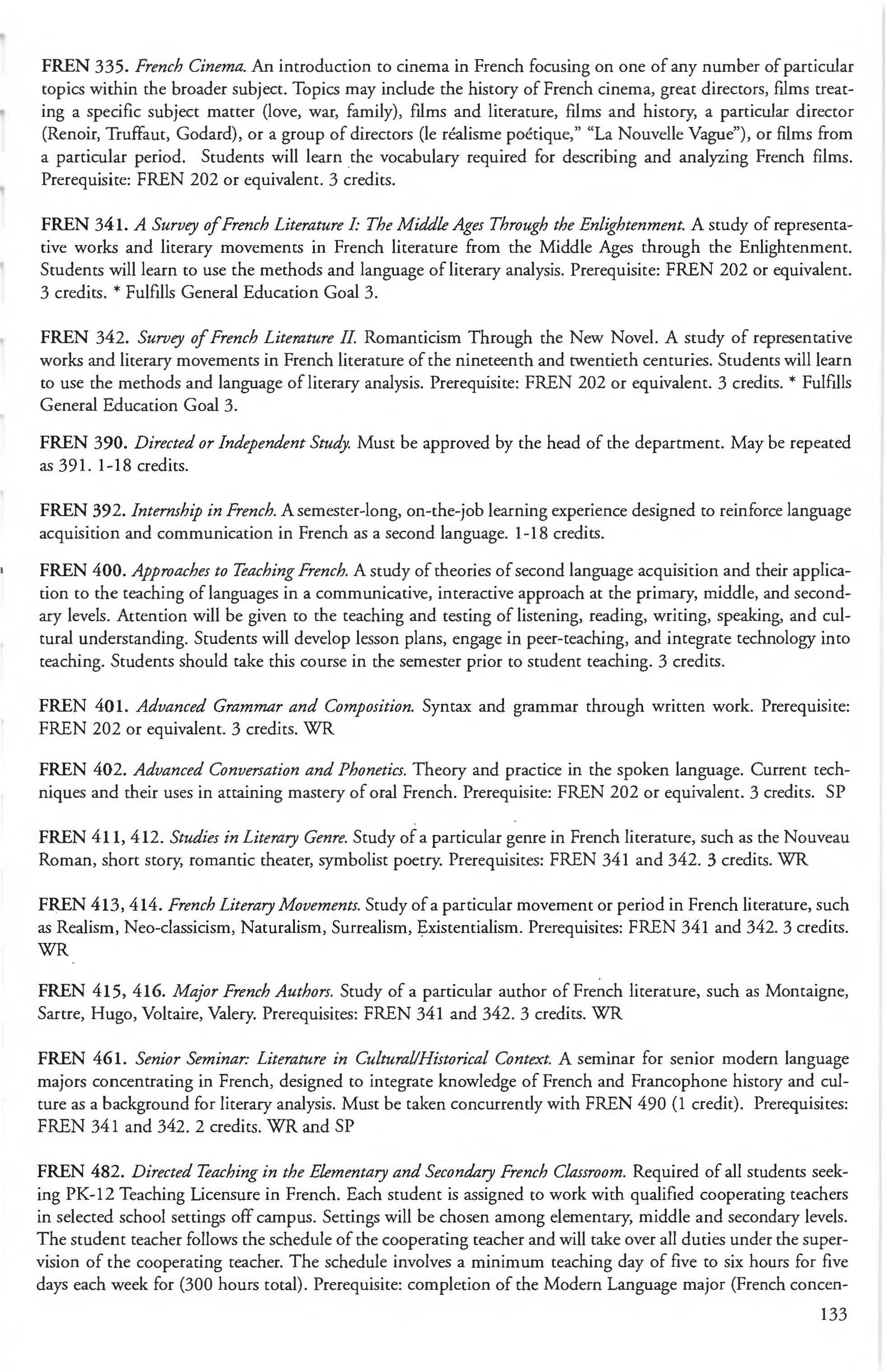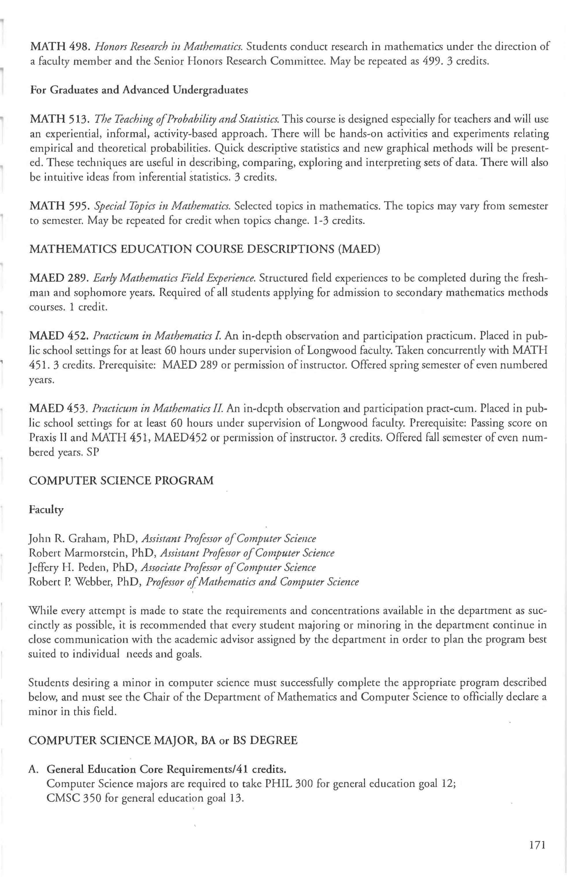 French 127 Minor in Mathematics 166 French Courses 132-134 Mathematics & Computer Science
