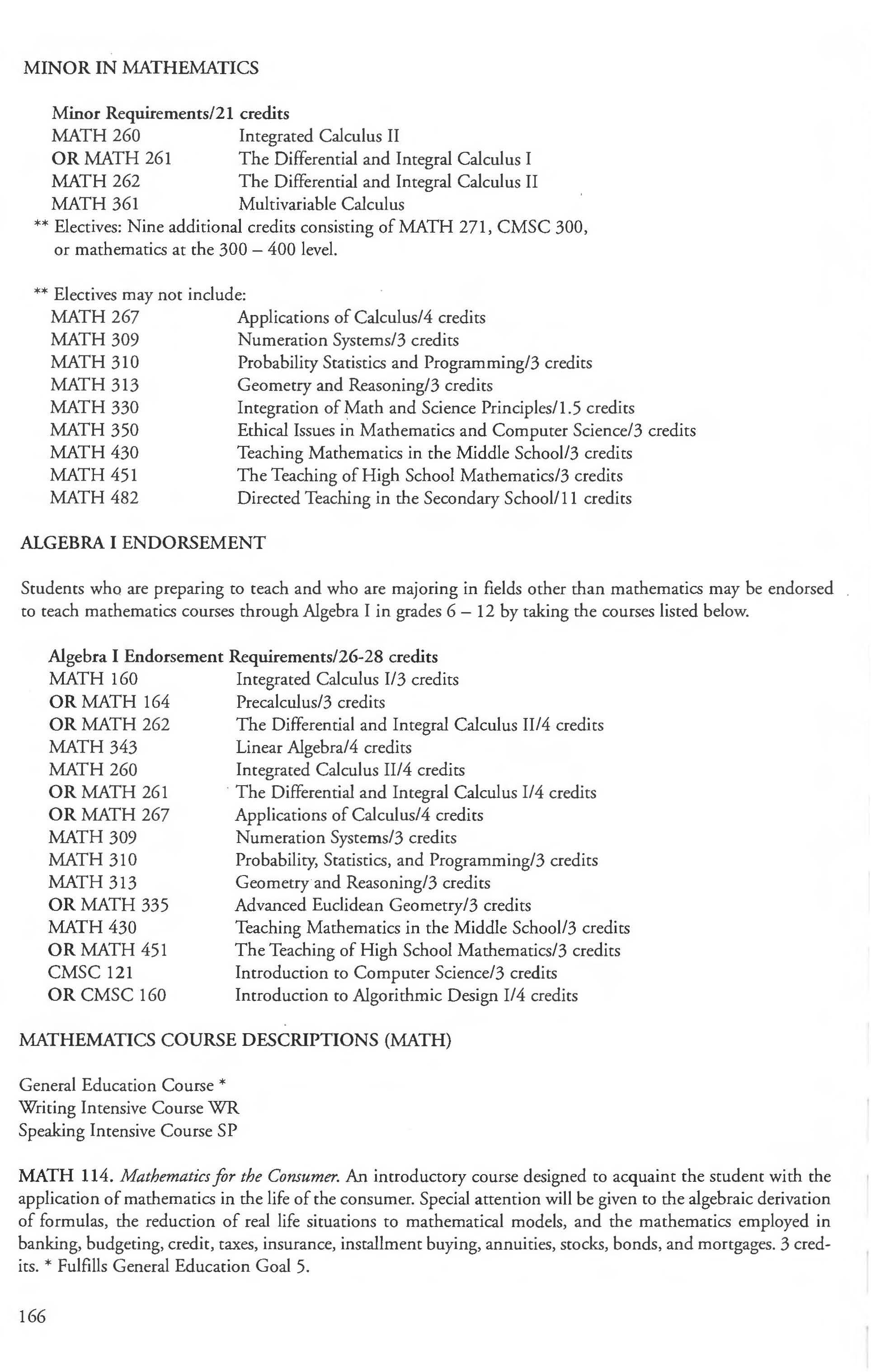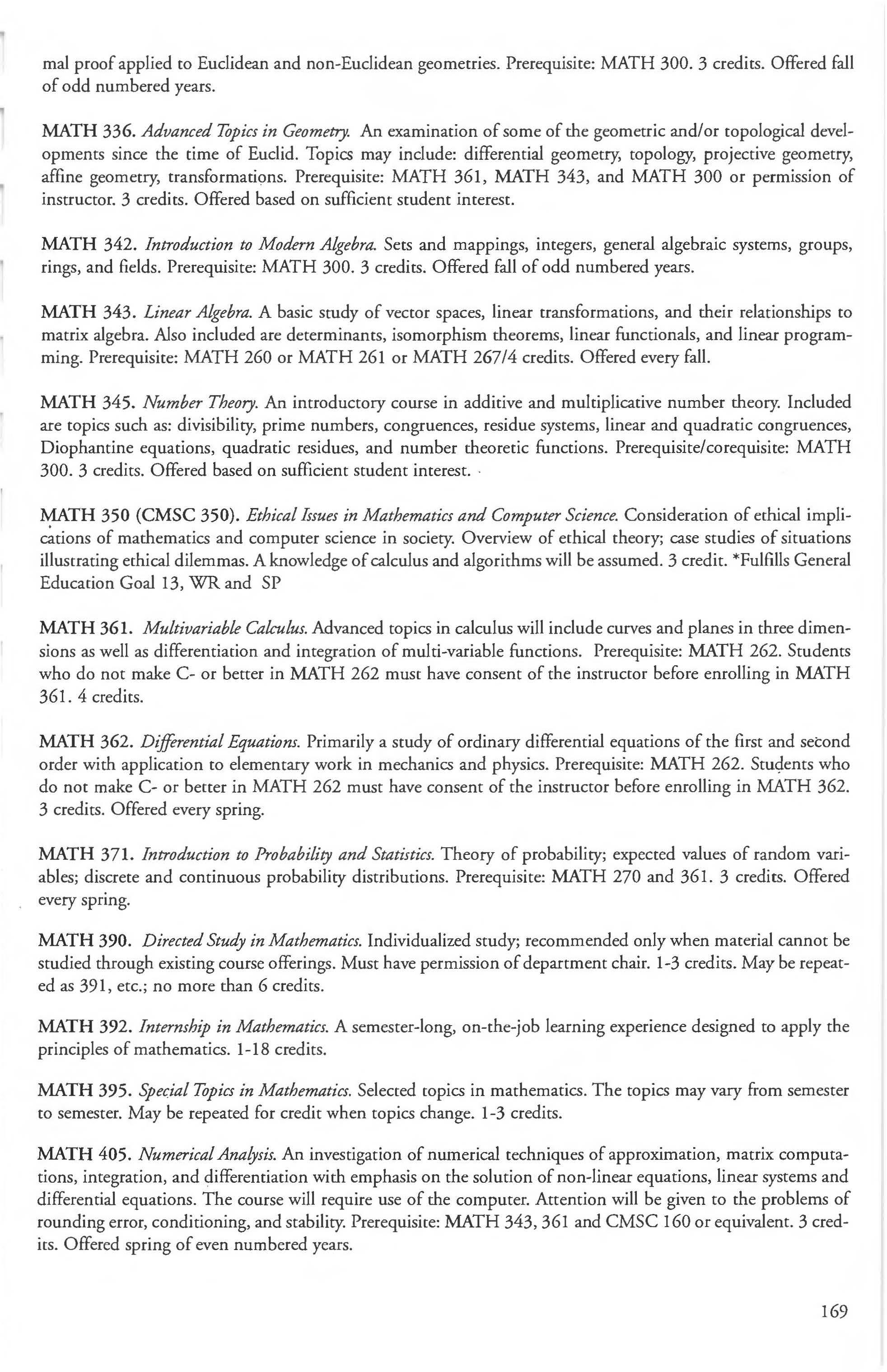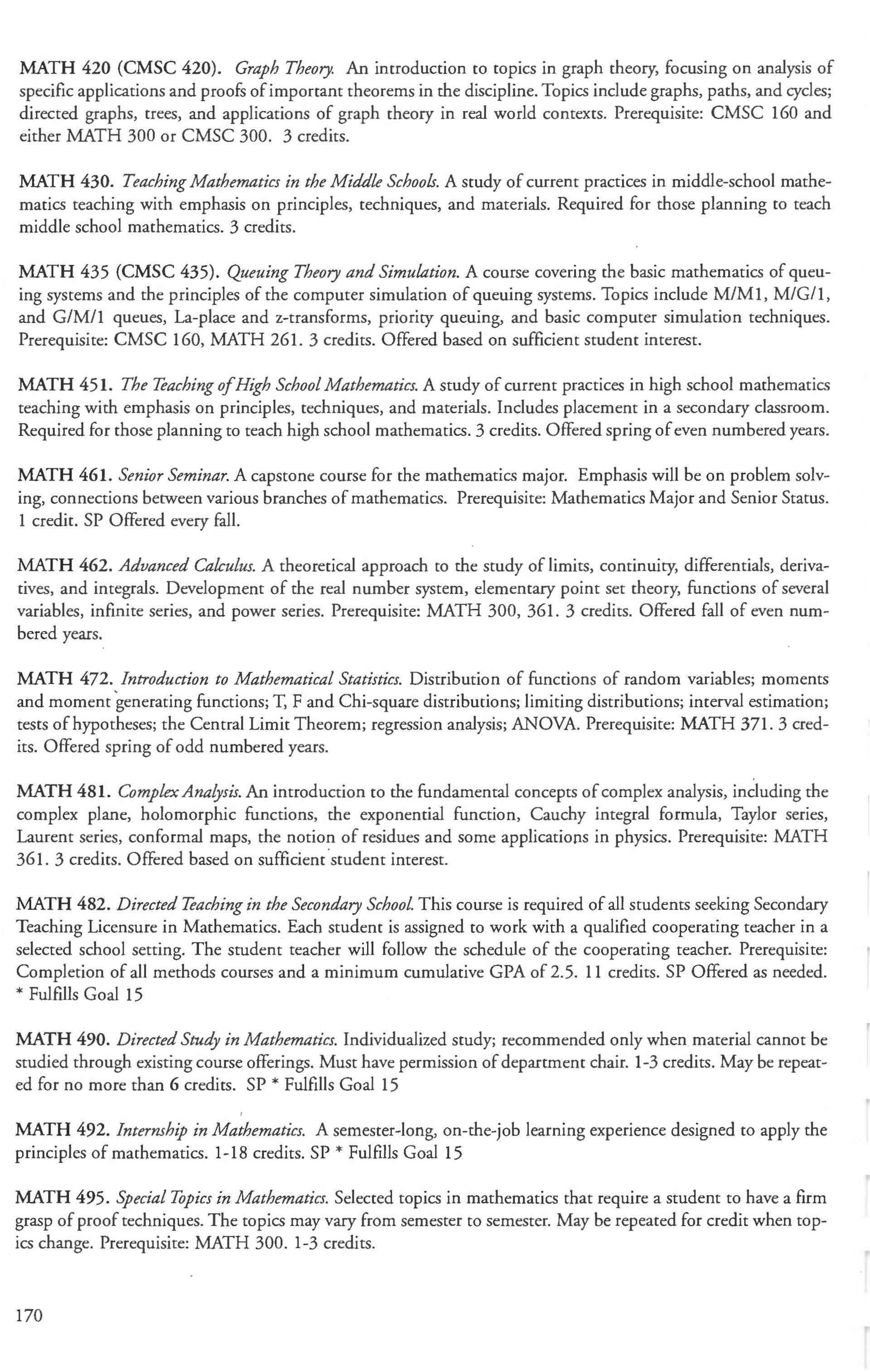 French 127 Minor in Mathematics 166 French Courses 132-134 Mathematics & Computer Science