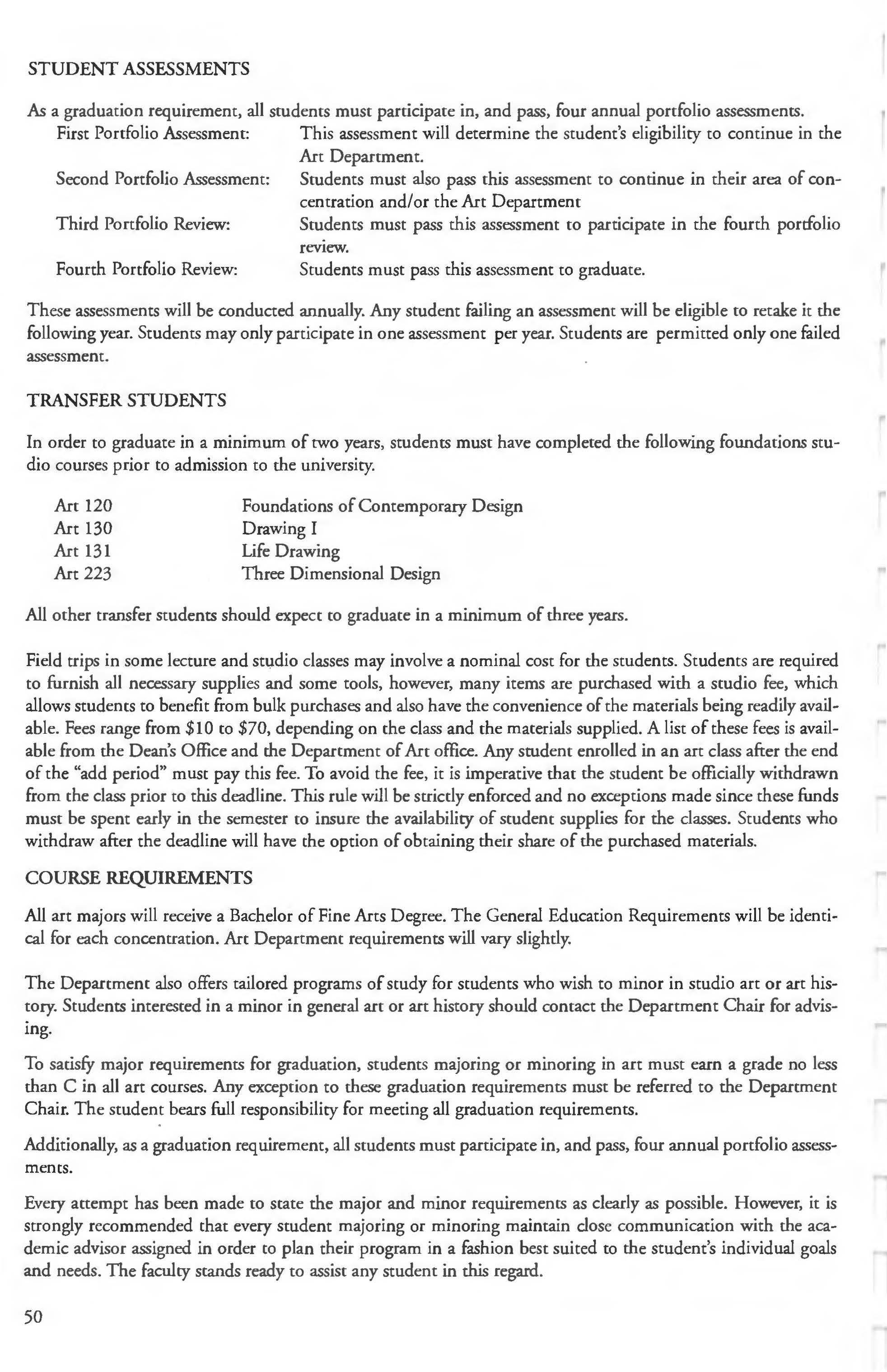 Although the academic advisor assists students with curriculum decisions and options, the student bears full responsibility for meeting graduation requirements.