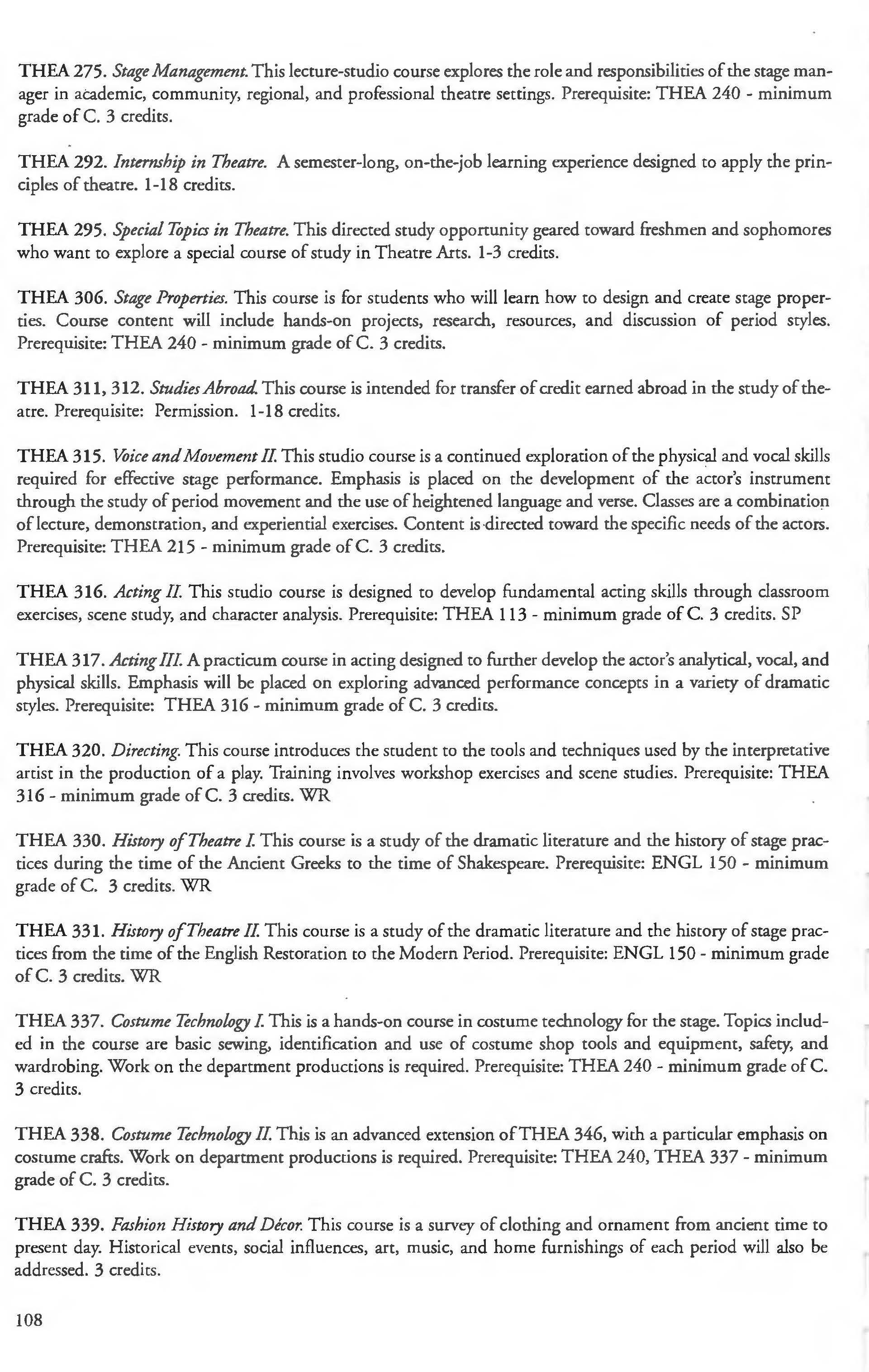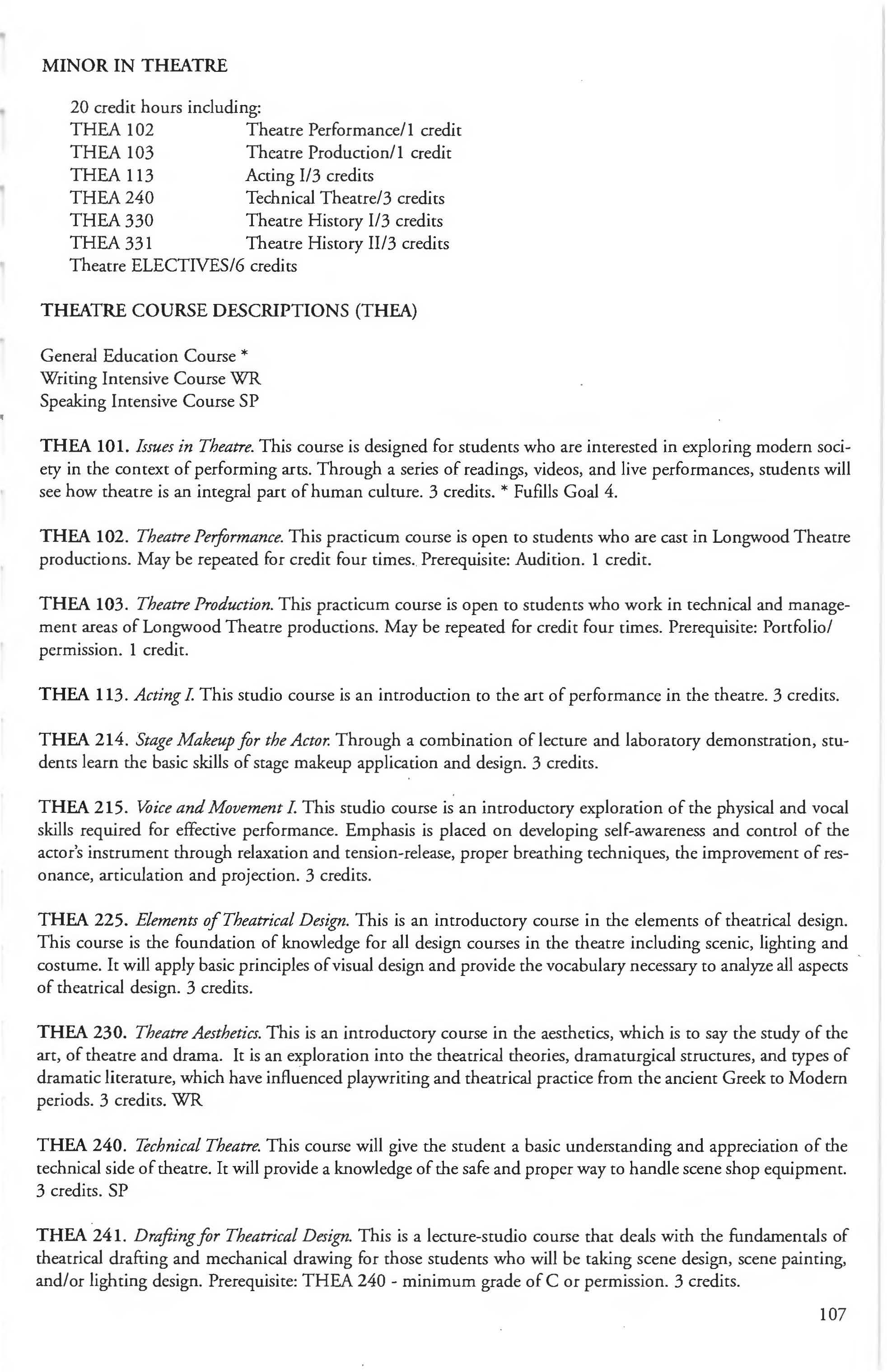 Theatre Minor .. ........................ 107 Theatre Program .................... 101-1 06