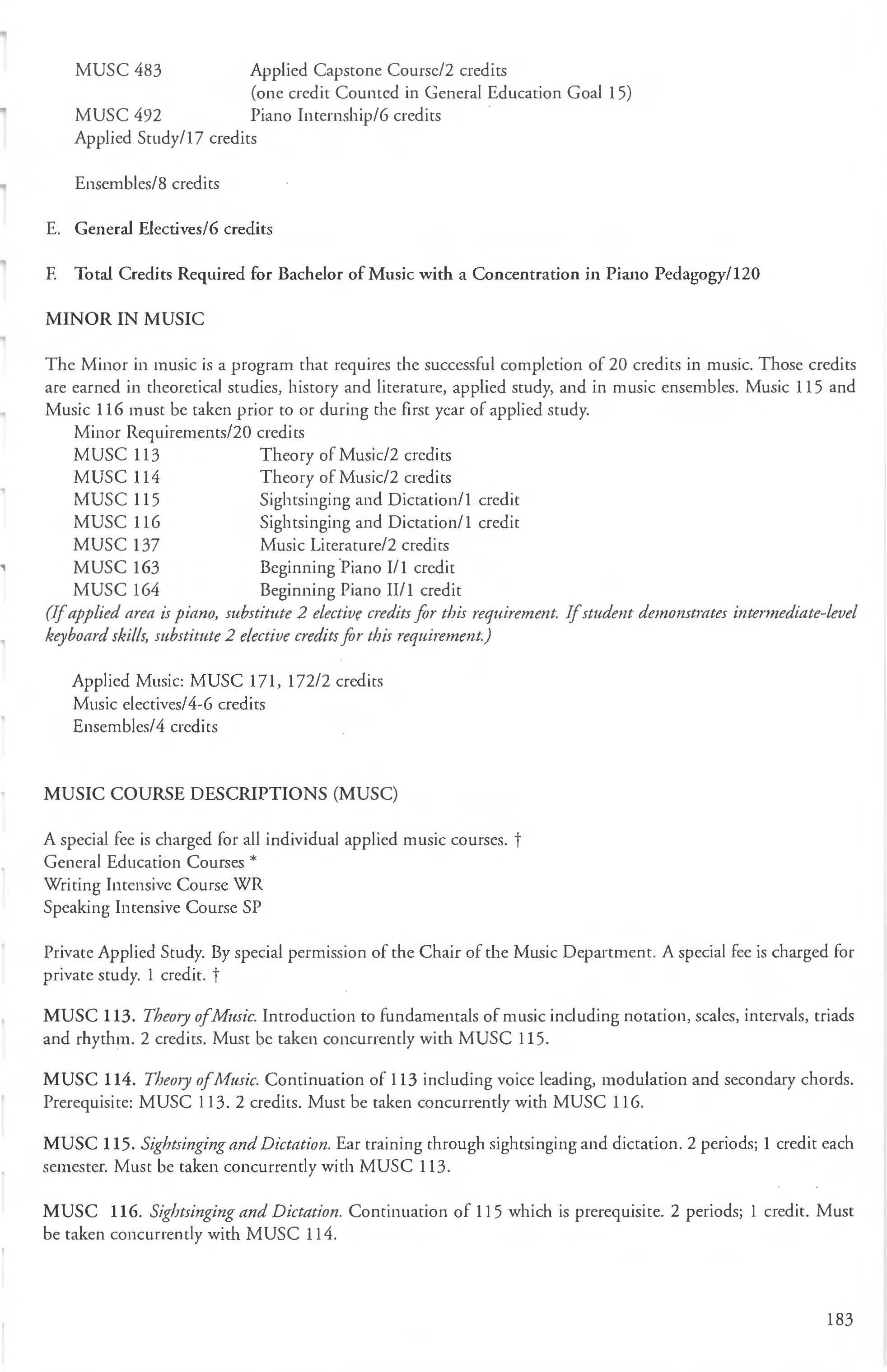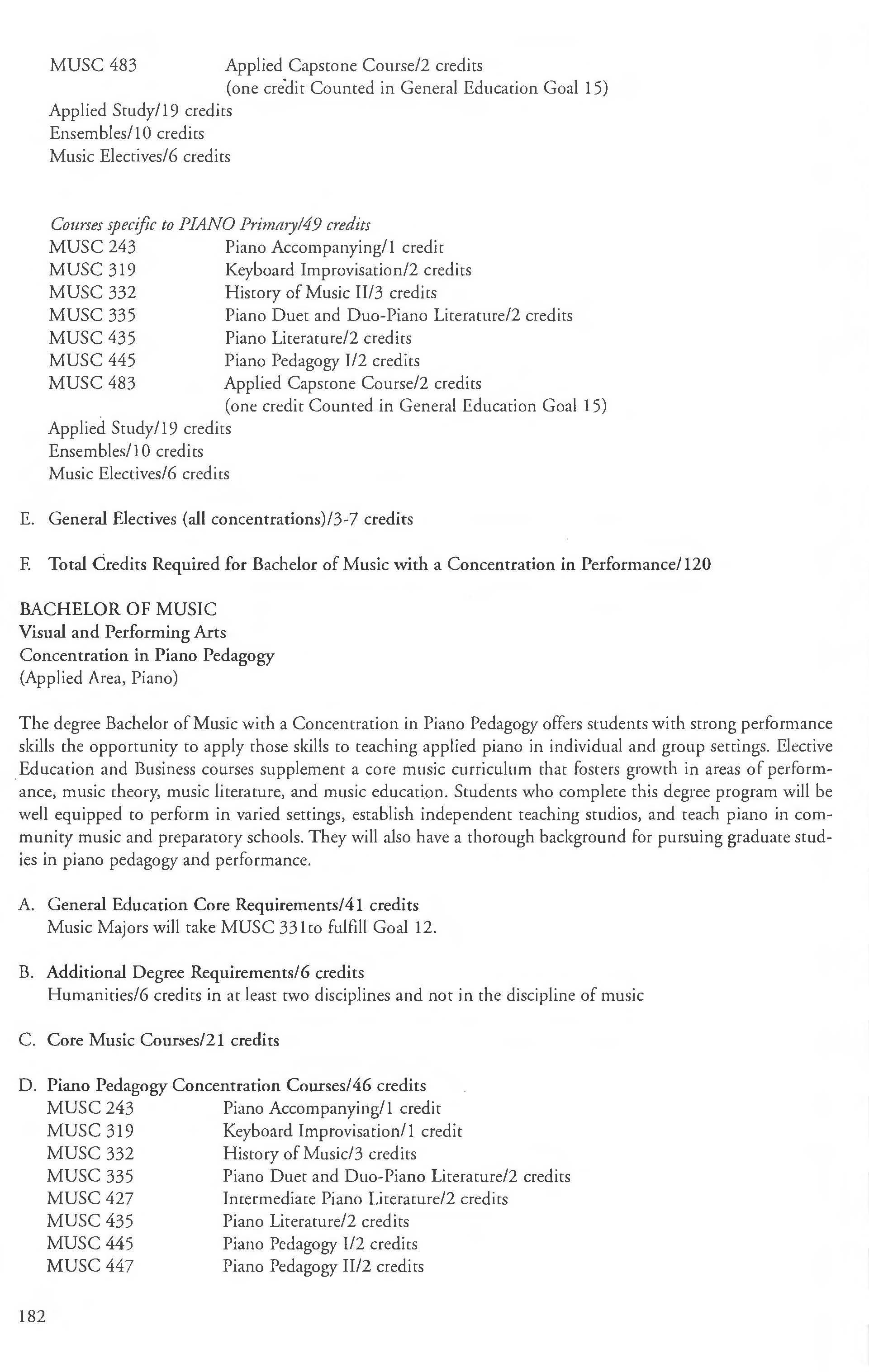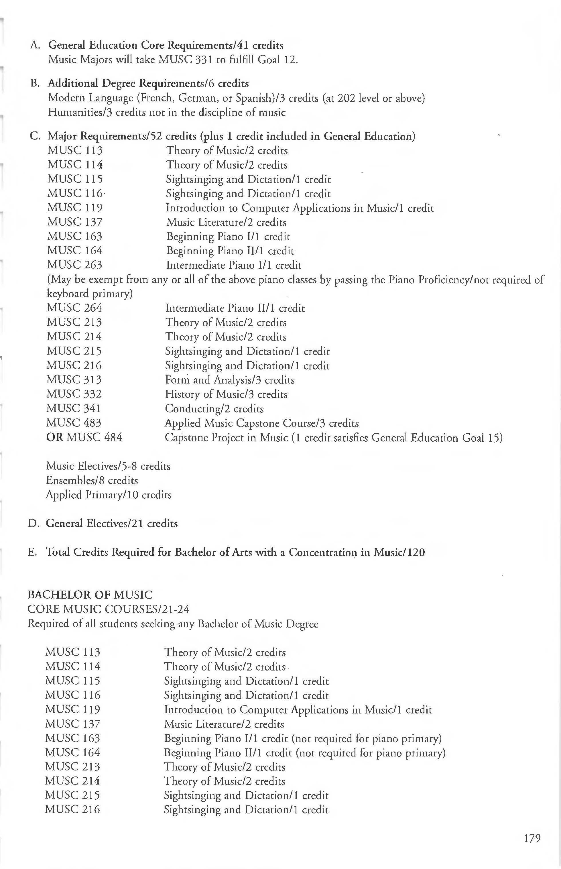 Music, Bachelor of Music Concentration German Minor 131 in Education 180-181 GNED Courses .... . ...... .. . . . .. ....... .77 Music , BA in Visual and Performing Grade Appeals 10-11 Arts Concentration in Music 178-179 Grade Estimates .. . .. . ........... ... ... . . 10