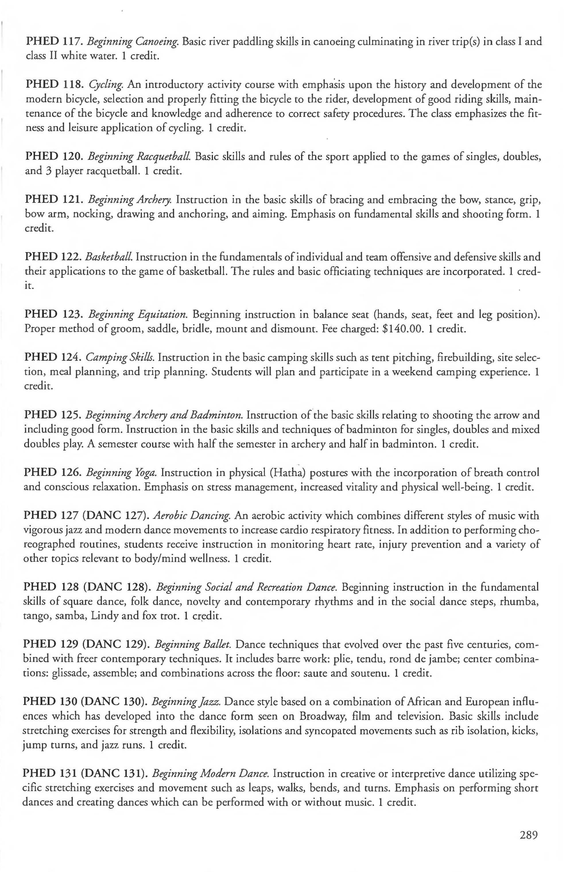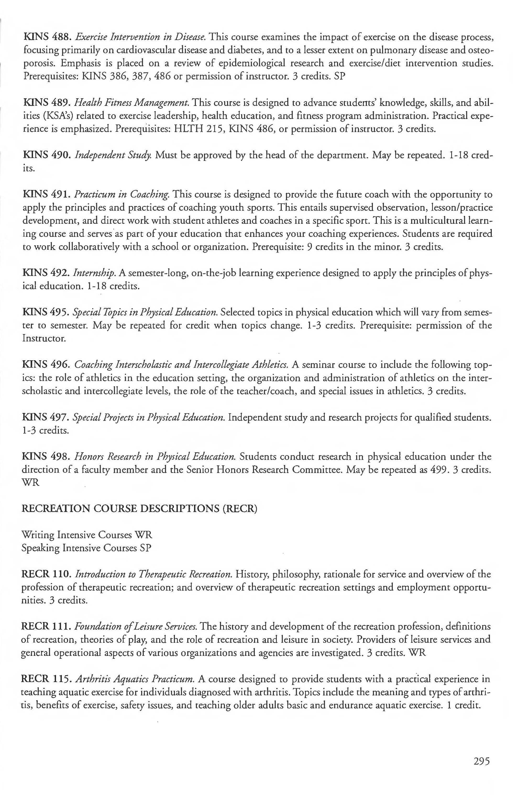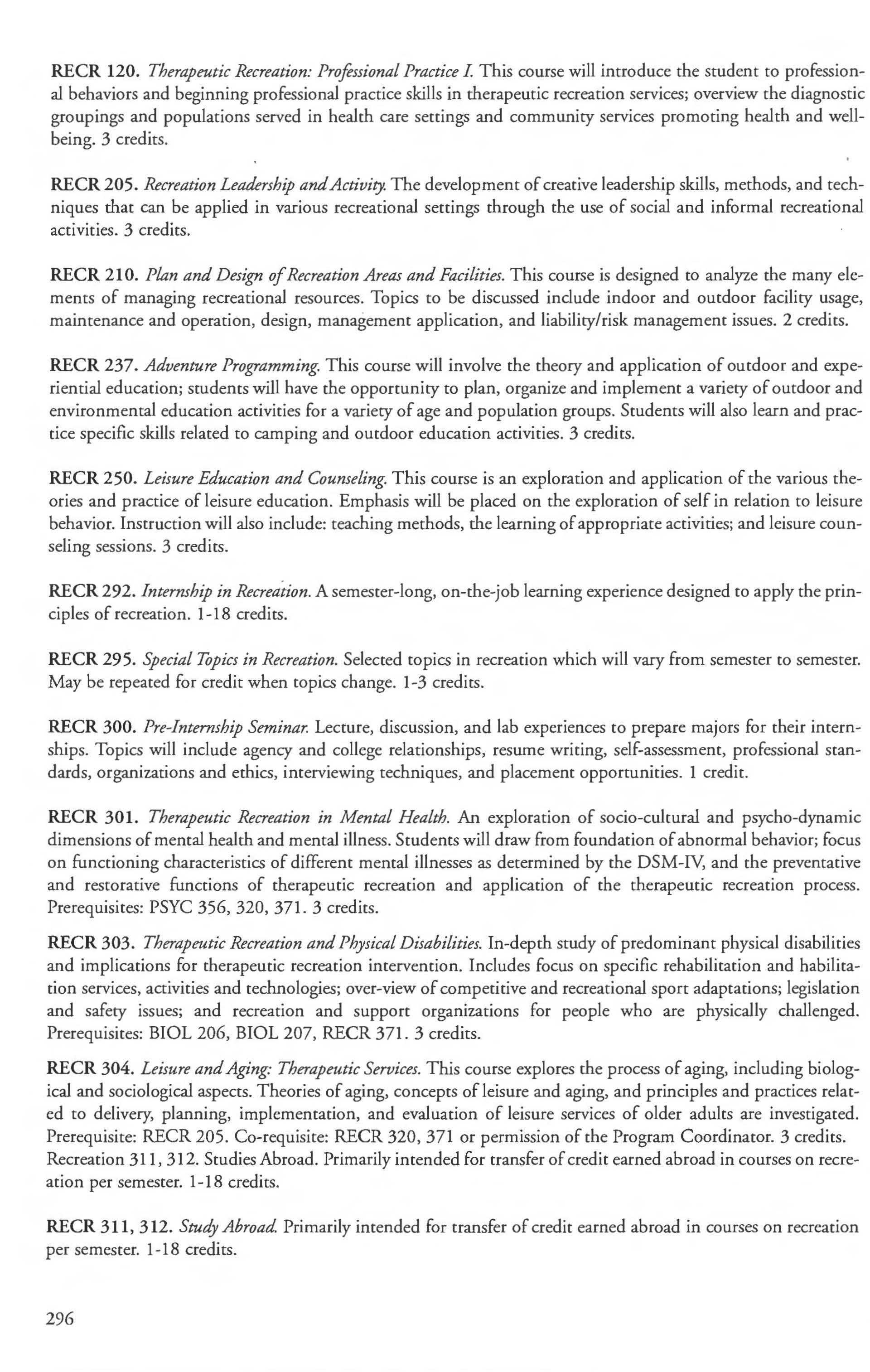 RECREATION COURSE DESCRIPTIONS (RECR)