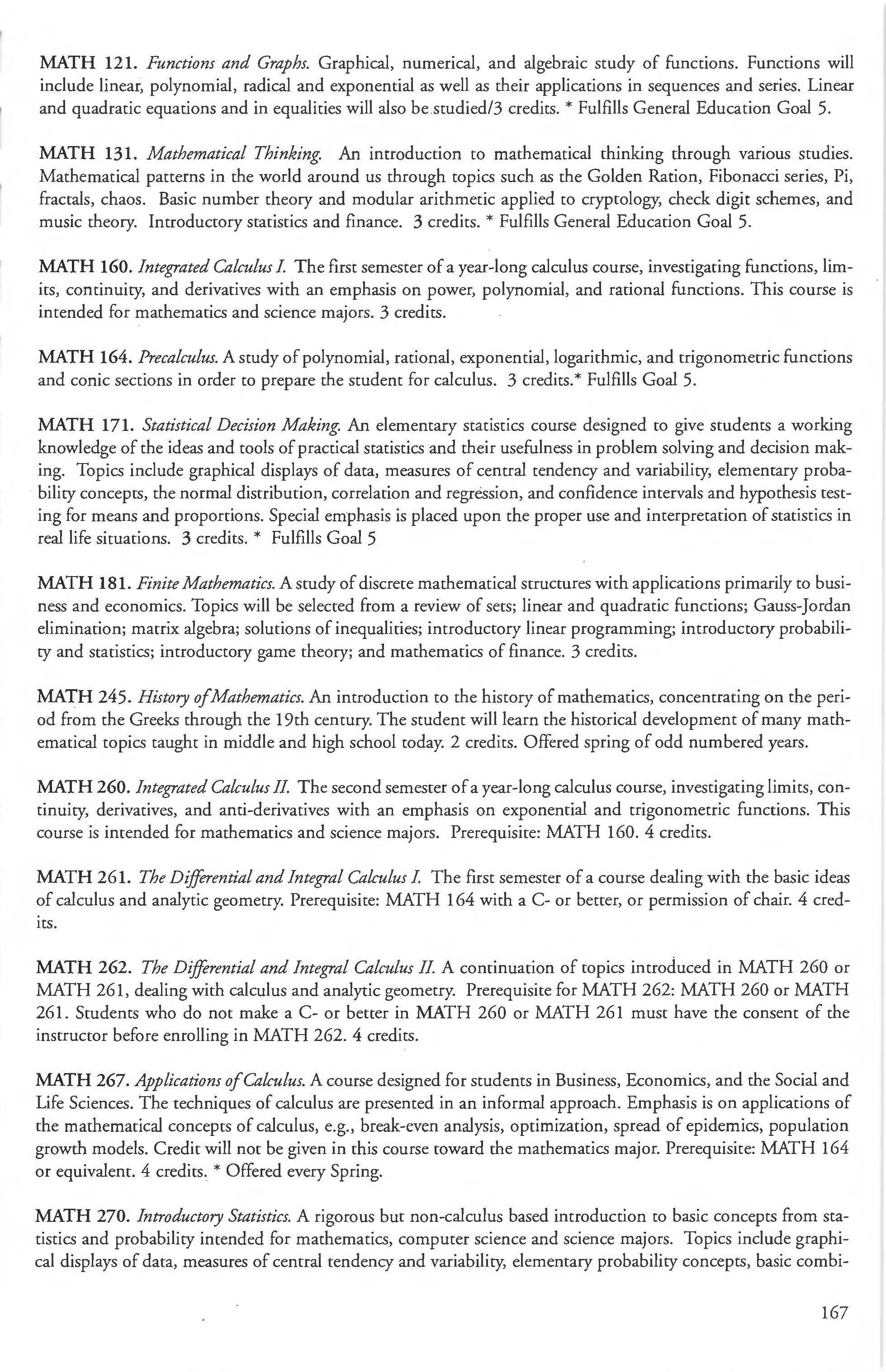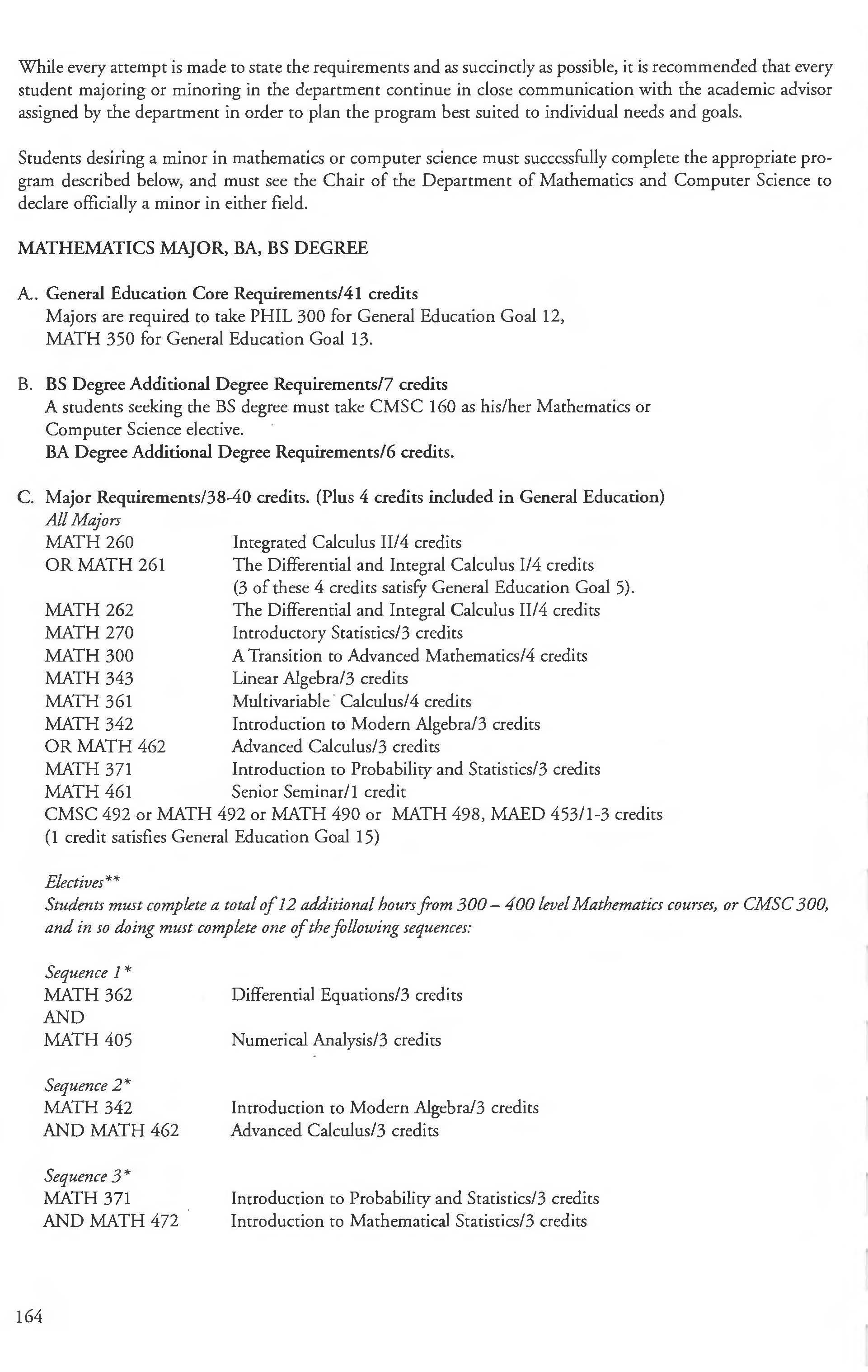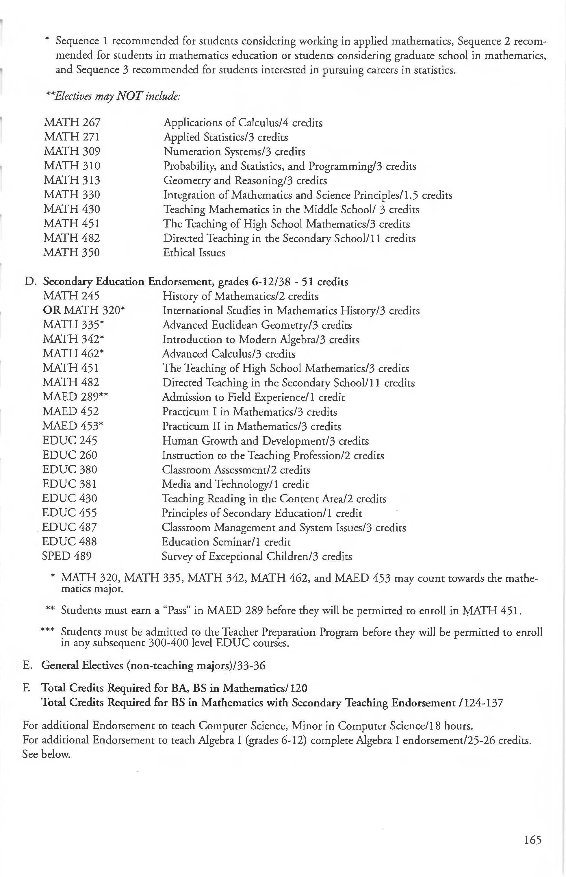 Mathematics Major, BA, Finance Courses ....... . ... . ......... 240-241 BS Degree ... ... ......... .... . .. . 164-165