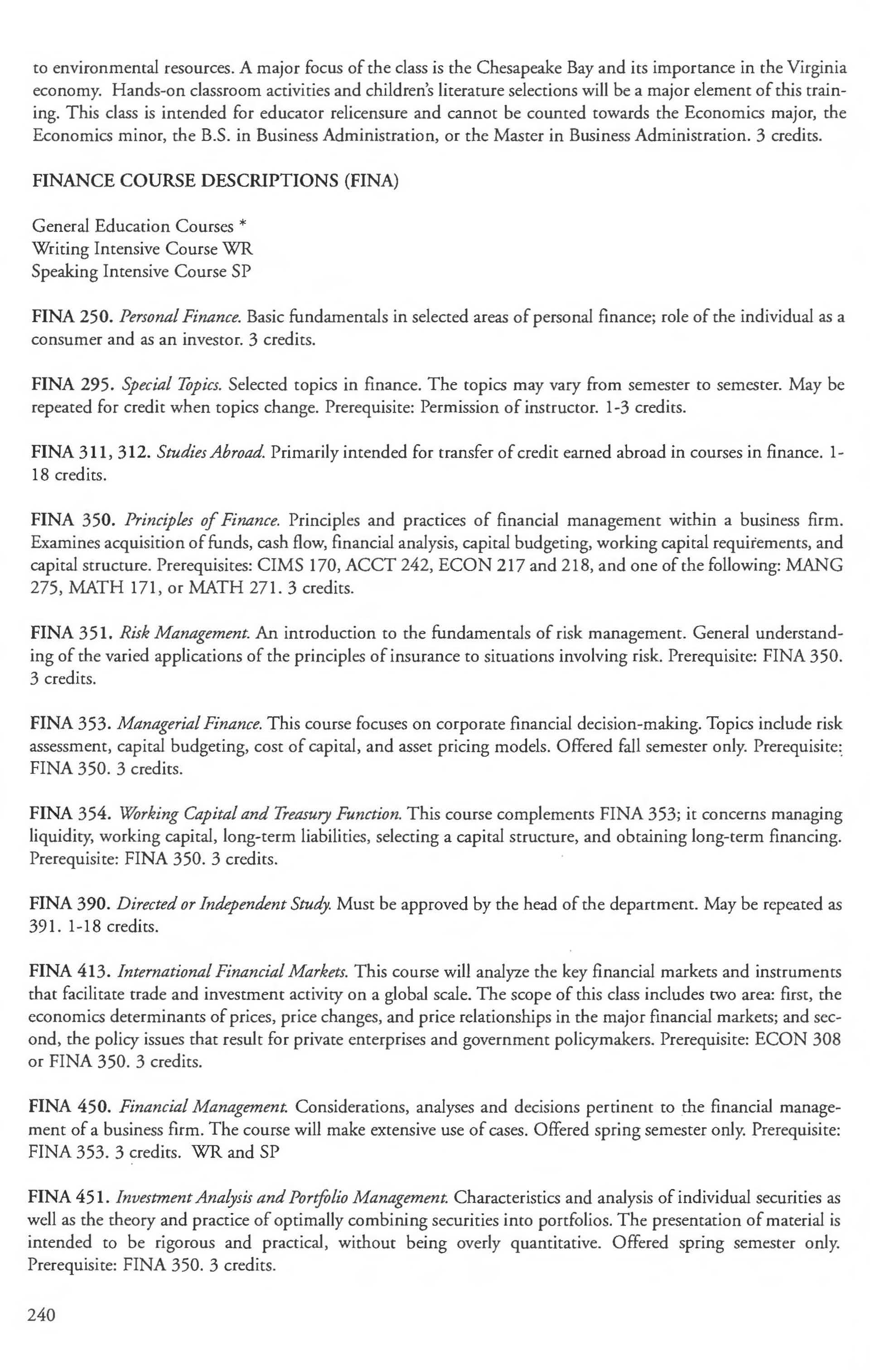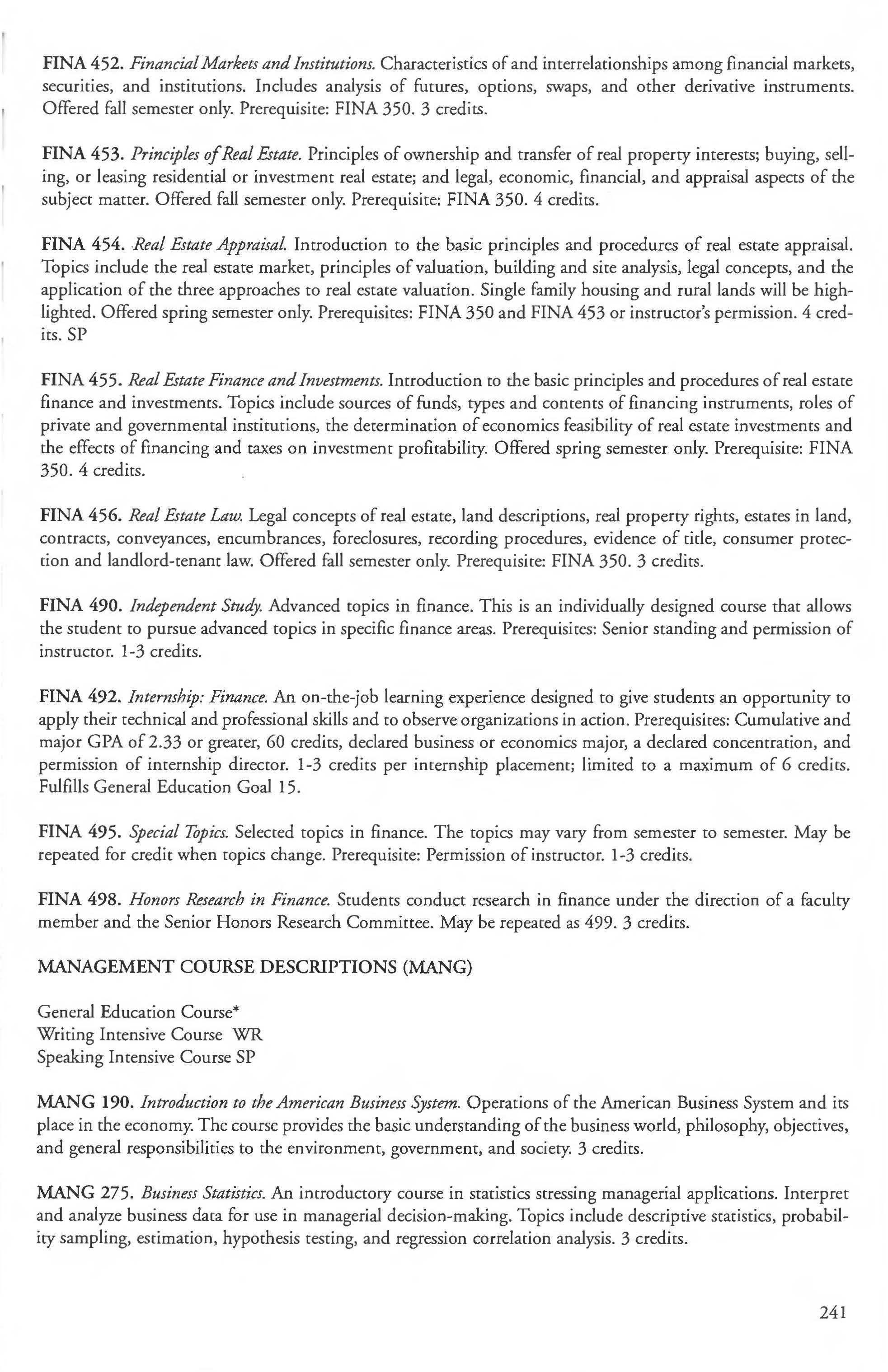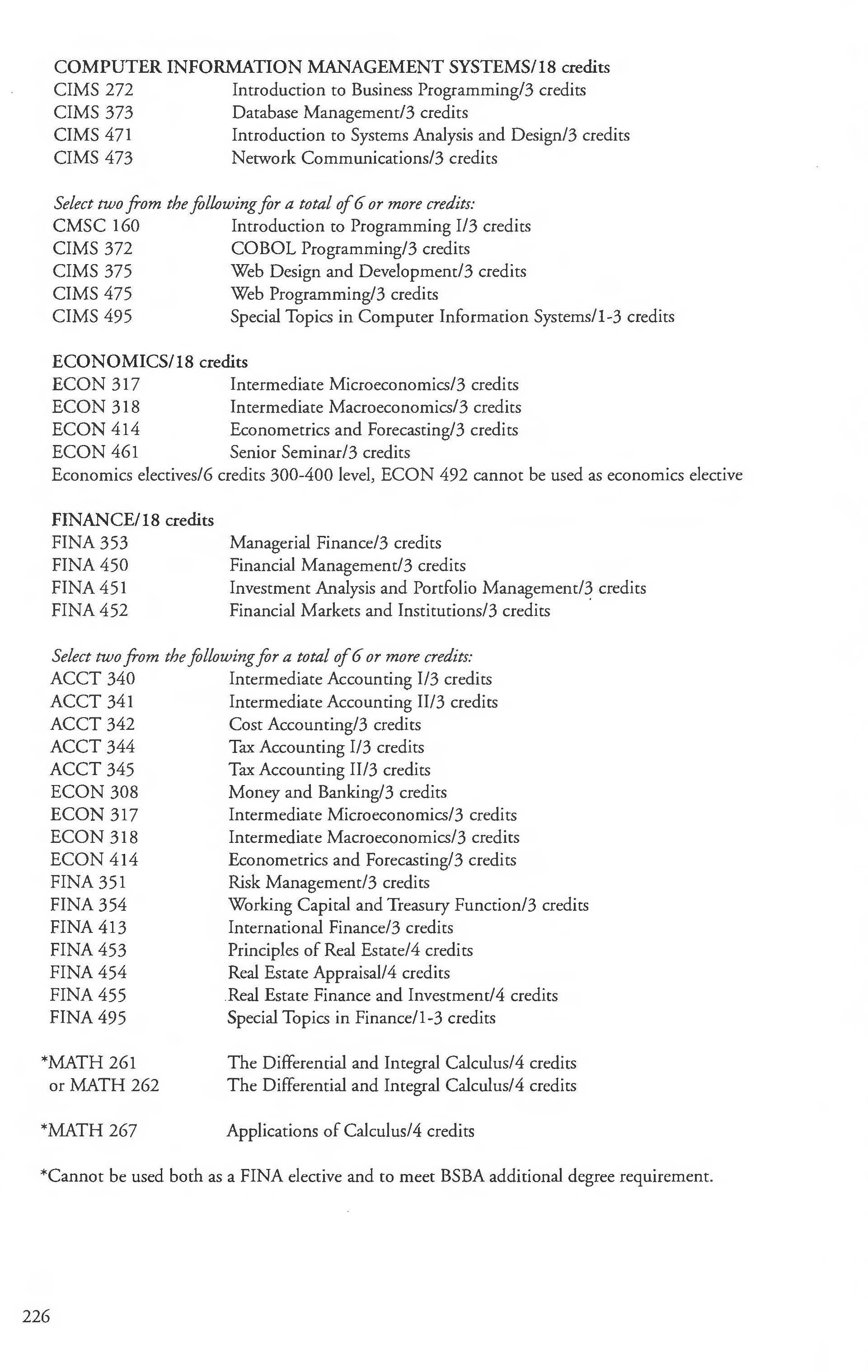 Mathematics Major, BA, Finance Courses ....... . ... . ......... 240-241 BS Degree ... ... ......... .... . .. . 164-165