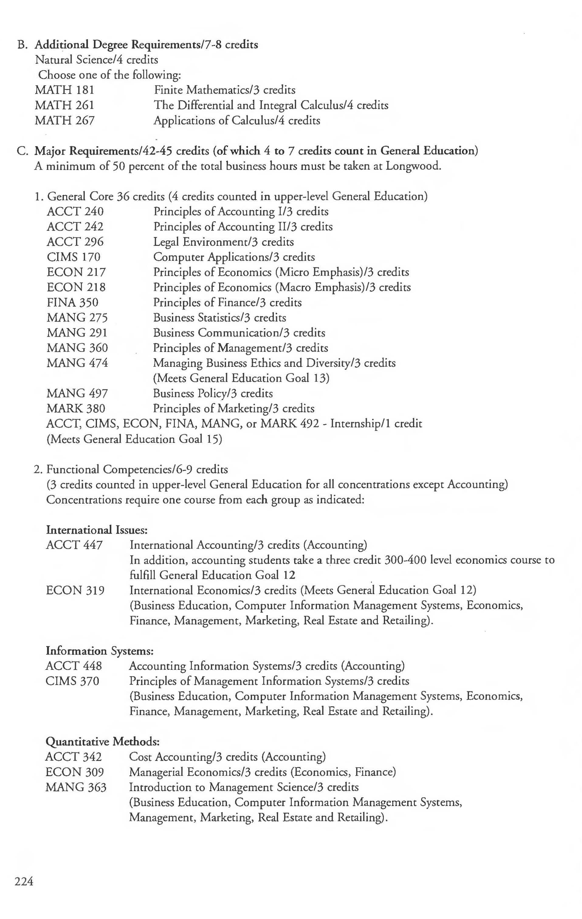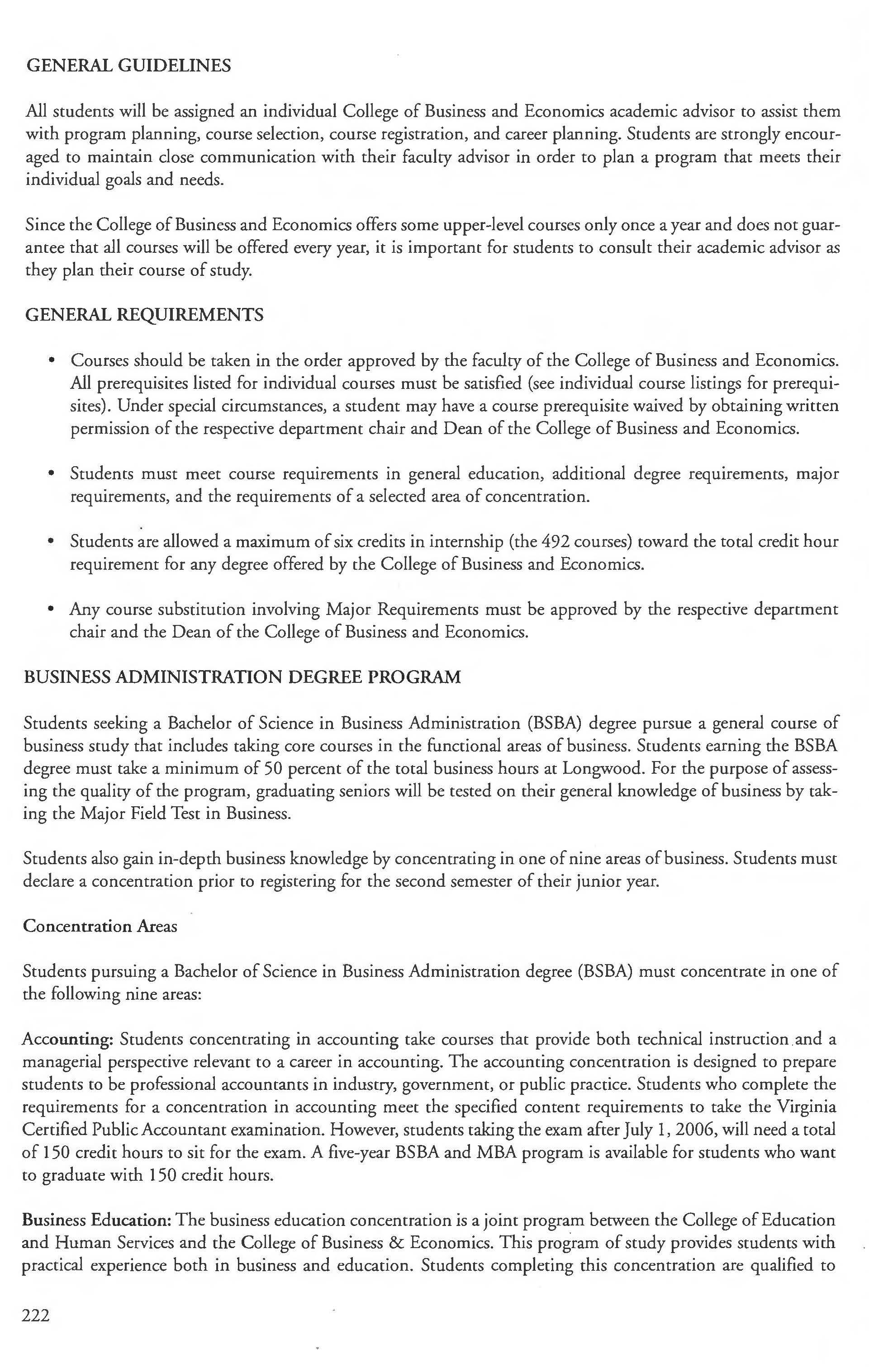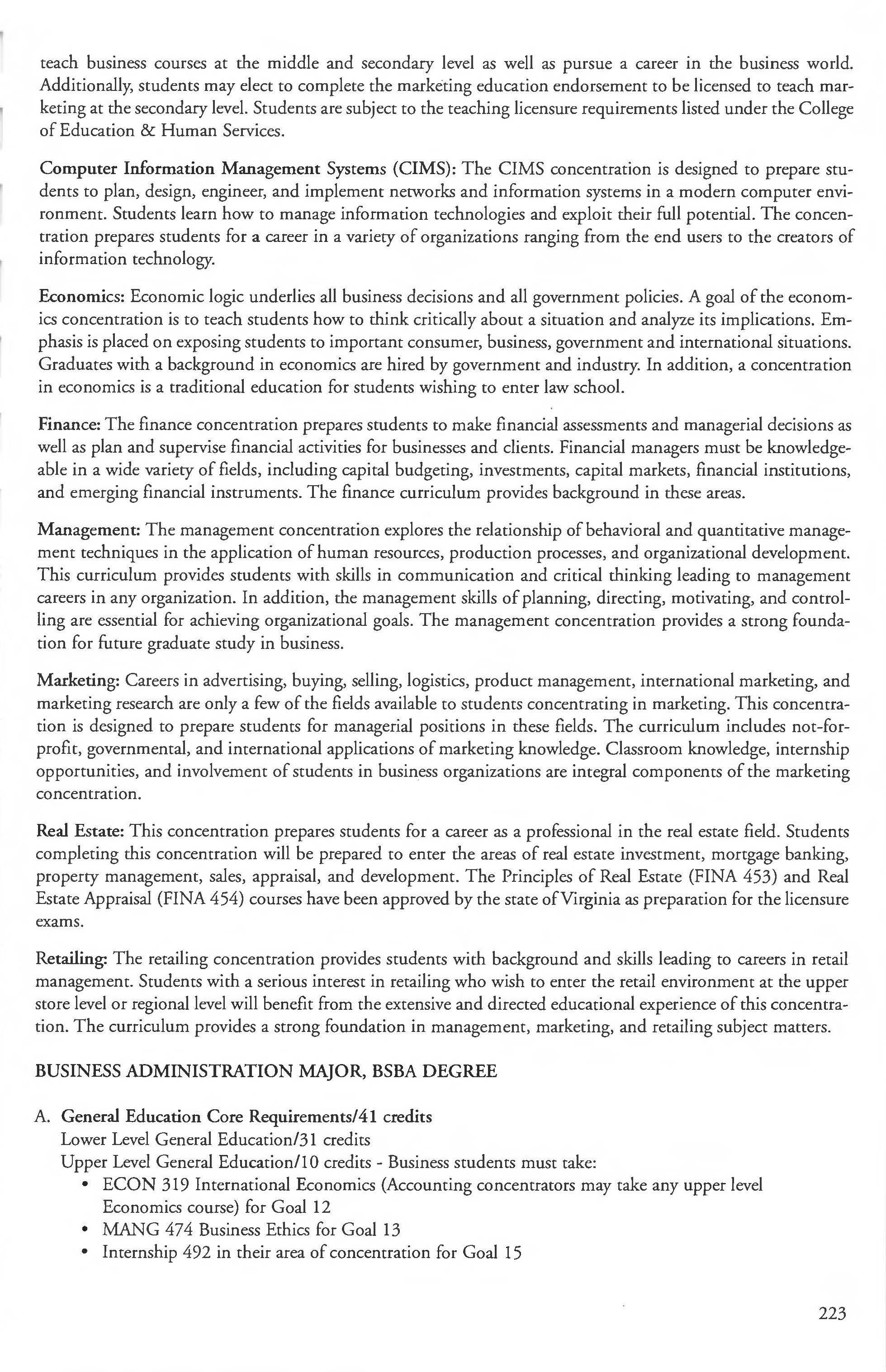 Business Major, BSBA Degree 223-228