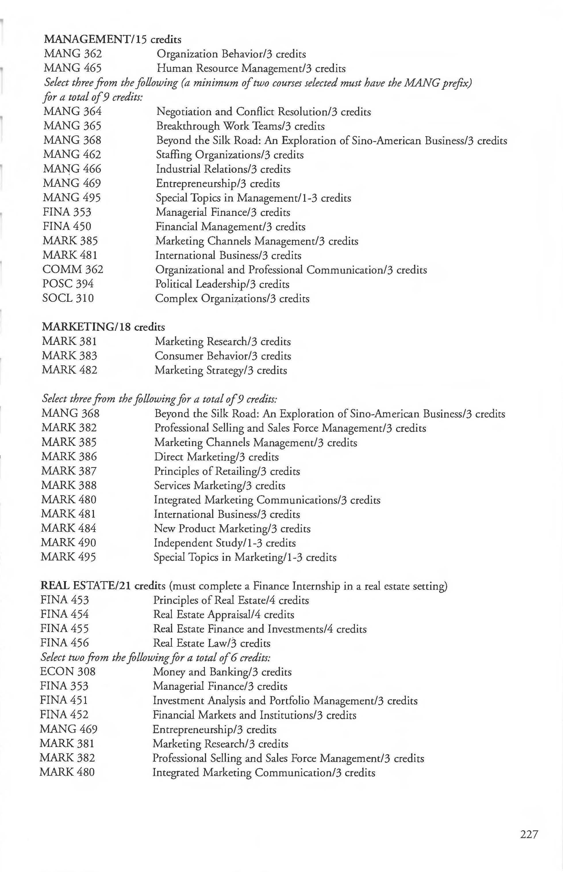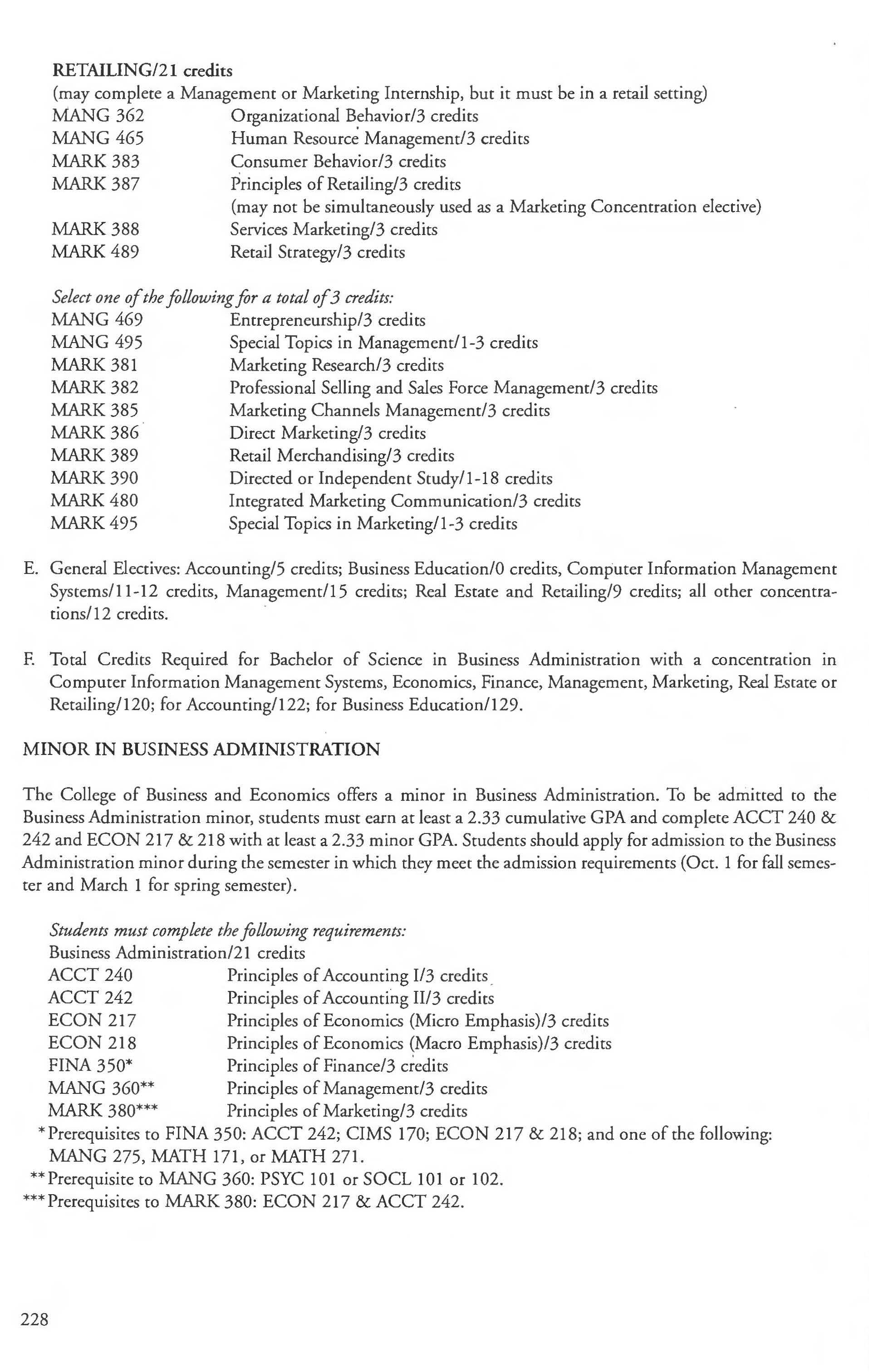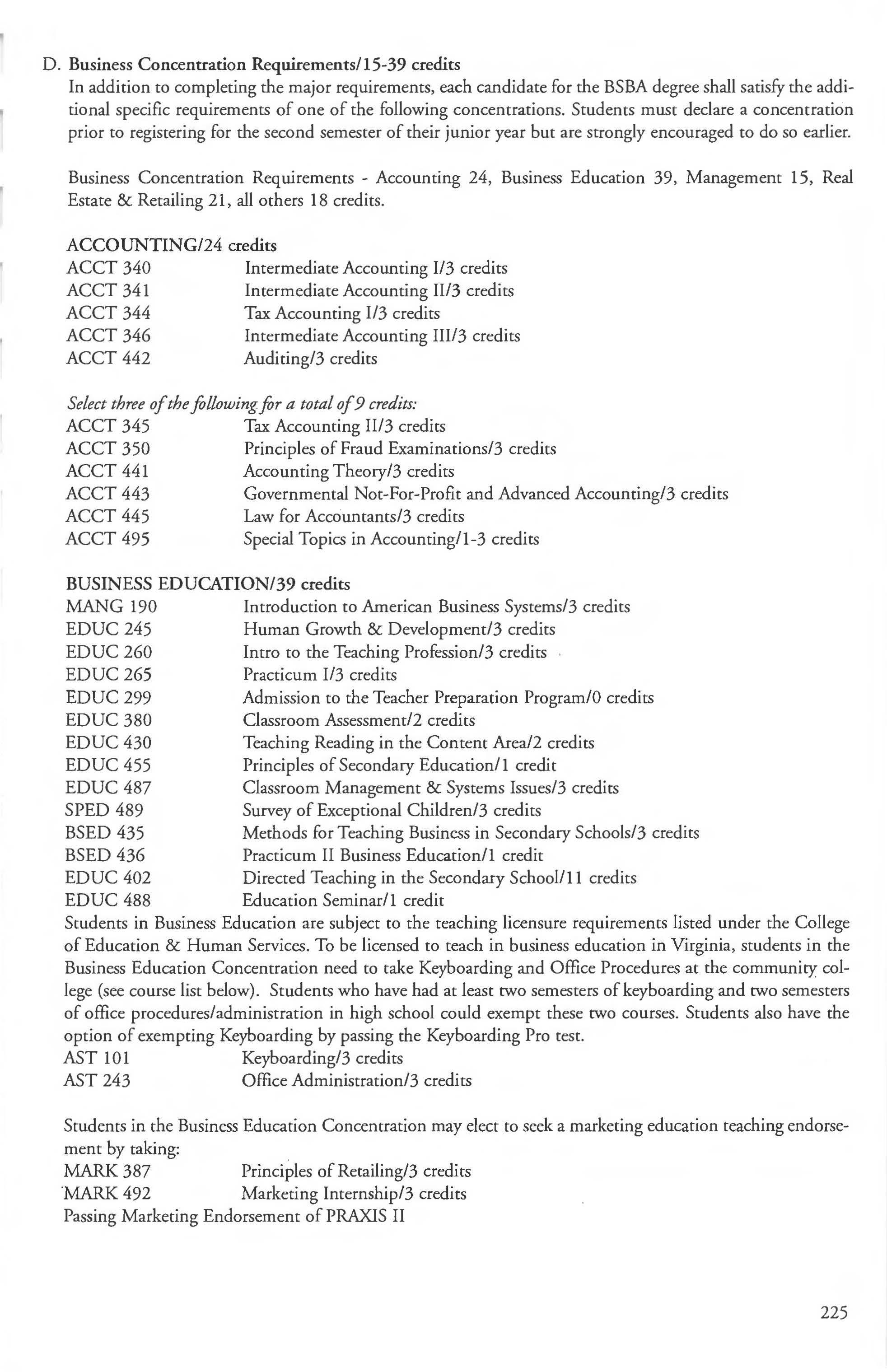 Business Major, BSBA Degree 223-228