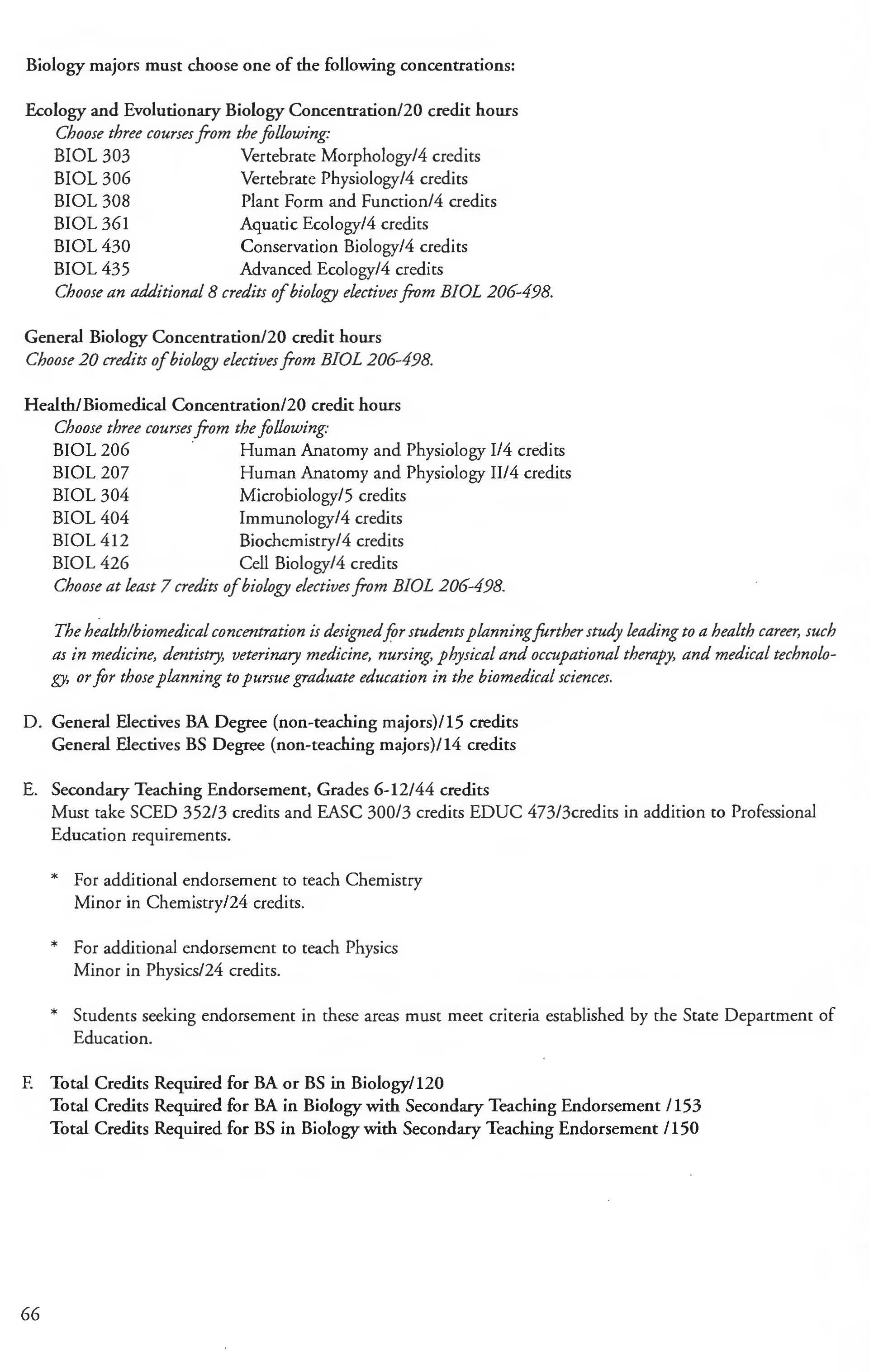Biology Major, BA, BS Degree ........... .65-66 Drop Period ..... . ................ . ...... 6 Medical Technology Concentration 72-73 Earth Science Courses 75-77 Concentration in Pre-Dentistry, Earth Science Minor .................. .... 75 Pre-Medical, Economics Major ................. ... 230-232 Pre-Physical Therapy, or Economics Courses 236-240 Pre-Veterinary Medicine .......... .... 73-74 Economics Minor . ... ..... . .......... ... 232 Biology Minor 67 Education Courses 255-258