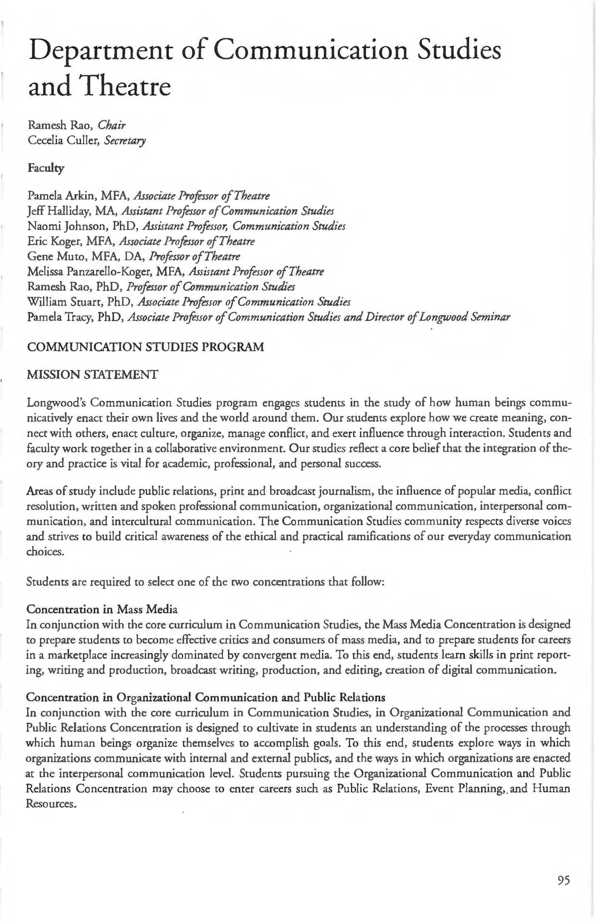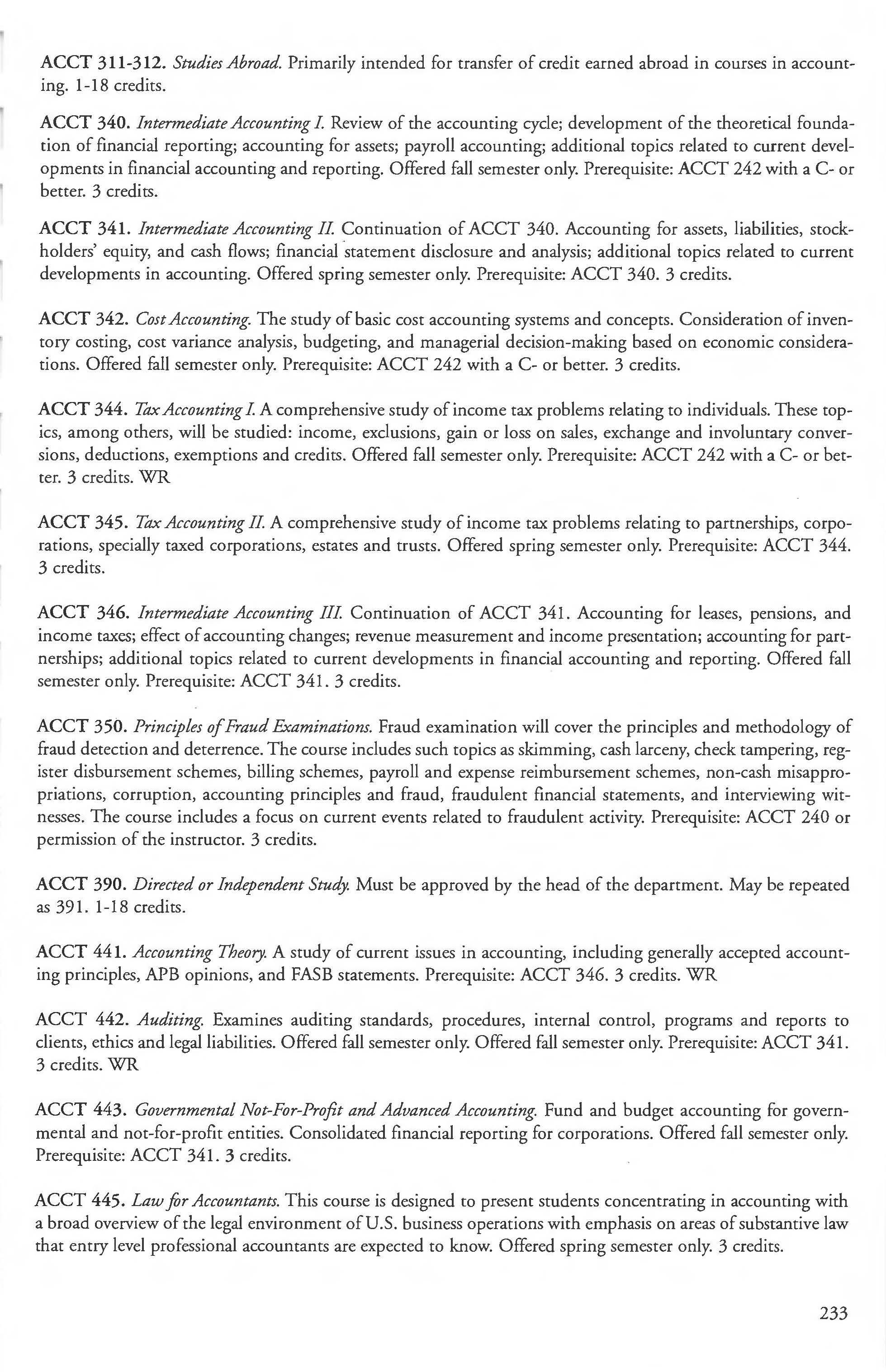 Communications Studies and Theatre, Accounting Courses 232-234 Dept. of 95