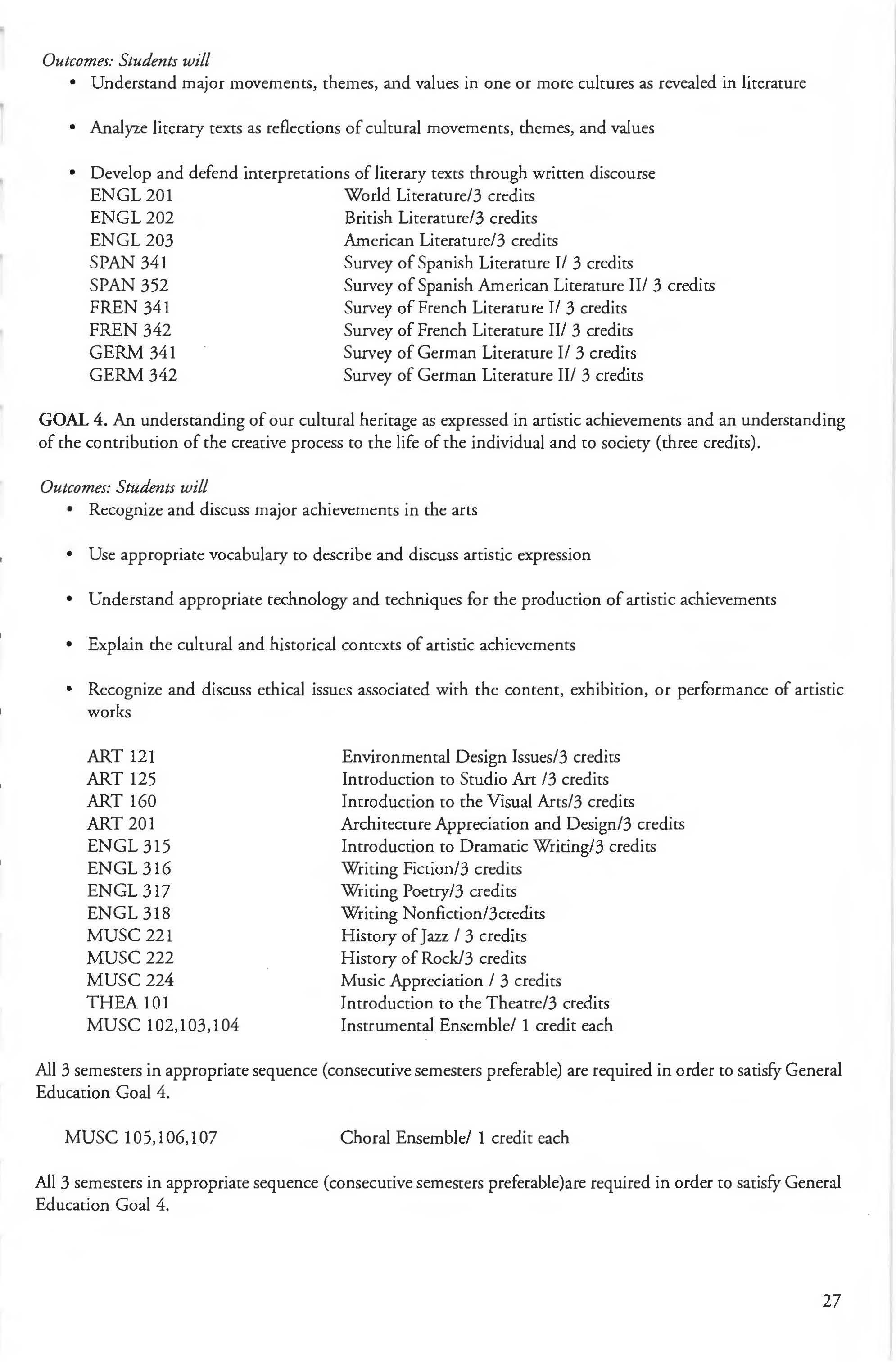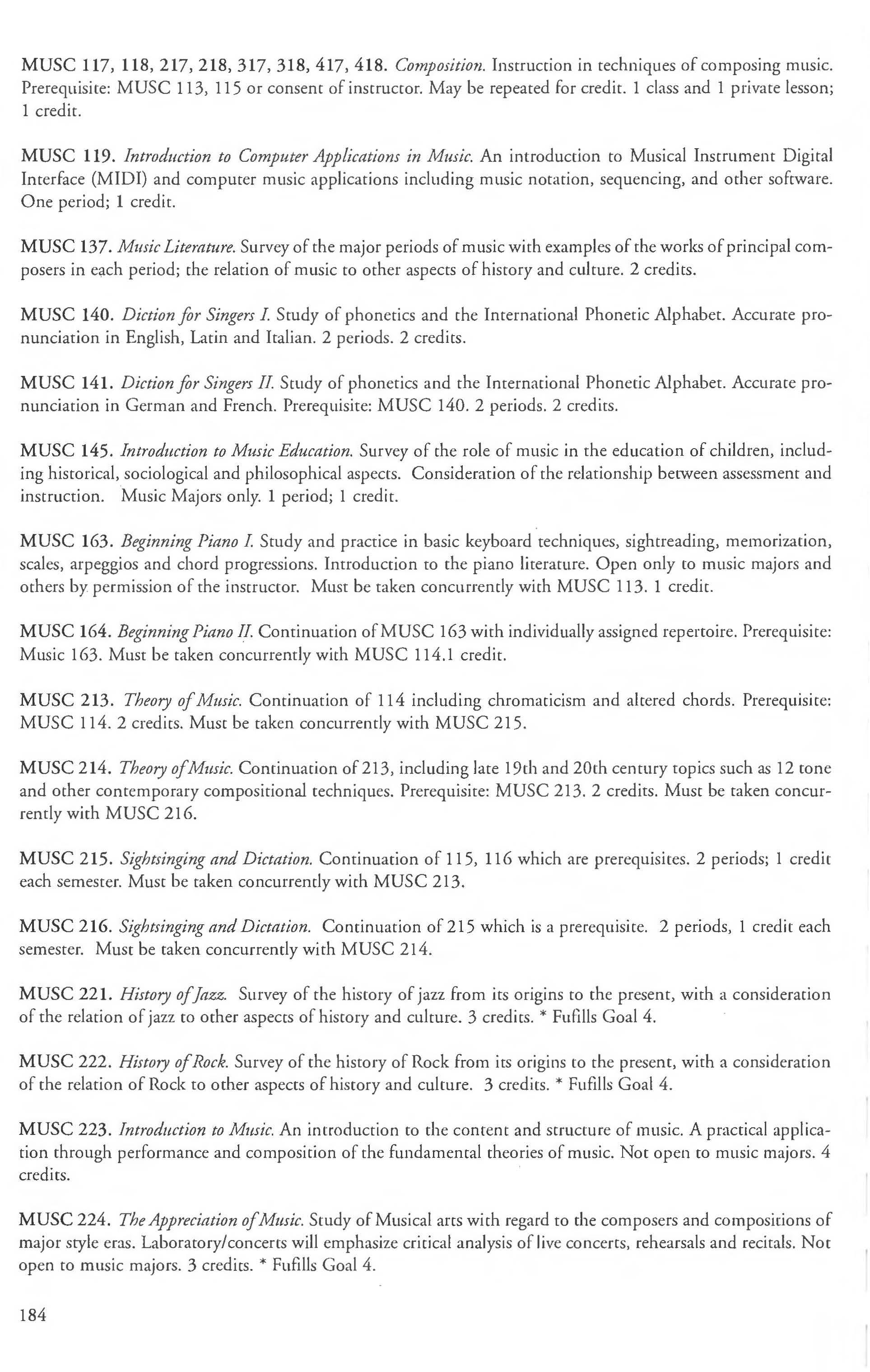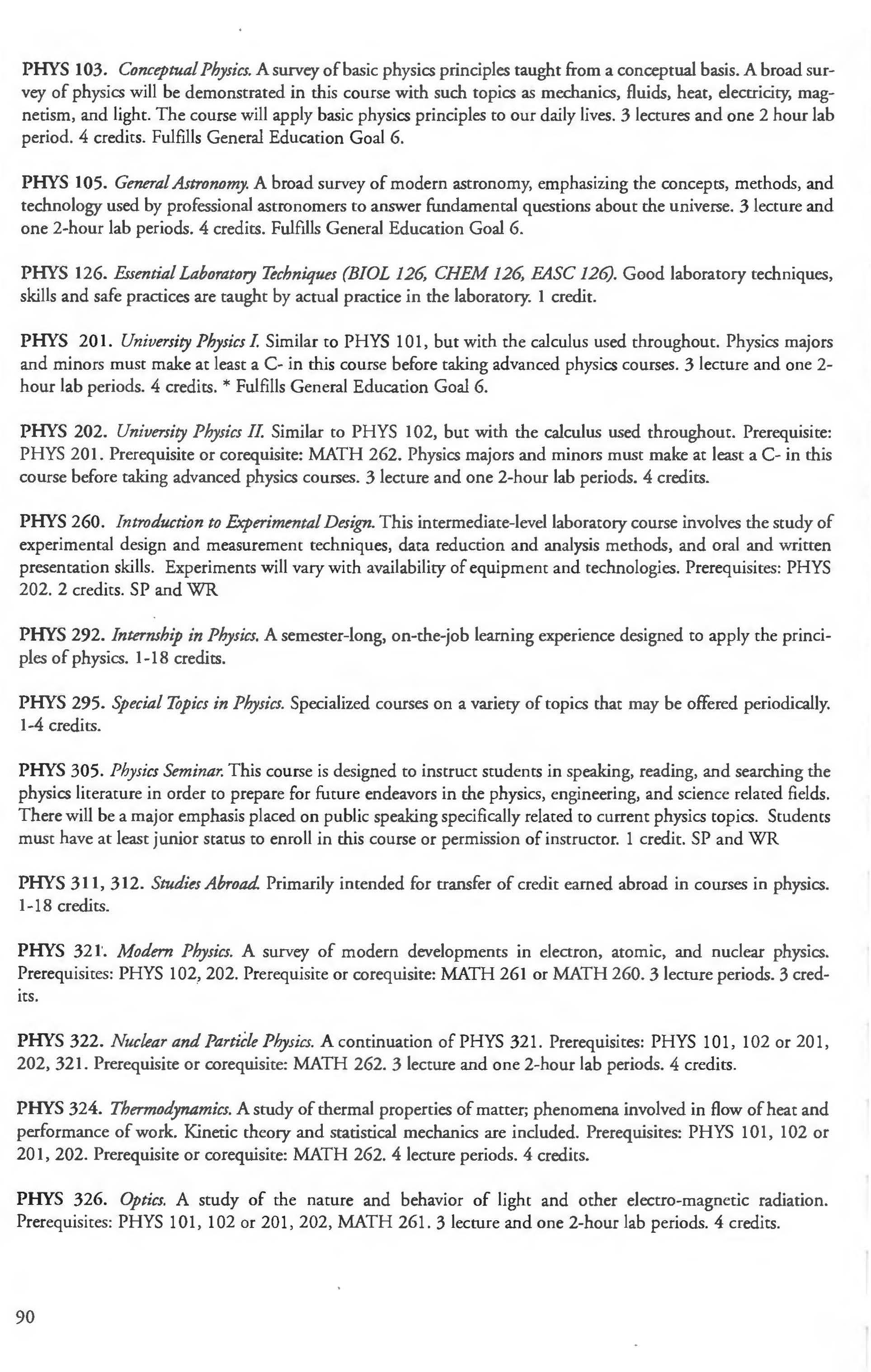 The courses listed in this catalog that are numbered between 100 and 199 are designed primarily for first and second year students; those between 200 and 299 are for first, second, and third year students; chose between 300 and 399 are for second, third, and fourth year students; and those between 400 and 499 are for third and fourth year students. Courses numbered from 500 to 599 are for graduates and advanced undergraduates; courses numbered 600 to 699 are for graduates only.