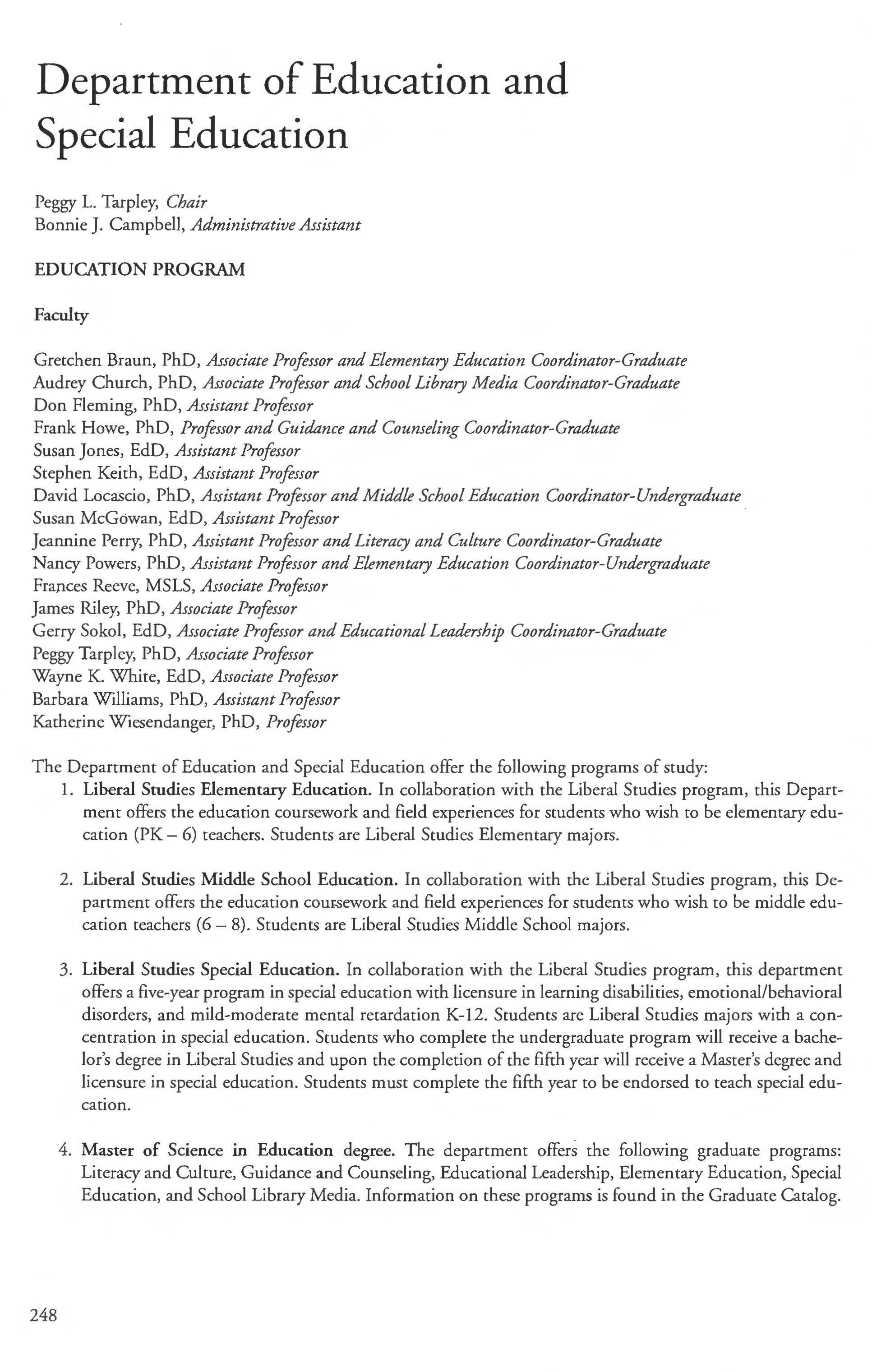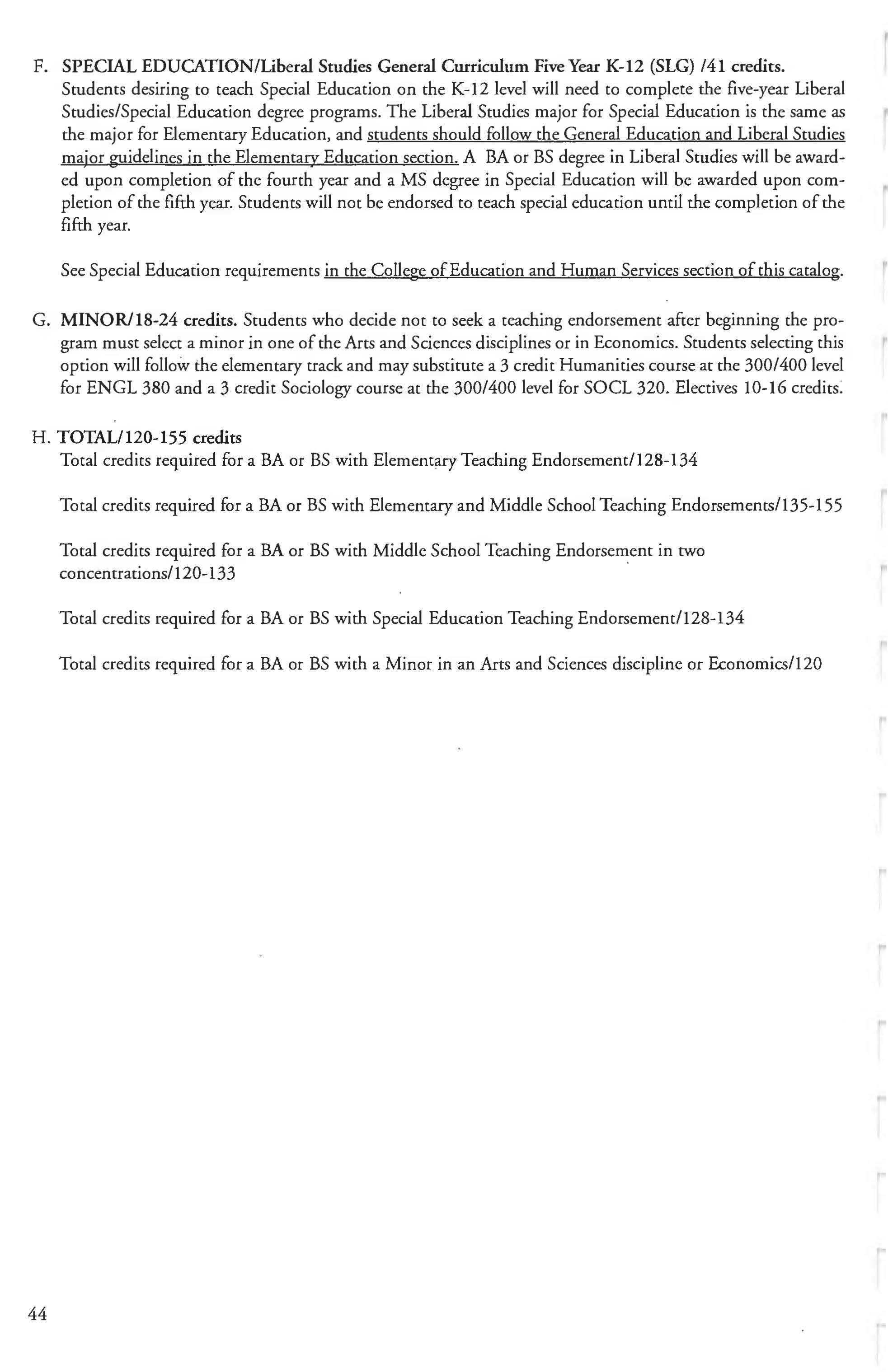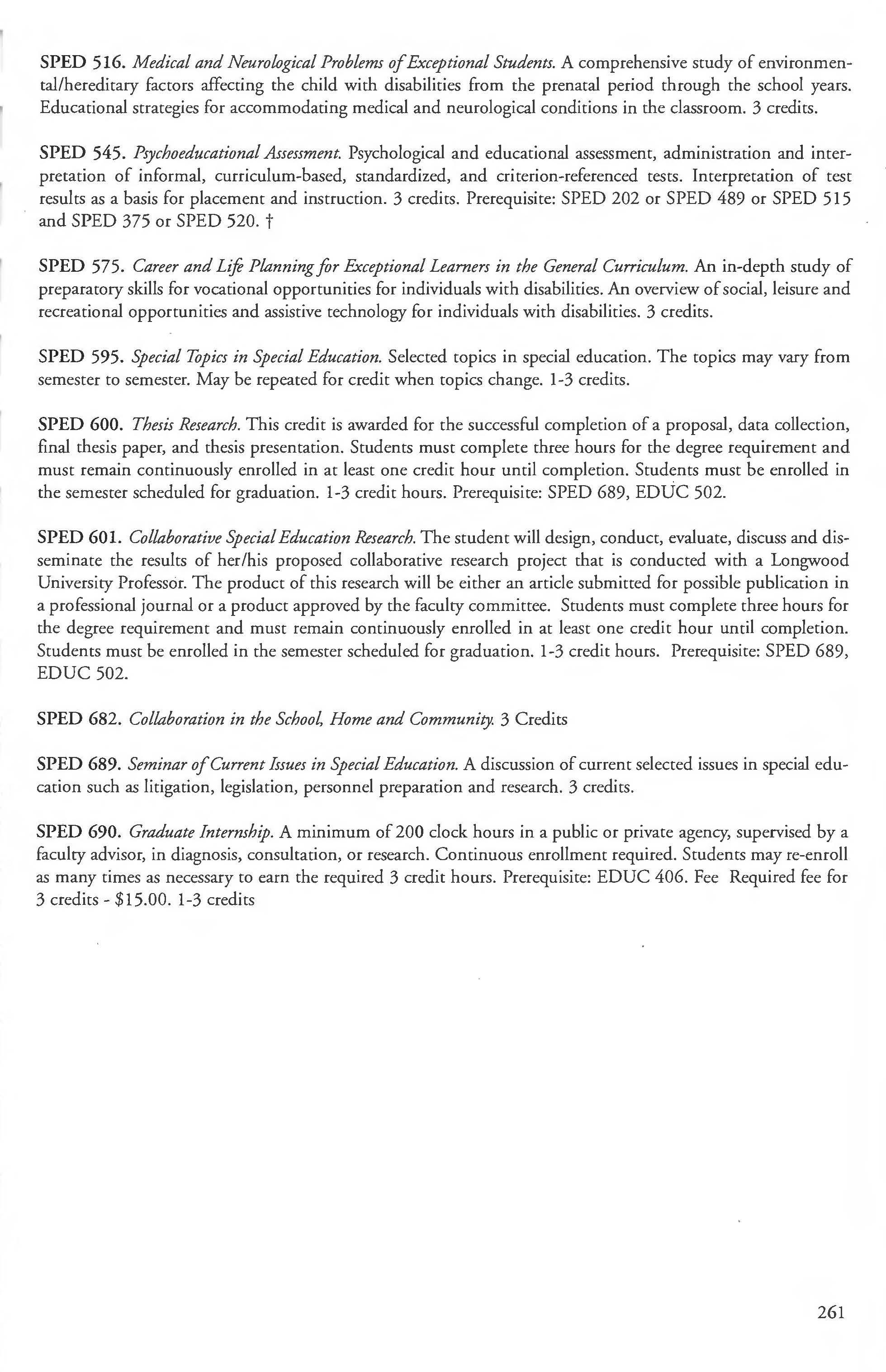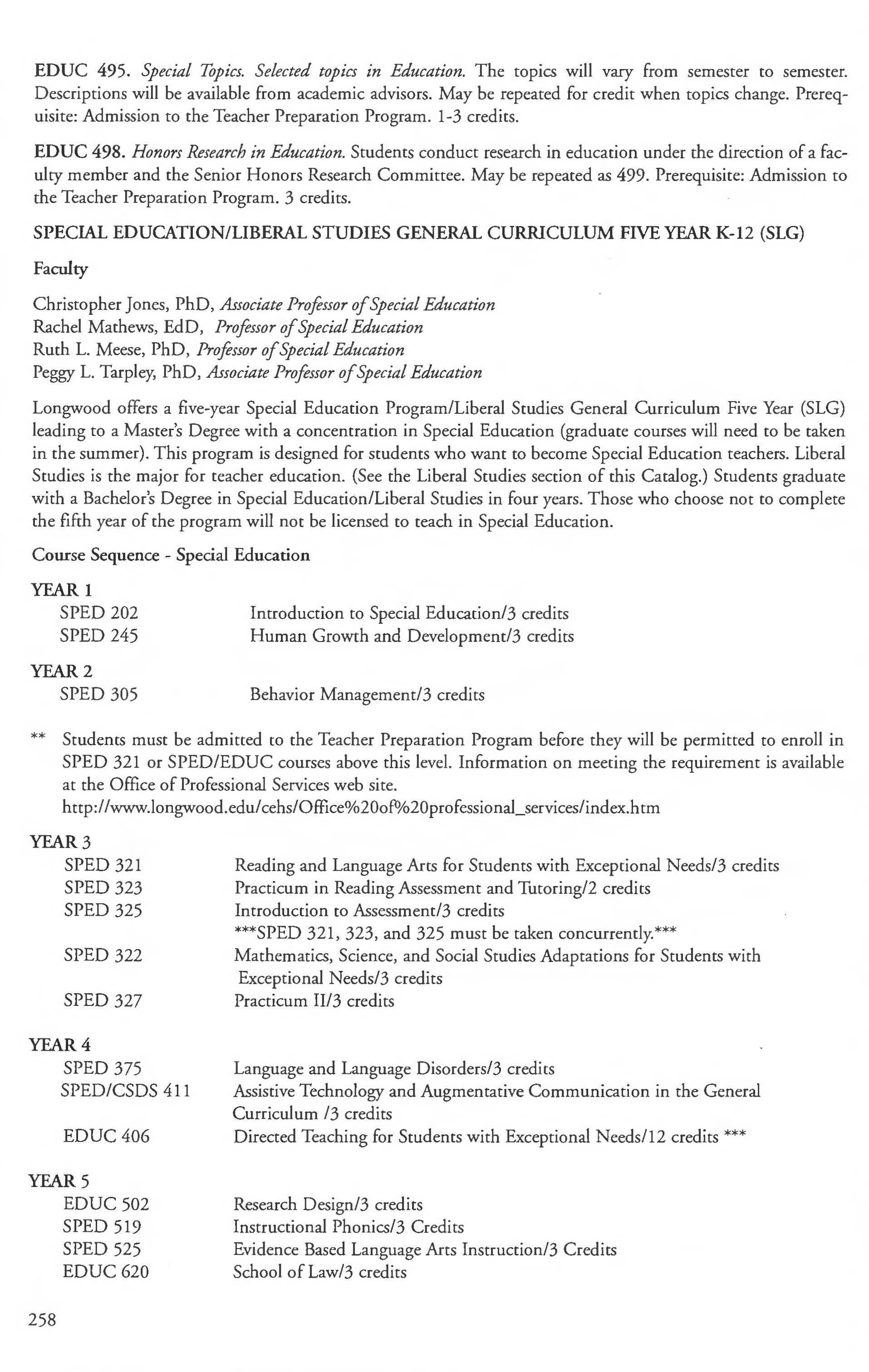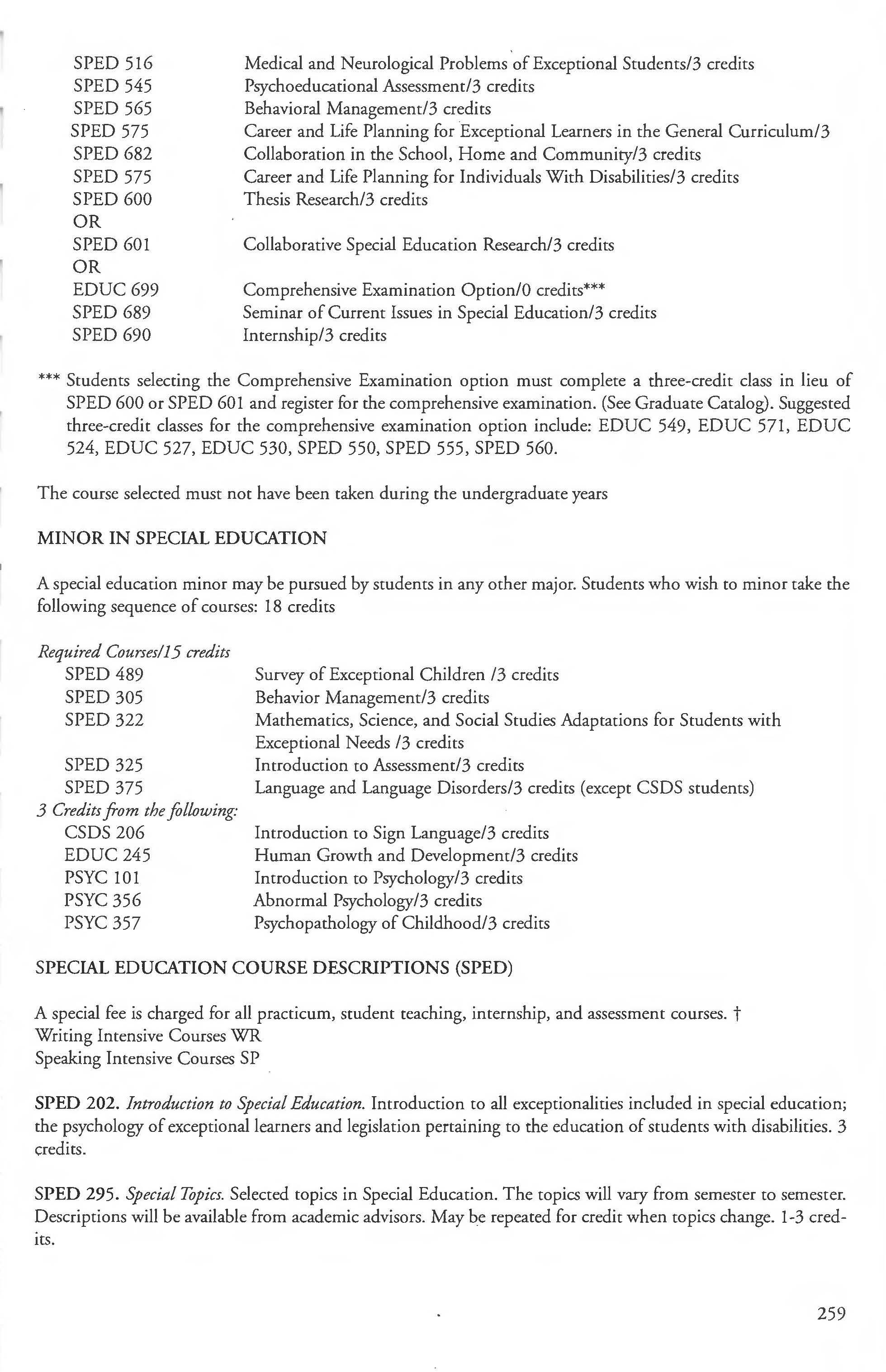 Special Education Minor .................. 259 Student Load 5