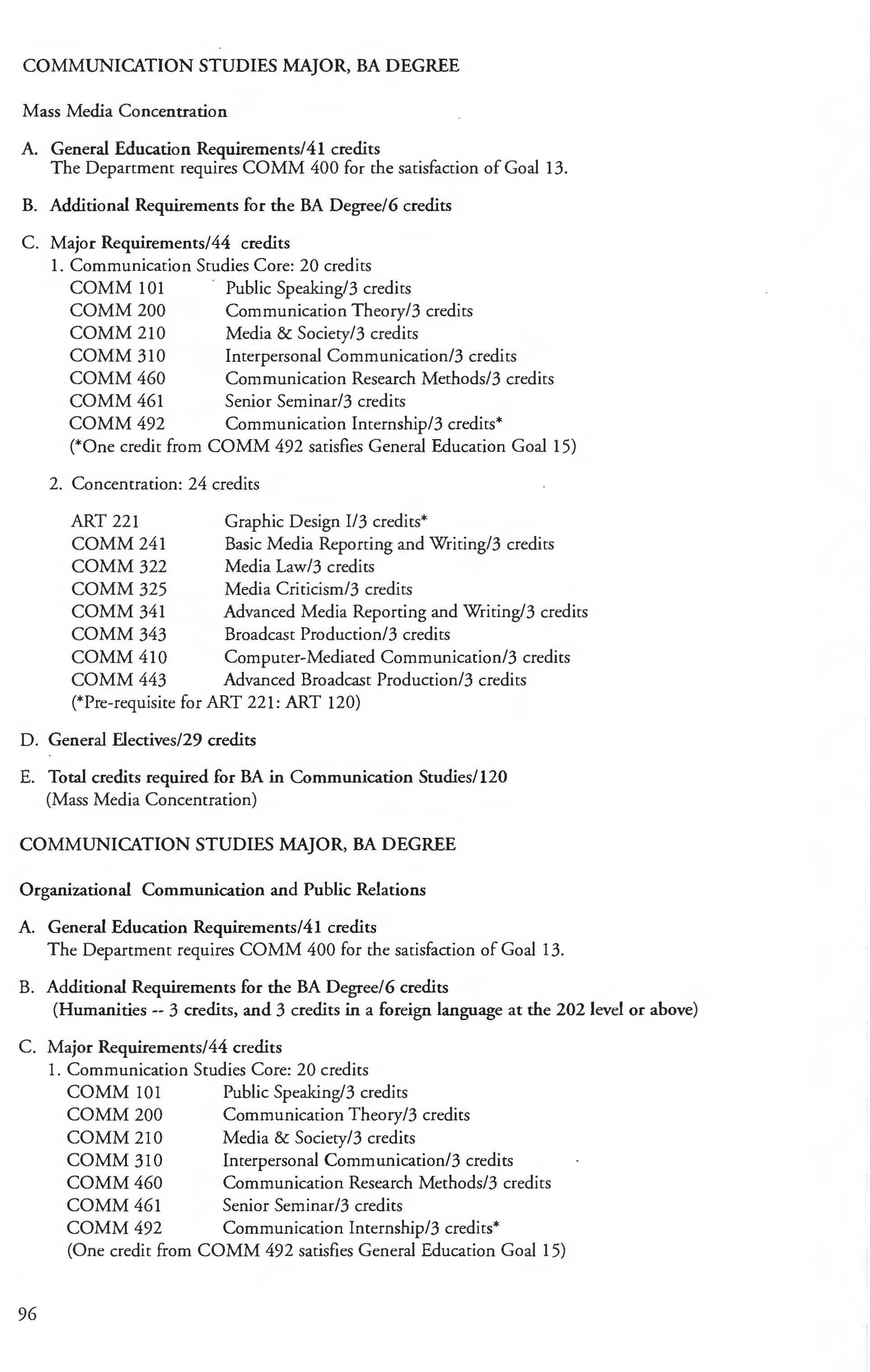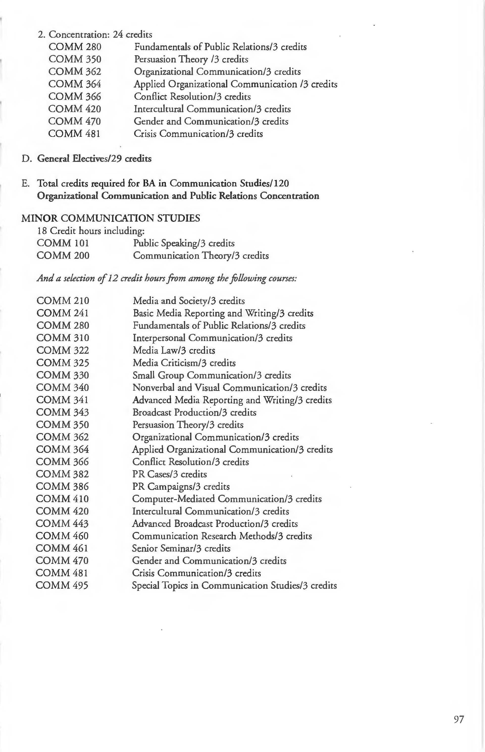 Academic Programs of Study ................ 18 Communications Studies Major .......... .96-97 Academic Regulations 4-16 Communications Studies Minor 97 Academic Requirements 20-24