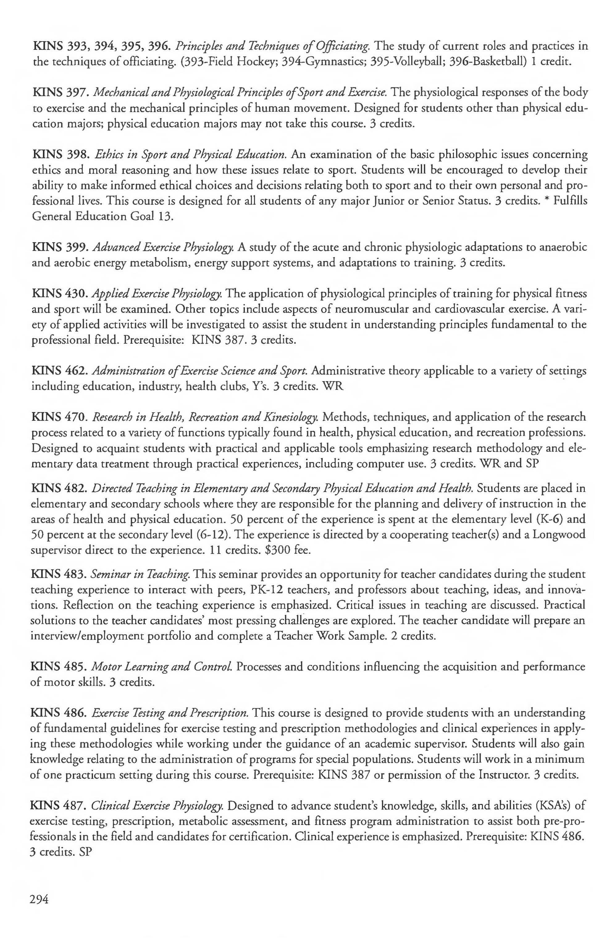 KINS 498. Honors Research in Physical Education. Students conduct research in physical education under the direction of a faculty member and the Senior Honors Research Committee. May be repeated as 499. 3 credits. WR