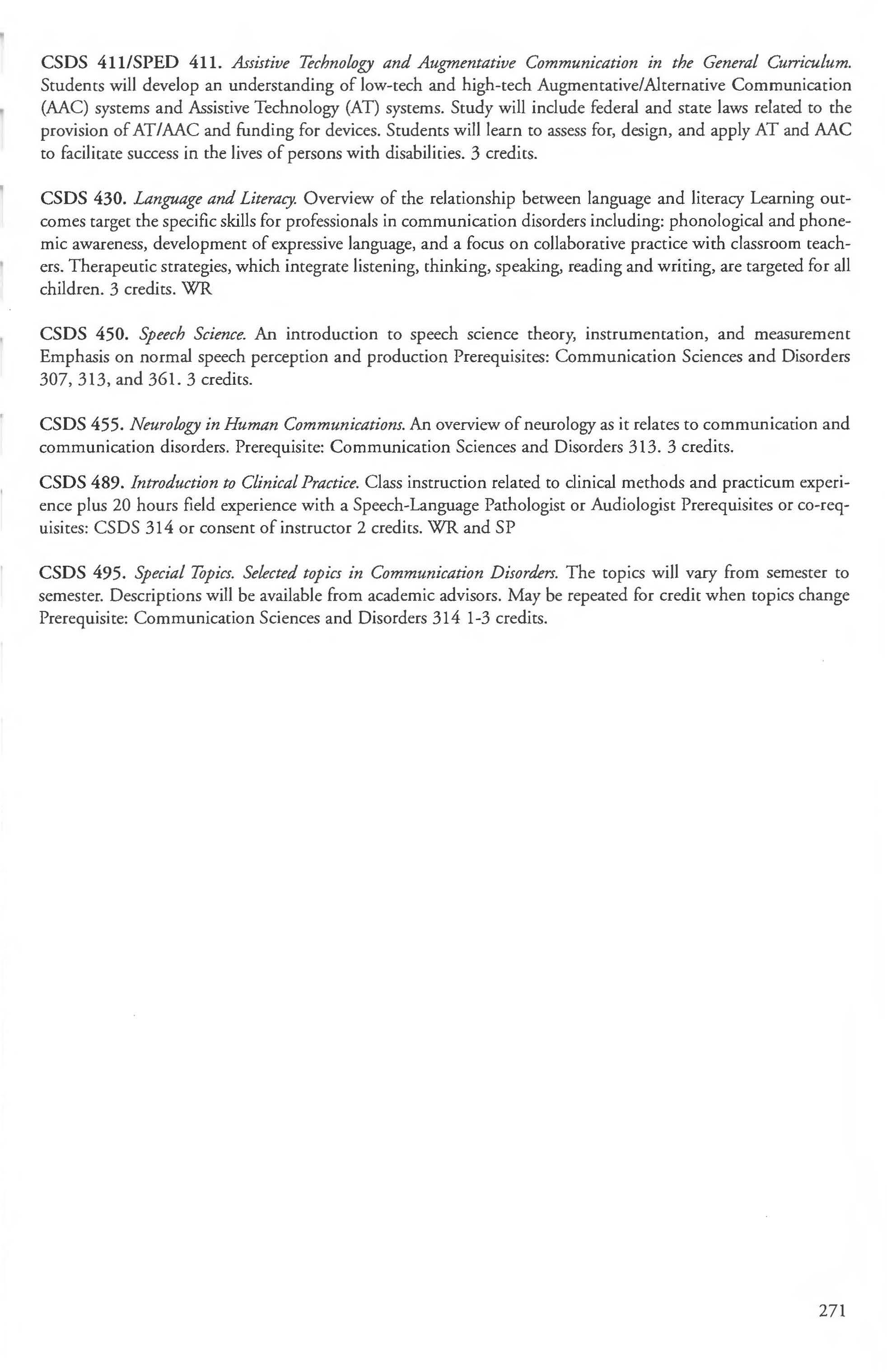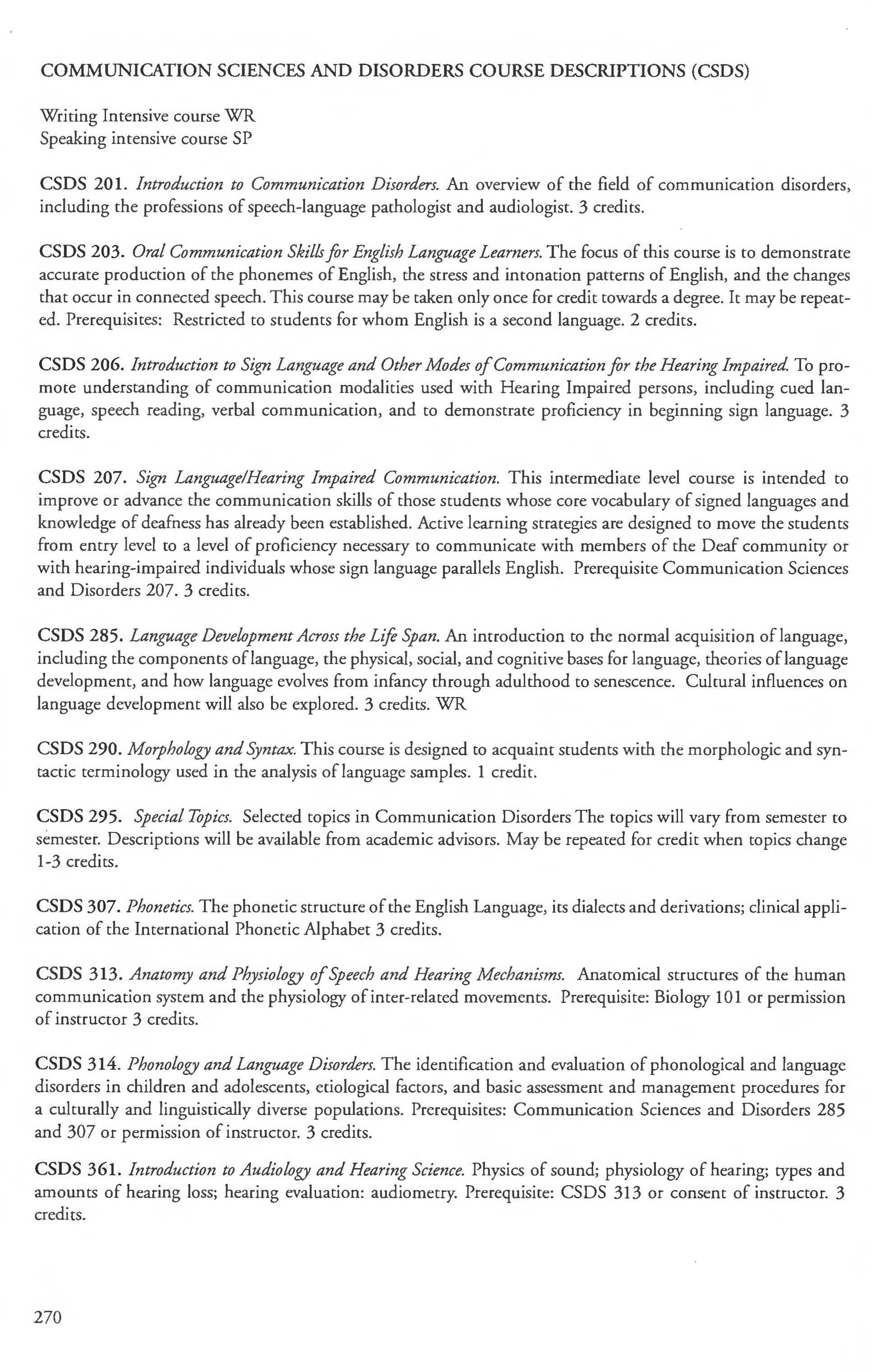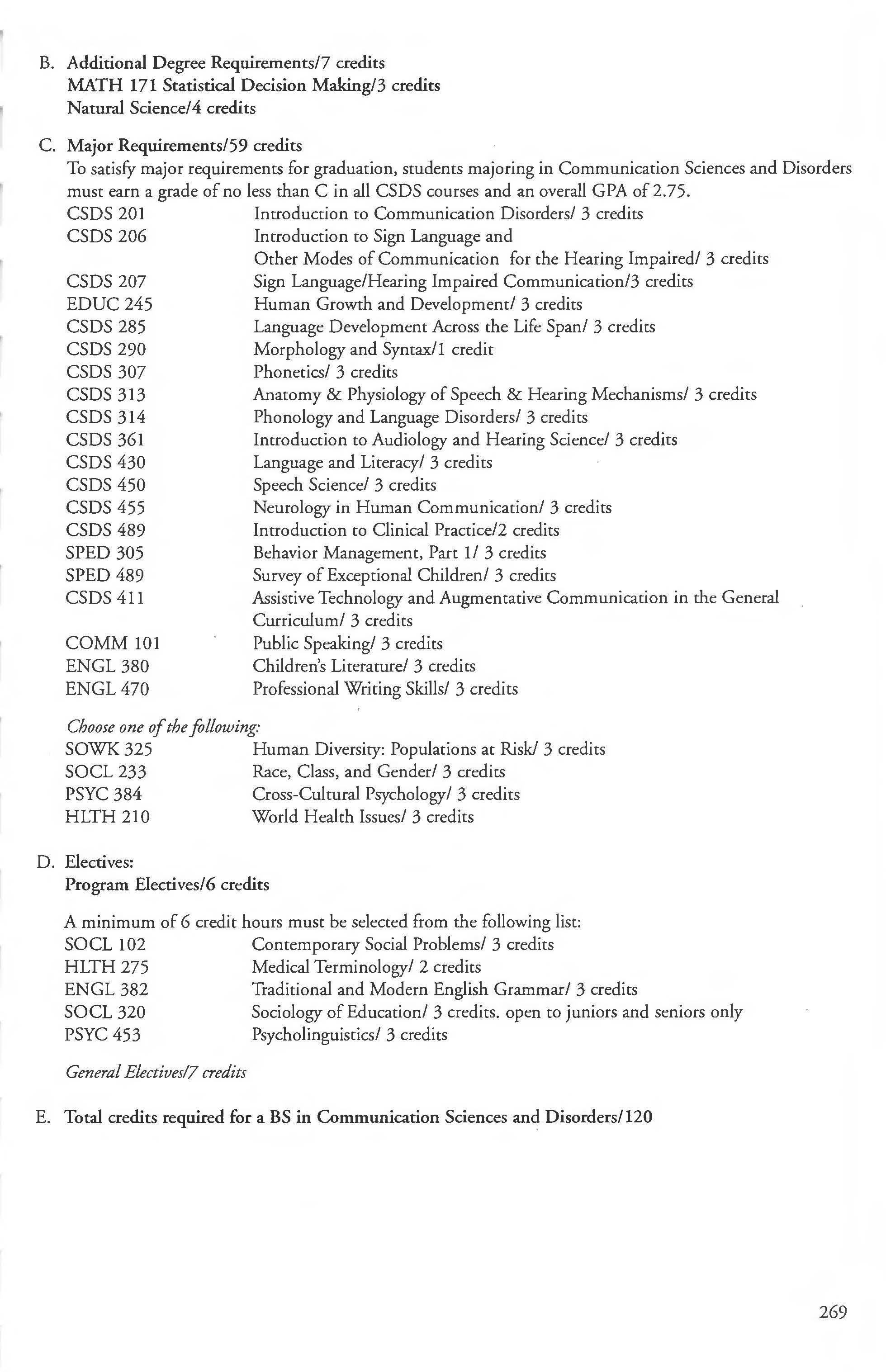 Communication Sciences and Disorder Academic Calendar ... ...... . ....... . .. . .. .2 Major BS ... . ............. .. .. . .. 268-269