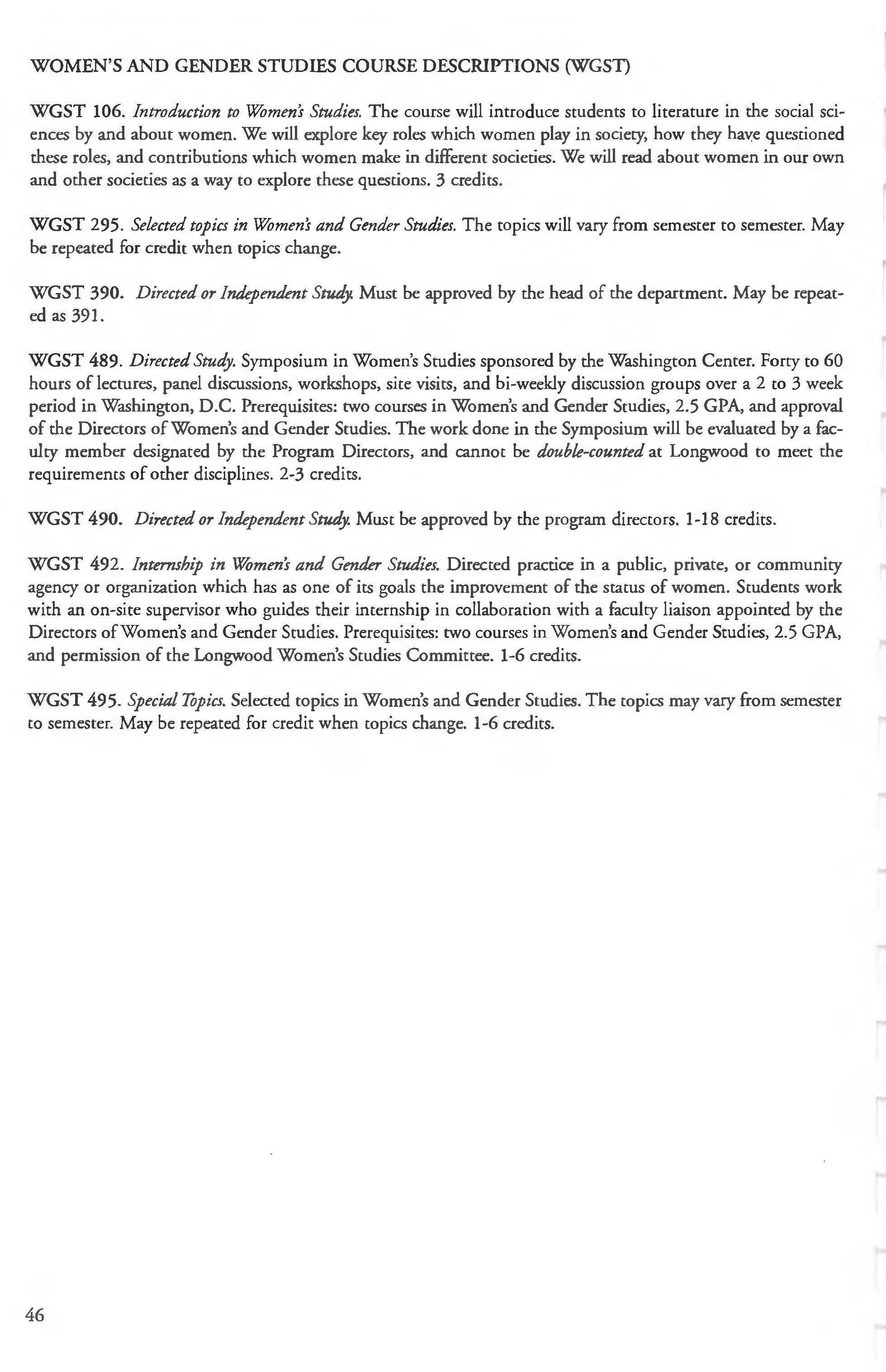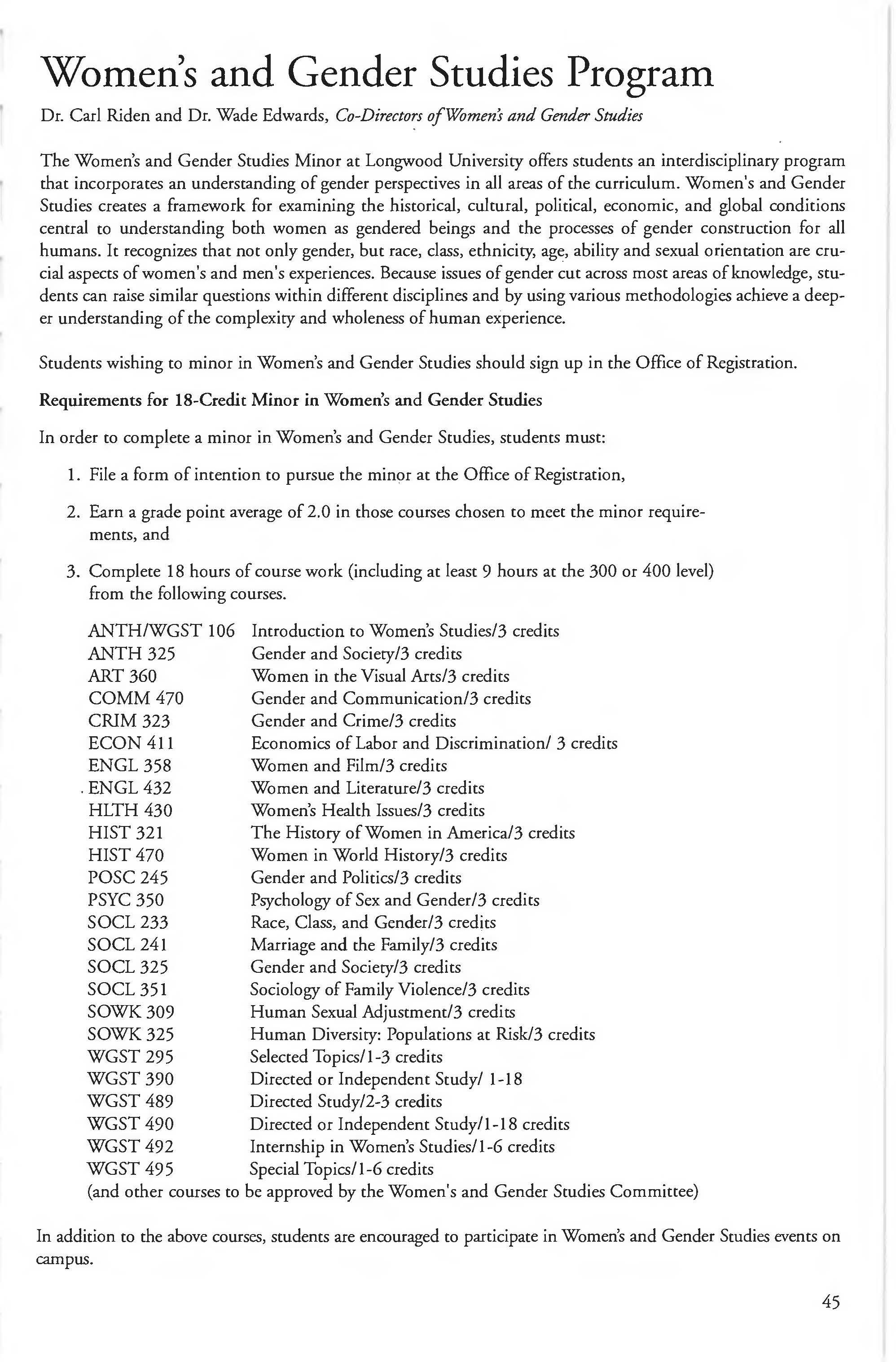 Withdrawal Policy 7-8 Women's & Gender Studies Program 45-46