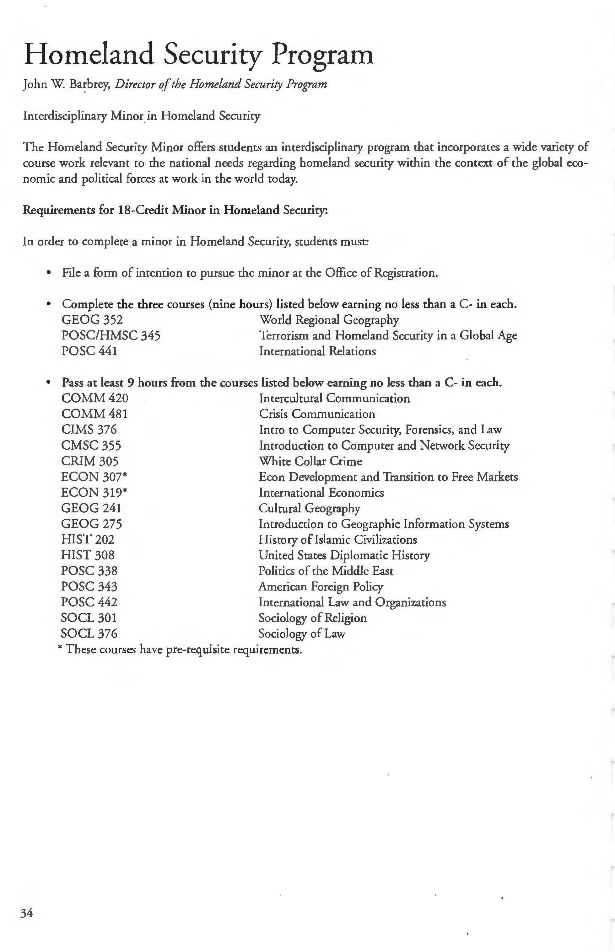 College of Arts and Sciences Homeland Security International Studies