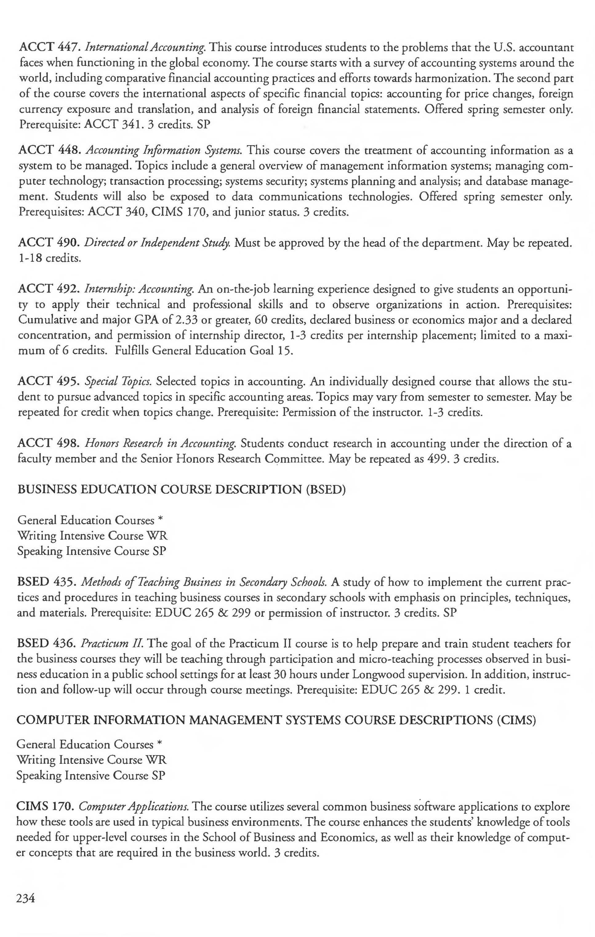 Accounting Program . .... . ............ .. . .222 Computer Information Management Accreditation 1 Systems Courses 234-236