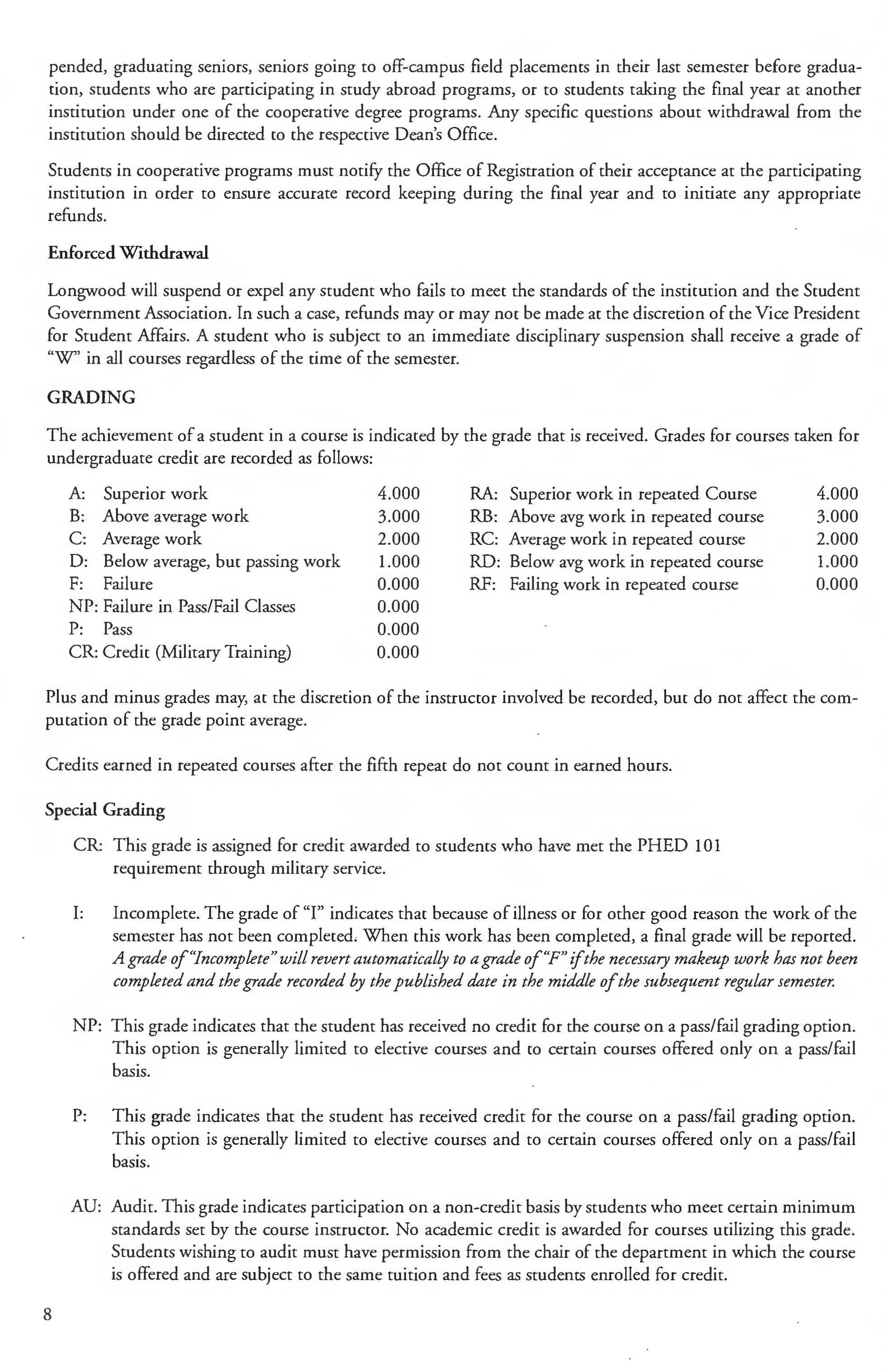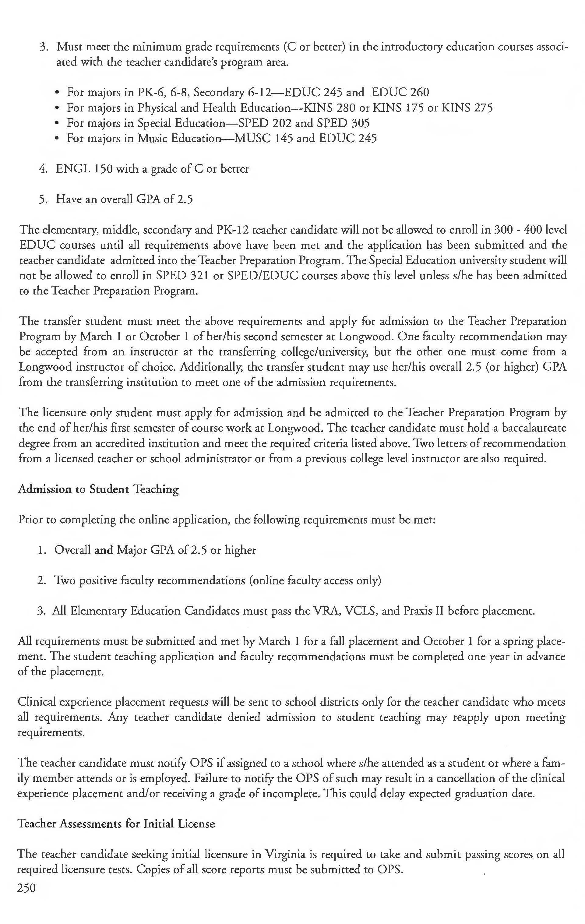 Longwood University reserves the right to require a series of student proficiency assessment tests prior co graduation. The purpose of these assessment tests is to help individual students develop to their fullest potential and co improve the educational programs of the institution. Students are required to participate; students who fail to participate may lose their priority ranking for registration and housing. The institution may withhold transcripts for three months for graduating seniors who fail to participate.