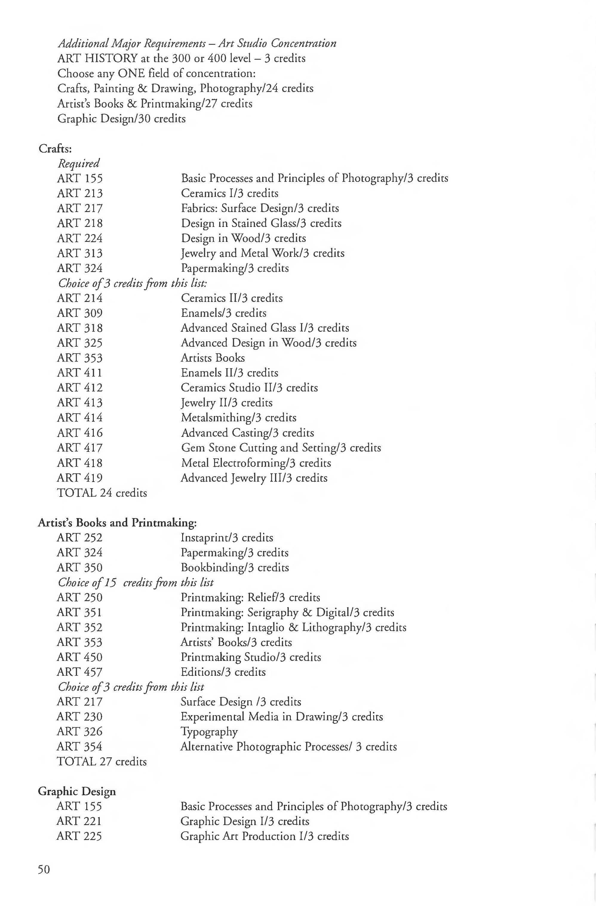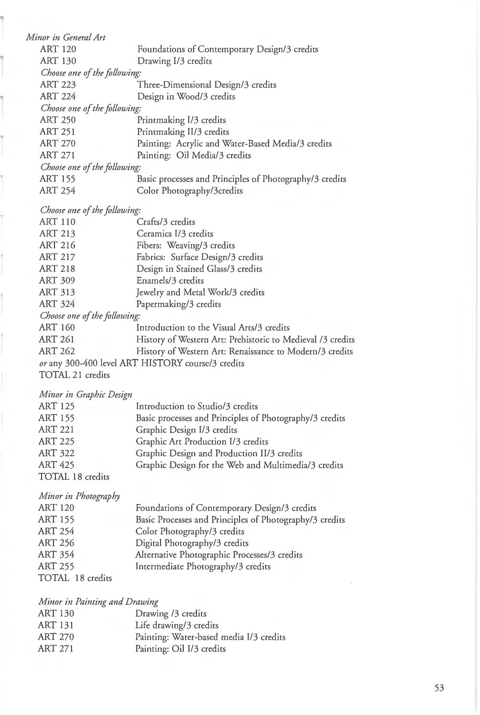 Art , BFA Degree .49 Course Numbers 5 Art Course Repeats 10