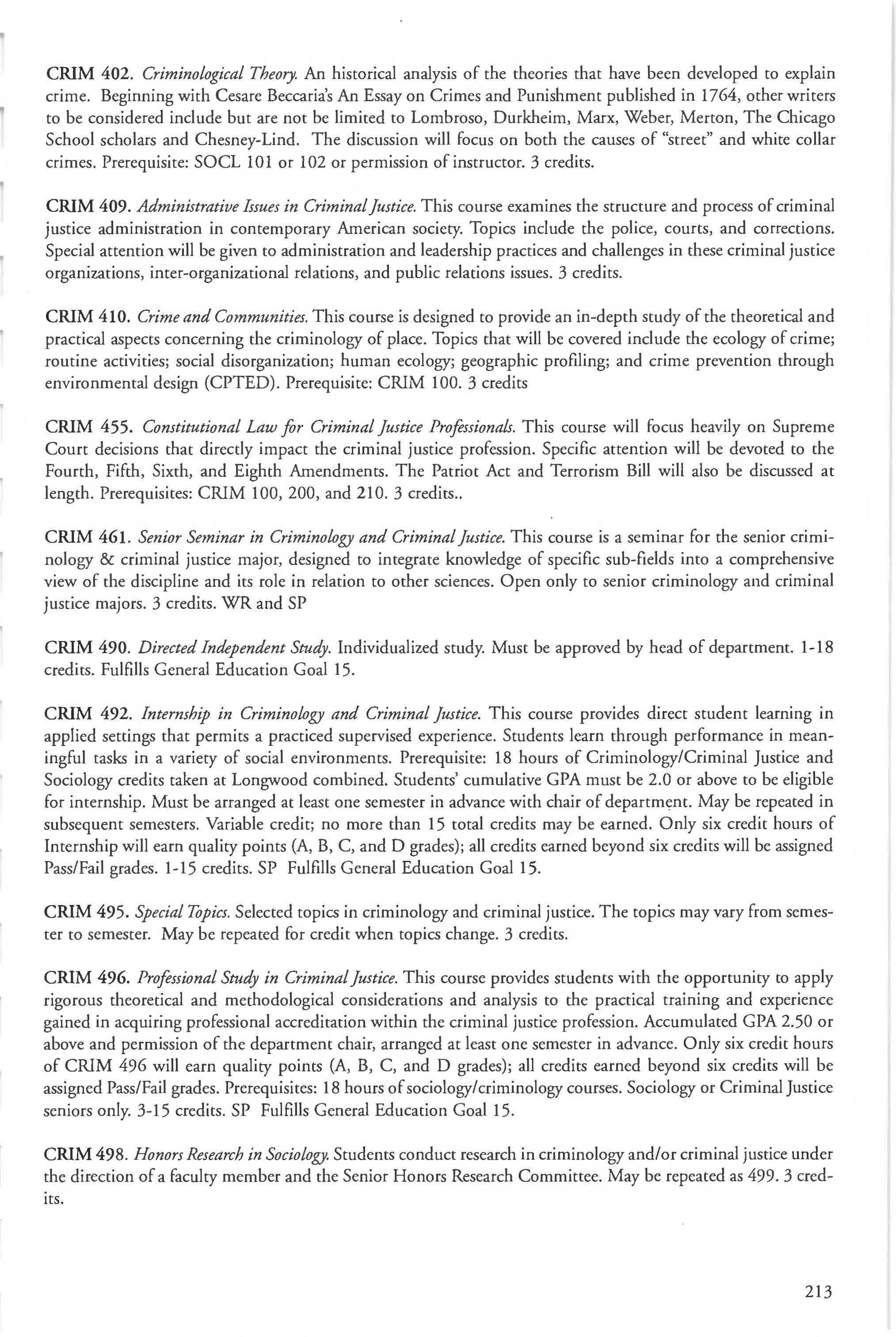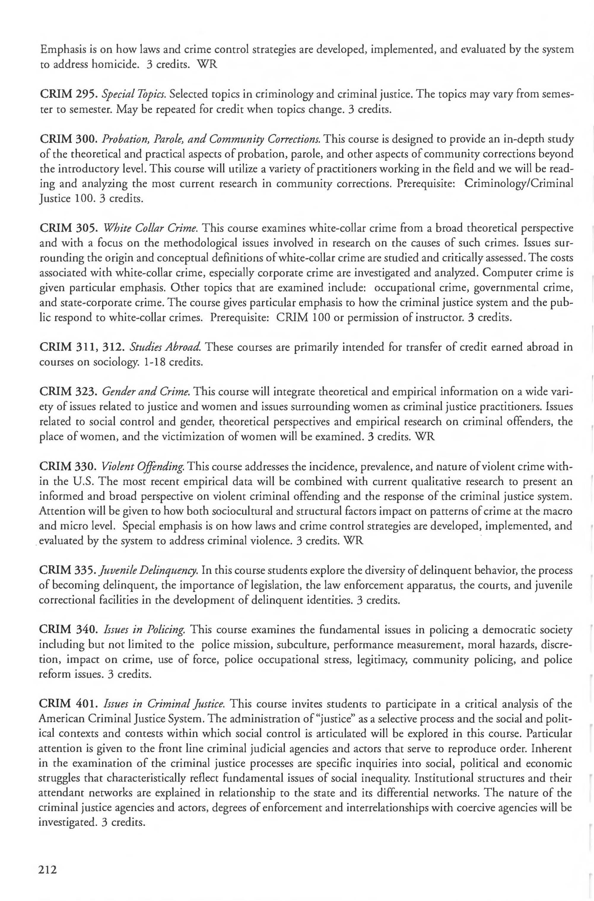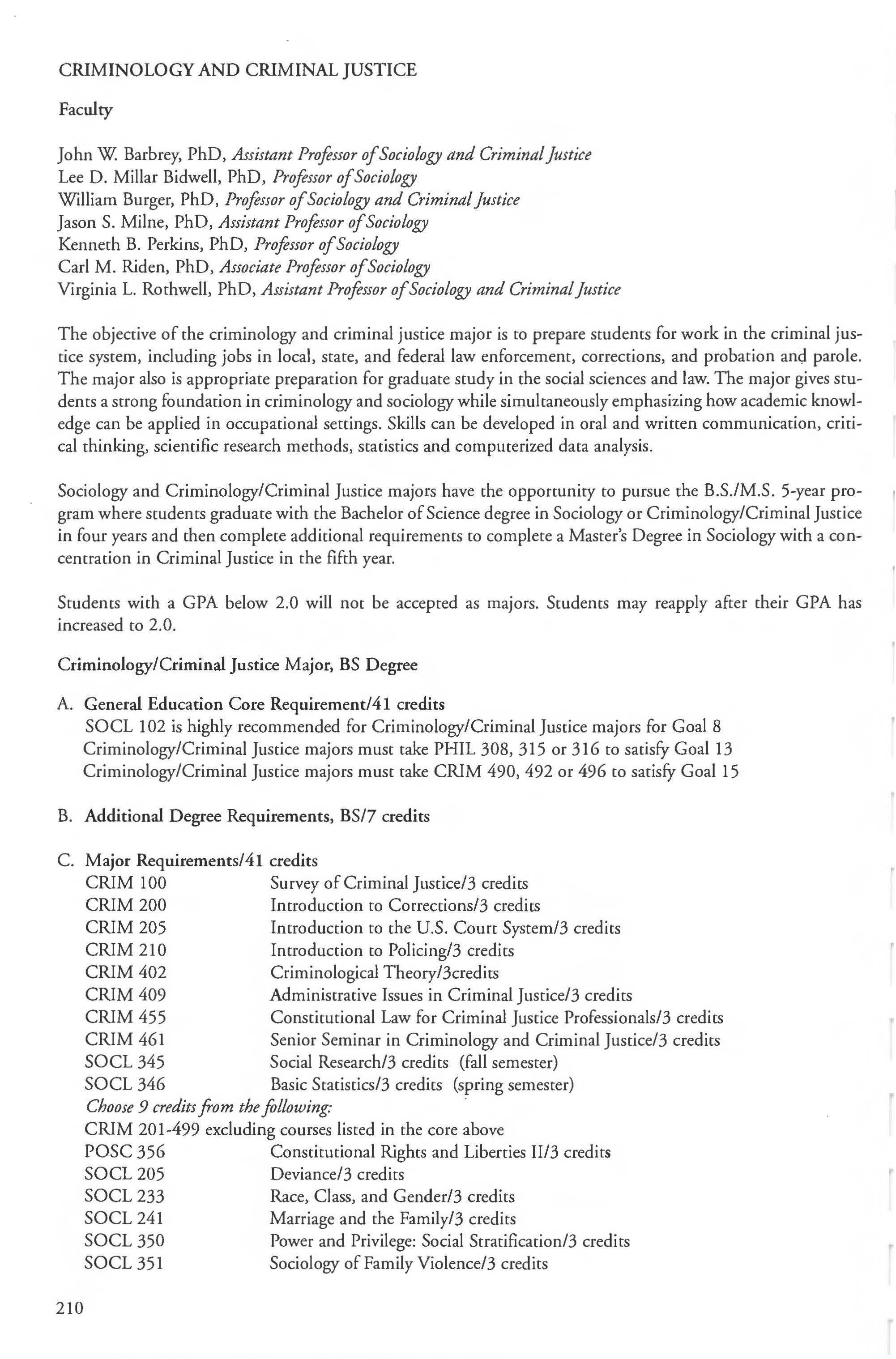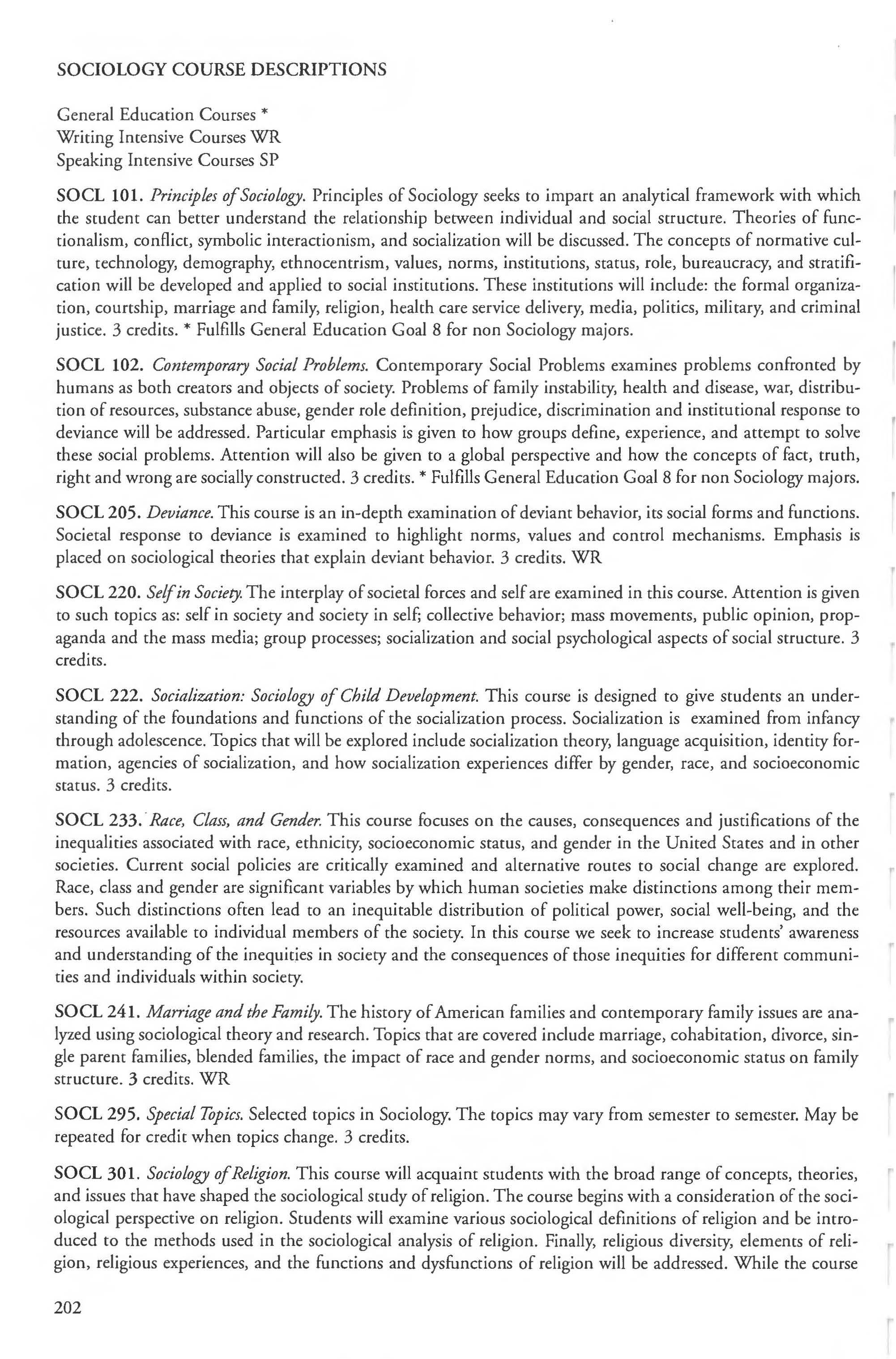 Sociology, Anthropology and Criminal Justice Studies, Dept. of ..... ... ................ 19 5 Sociology Courses 200