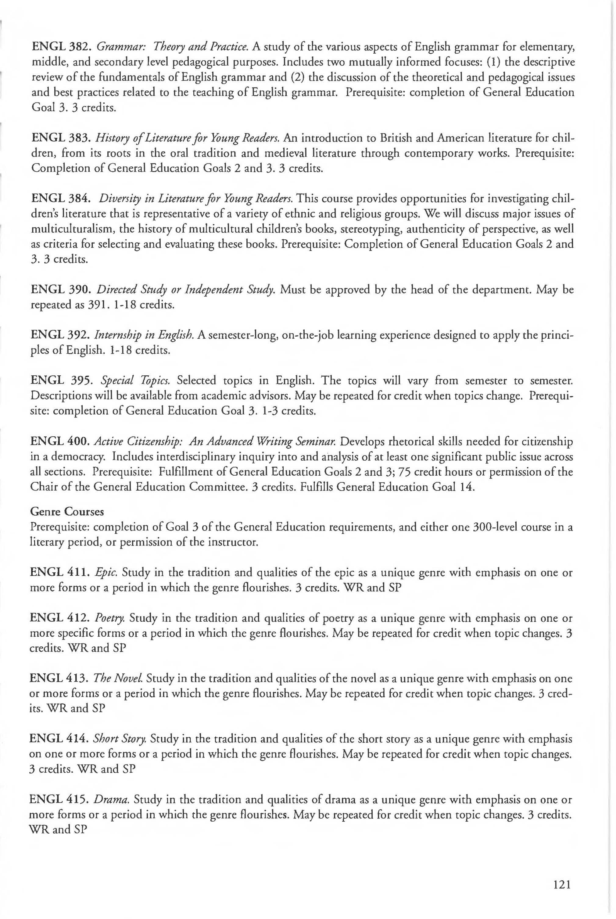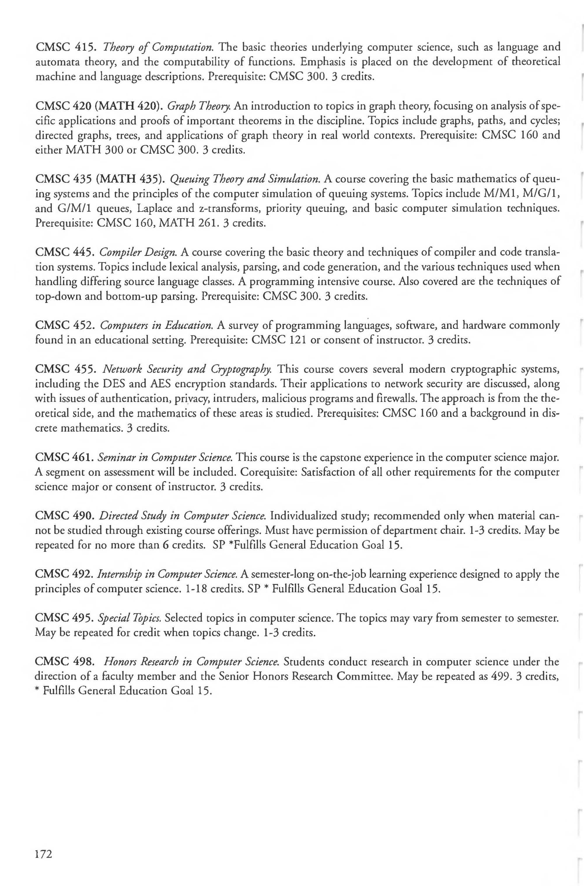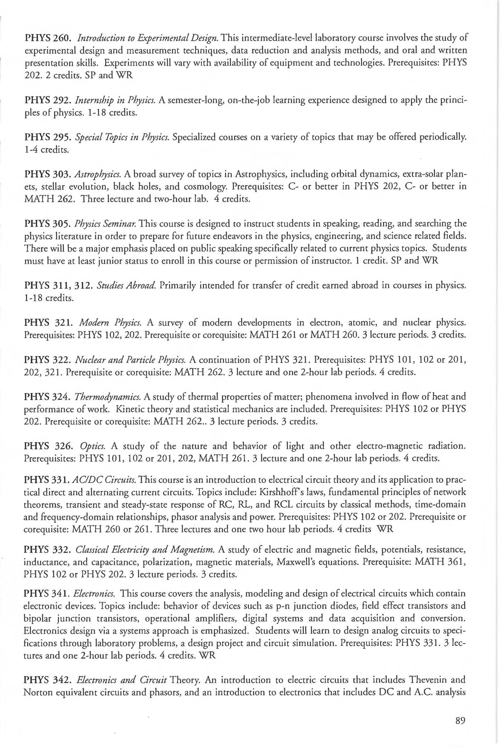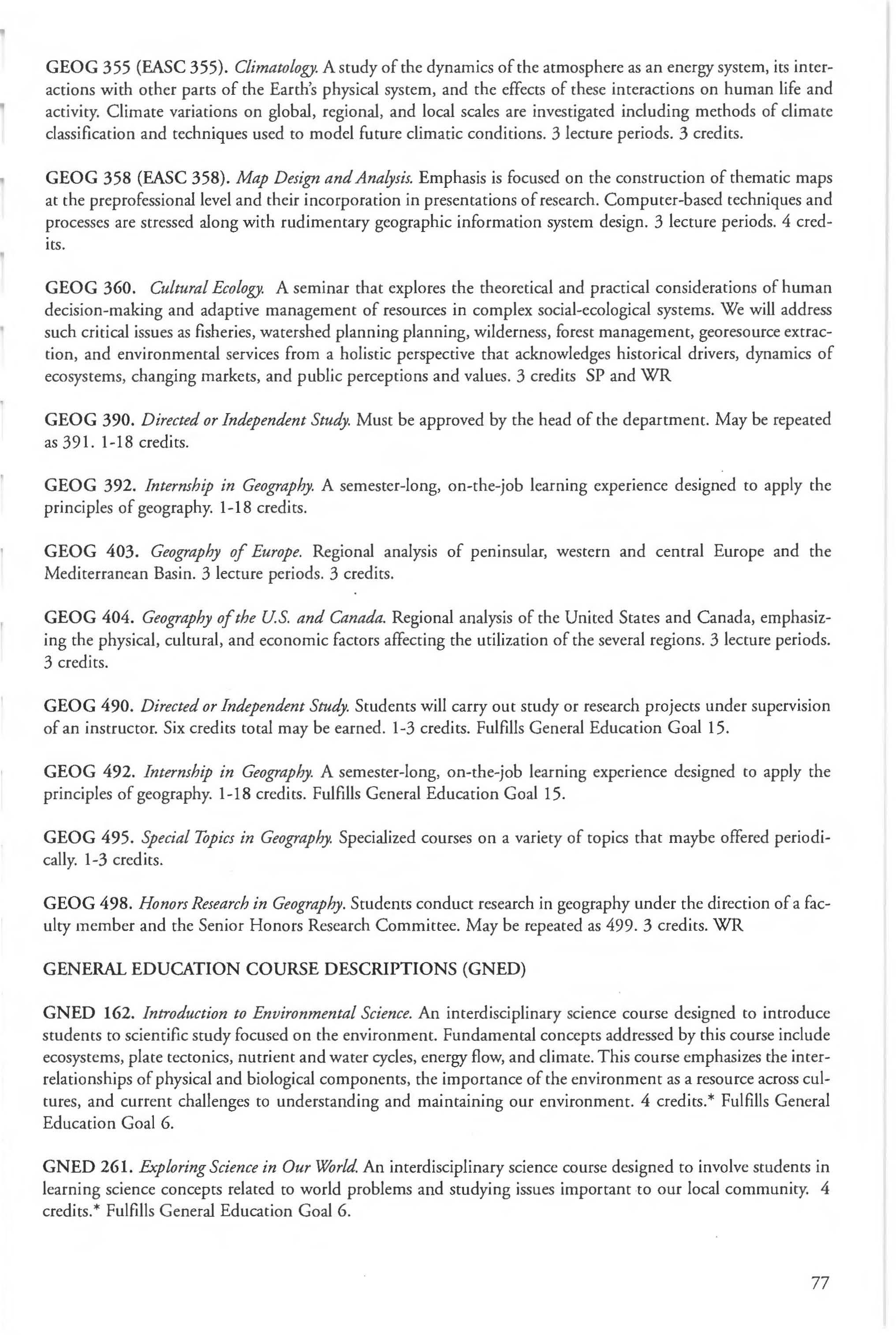 Other courses offered: Internships (1-18 credits) 292,392,492; Directed or Independent Study (1-18 credits) 390, 391, 490; Seminar 461; Honors Research 498, 499; Special Topics (1-6 credits) 295, 495, 595; Study Abroad (1-18) 311, 312.