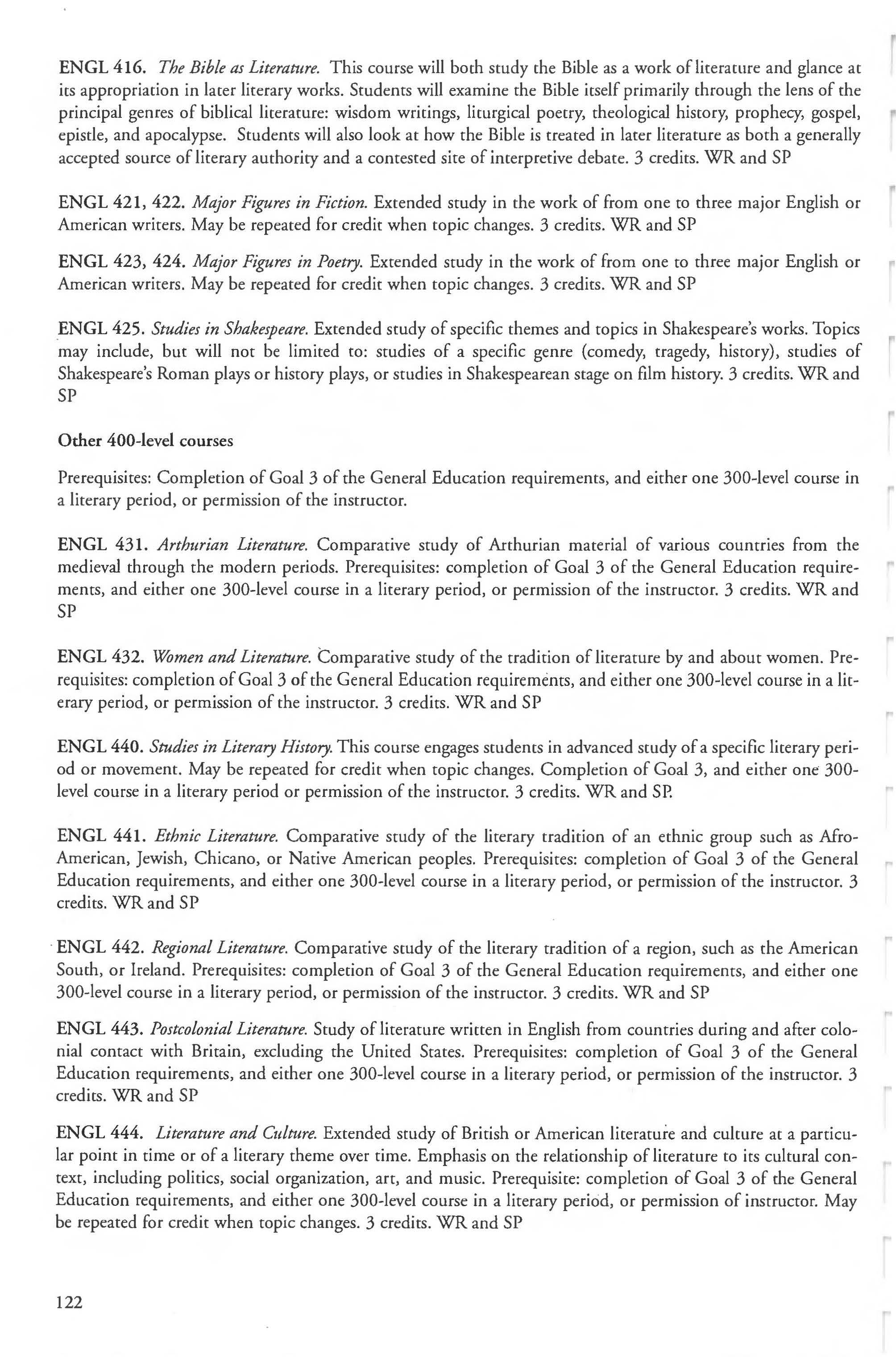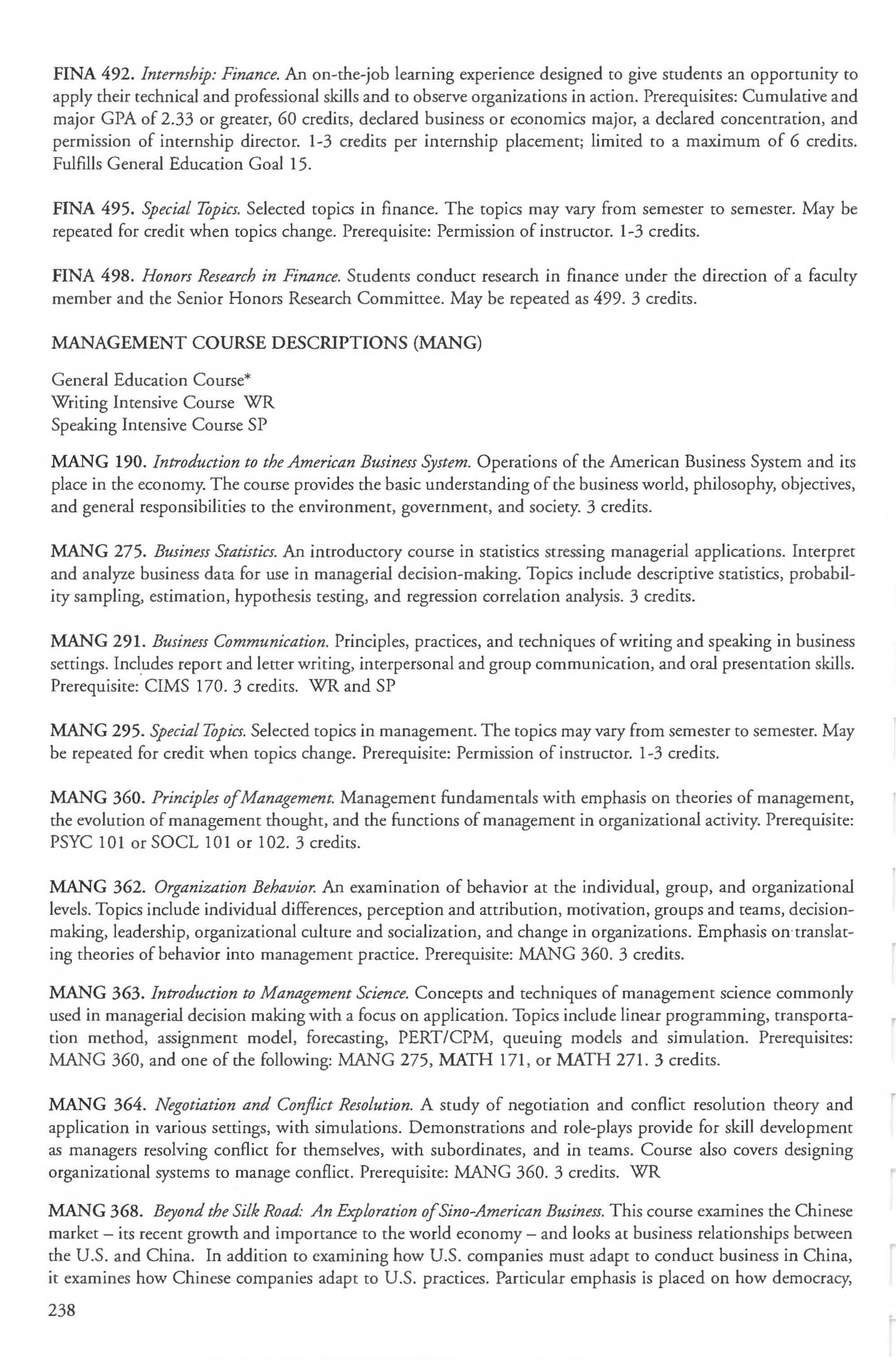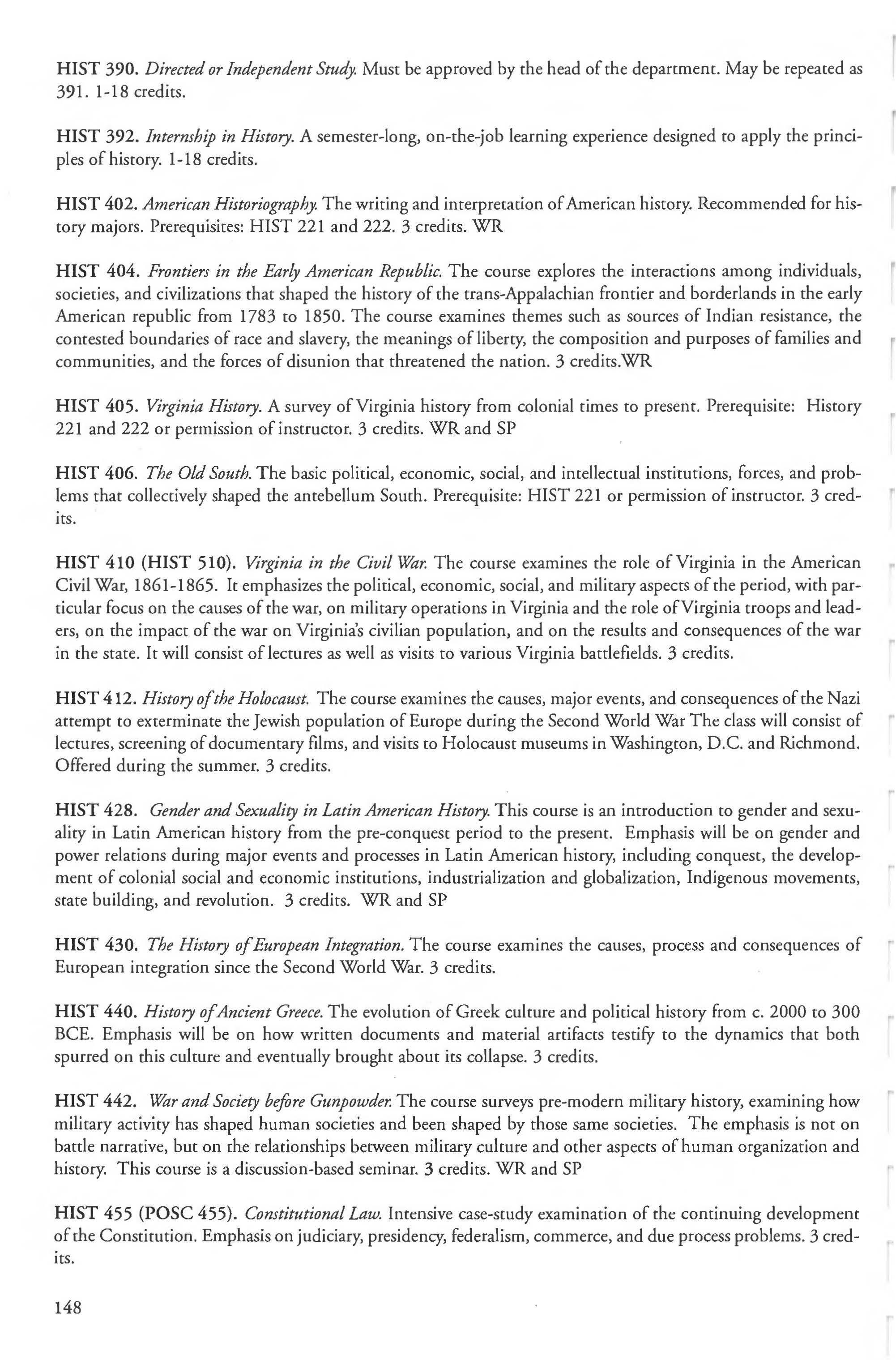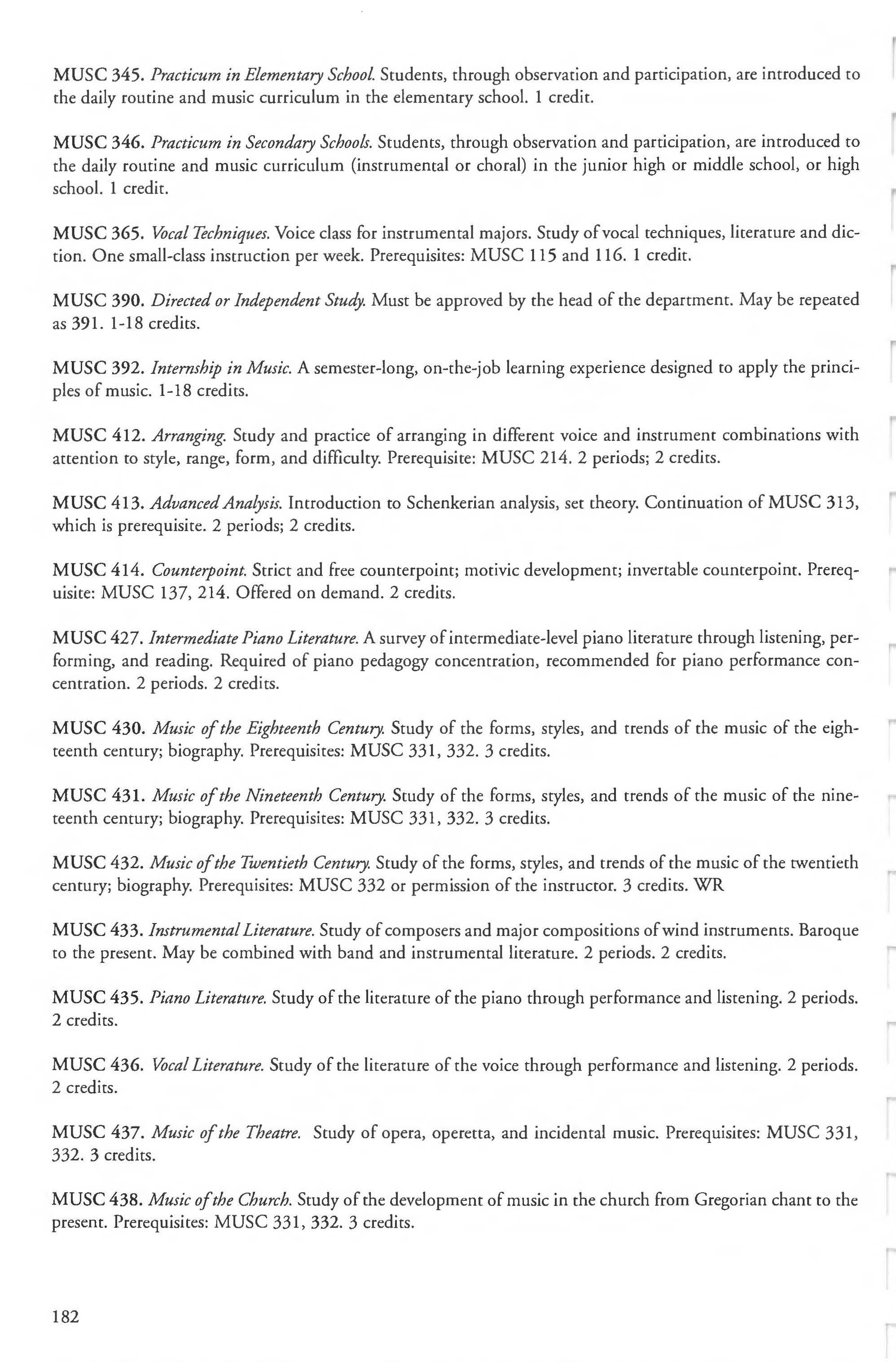 Other courses offered: Internships (1-18 credits) 292,392,492; Directed or Independent Study (1-18 credits) 390, 391, 490; Seminar 461; Honors Research 498, 499; Special Topics (1-6 credits) 295, 495, 595; Study Abroad (1-18) 311, 312.
