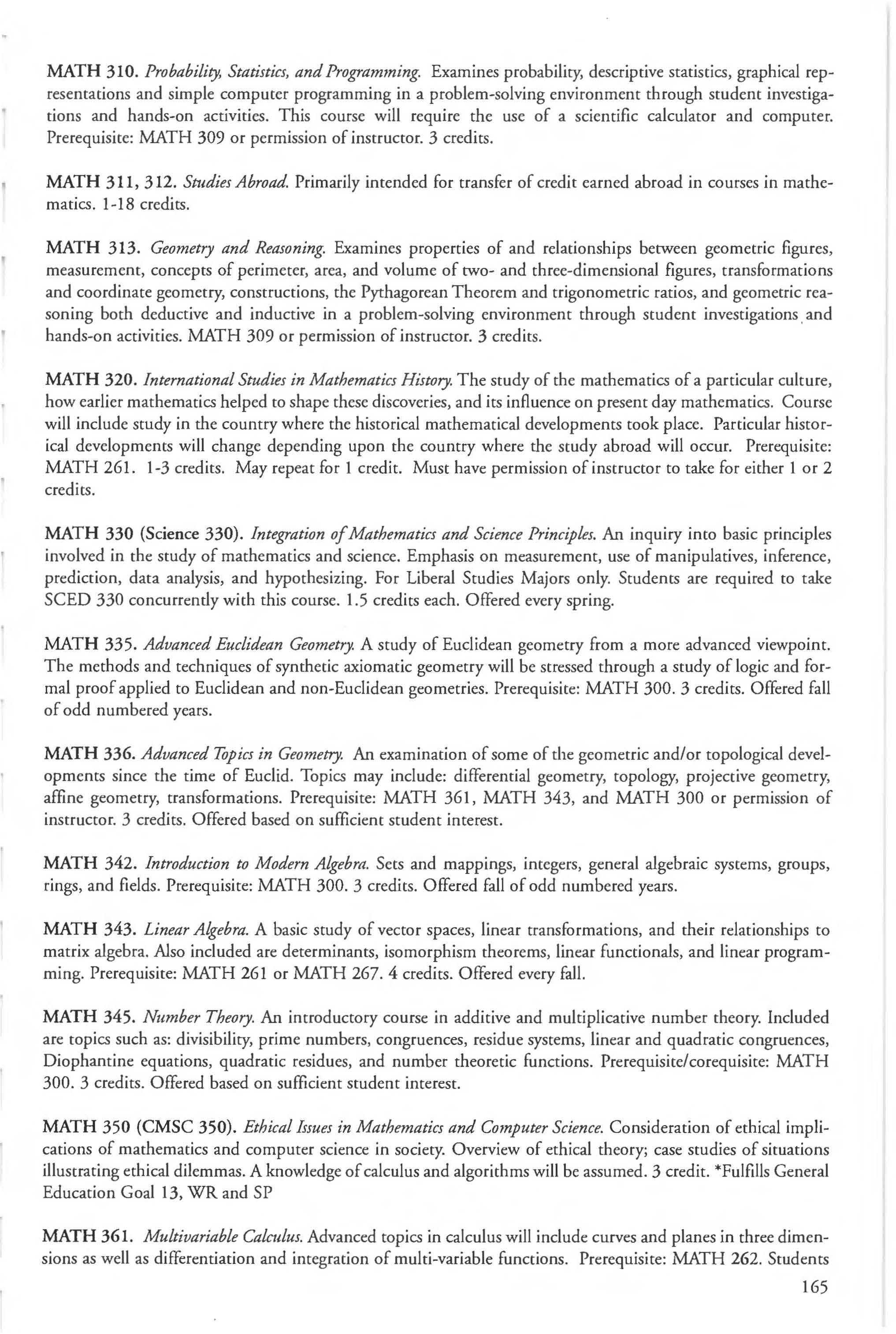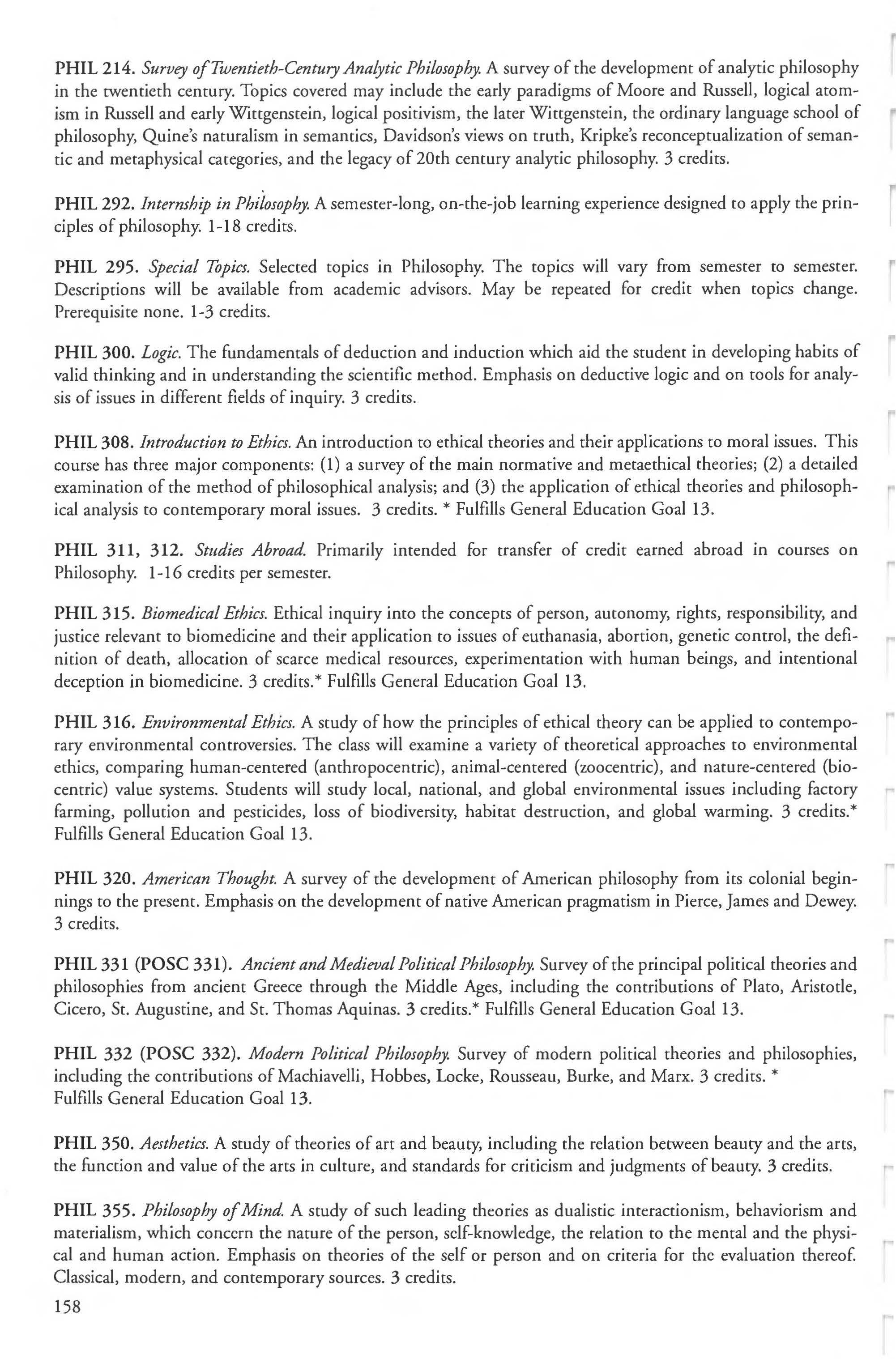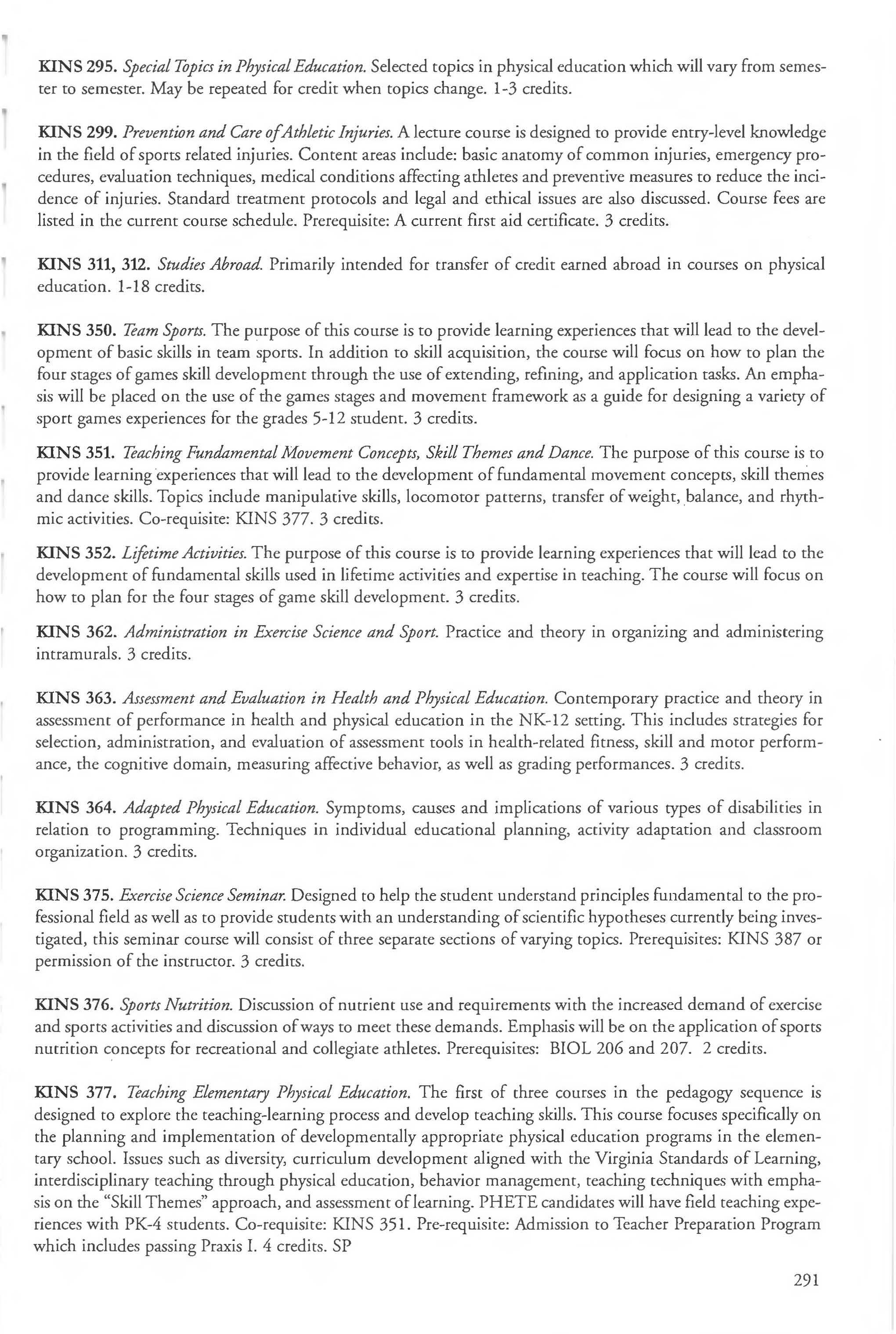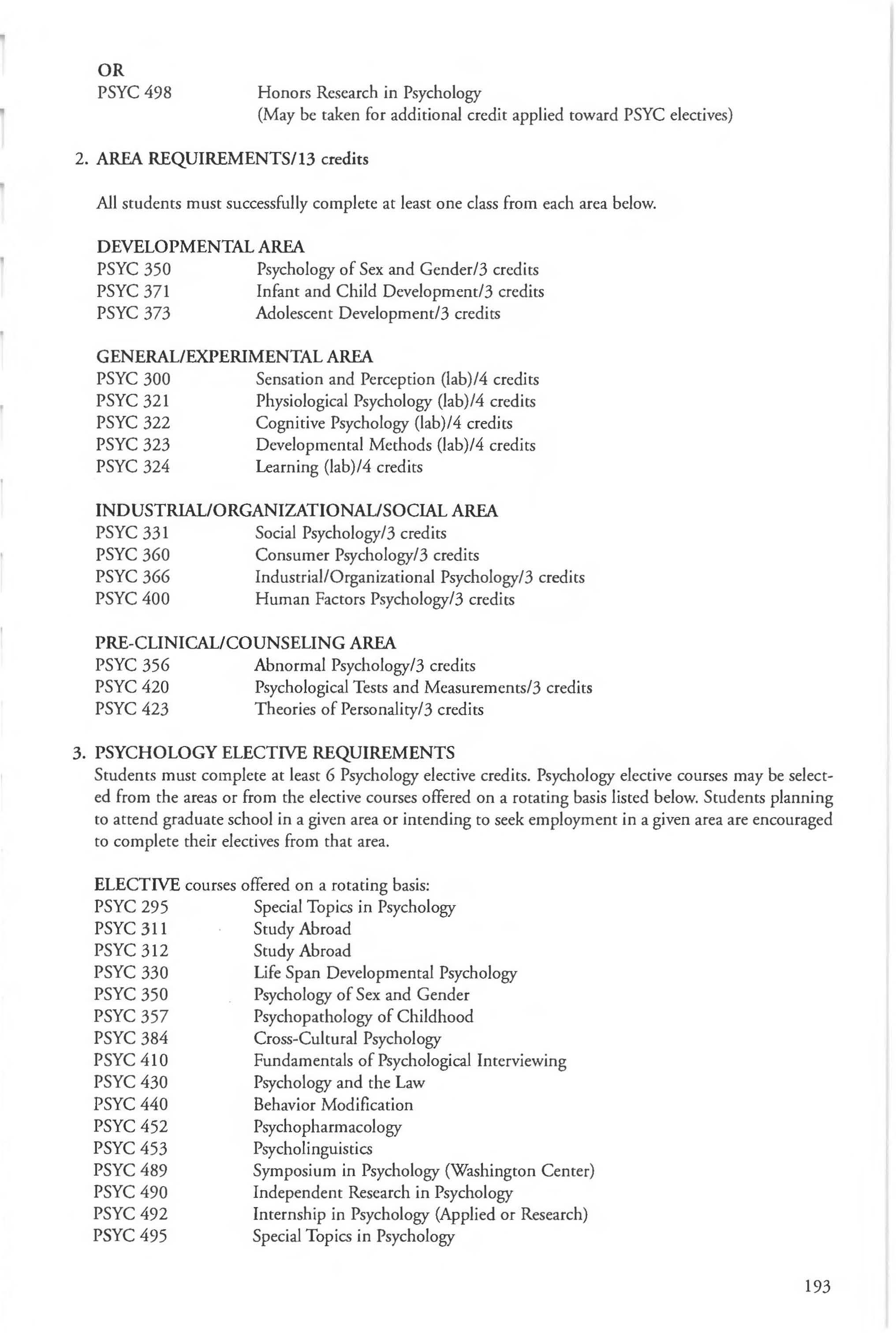 Other courses offered: Internships (1-18 credits) 292,392,492; Directed or Independent Study (1-18 credits) 390, 391, 490; Seminar 461; Honors Research 498, 499; Special Topics (1-6 credits) 295, 495, 595; Study Abroad (1-18) 311, 312.