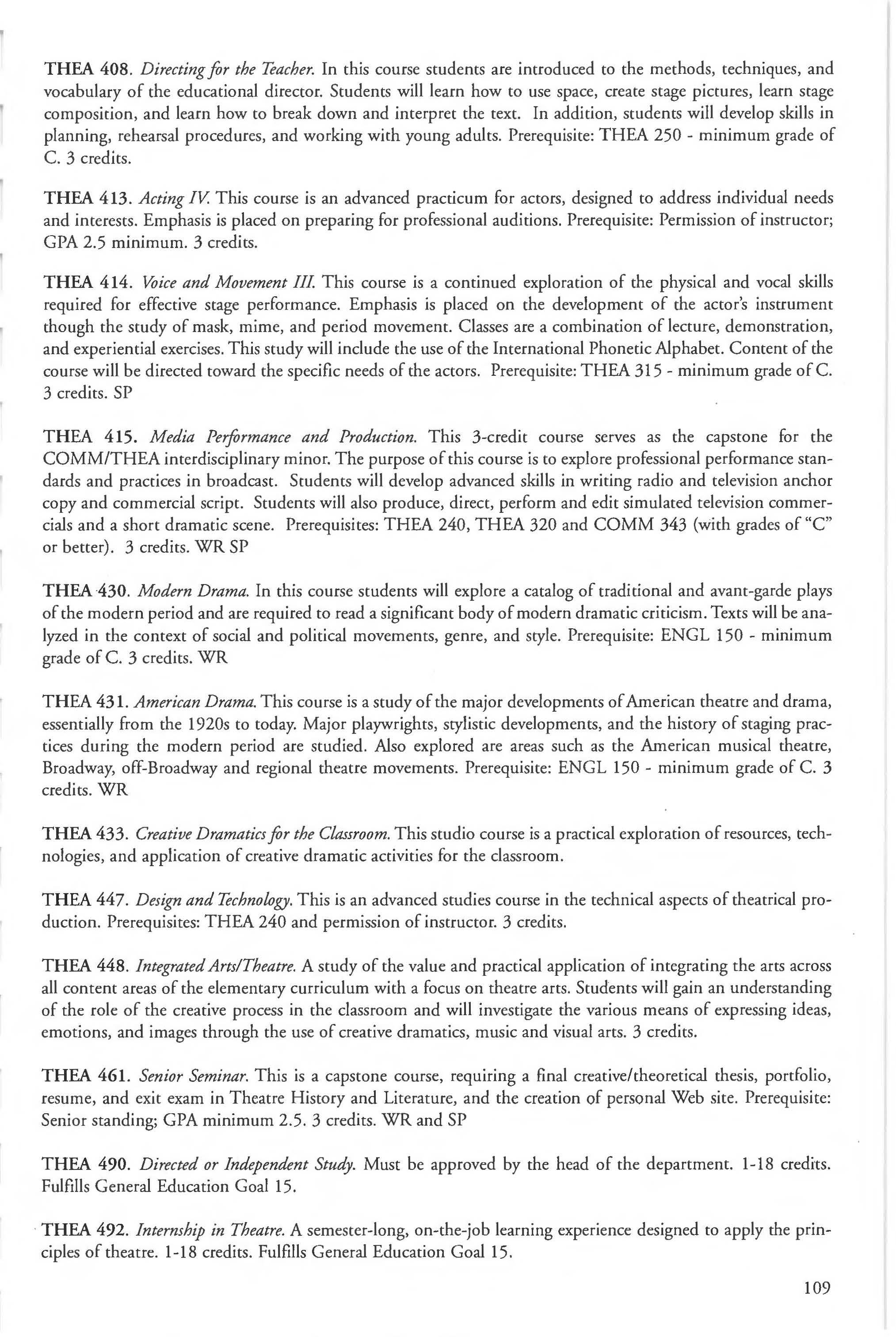 Second Language Courses 136 Therapeutic Recreation Degree , BS Major 277 Theatre Courses . .. .... . ................ 106 Theatre Minor . .. ............. ... ... 105-106 Theatre Program . . ... .. ...... .. ..... . ... 100