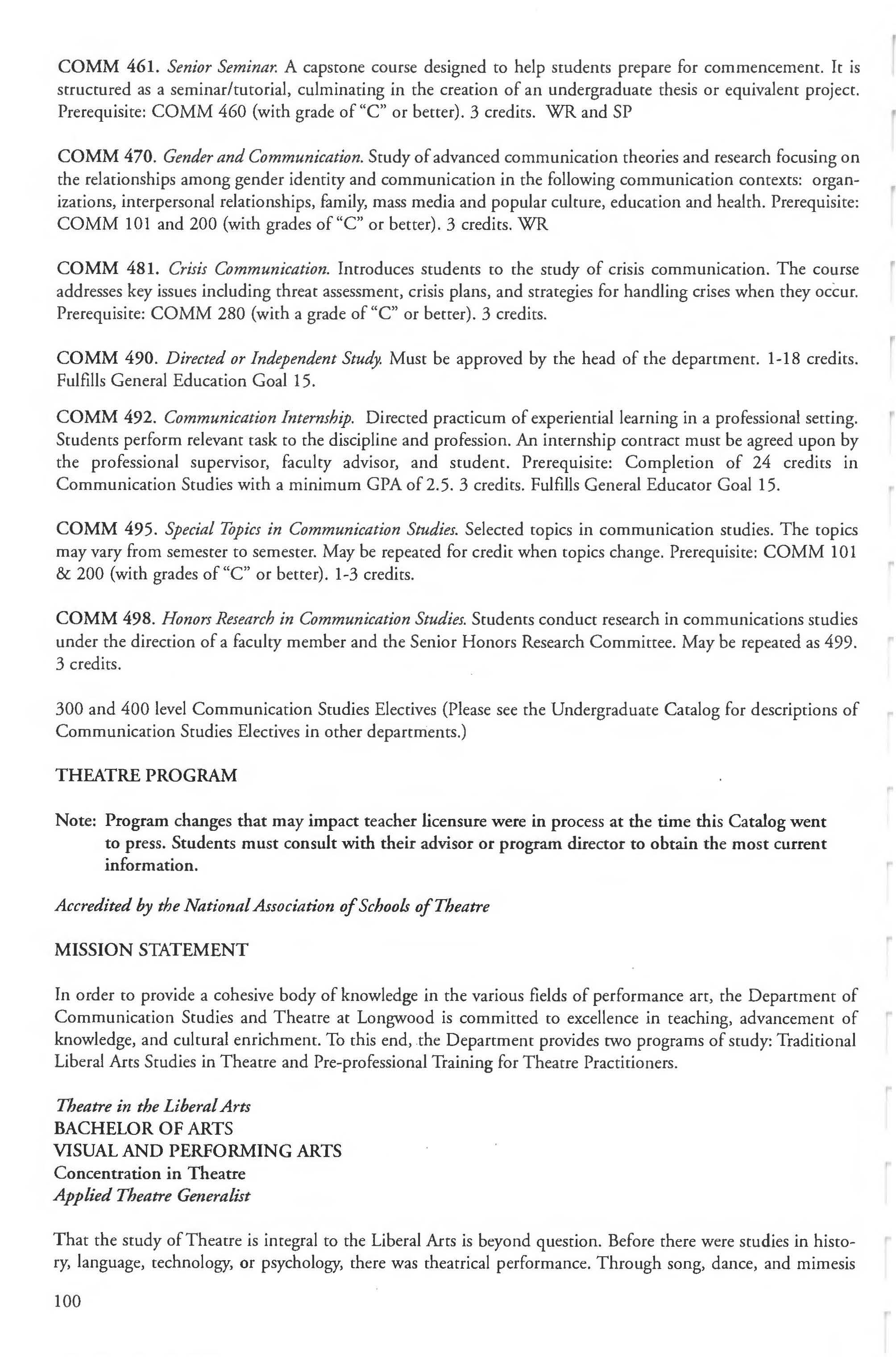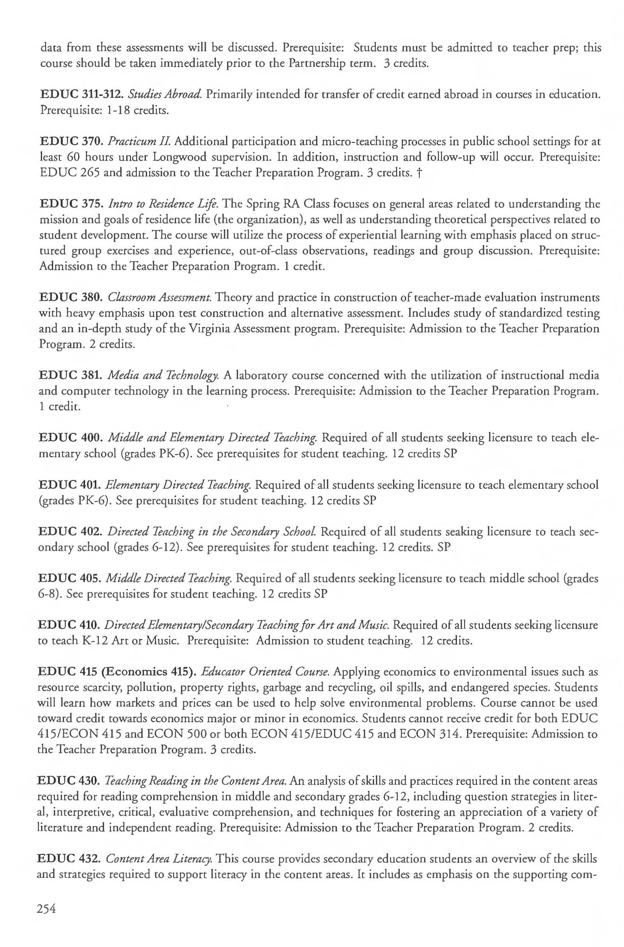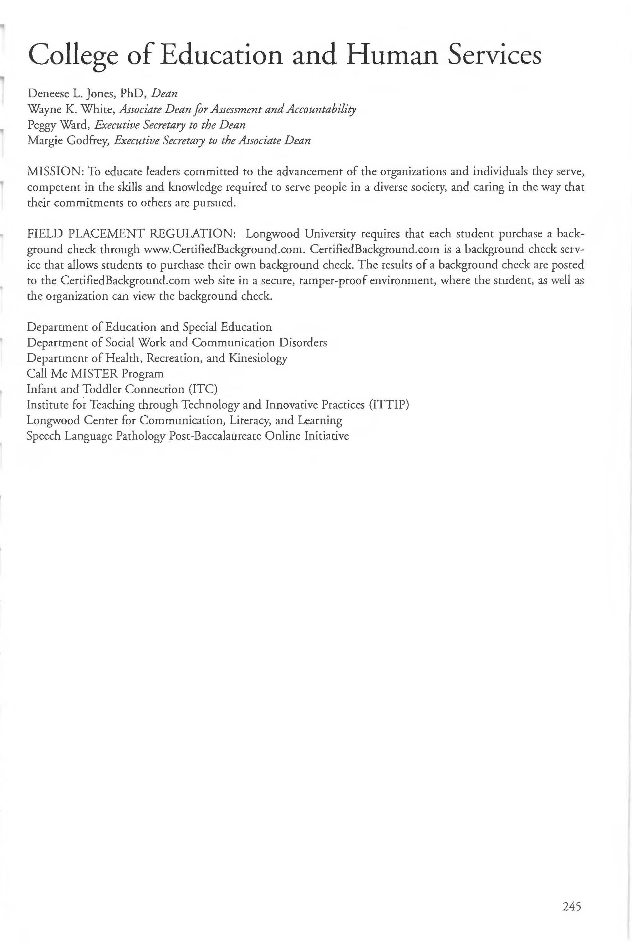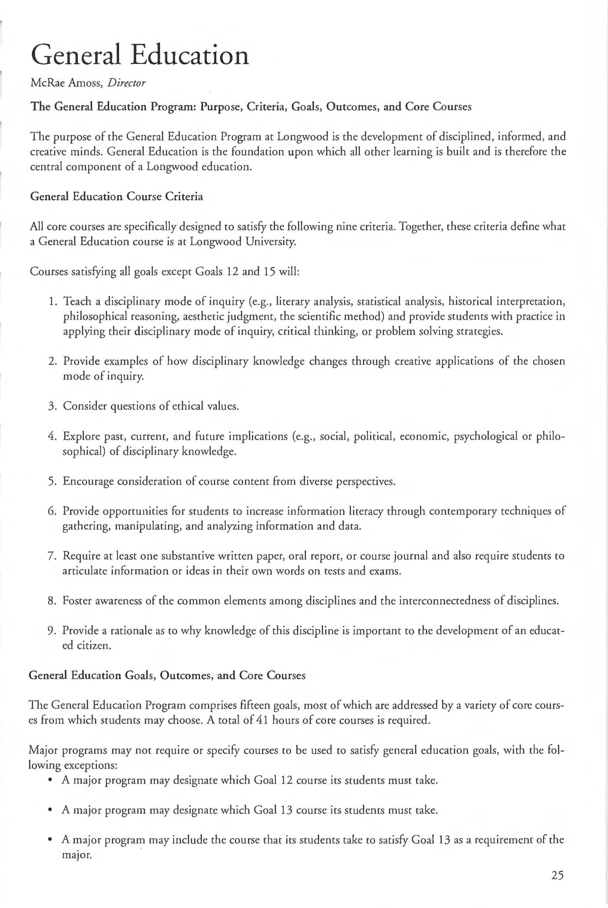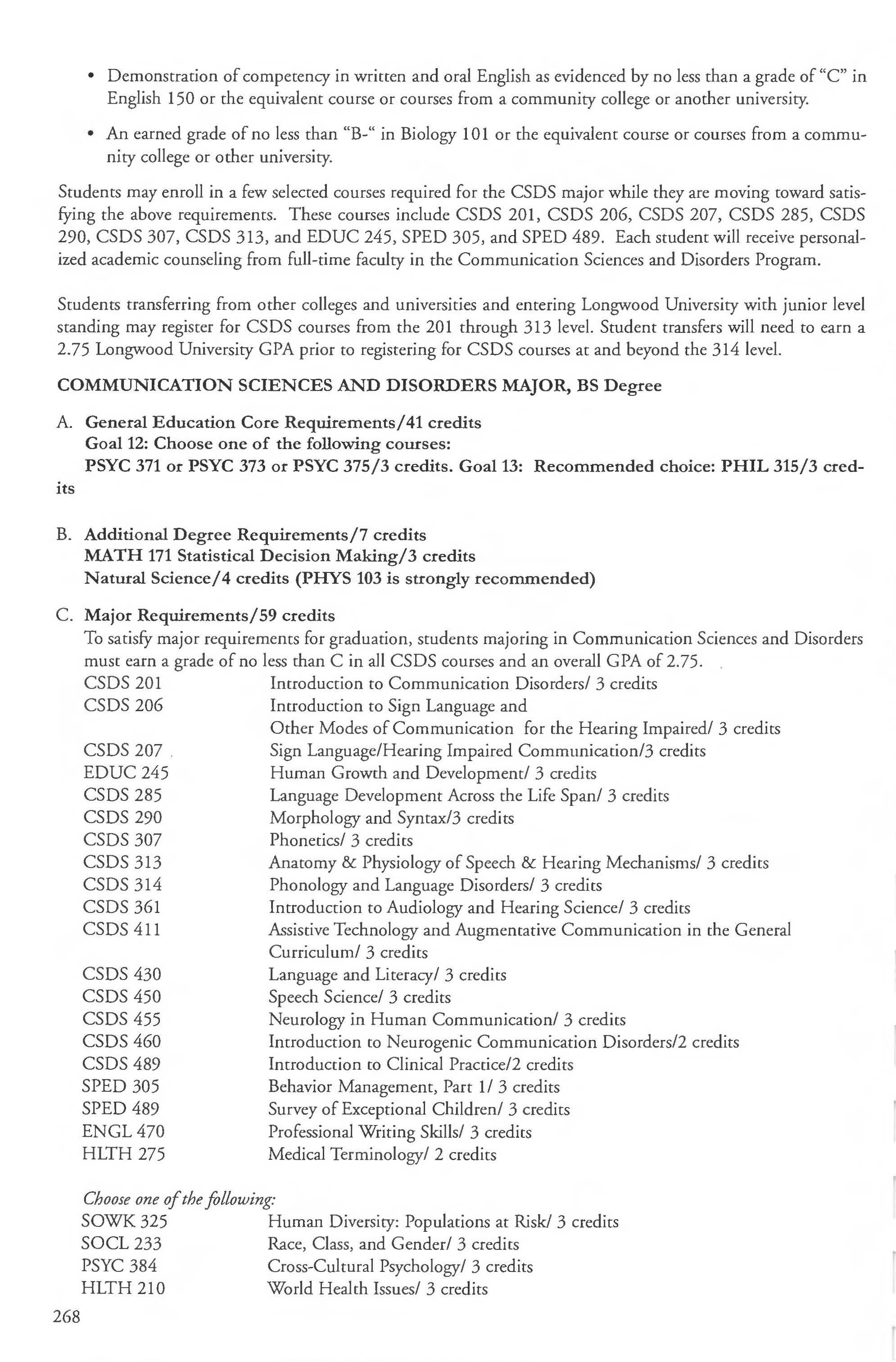 This document is provided as a convenience to faculty and staff and should not be considered the official copy of the catalog This document may contain errors. The official copy of the catalog resides on the Longwood website.