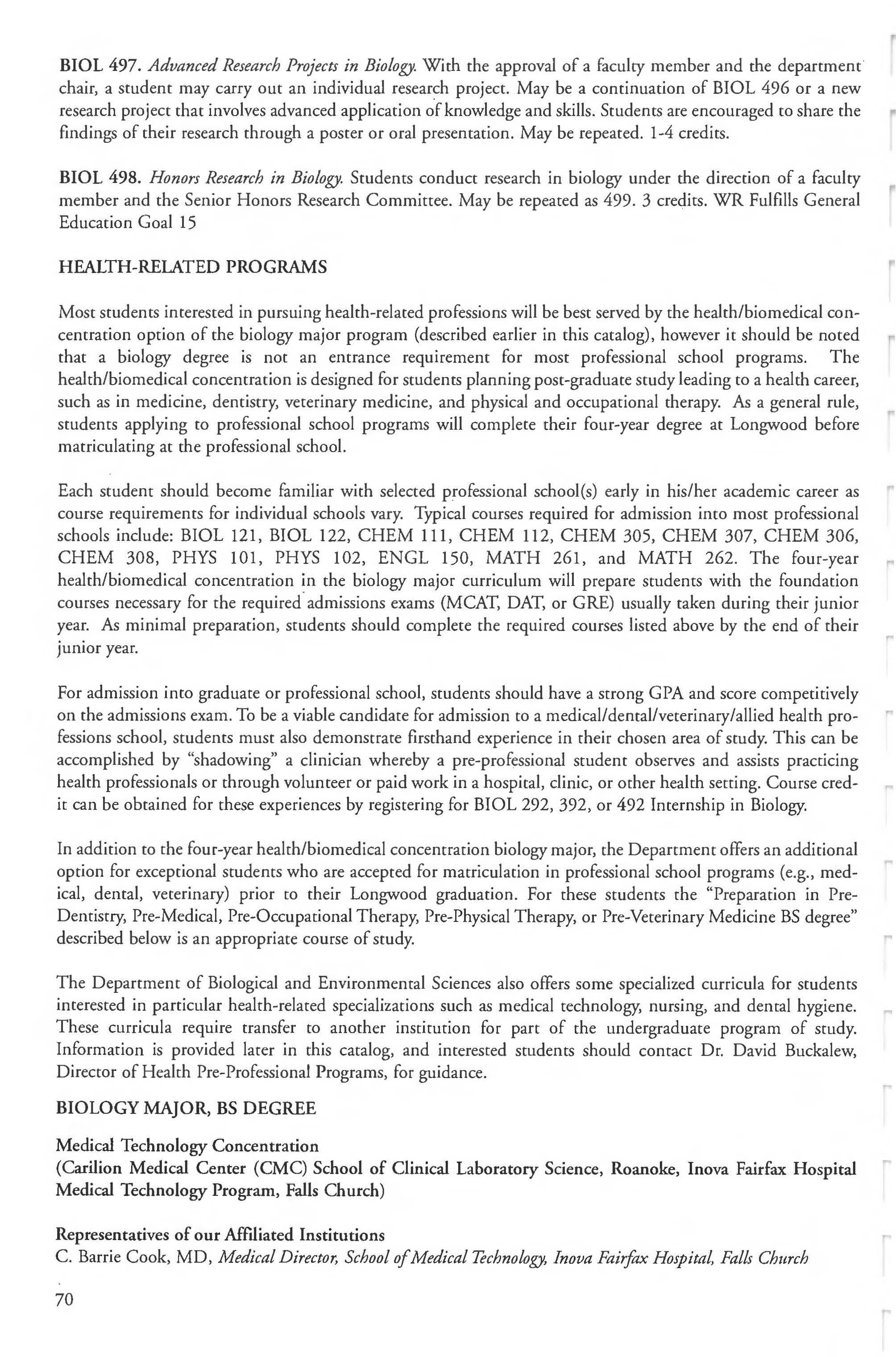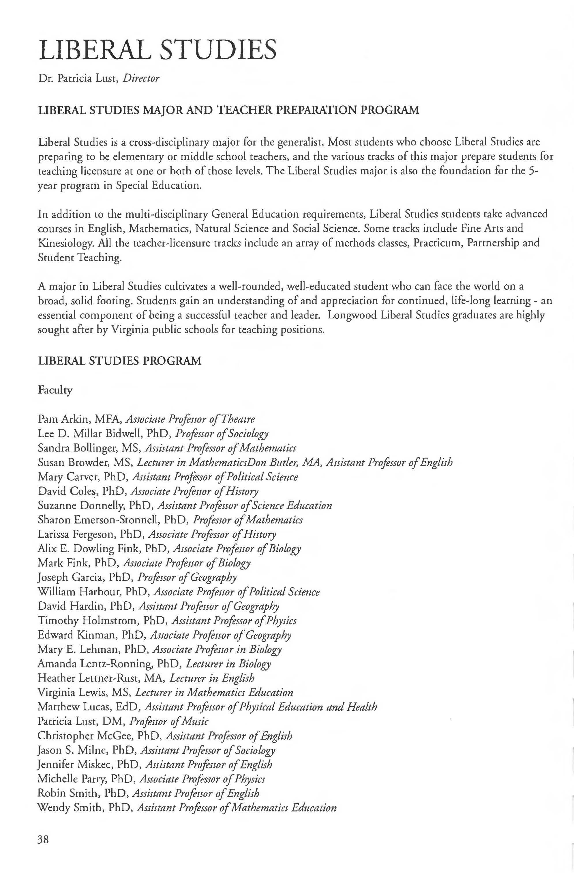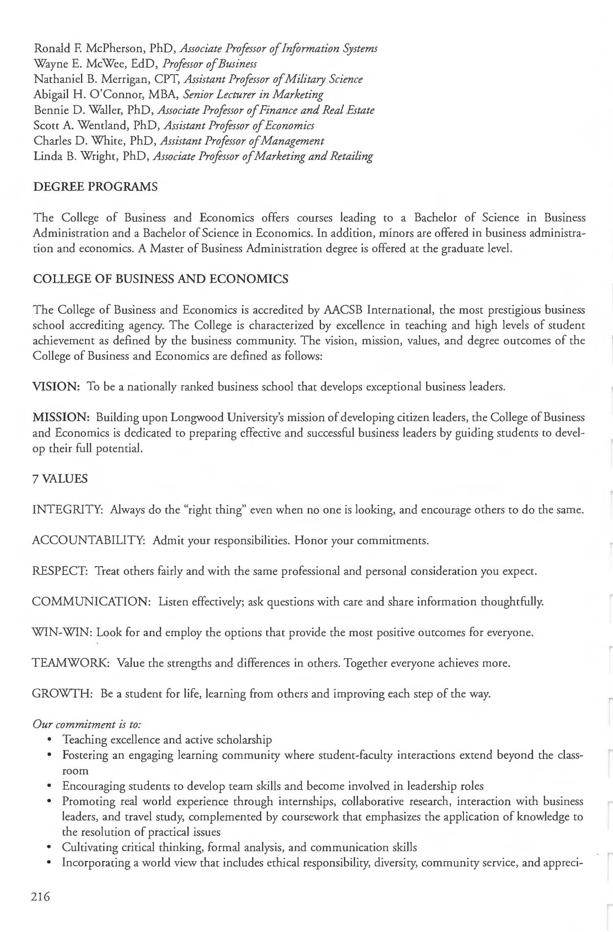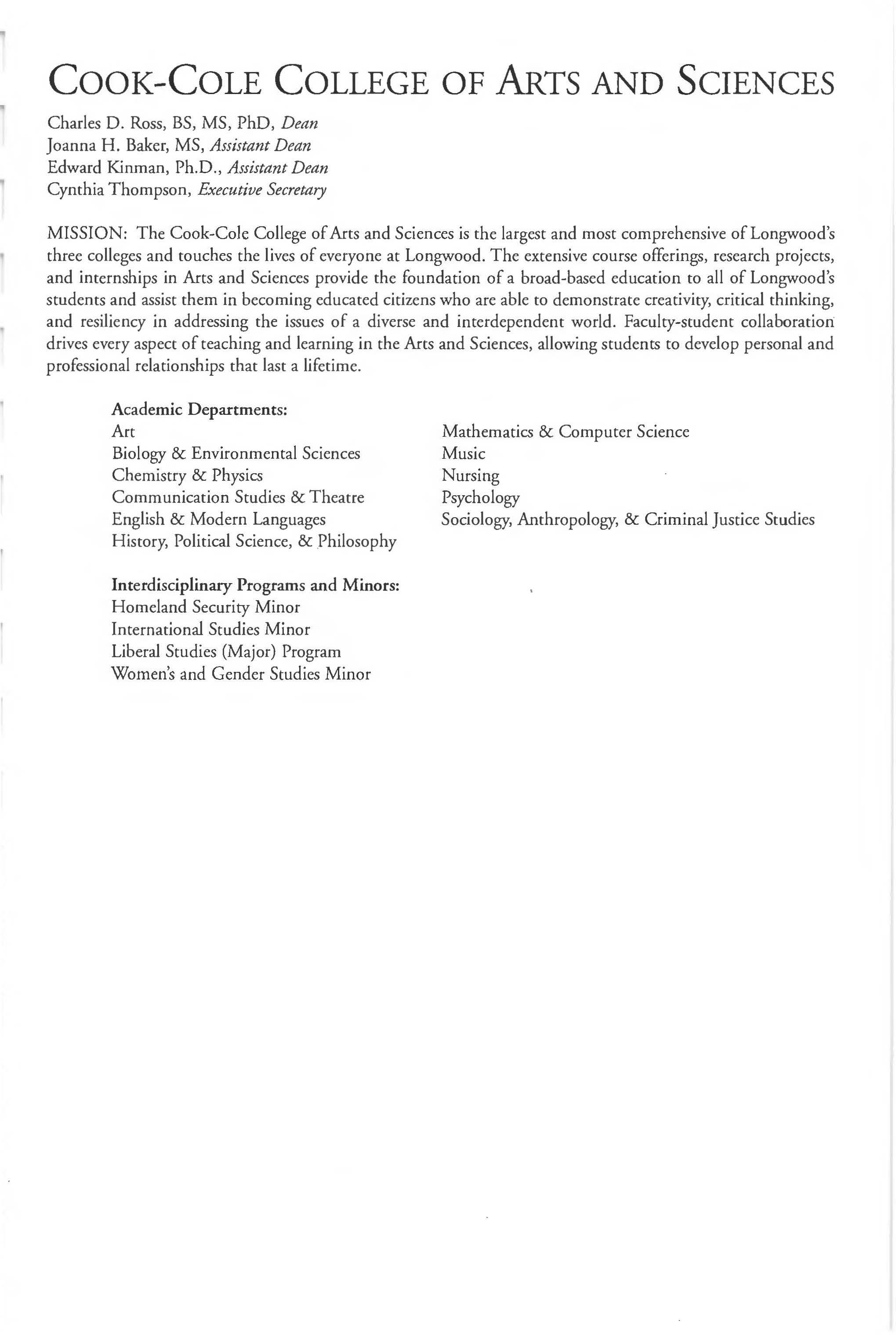 This document is provided as a convenience to faculty and staff and should not be considered the official copy of the catalog This document may contain errors. The official copy of the catalog resides on the Longwood website.