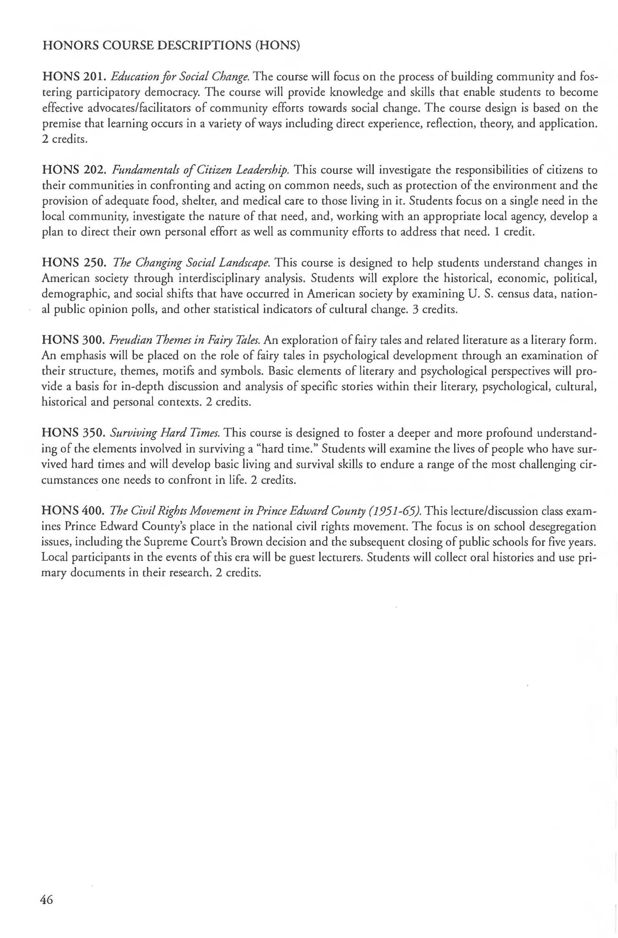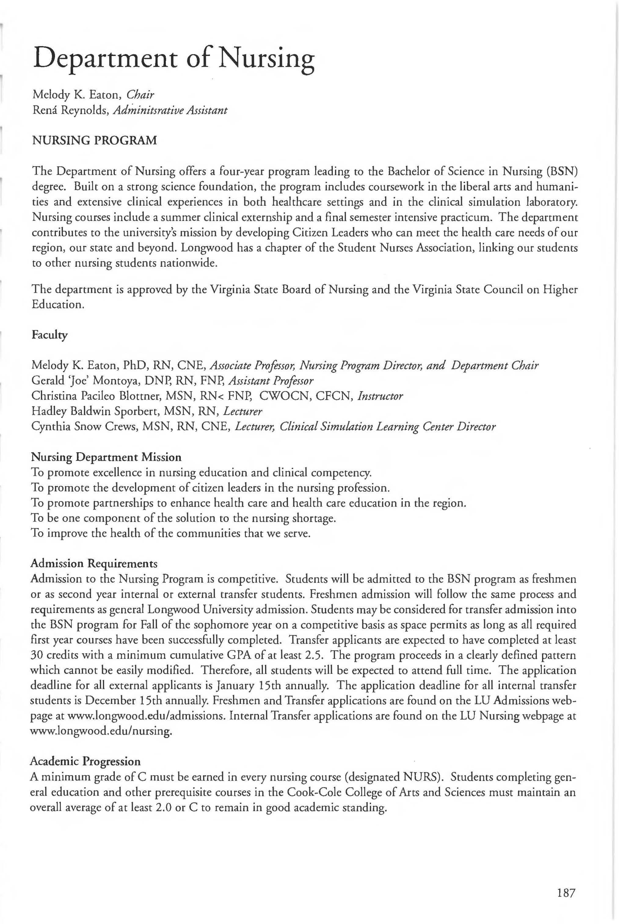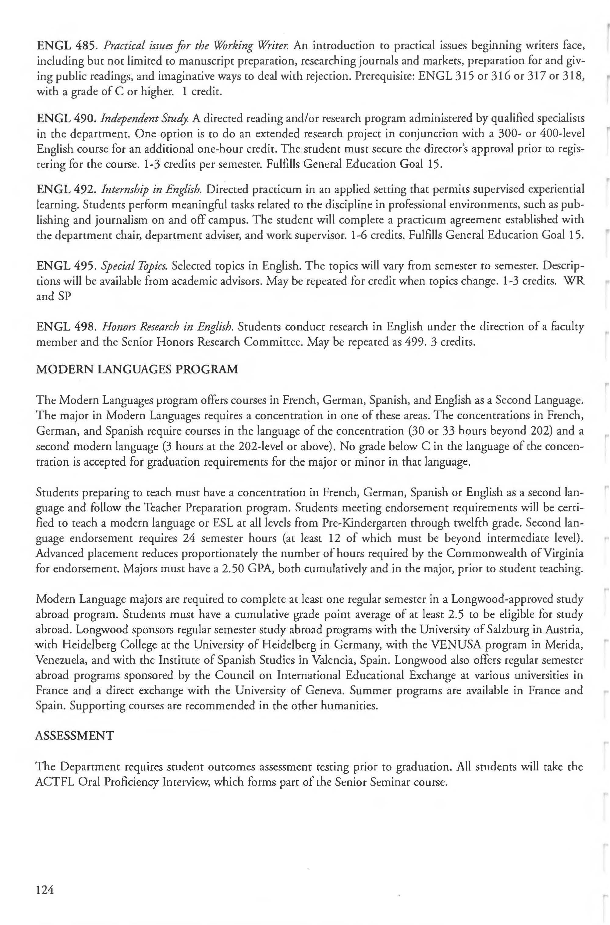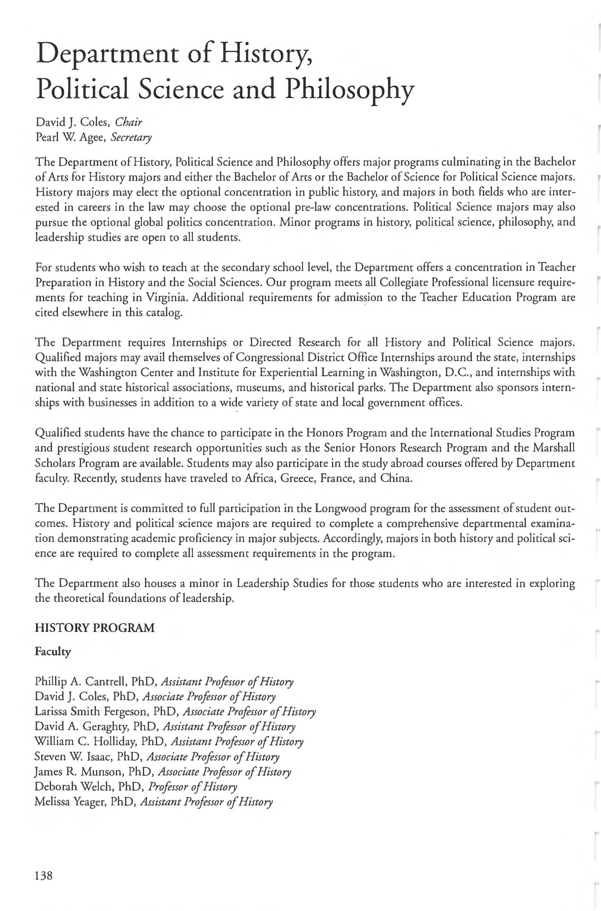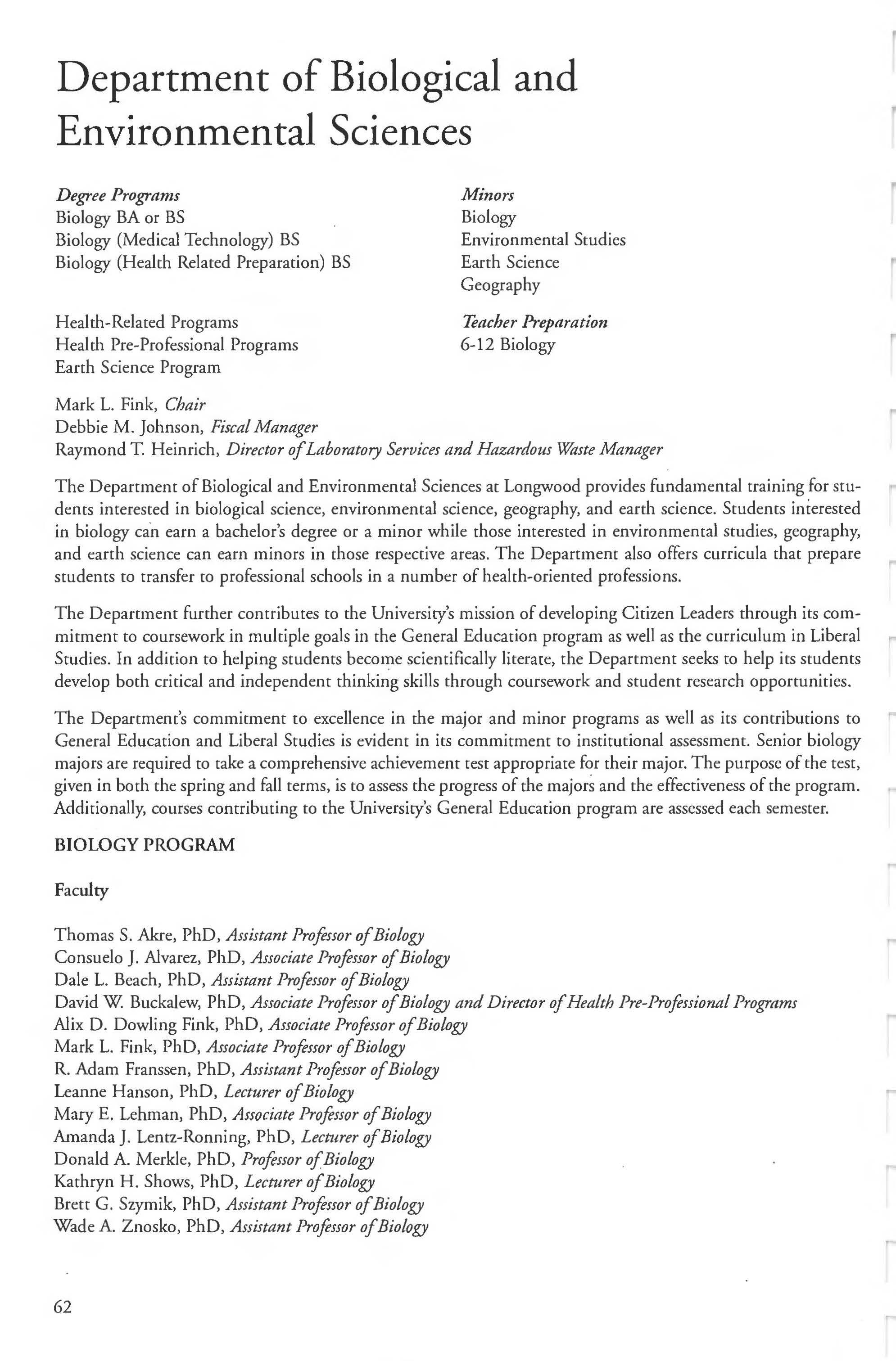 This document is provided as a convenience to faculty and staff and should not be considered the official copy of the catalog This document may contain errors. The official copy of the catalog resides on the Longwood website.