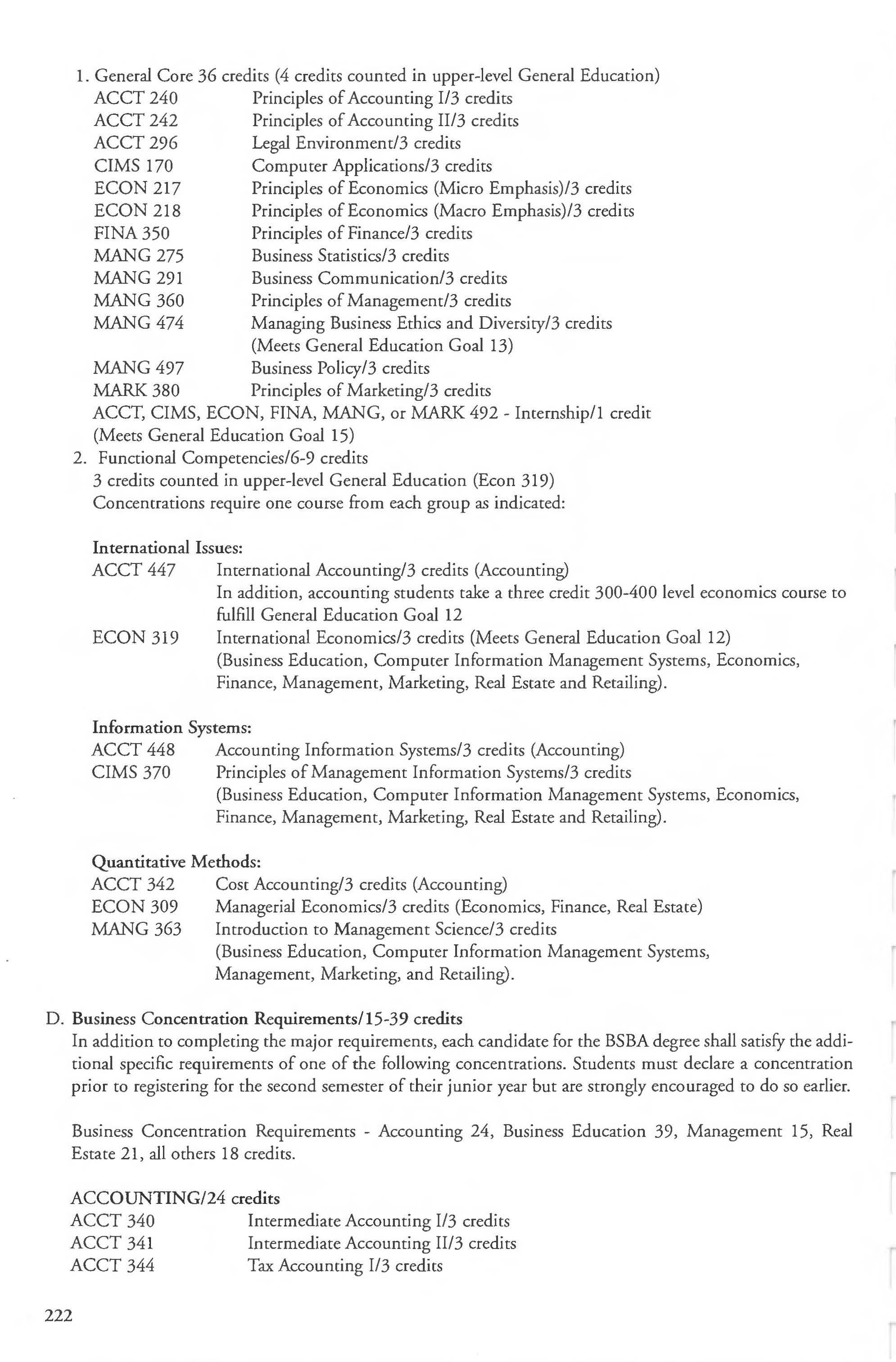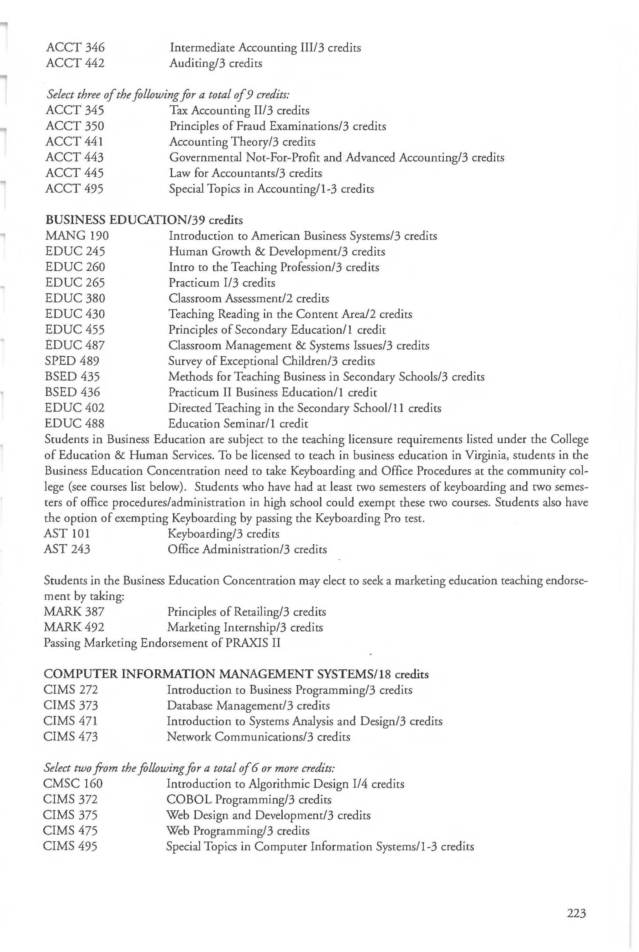 Communications Studies Major 94-95 Academic Regulations .4-16 Communications Studies Minor 96 Academic Requirements 20-24 Communications Studies and Theatre , Accounting Courses 228 Dept. of . ............... . ............ 94 Accounting Program 222 Computer Information Management Accreditation 1 Systems Courses ..... . ................ 230 Add Period 6 Computer Information Management Additional Degree Requirements .... .. .. .. 21-22 Systems (CIMS) Program ...... . .. .. ... 222