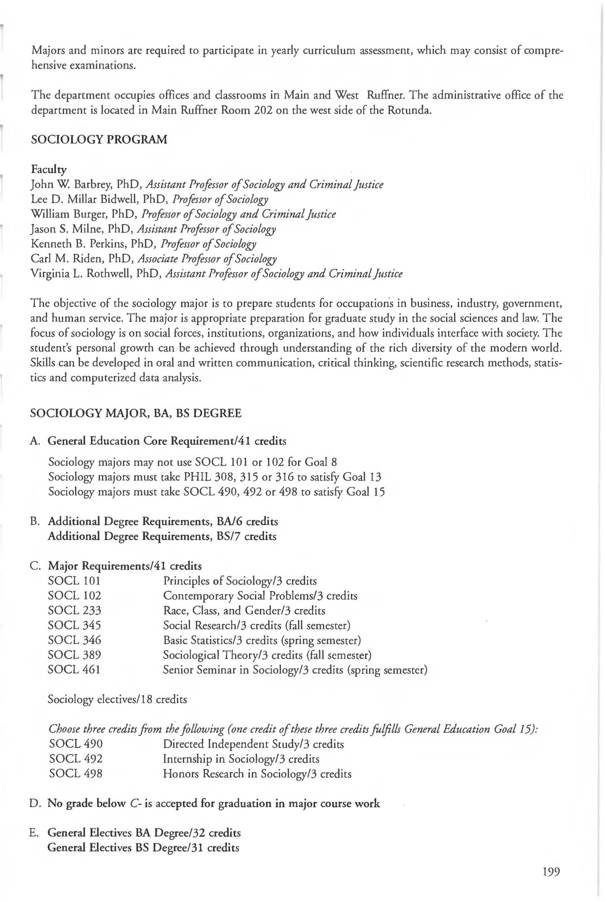 Sociology Major, BA, BS Degree . . . . . .... . .. 198 Pre-Law Concentration 199