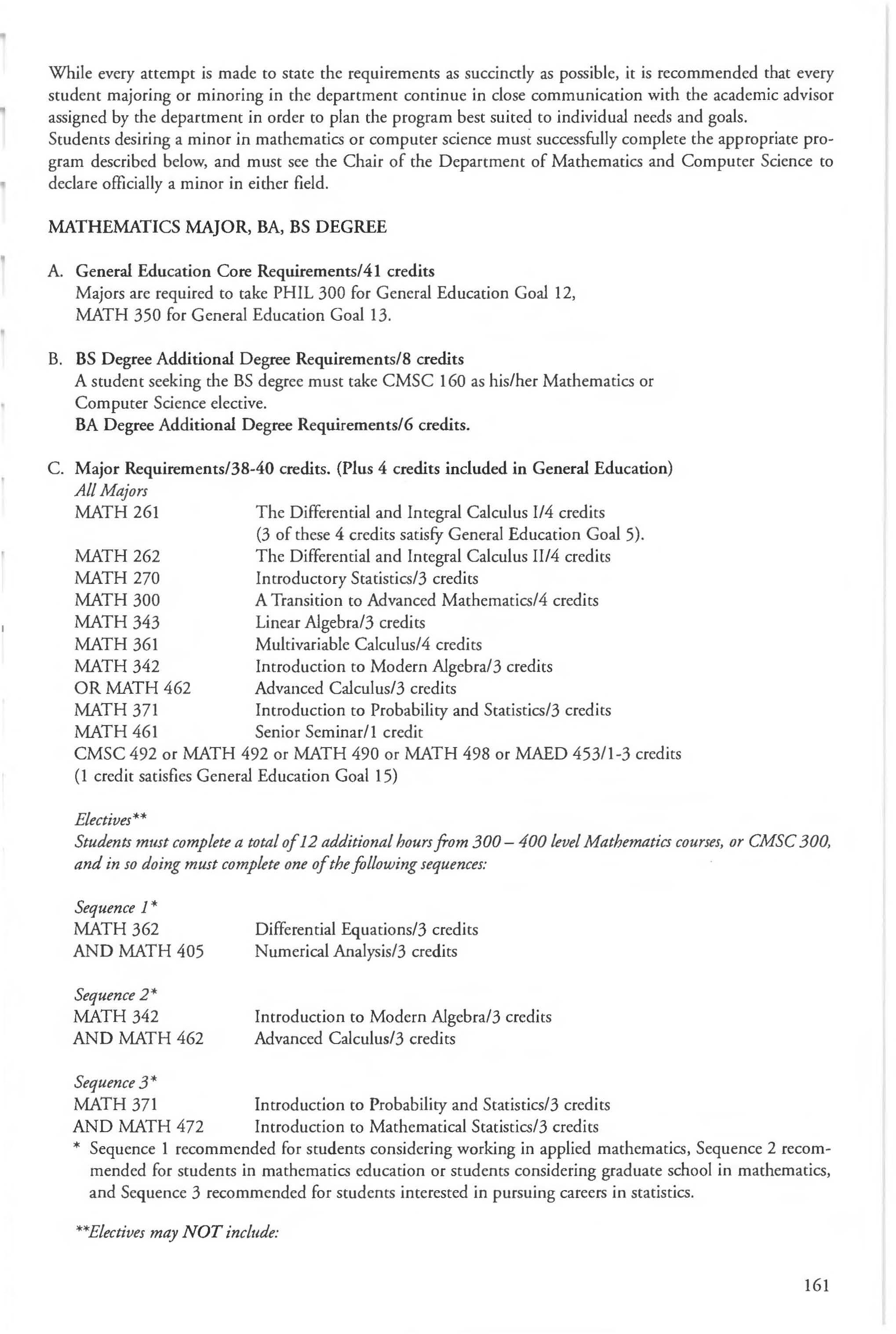 Mathematics Major, BA, Finance Courses 235 BS Degree 160